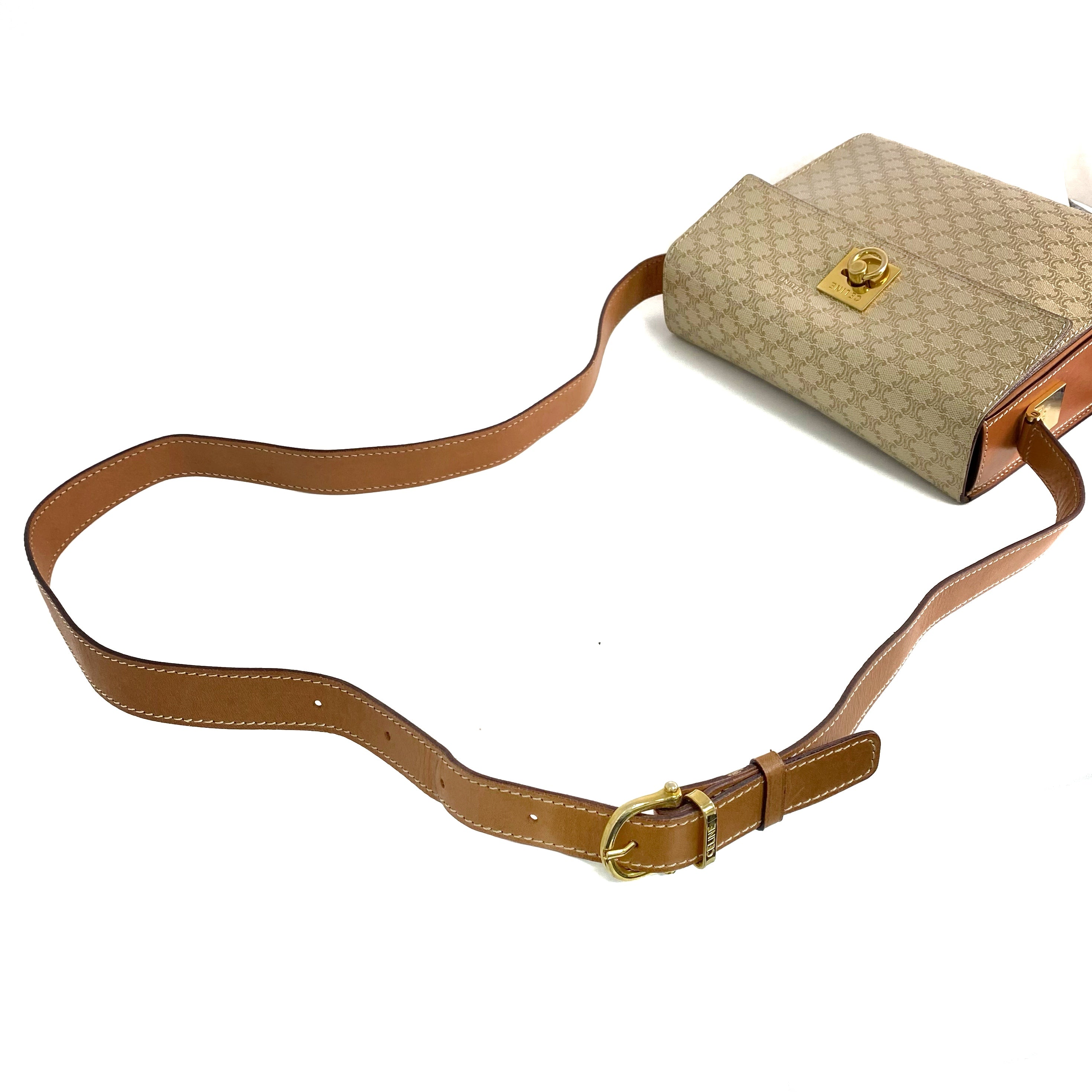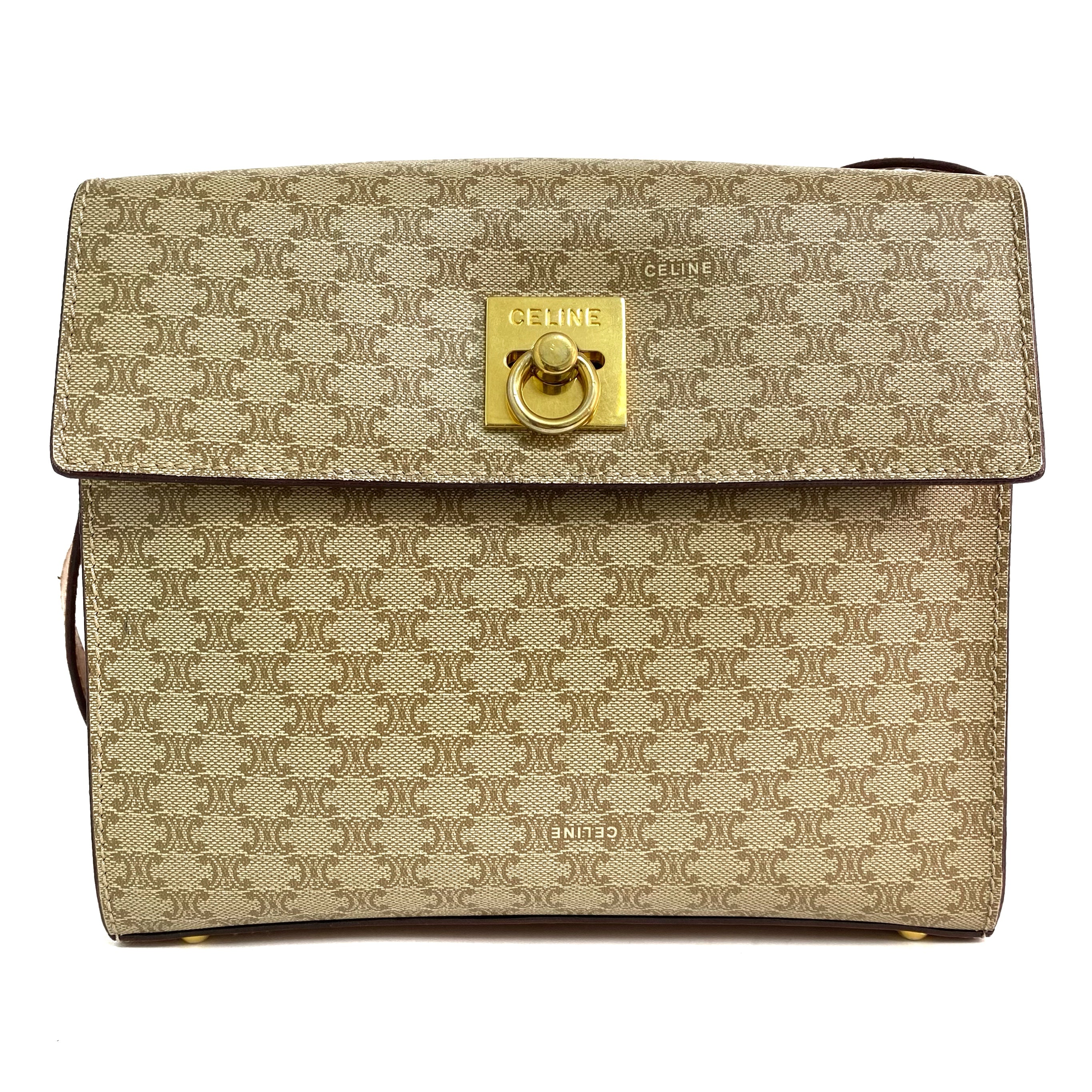 ☆ Celine 思琳 Beige, Brown PVC Calfskin Macadam Shoulder Bag 米色啡色PVC小牛皮肩背袋 - 257028741
