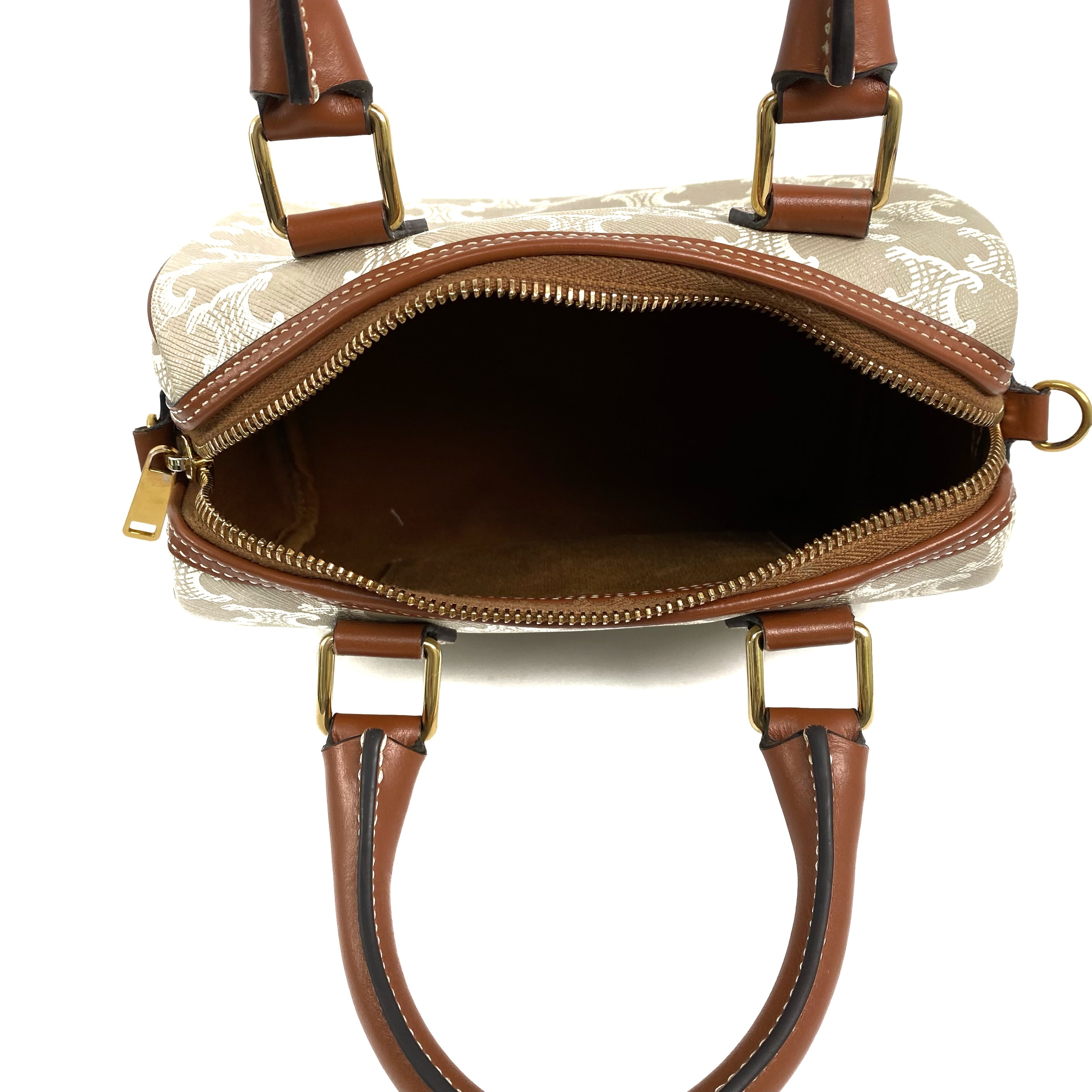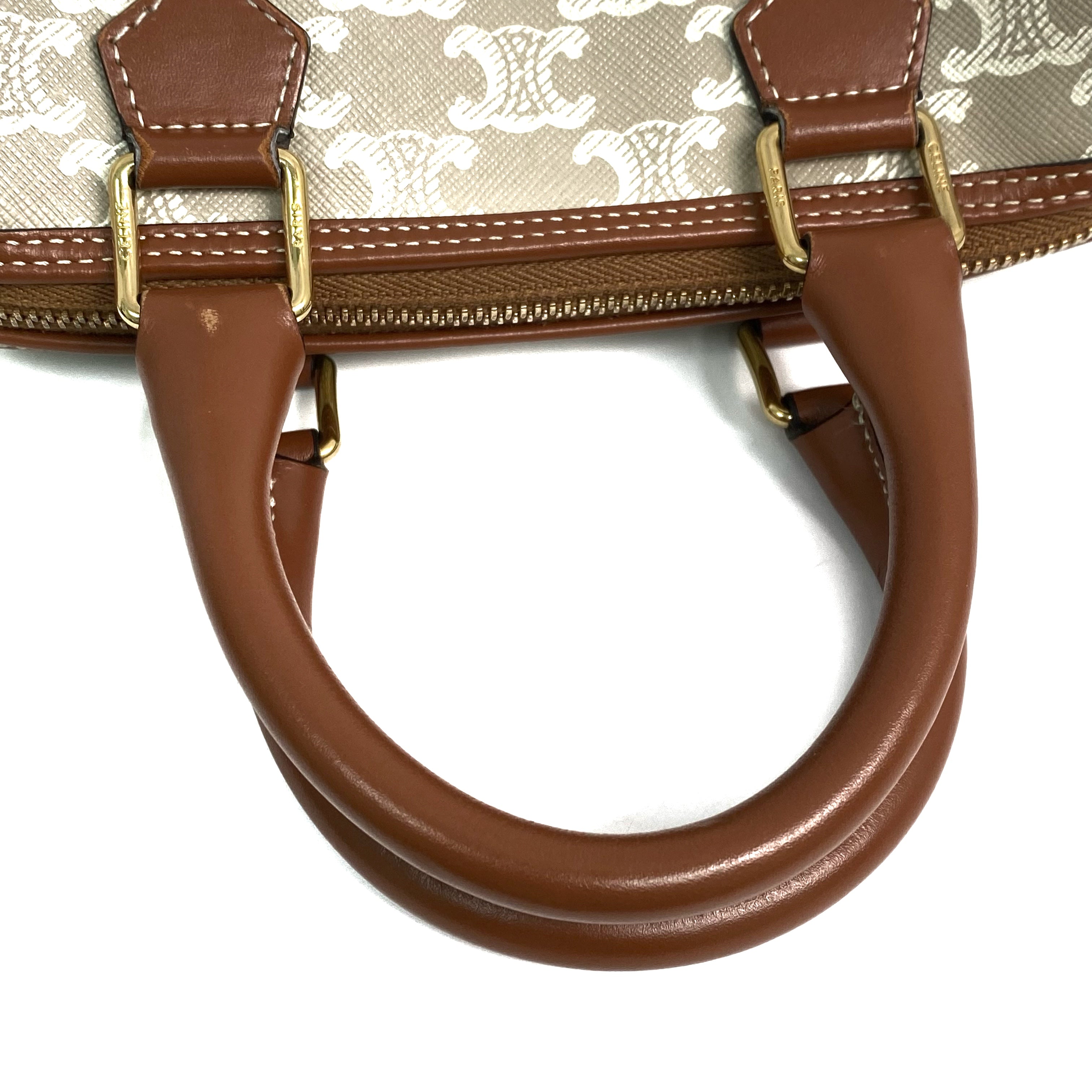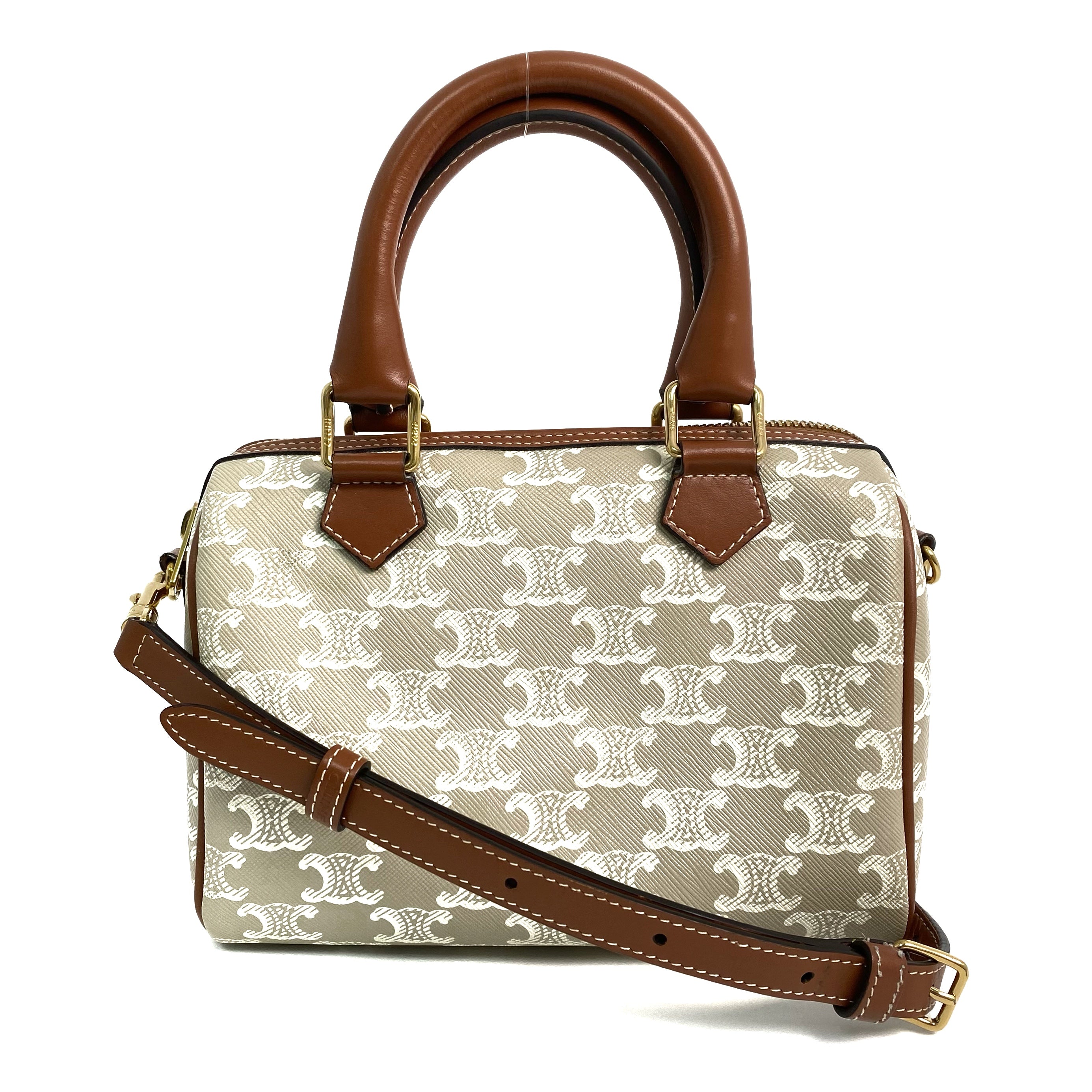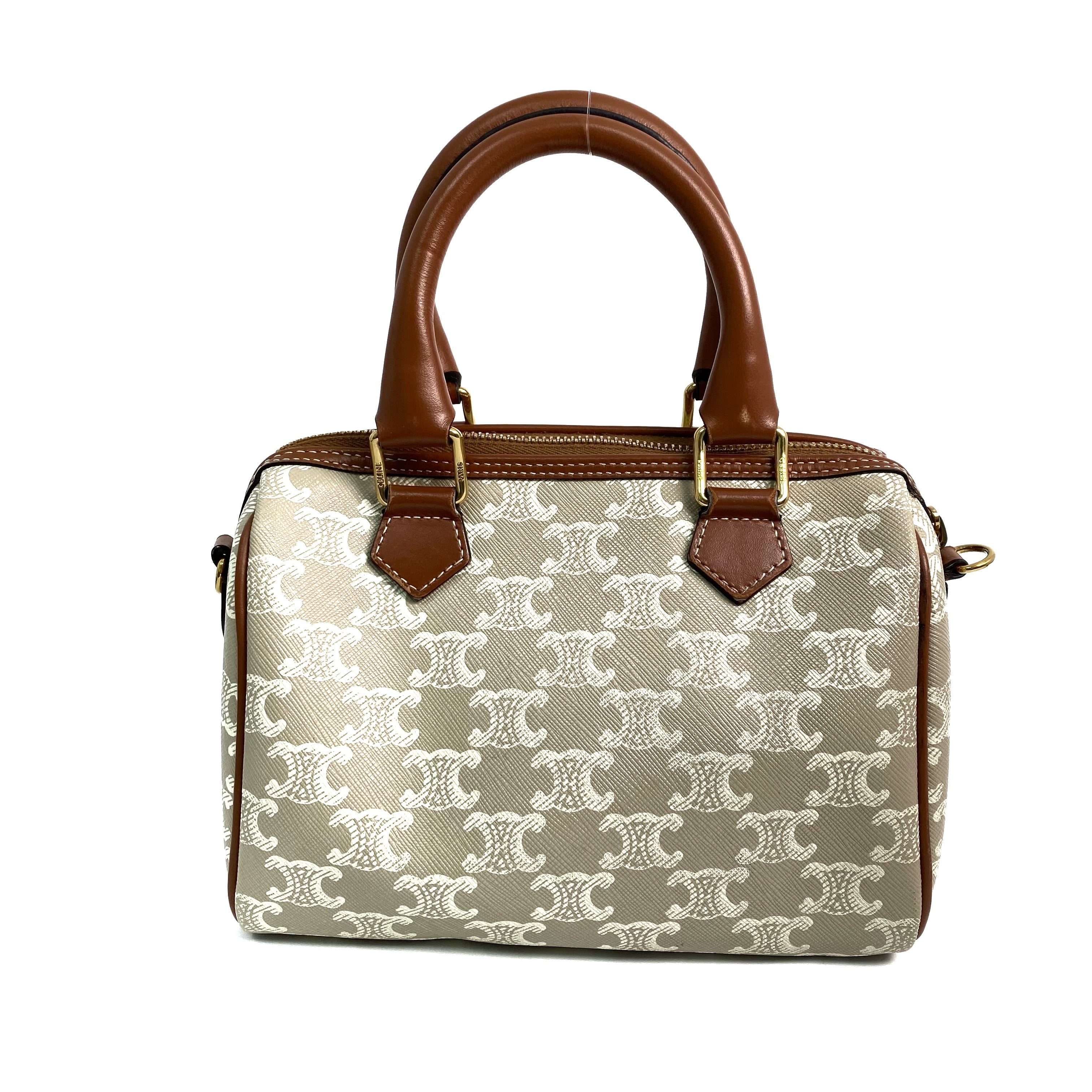 △ Celine 思琳 Grey And Brown Coated Canvas Small Boston 2 Way Bag 灰色和啡色塗層帆布兩用袋 - 257028651