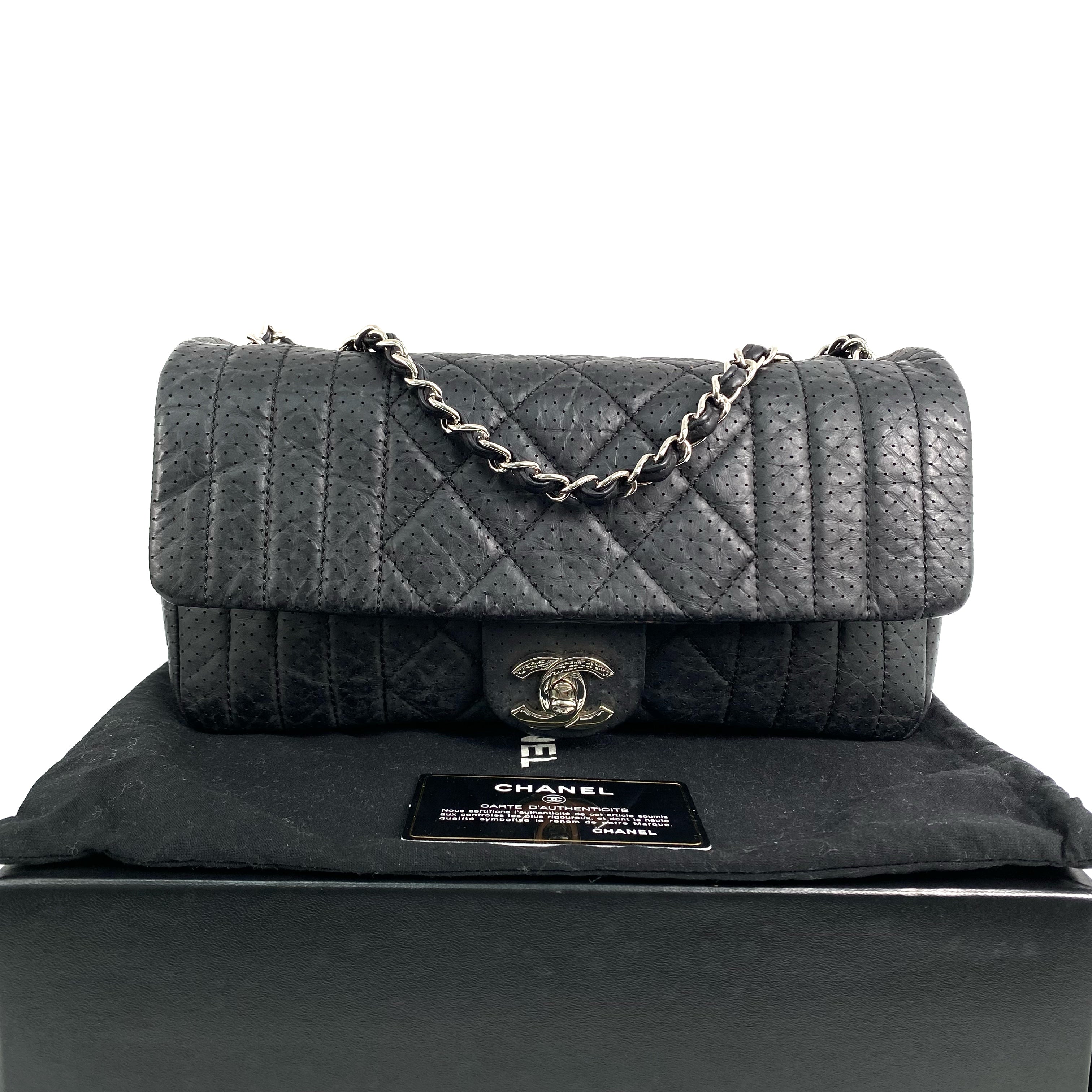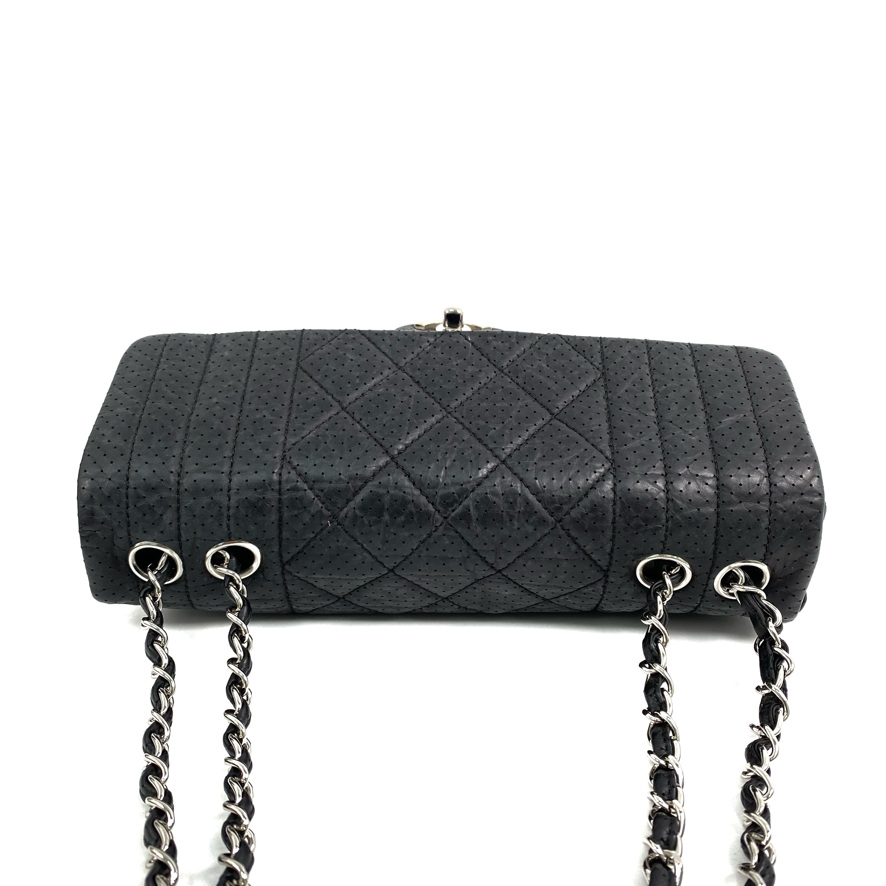△ Chanel 香奈兒 Black Perforated Calfskin Silver Tone Metal Chain Shoulder Bag No.11 黑色穿孔小牛皮銀色金屬鎖鏈肩背袋No.11 - 267004717