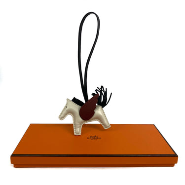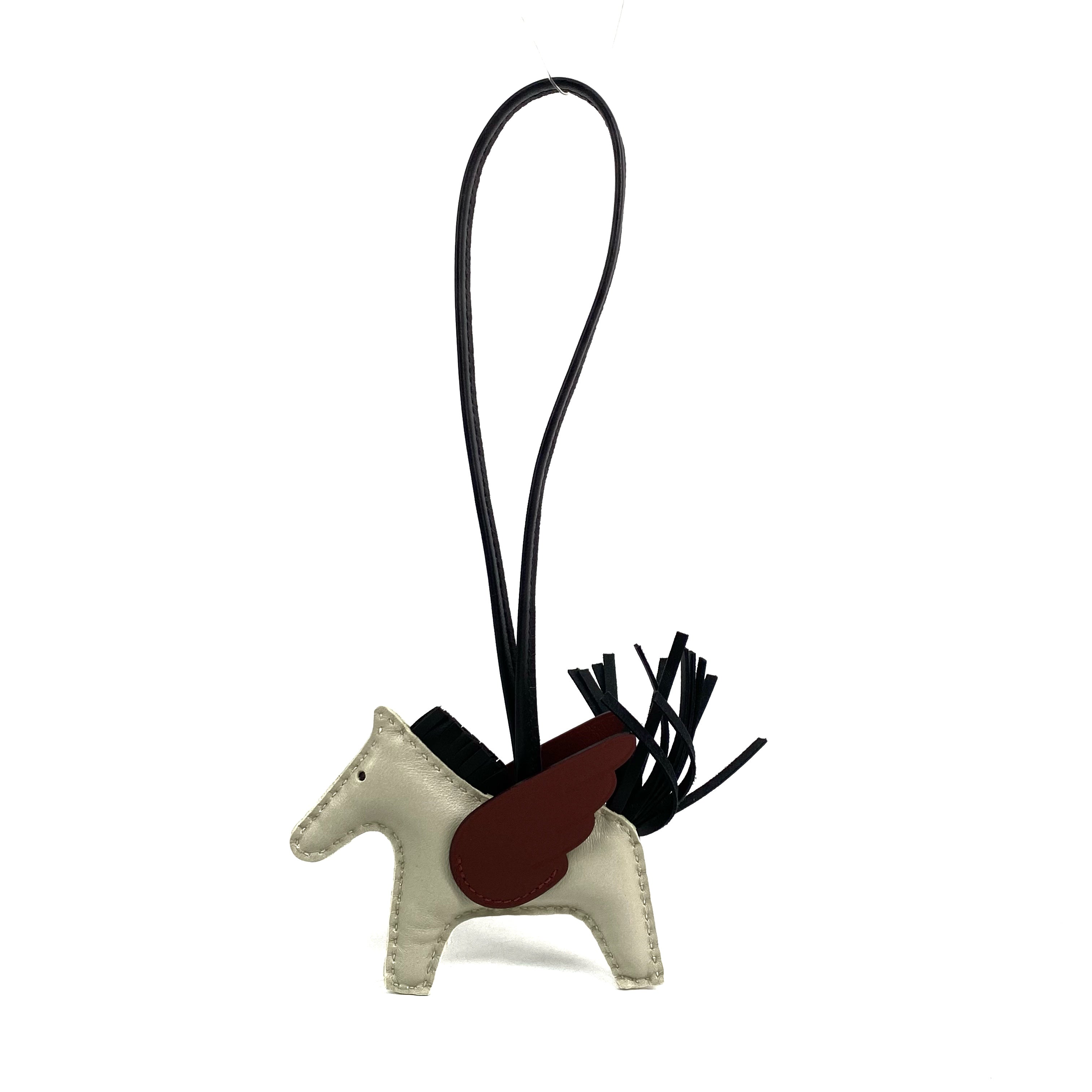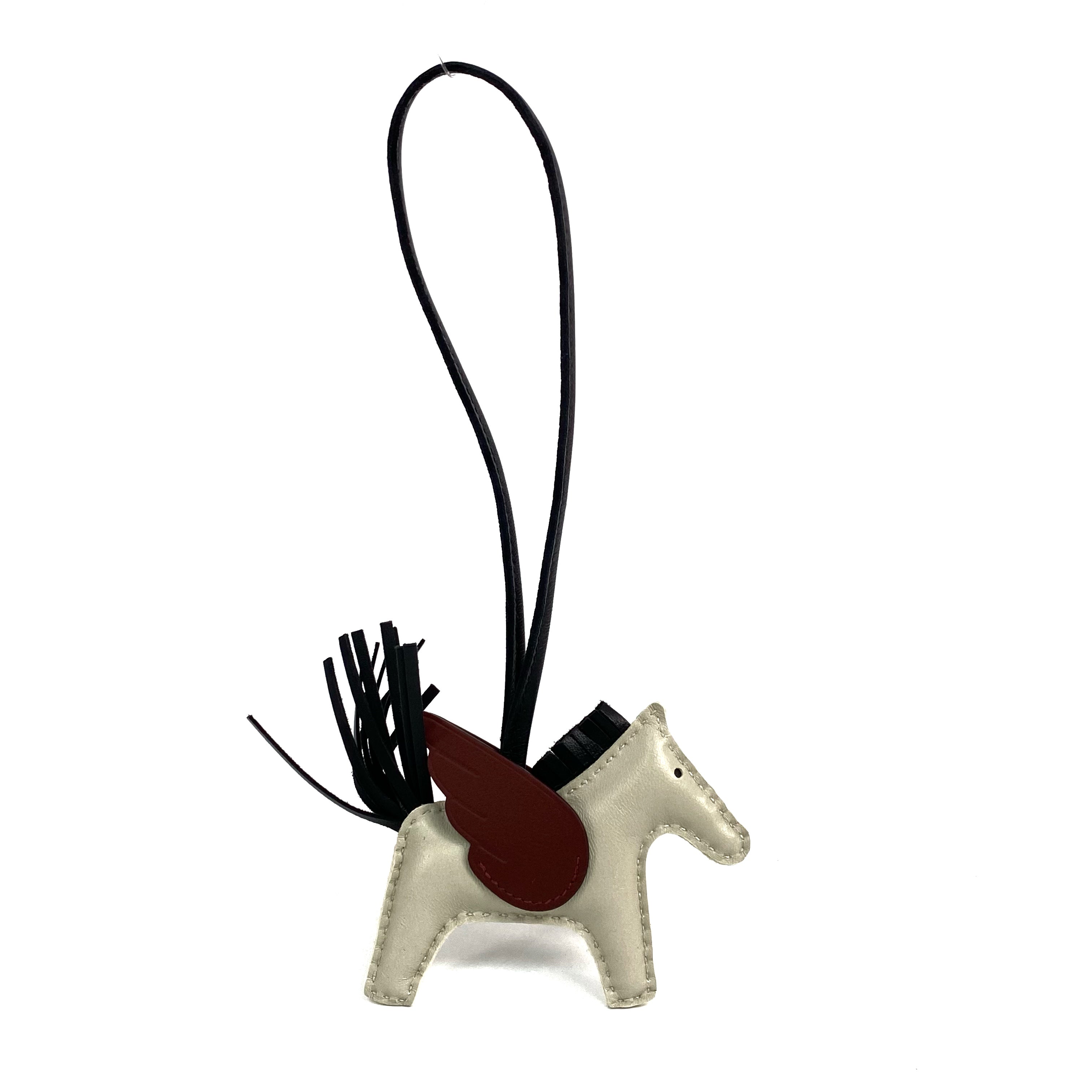 ☆ Hermes 愛馬仕 White Brown Milo Lambskin Rodeo Pegasus PM Charm Stamp B 白色啡色小羊皮飛馬飛馬吊飾B刻 - 257028361