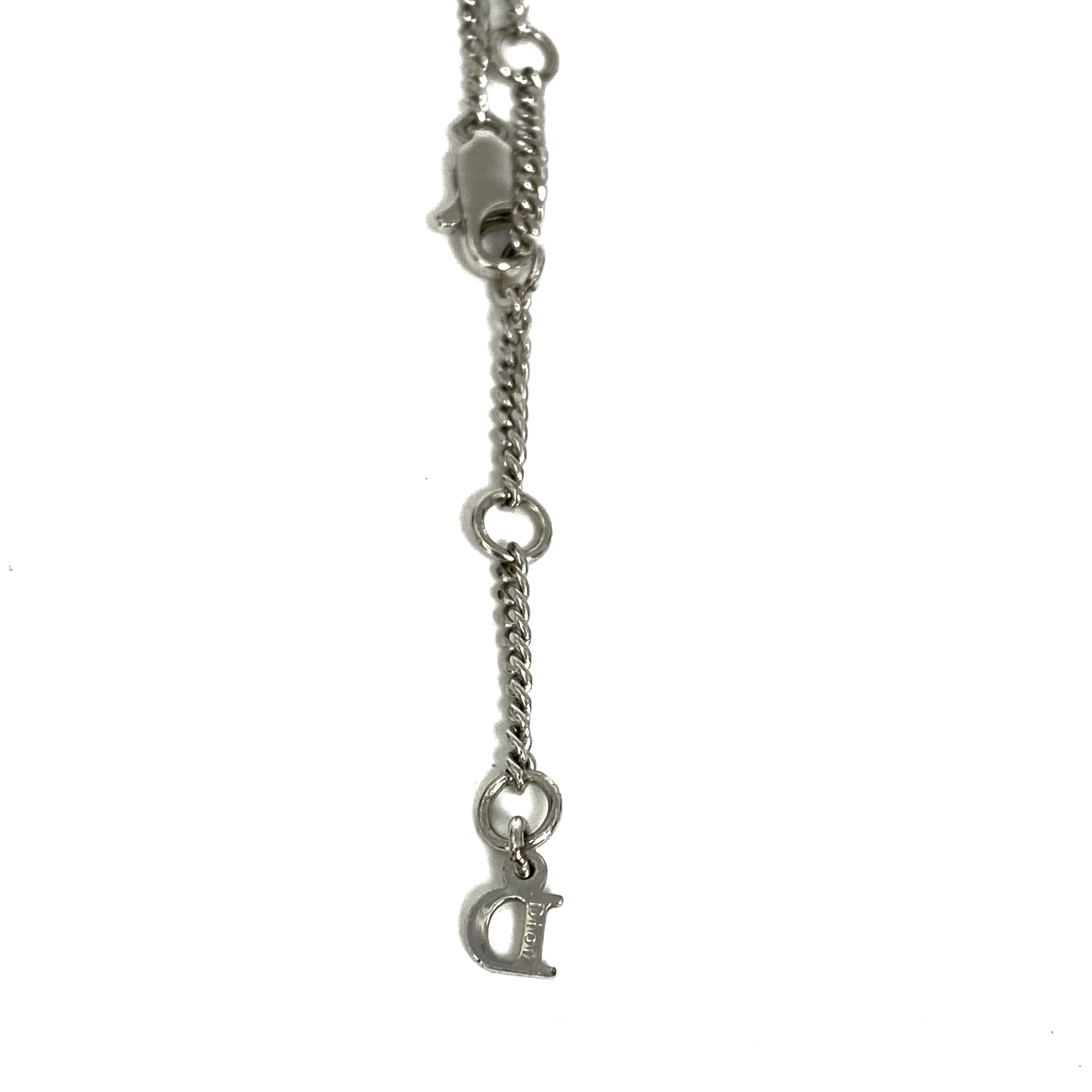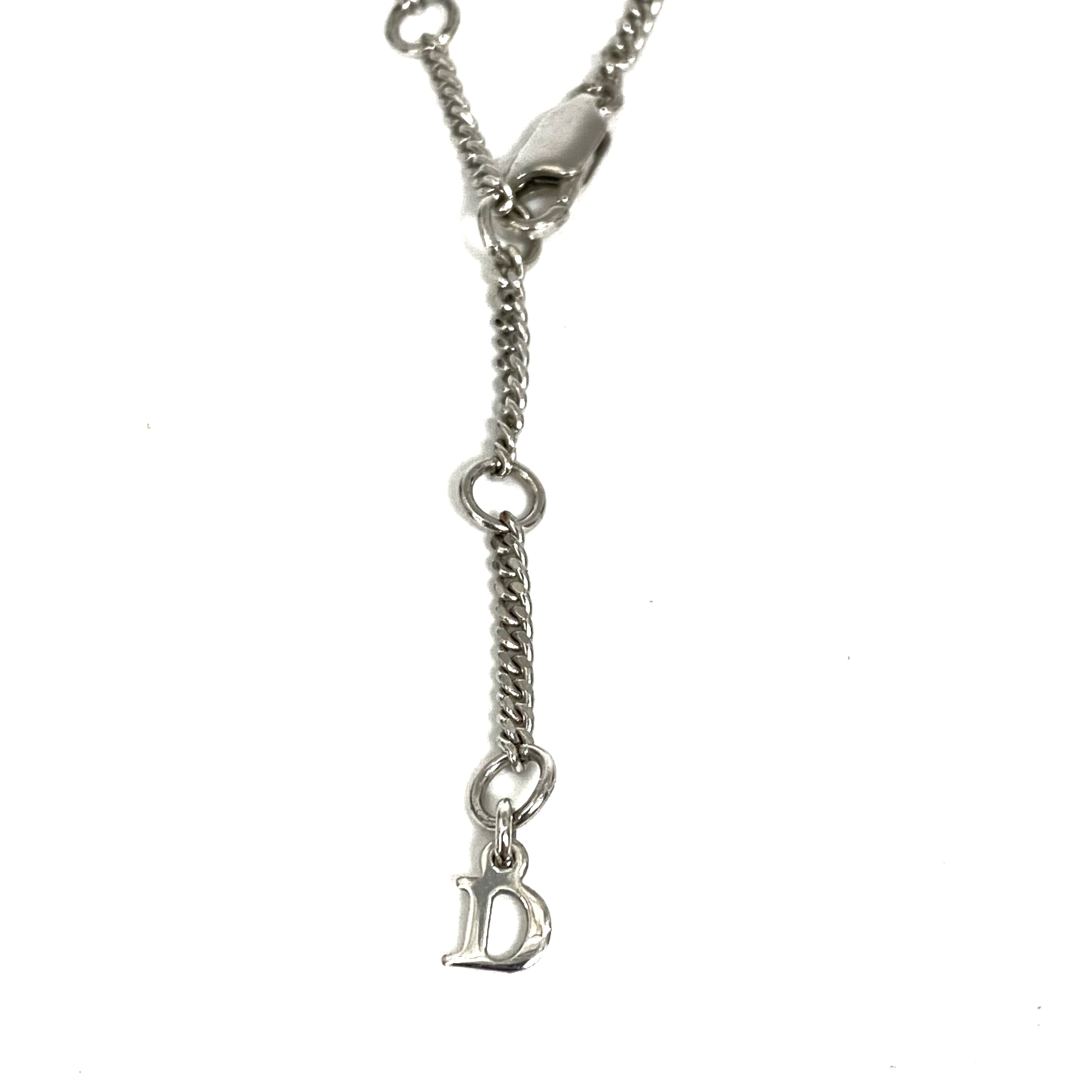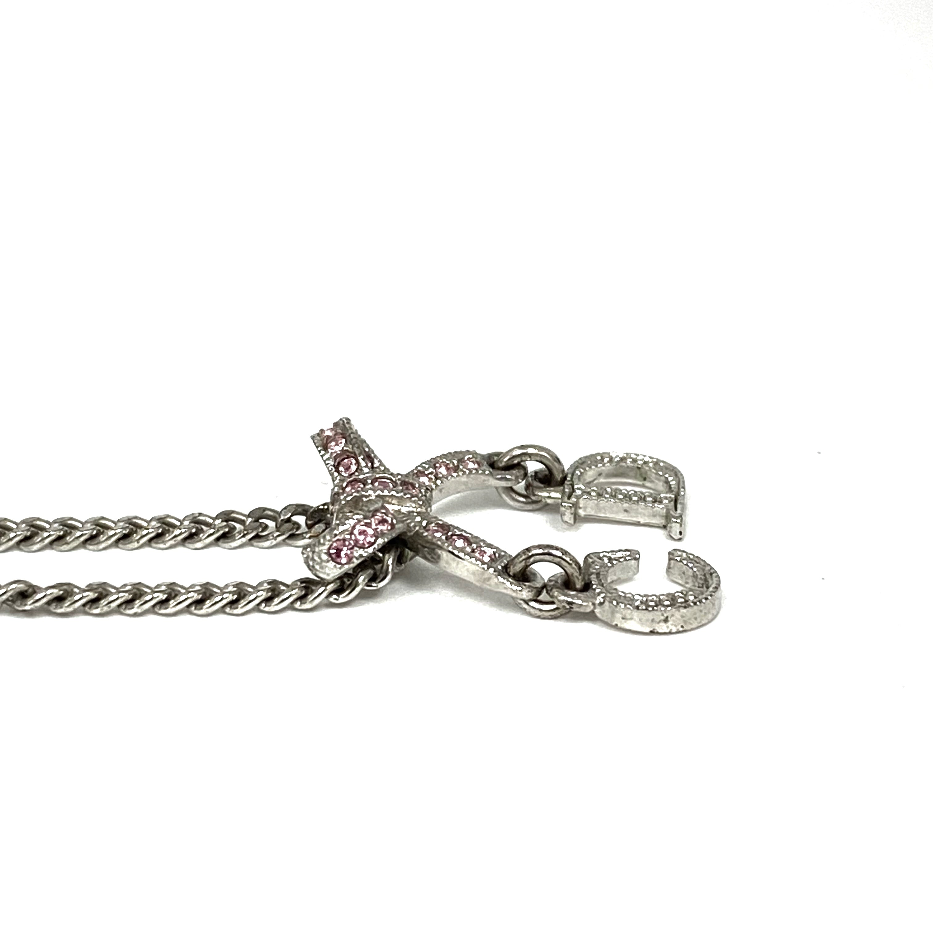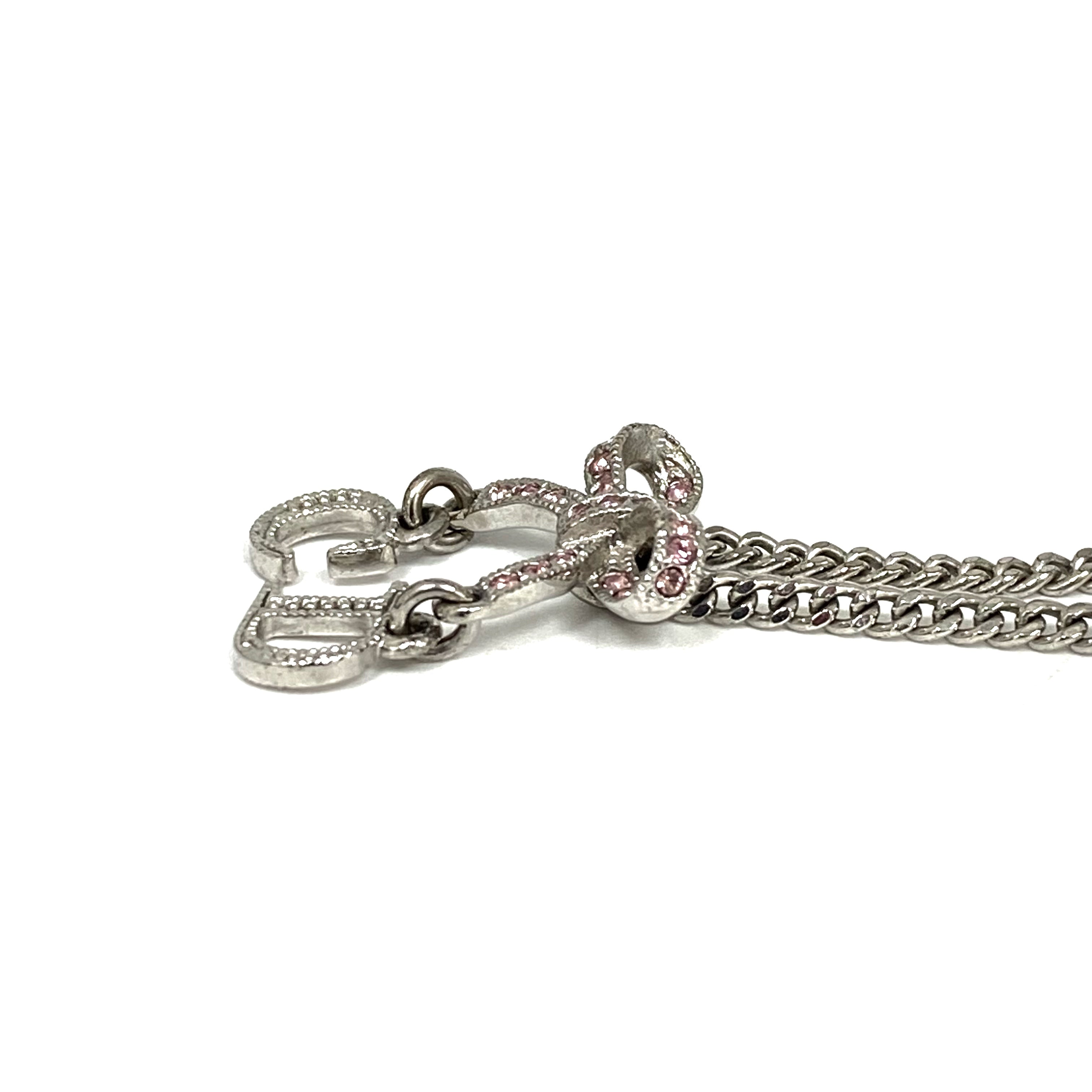 ☆ Christian Dior 迪奧 Pink Silver-tone Metal Rhinestone Ribbon Necklace 粉紅色銀色金屬蝴蝶結頸鏈 - 257025086