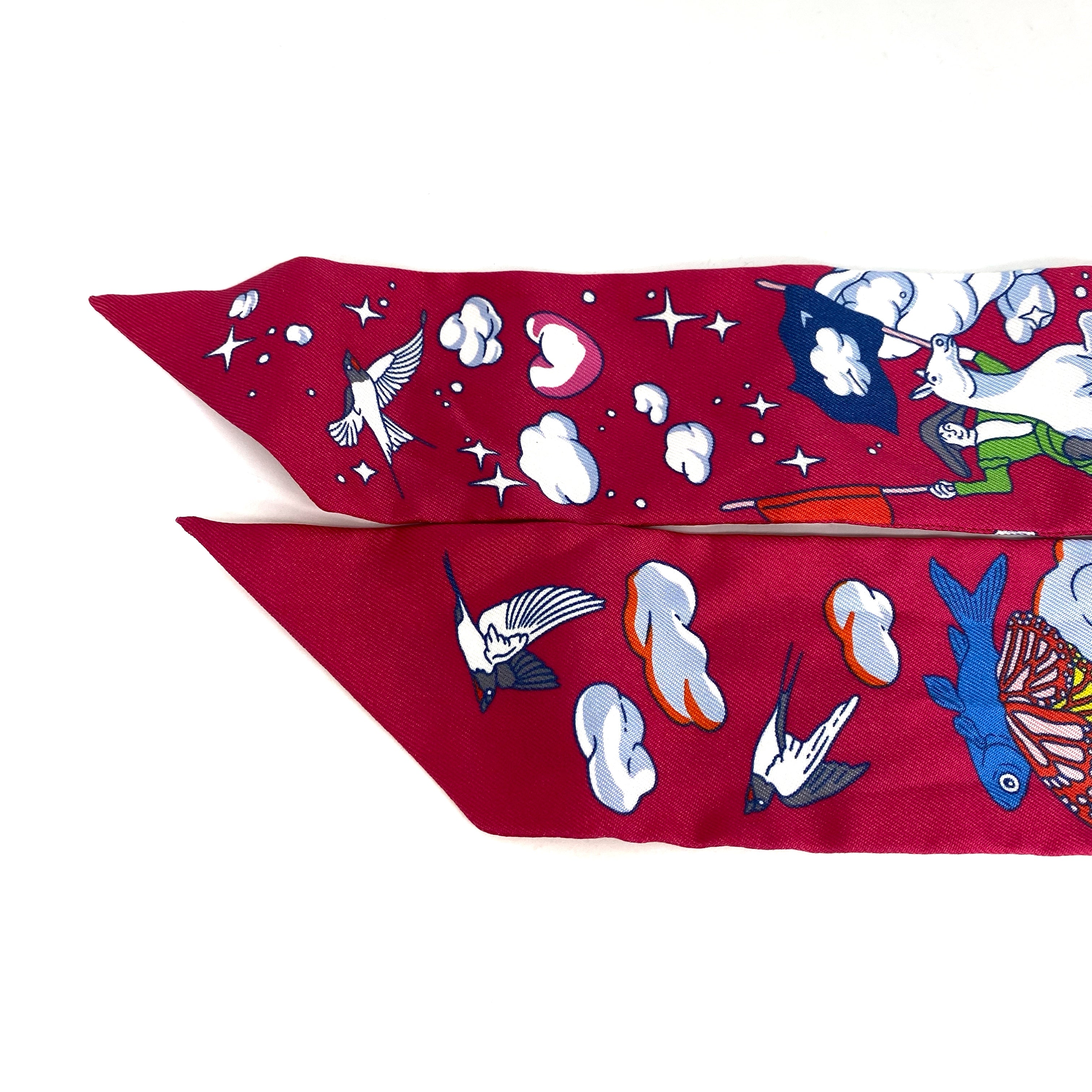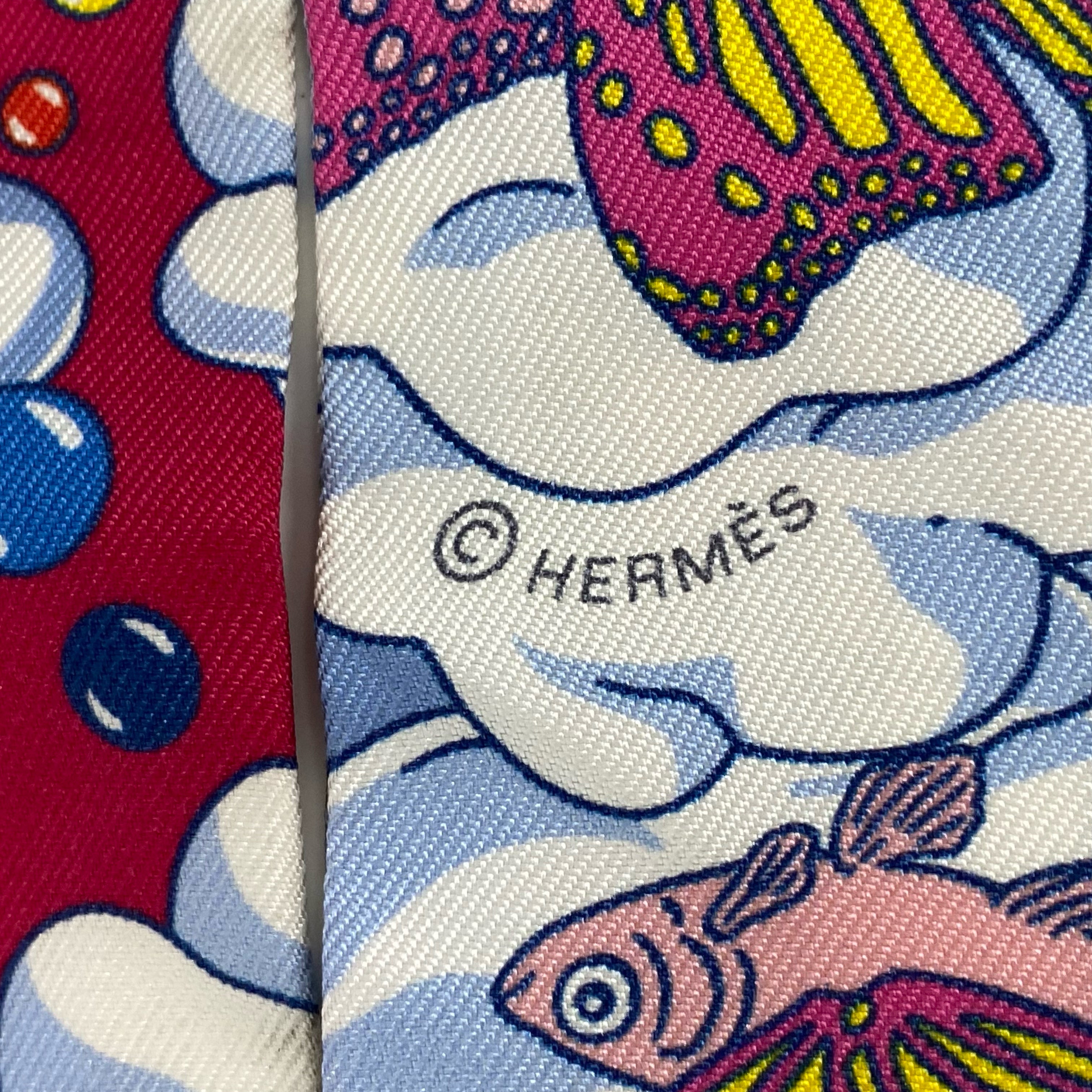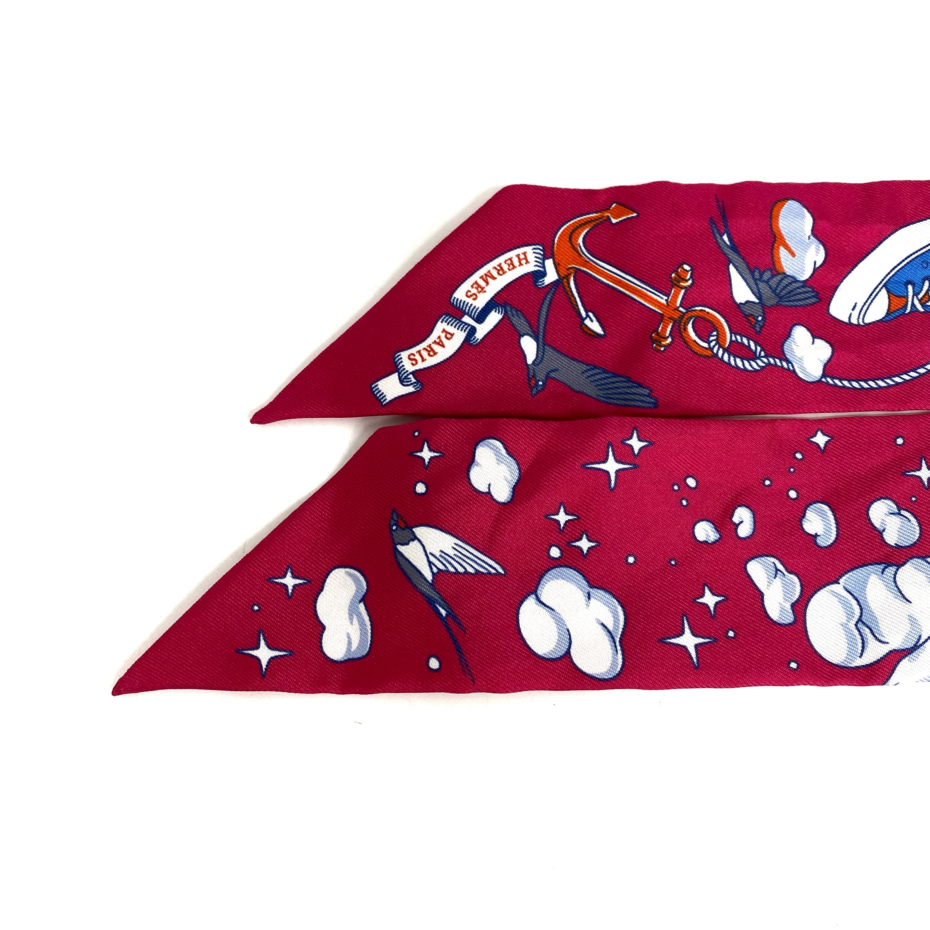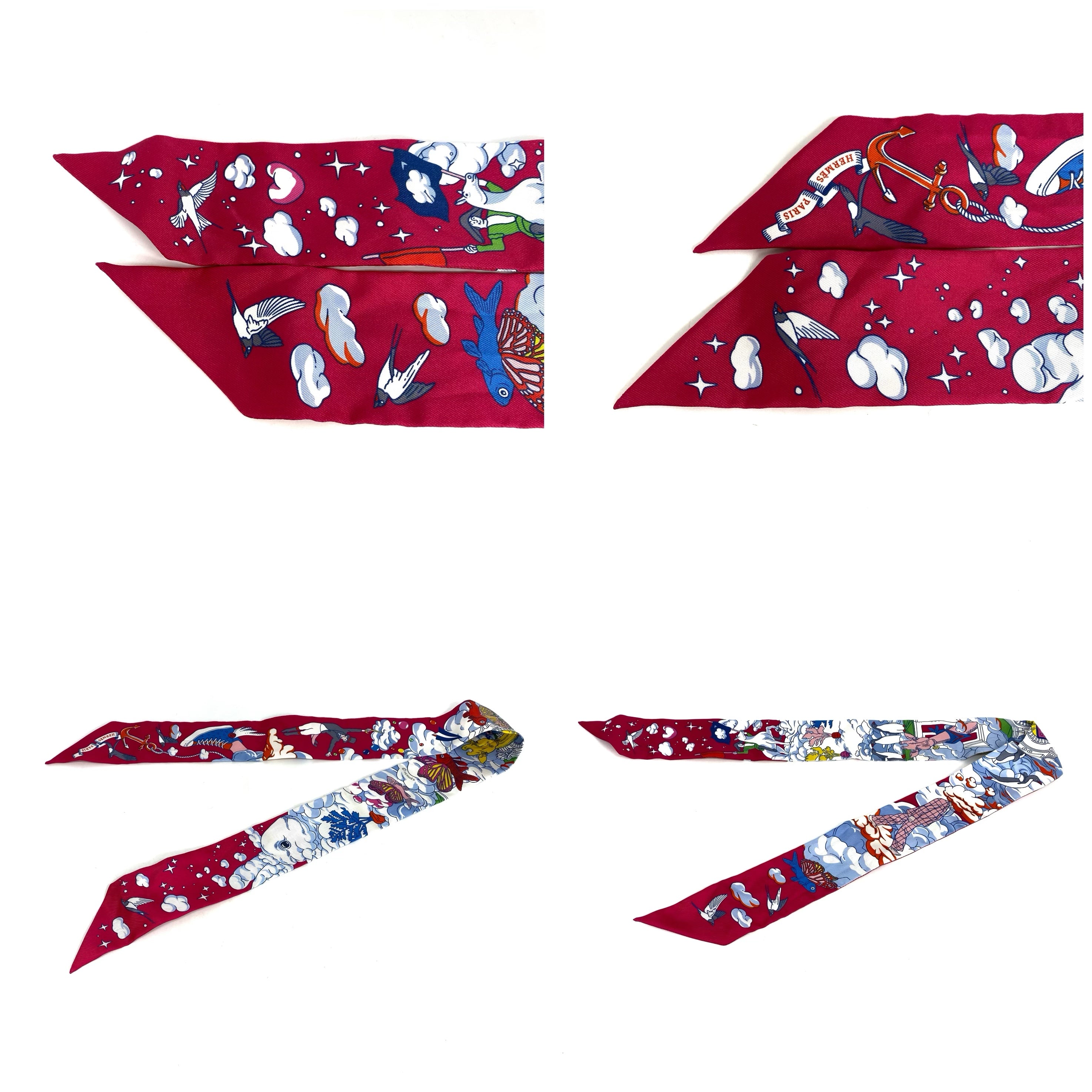 ☆ Hermes 愛馬仕 Pink & White 100% Silk Twilly Scarf 粉紅色和白色100%絲質斜紋巾 - 257024545