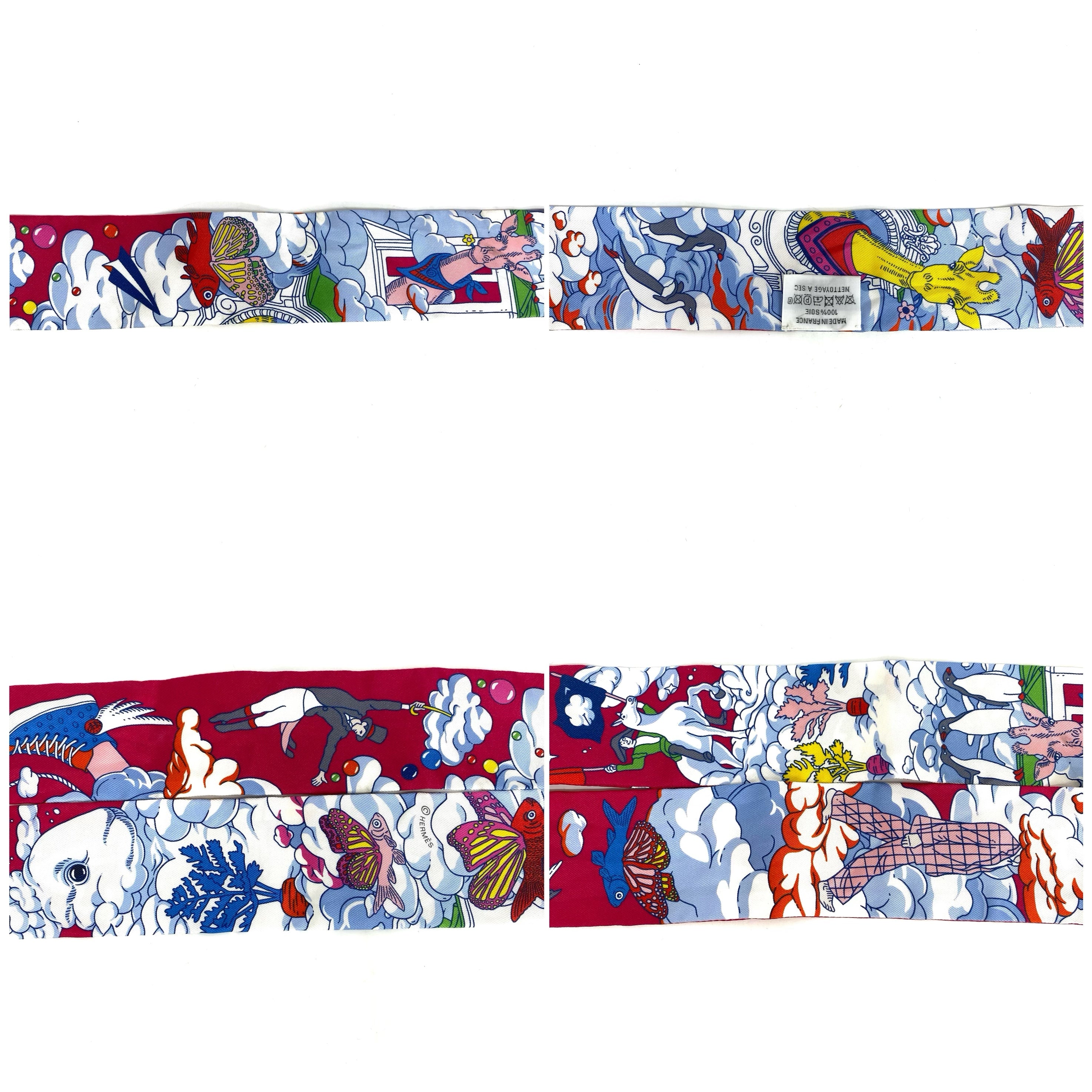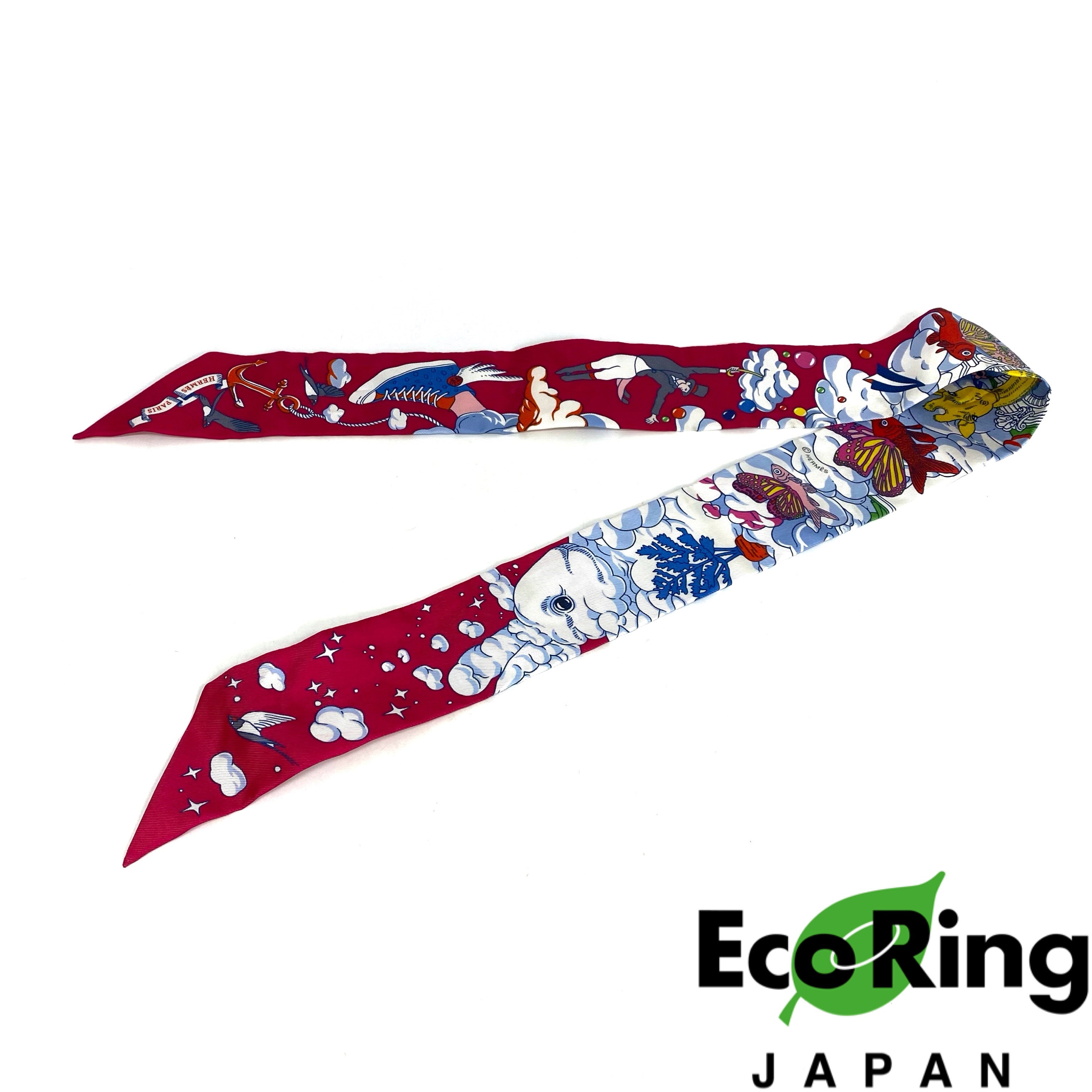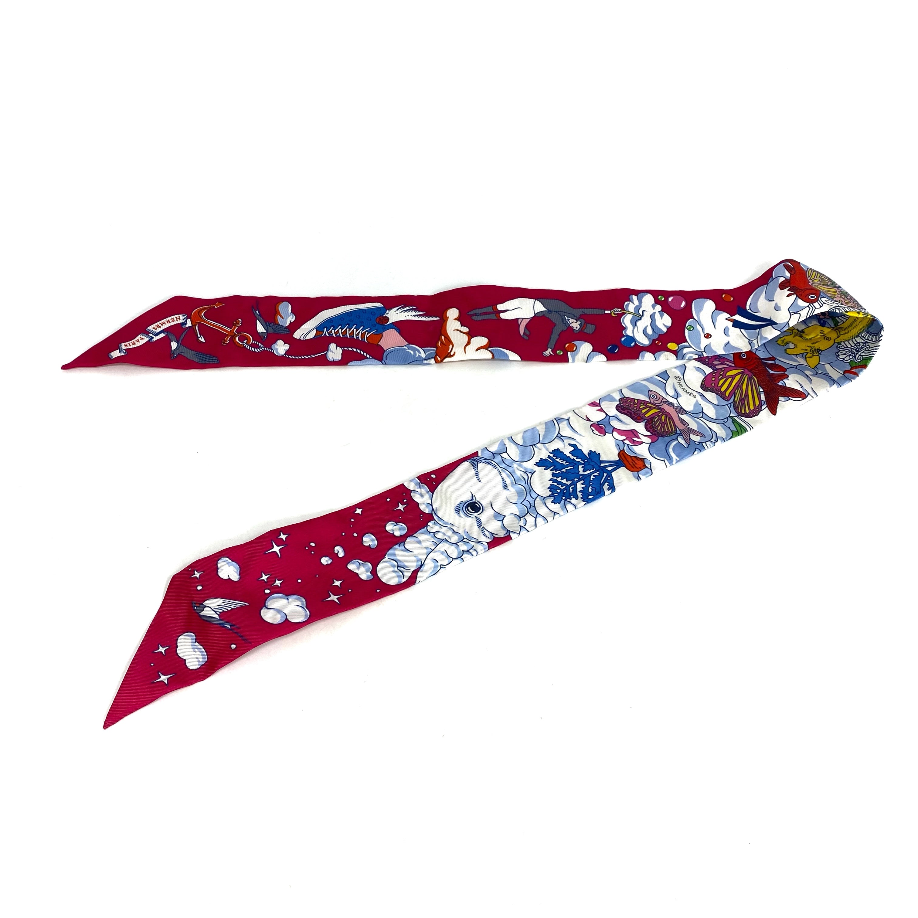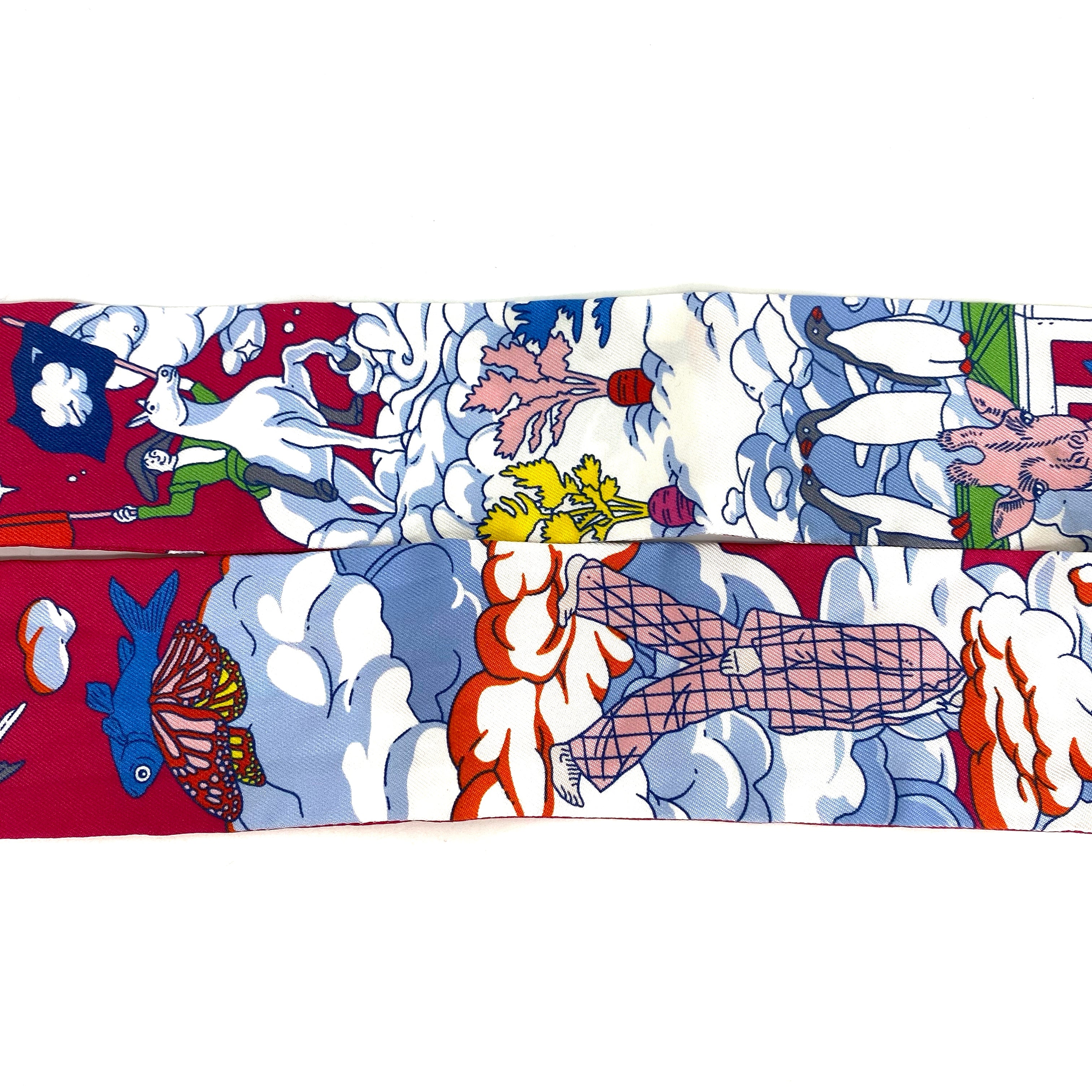 ☆ Hermes 愛馬仕 Pink & White 100% Silk Twilly Scarf 粉紅色和白色100%絲質斜紋巾 - 257024545