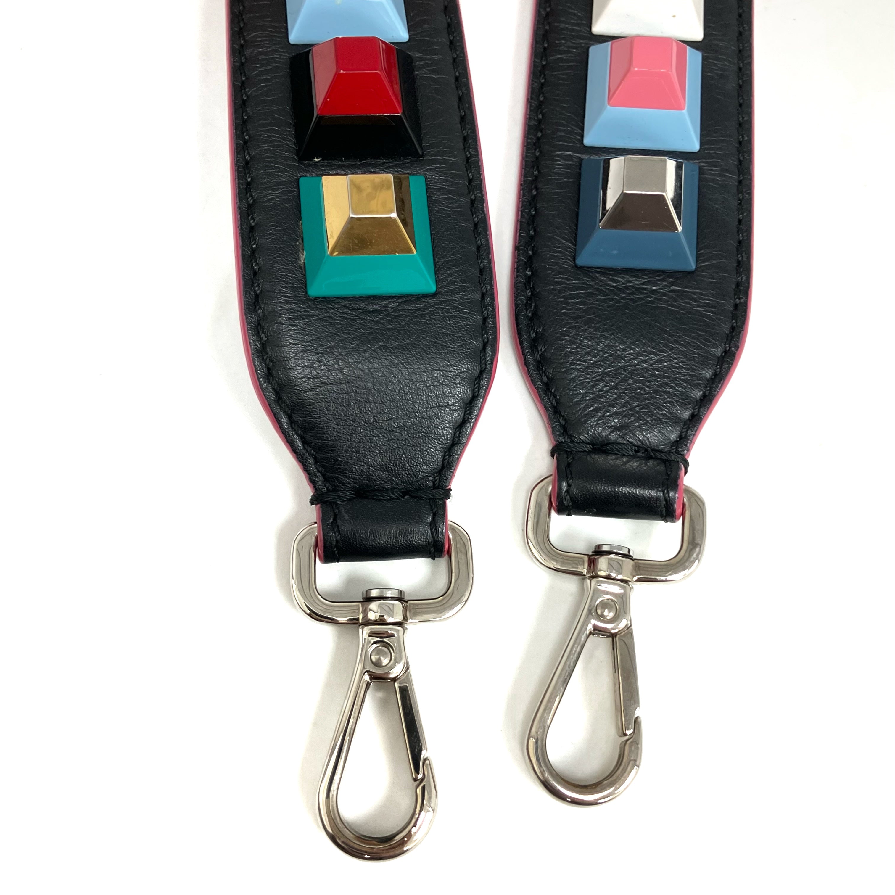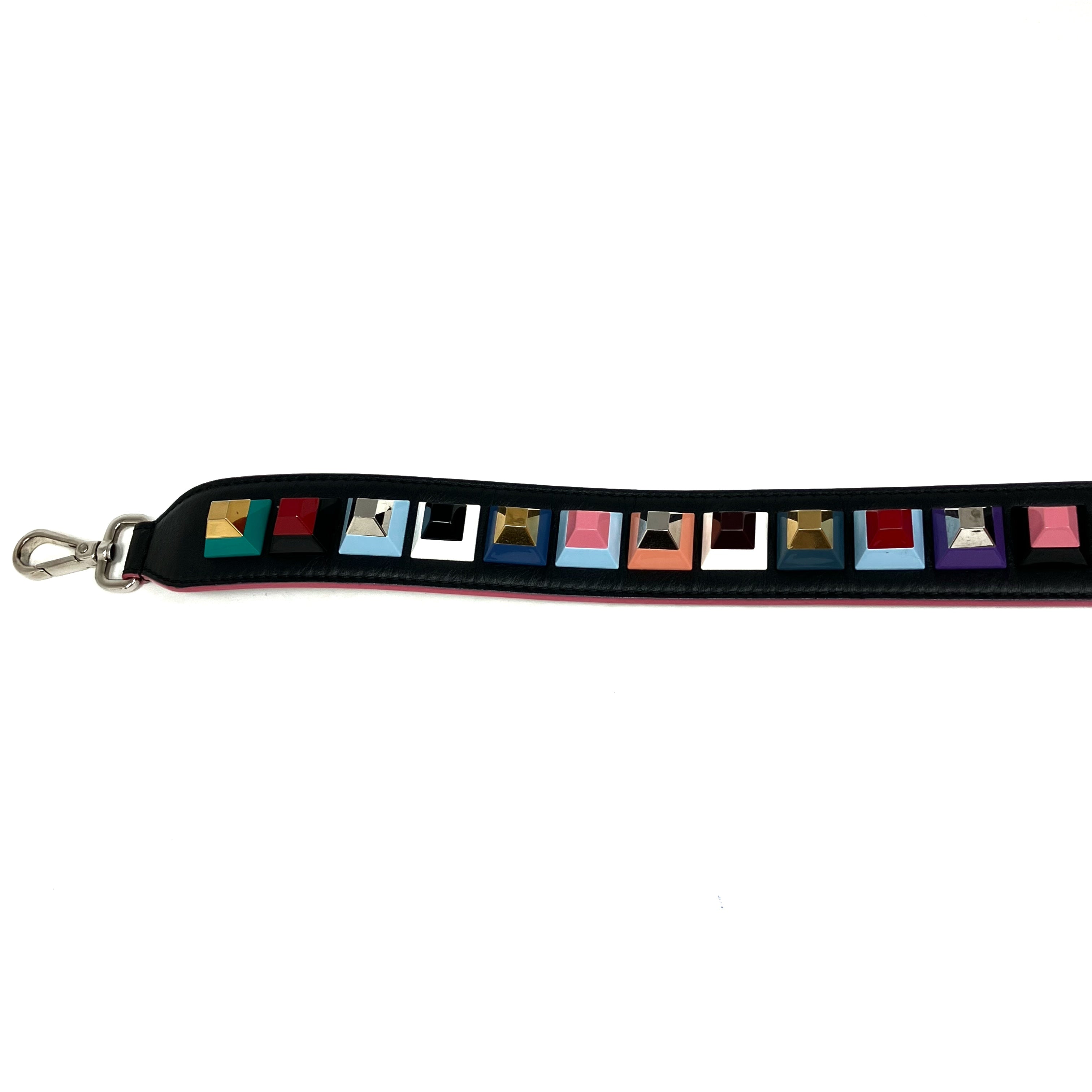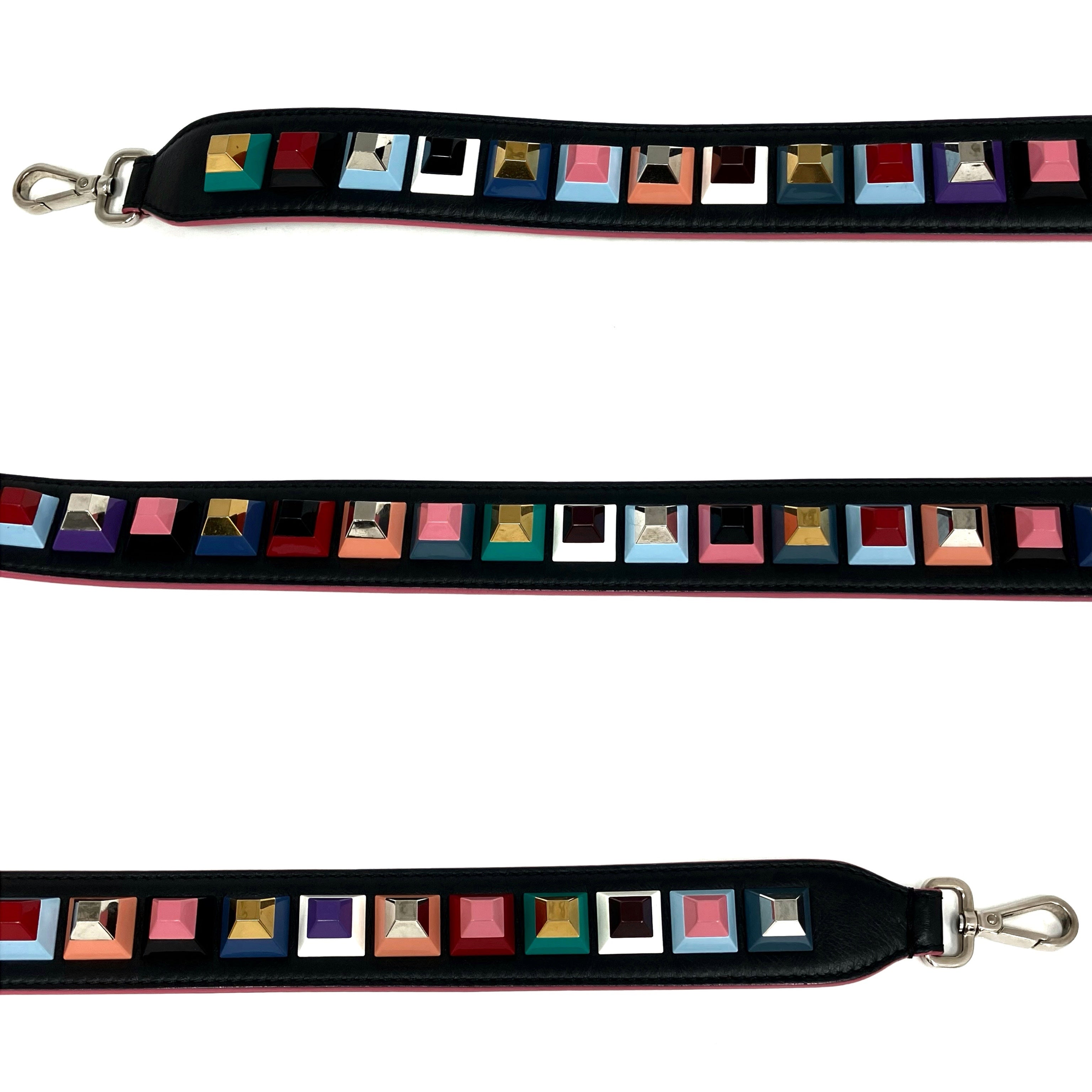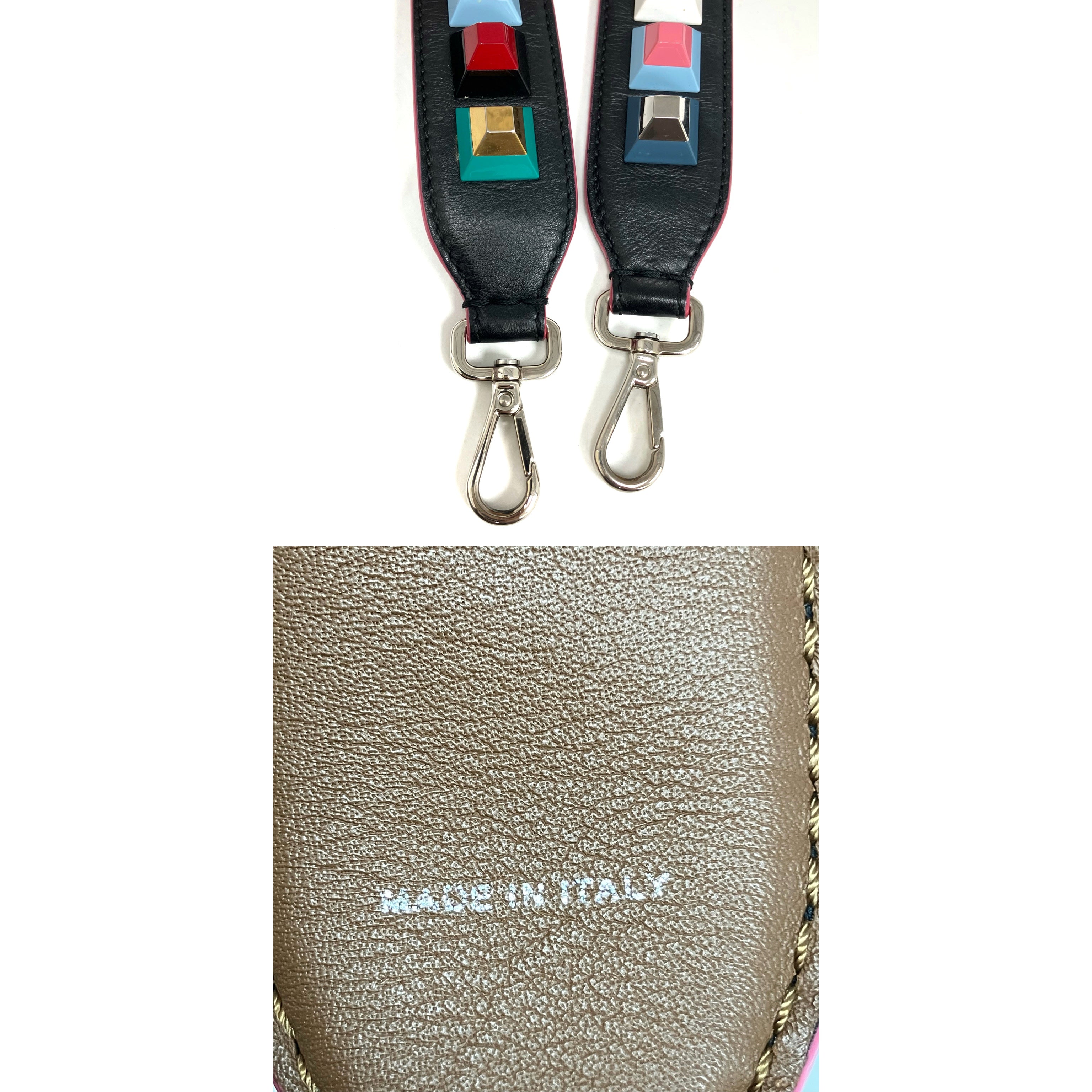 ☆ Fendi 芬迪 Black & Multicolor Goatskin Bag Strap 黑色多色山羊皮肩帶 - 257024435