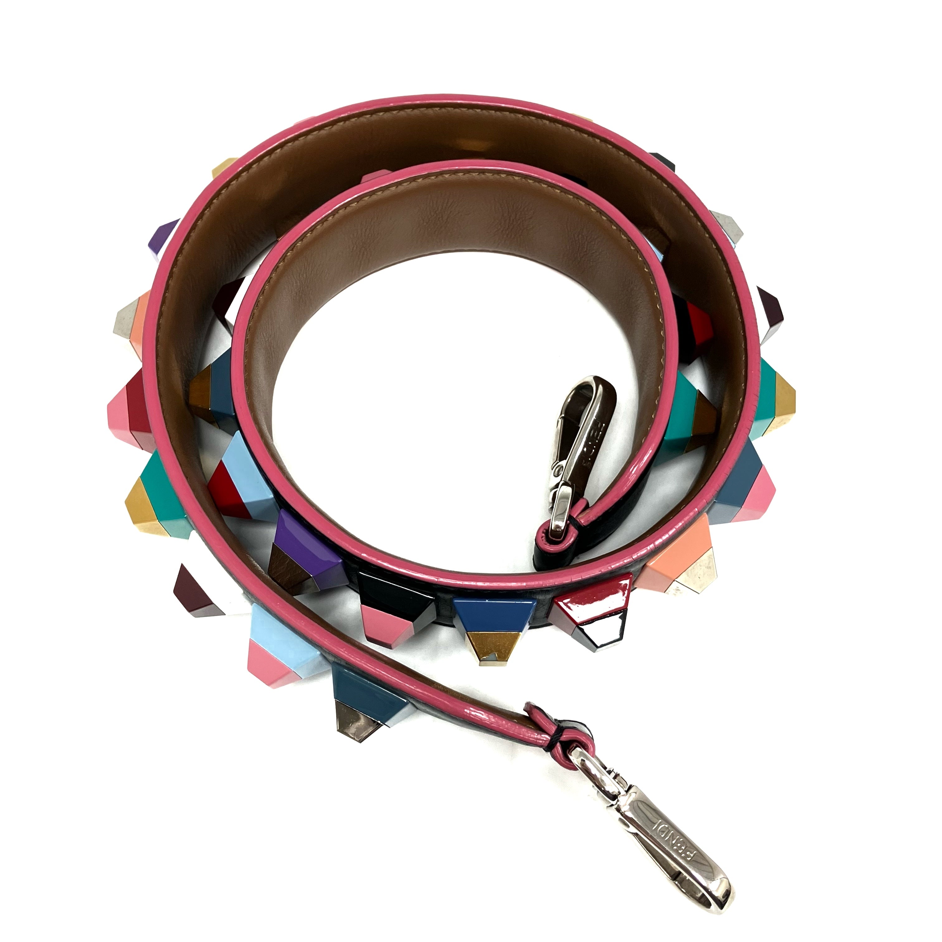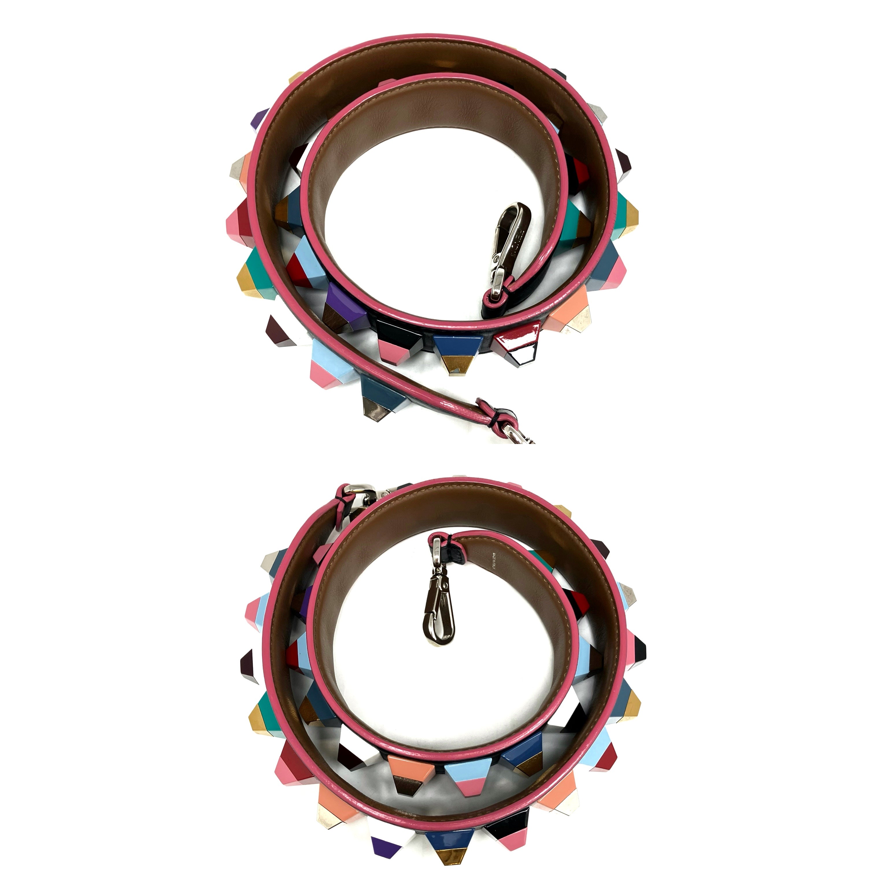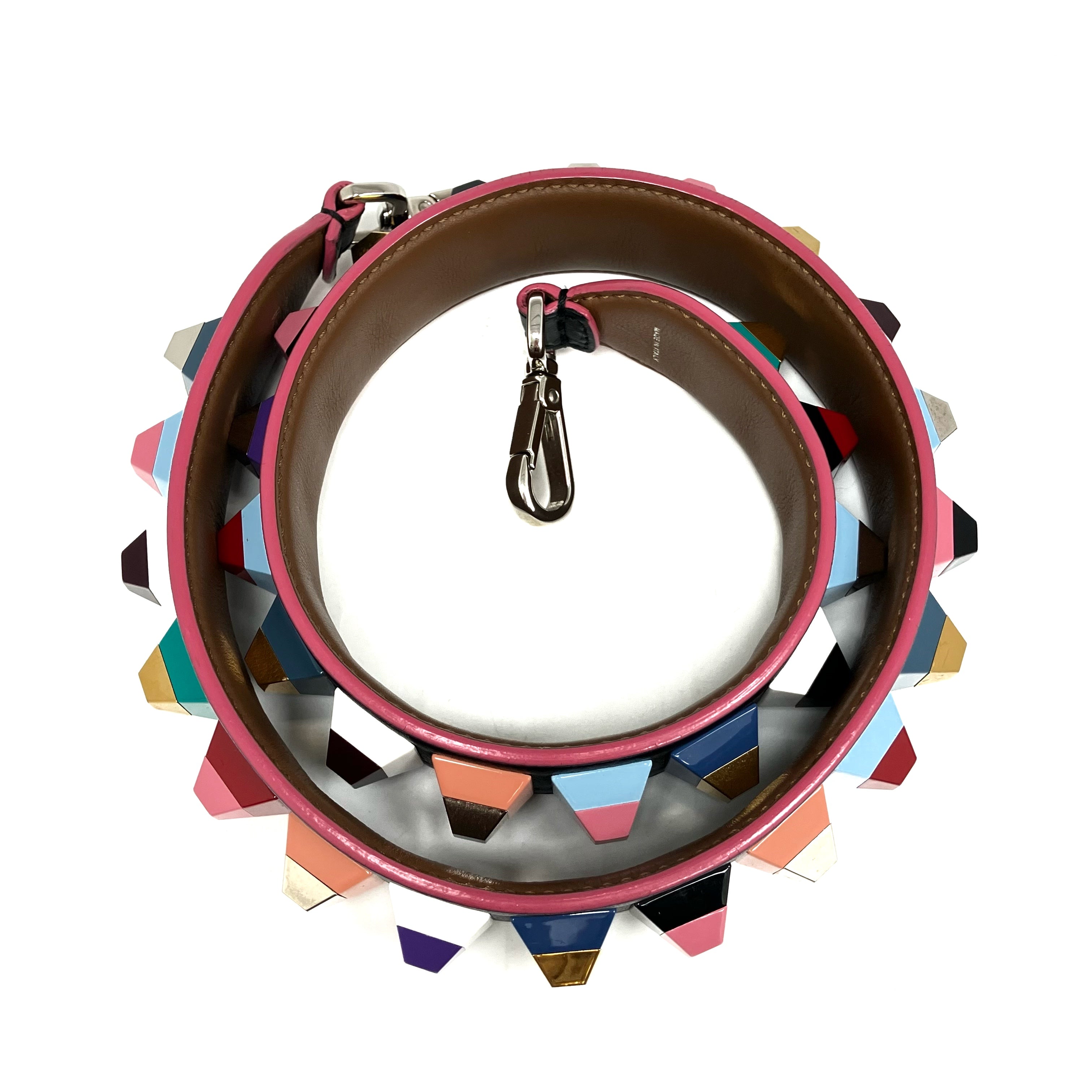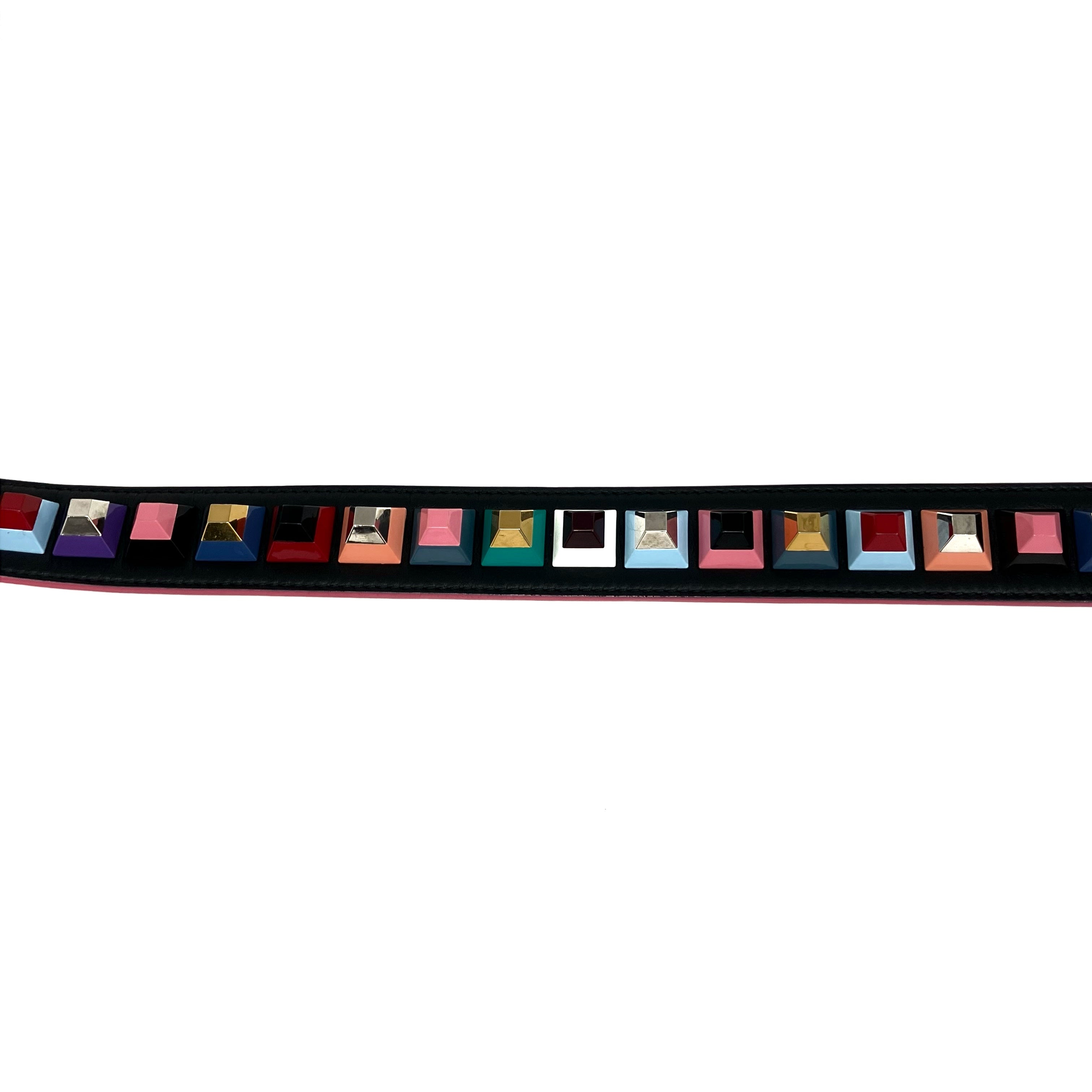 ☆ Fendi 芬迪 Black & Multicolor Goatskin Bag Strap 黑色多色山羊皮肩帶 - 257024435