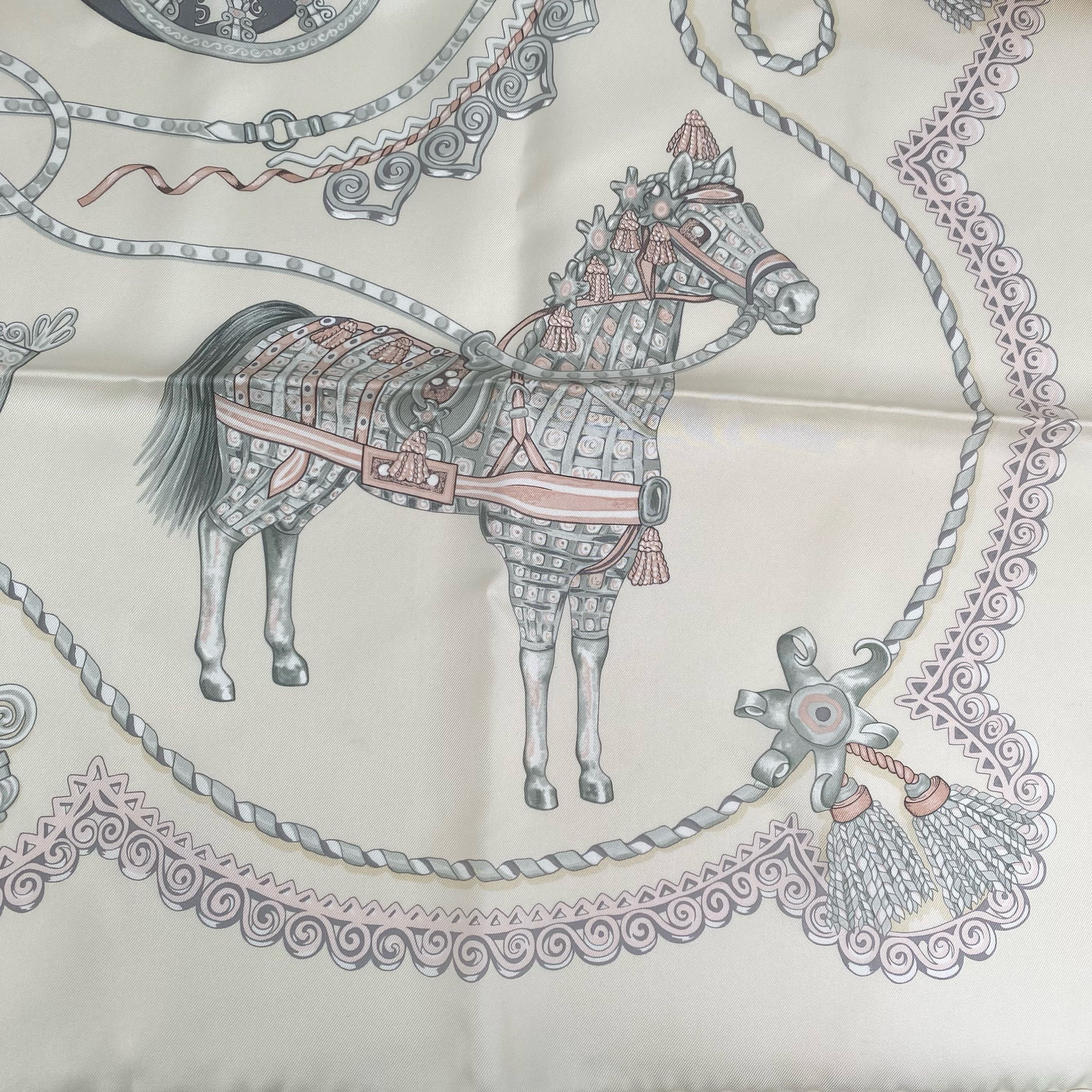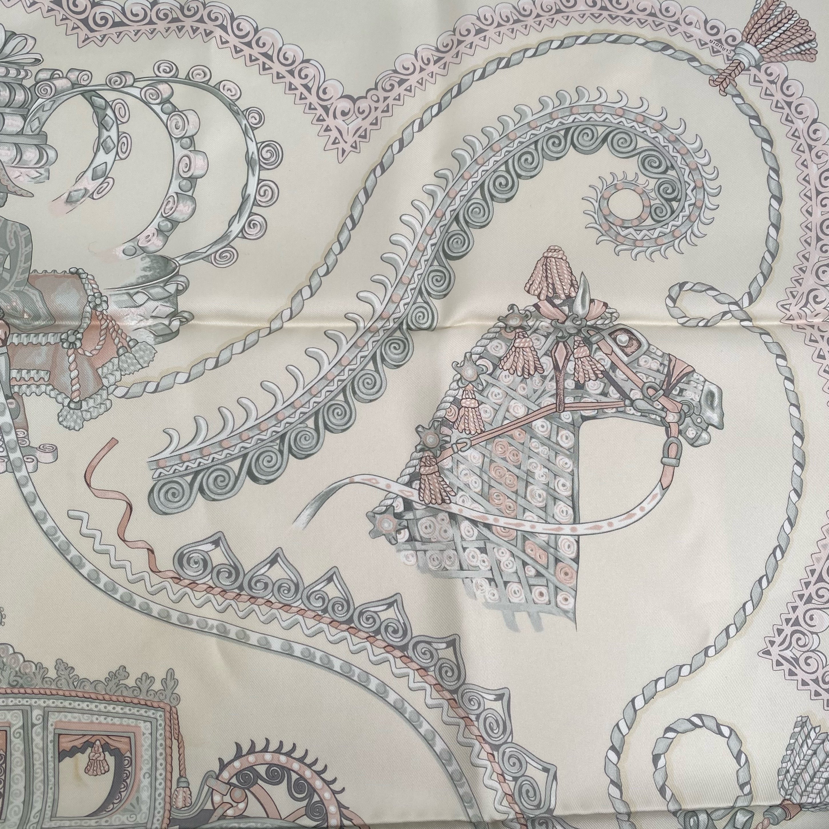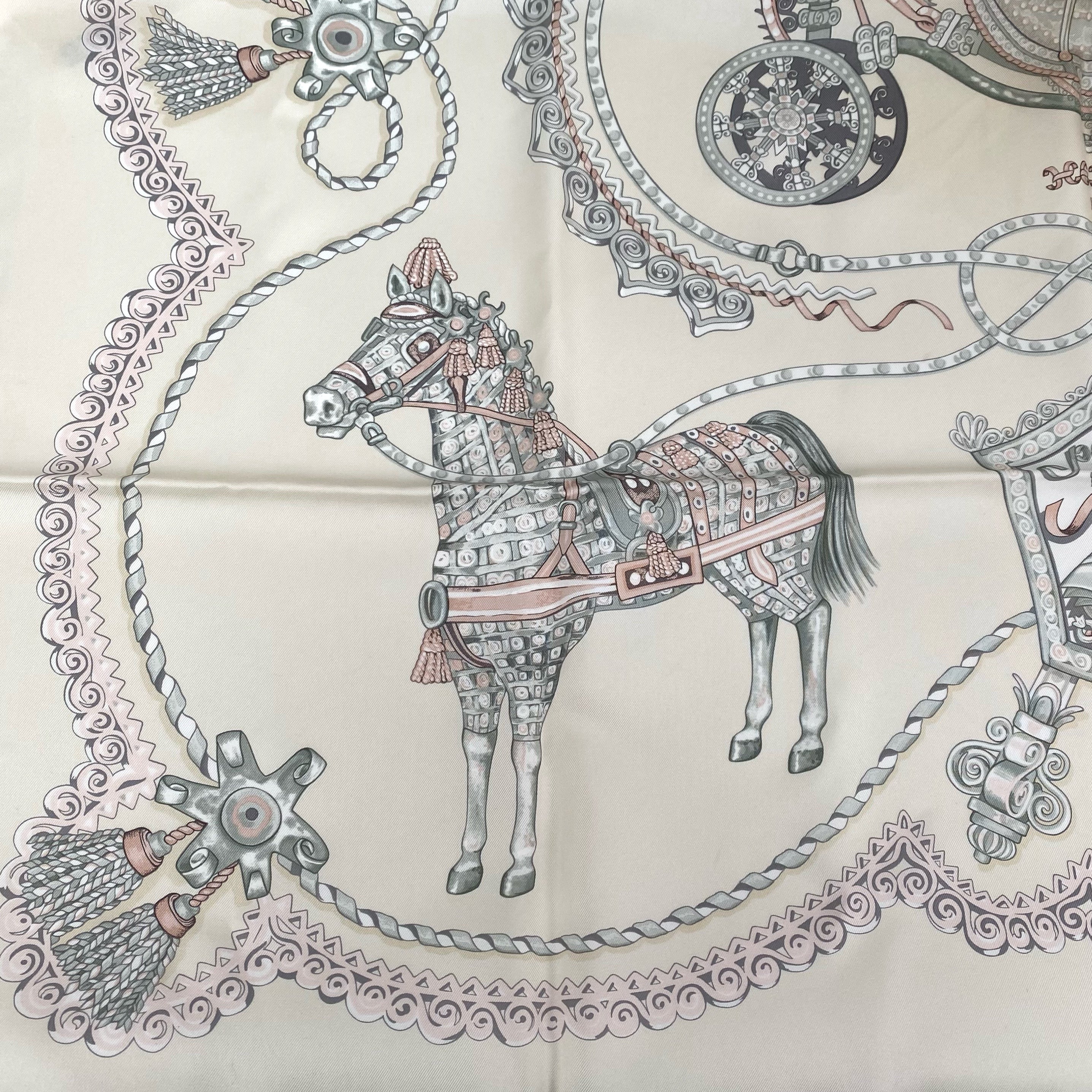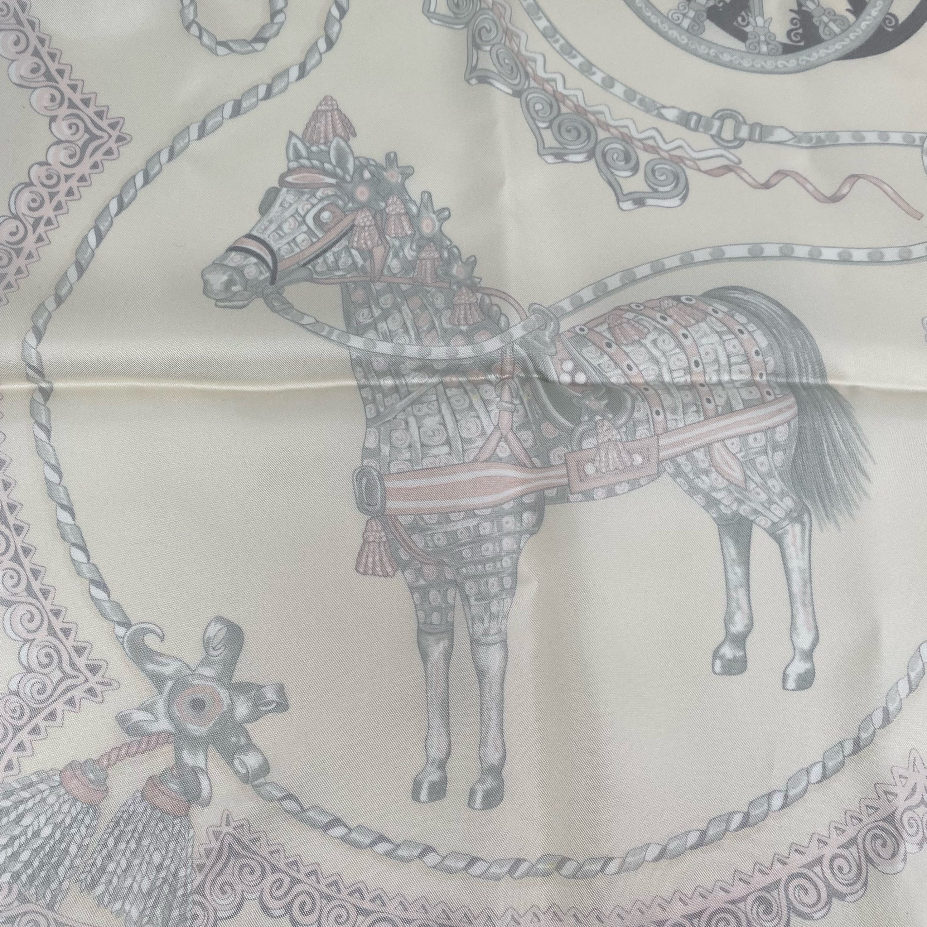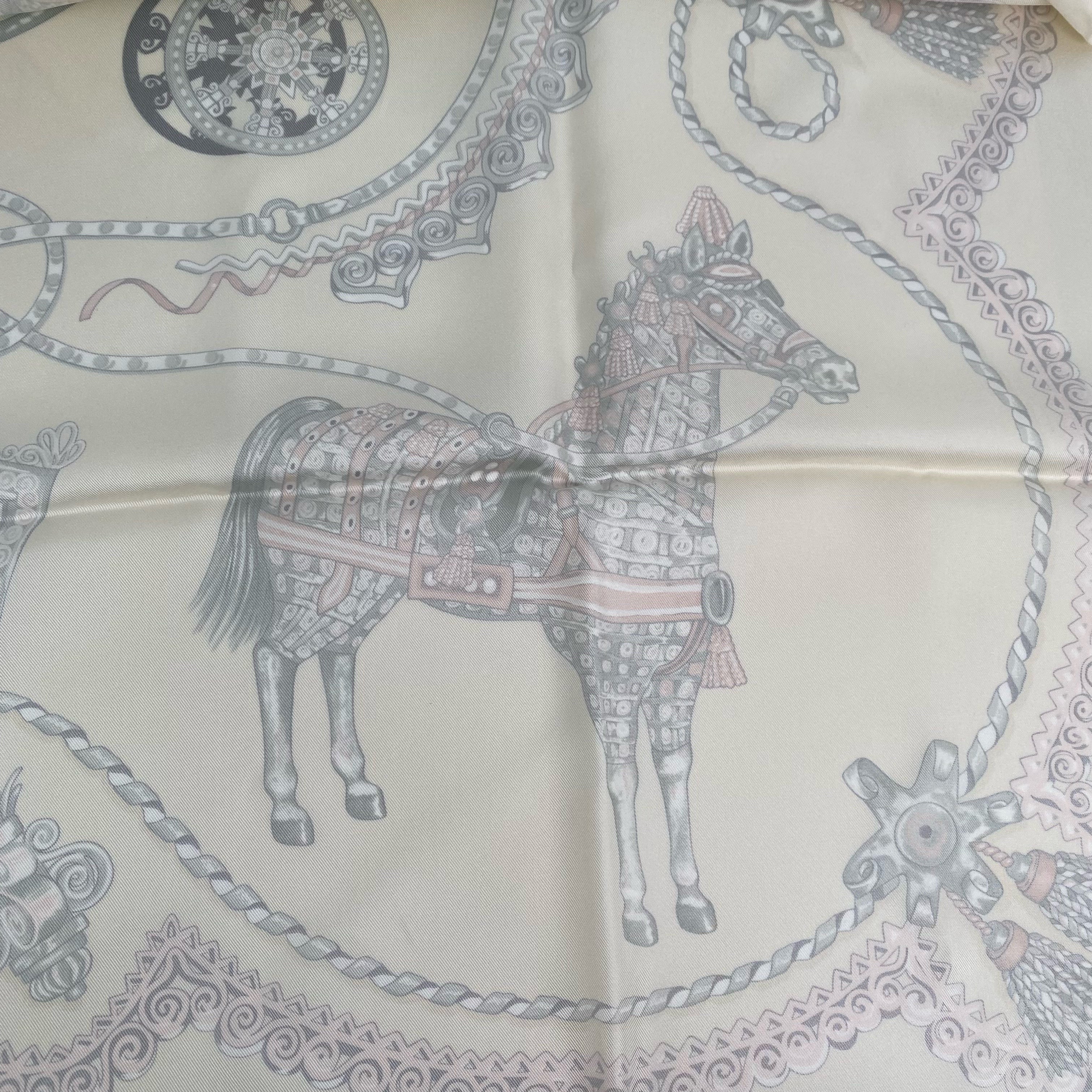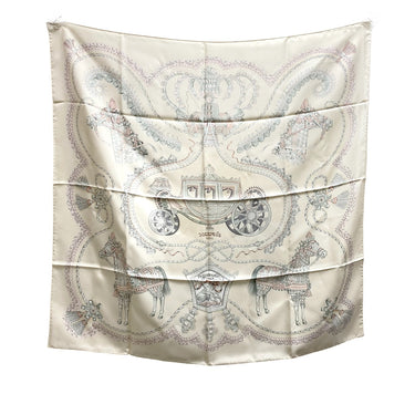 ☆ Hermes 愛馬仕 Beige 100% Silk Scarf 米白色100%絲巾- 267004292