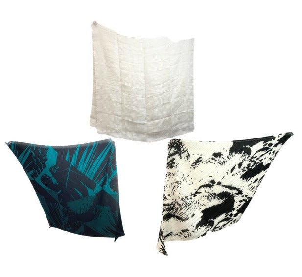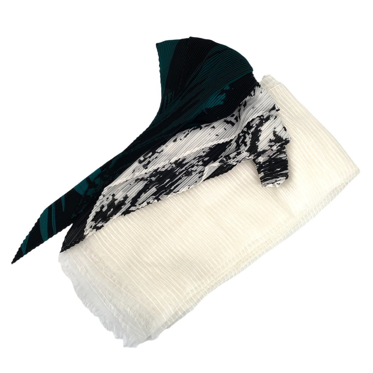 ☆ Issey Miyake 三宅一生 White, Black & White, Black & Green Black Fabric Scarf 3Pccs 白色,黑白色,黑綠色布料頸巾3條 - 267006516