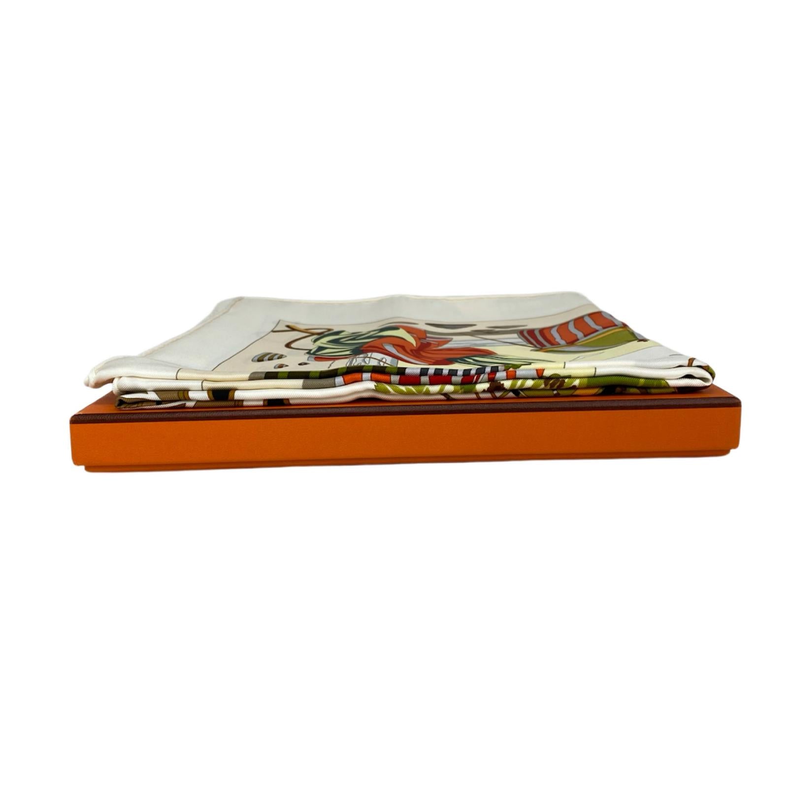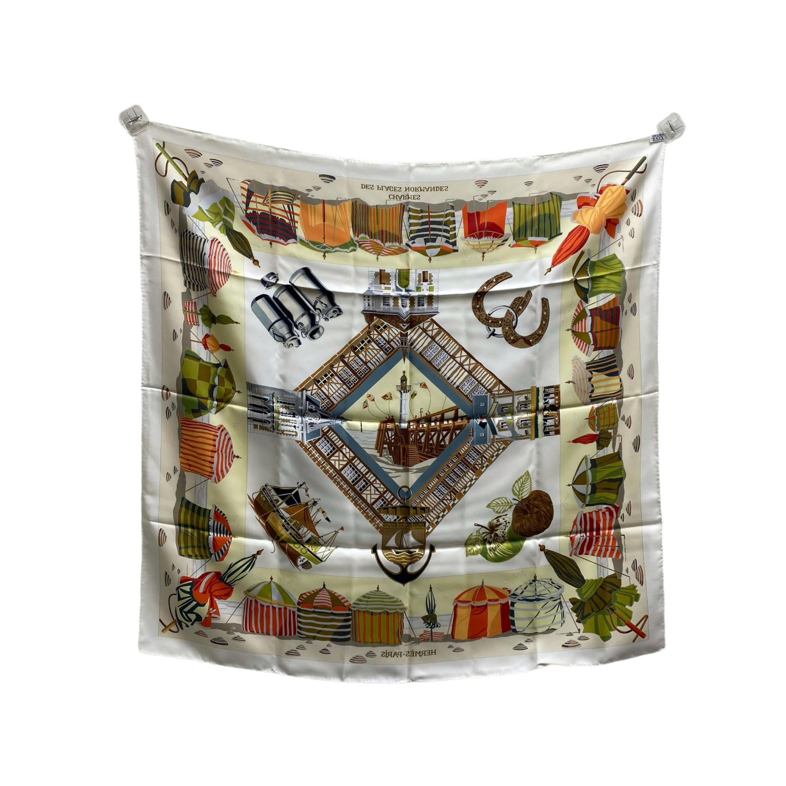 ☆ HERMES 愛馬仕 Beige 100% Silk Scarf 米色100% 絲圍巾-267008440