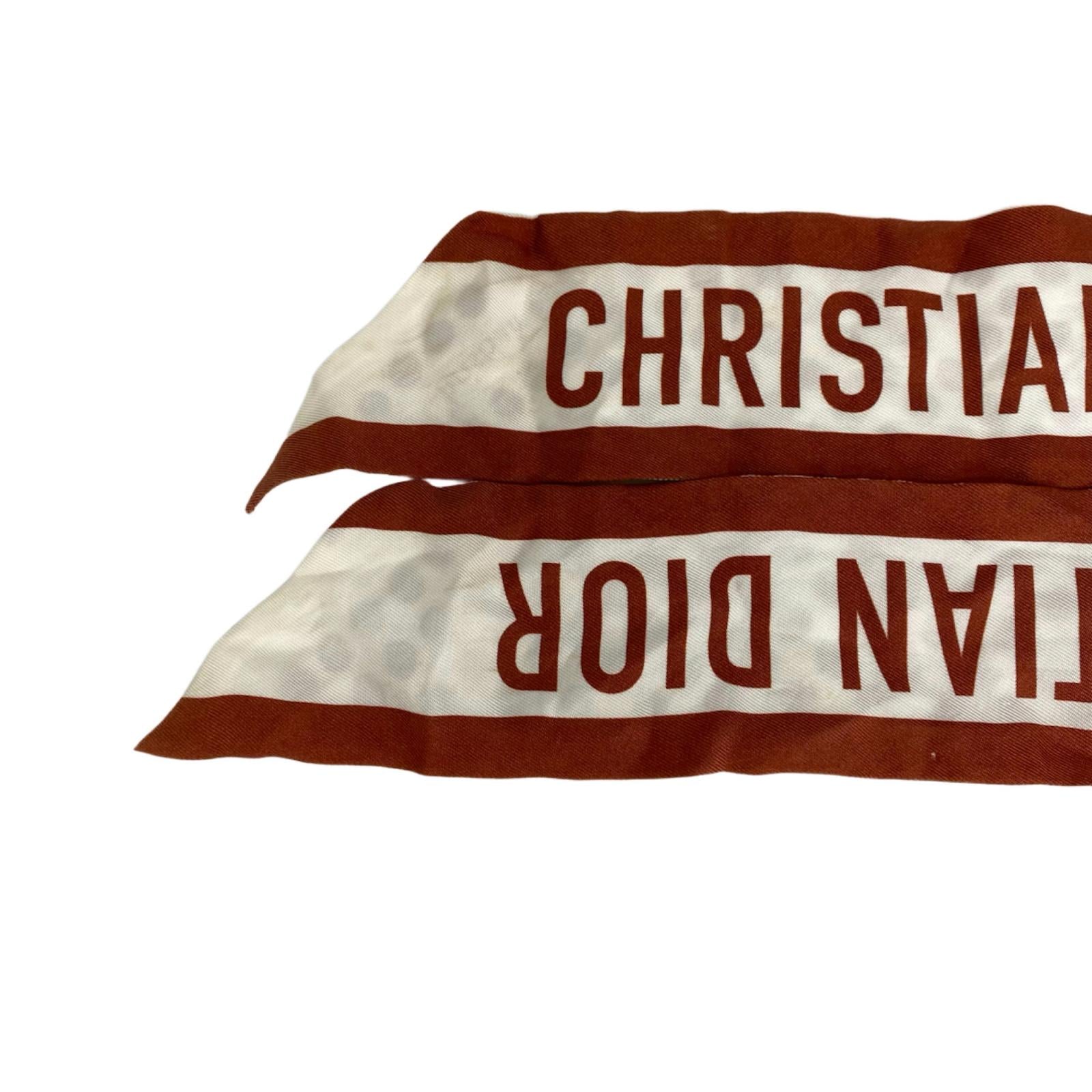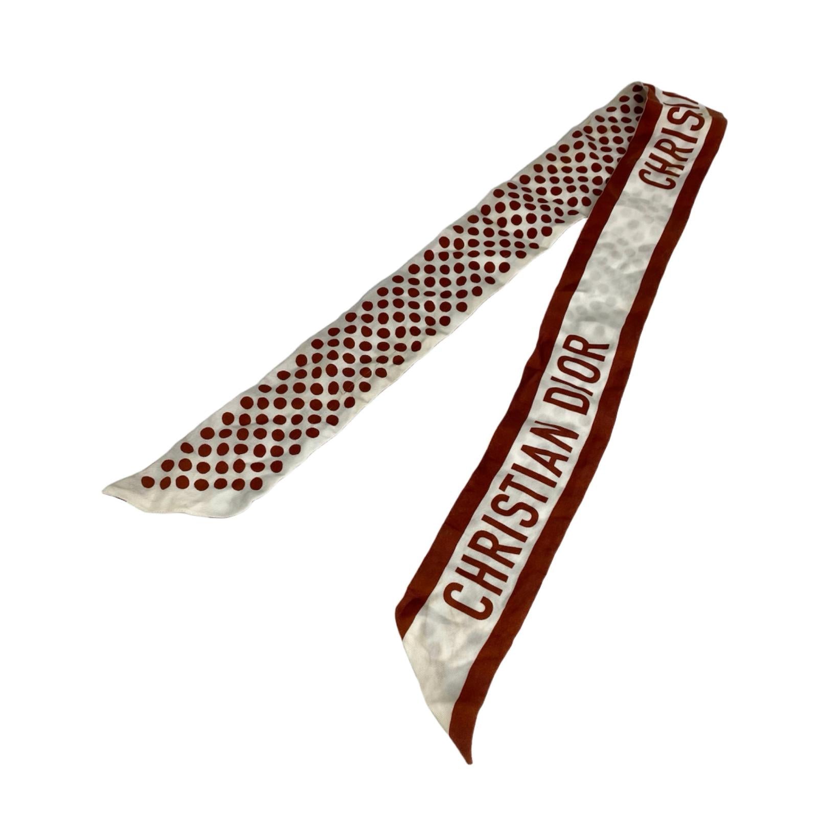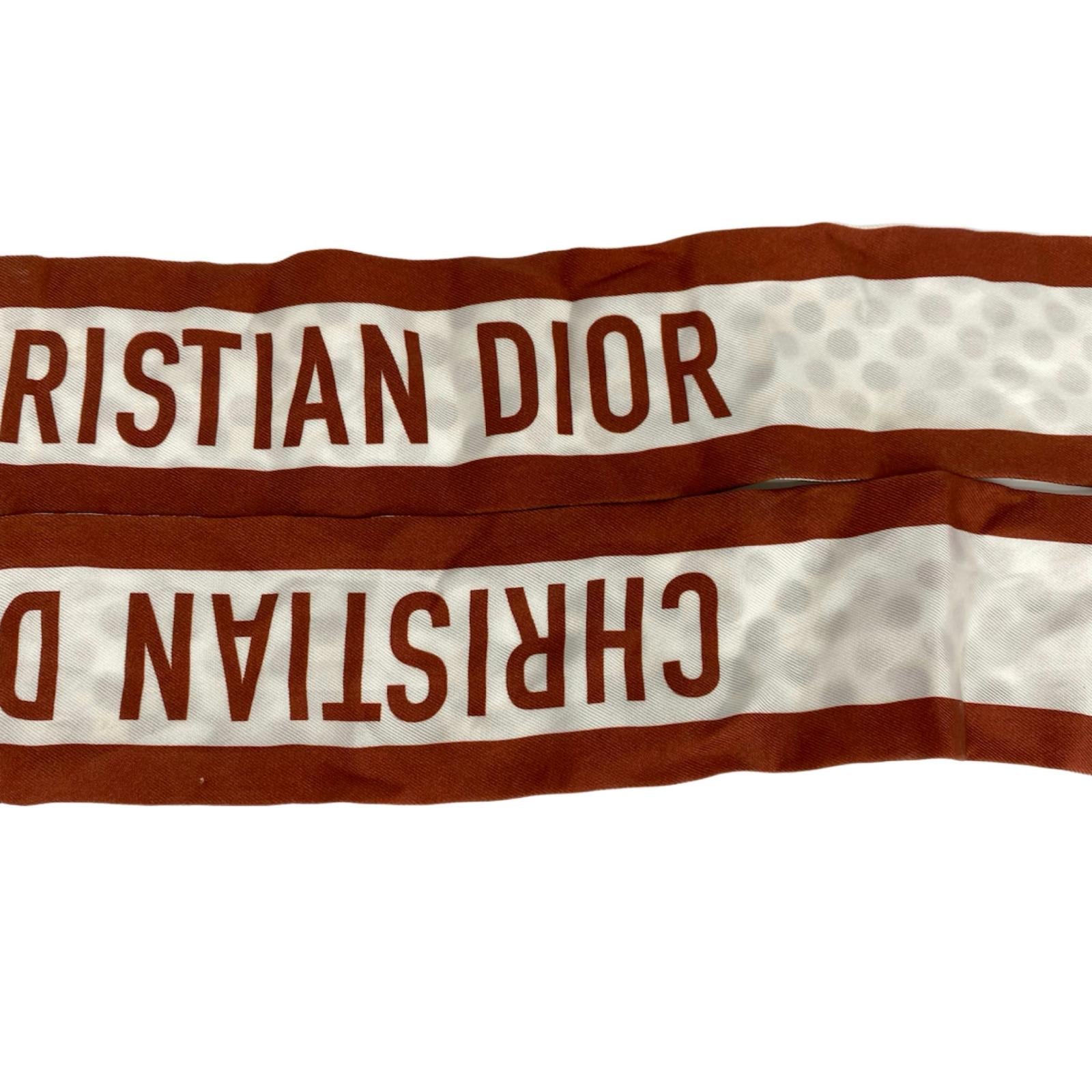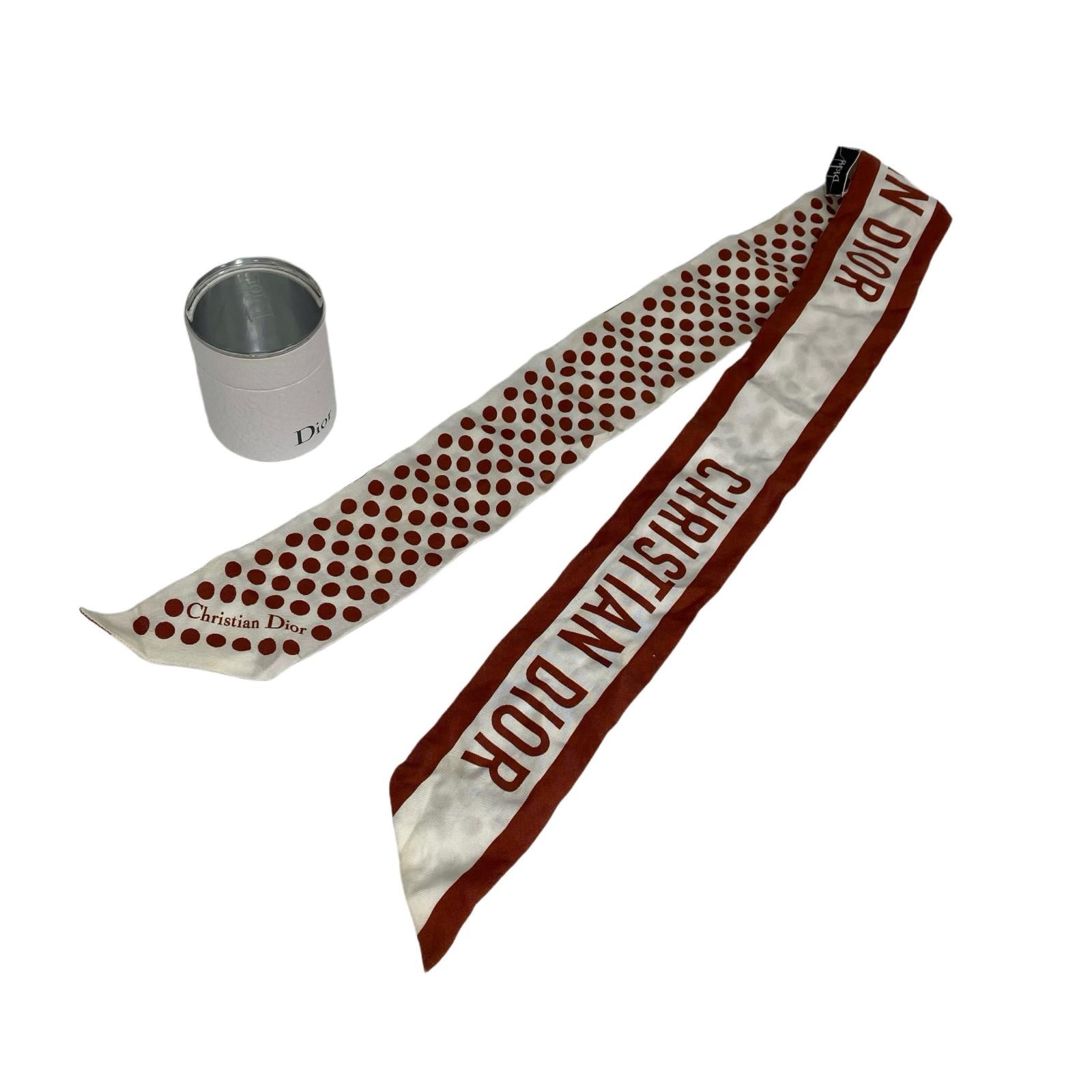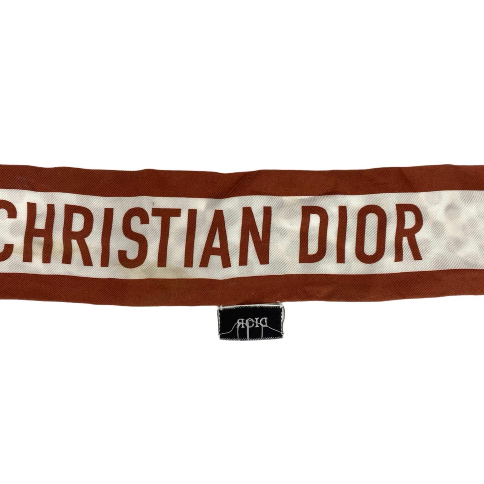 ☆ Christian Dior 迪奥 Brown, White Silk Twilly Scarf 啡色, 白色絲質斜紋圍巾-267008480