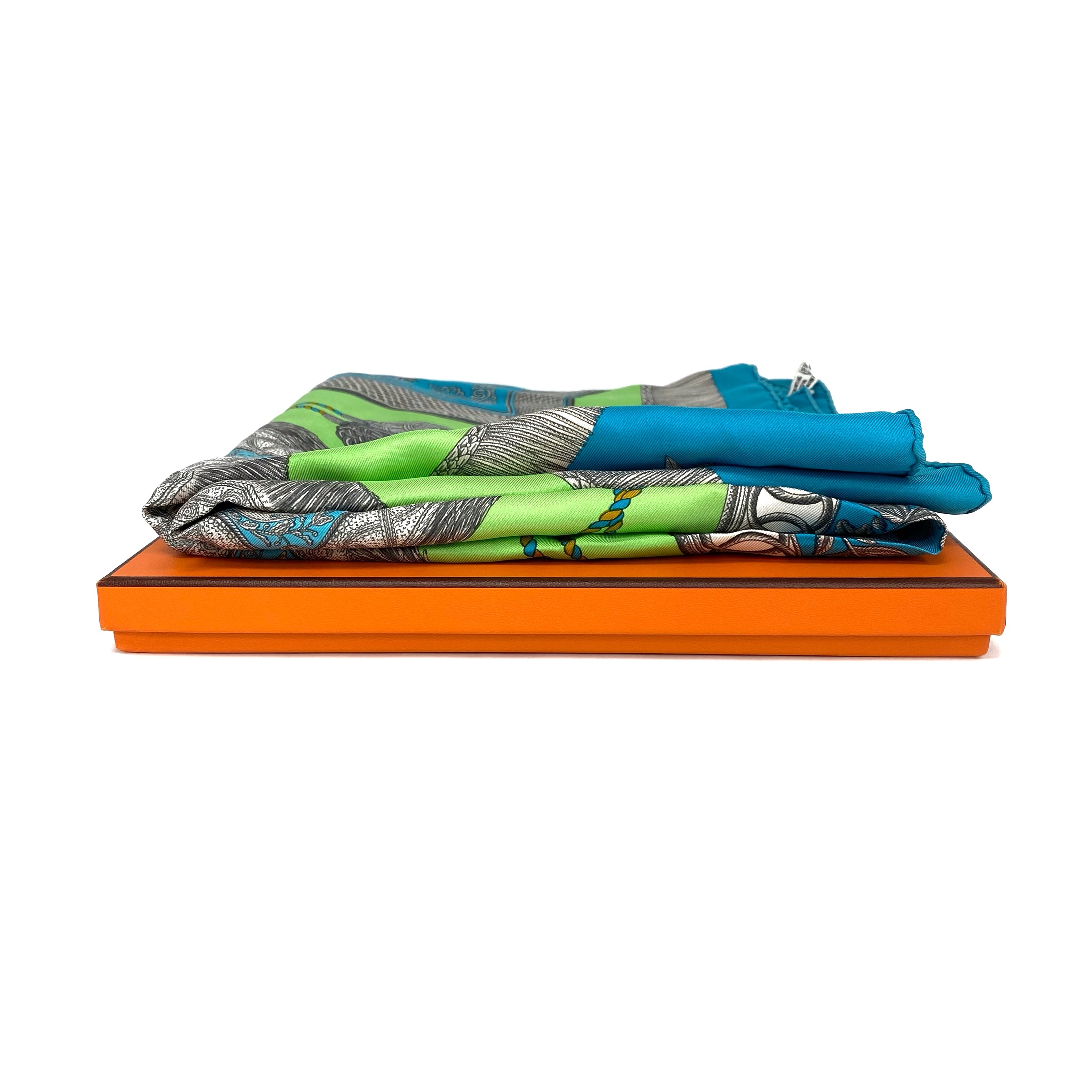 ☆ Hermes 愛馬仕 Blue, Green, Grey 100% Silk Scarf 藍色,綠色,灰色100%絲質巾 - 257028687