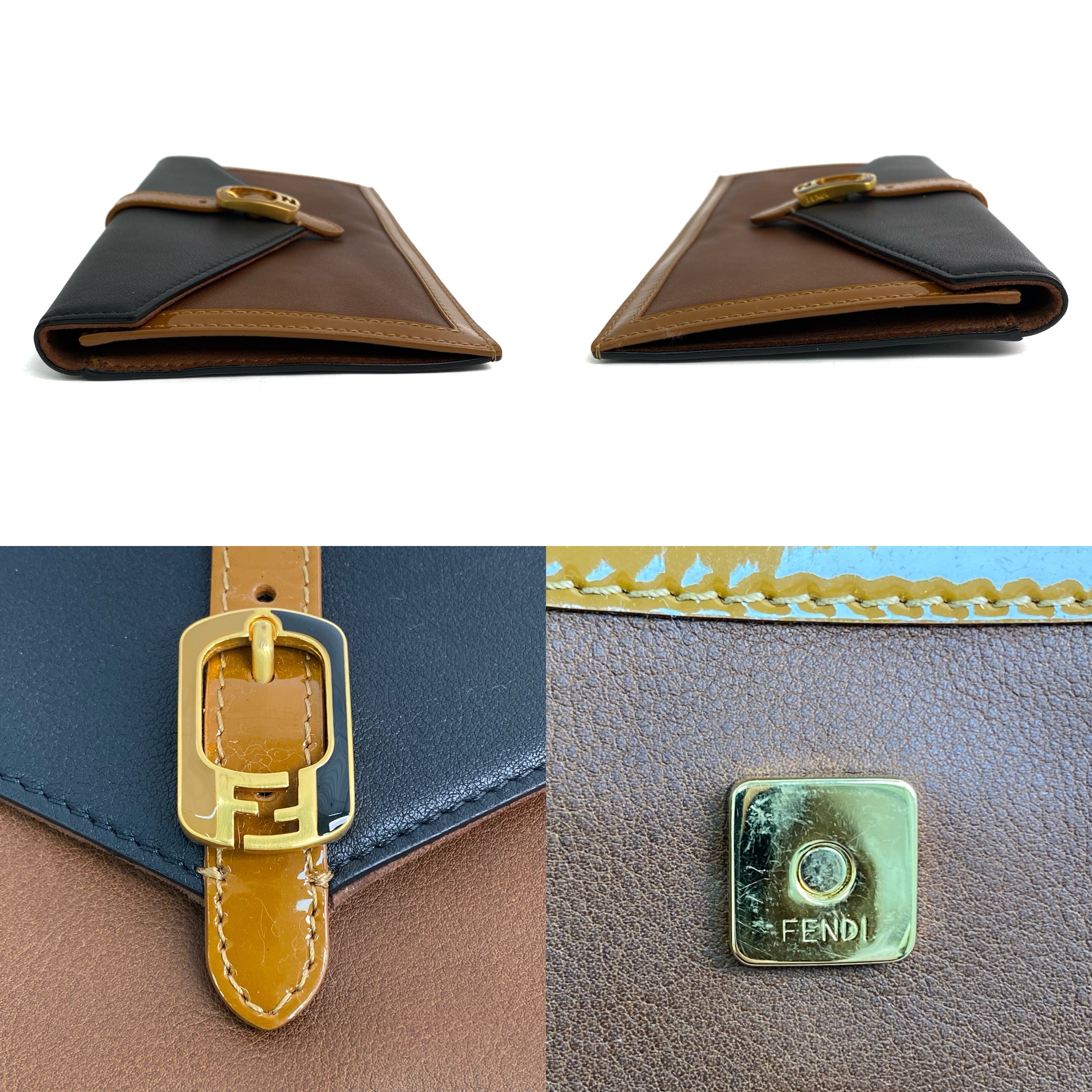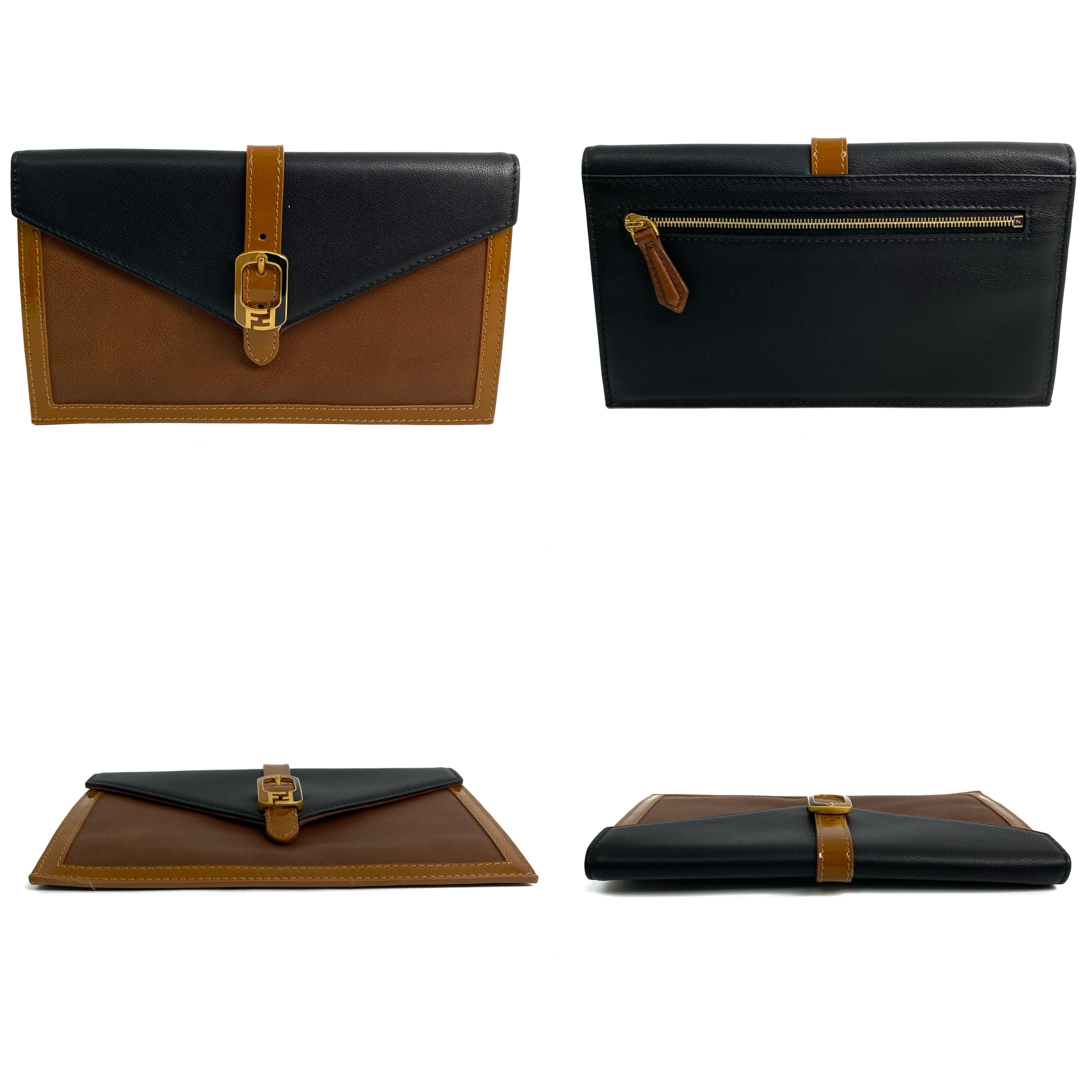 ☆Fendi芬迪 Black, Brown Calfskin, Patent Leather Clutch 黑色, 啡色小牛皮, 漆皮手拿袋 -257022034