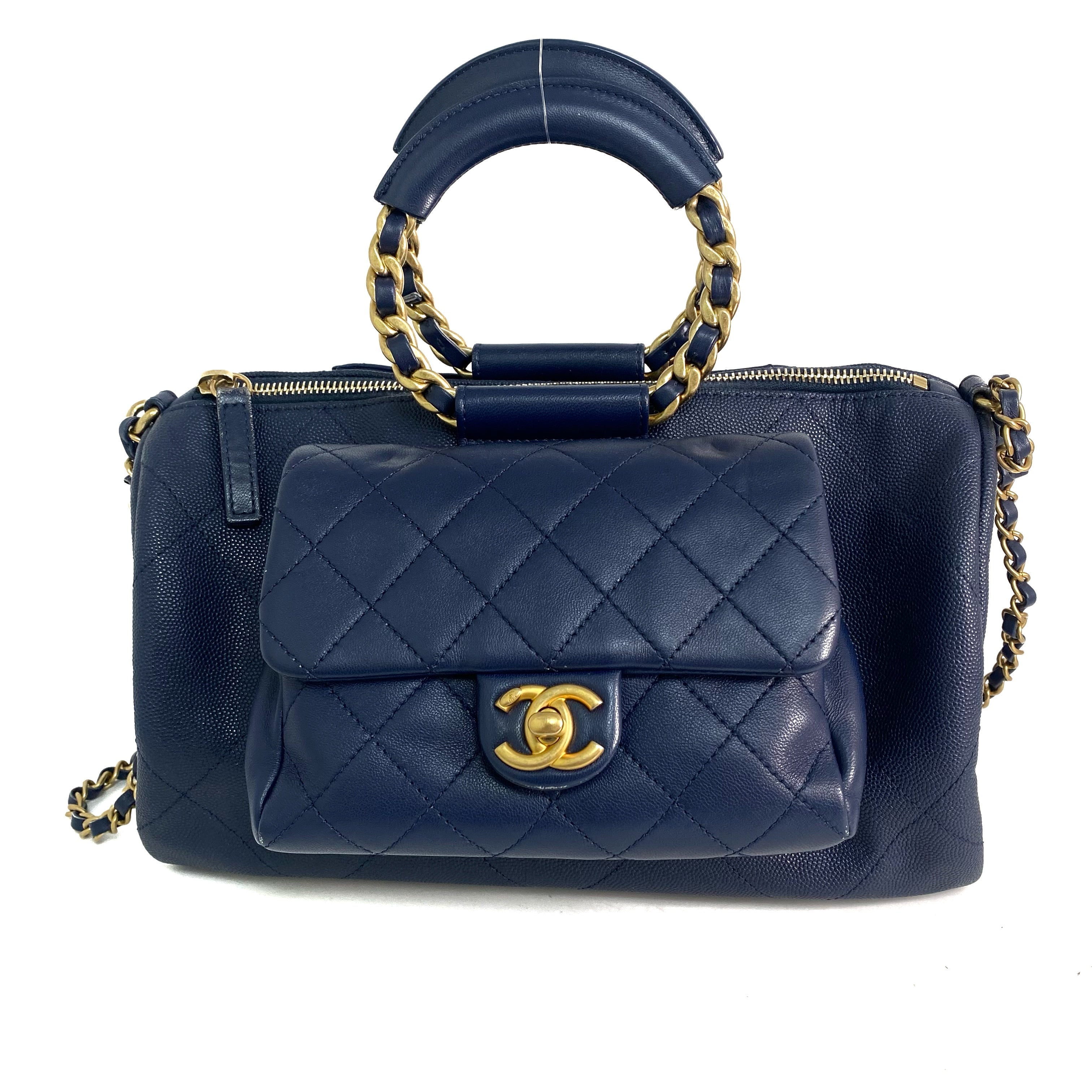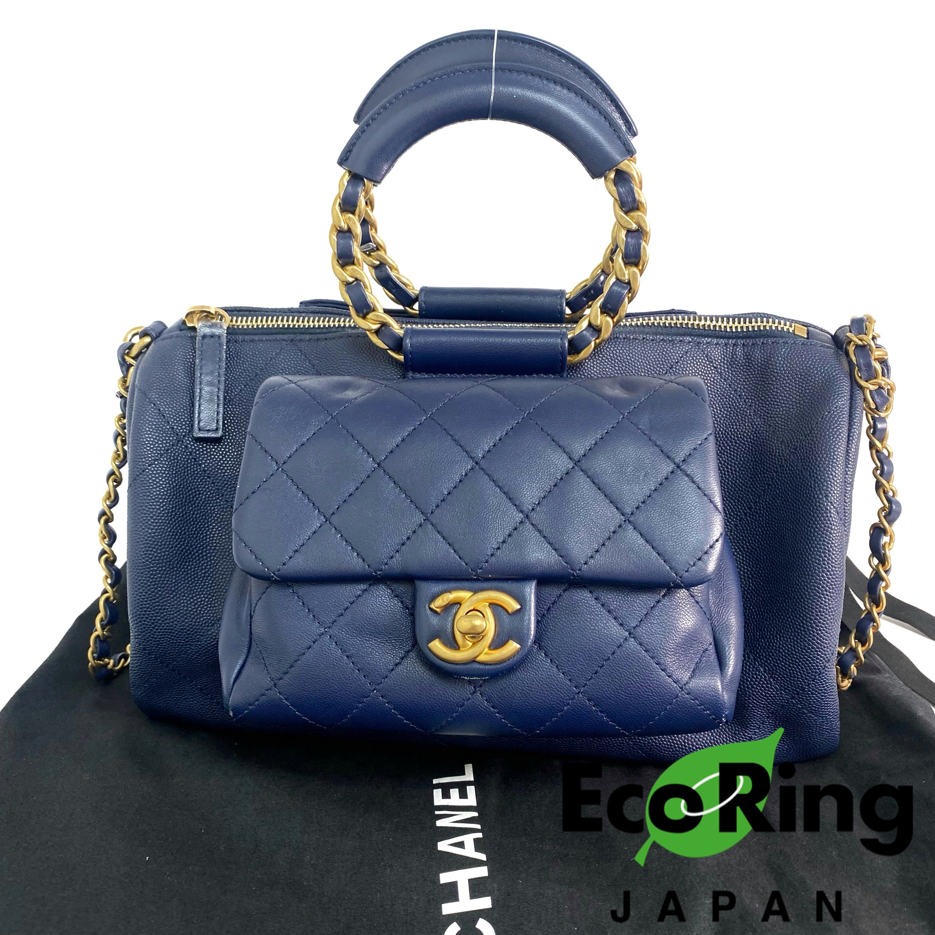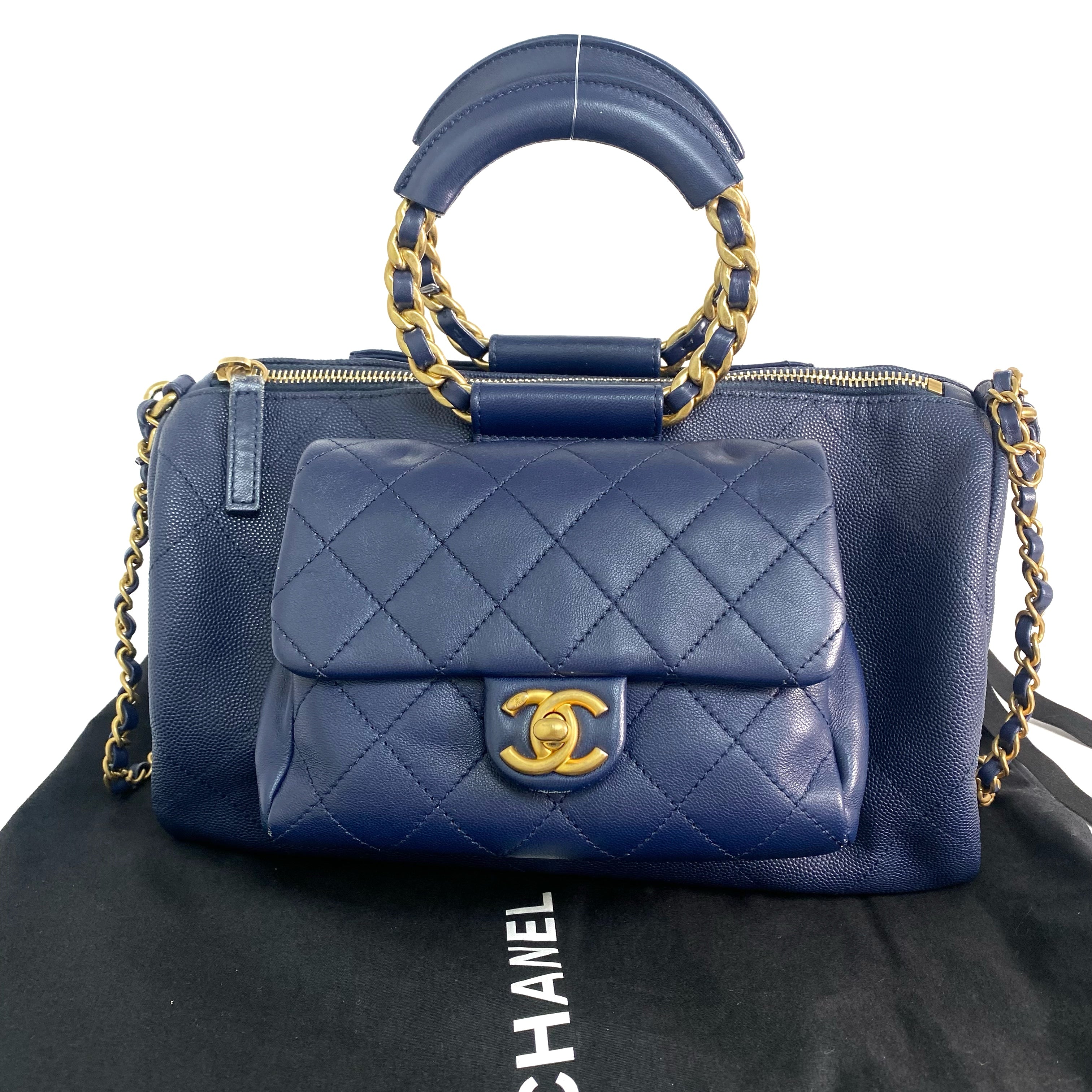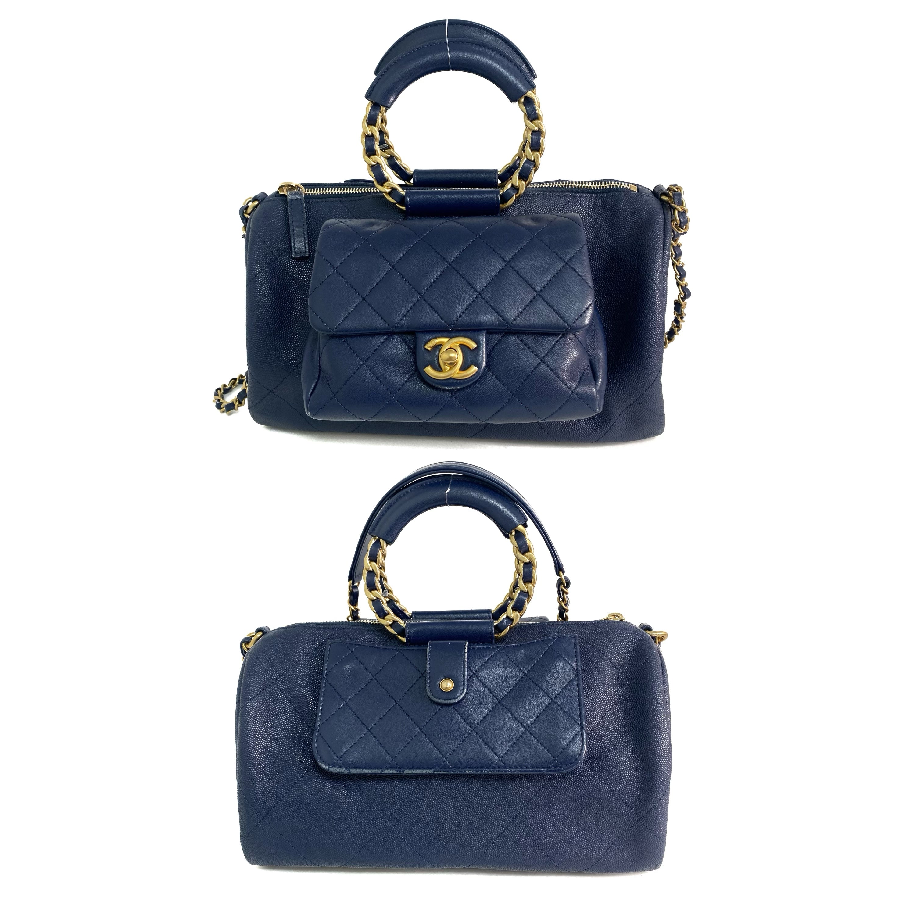 △ Chanel 香奈兒 Navy Caviar Skin Gold Tone Metal Chain 2 Way Bag AS1359 No.29 深藍色粒紋小牛皮金色金屬鎖鏈兩用袋No.29 - 257023023