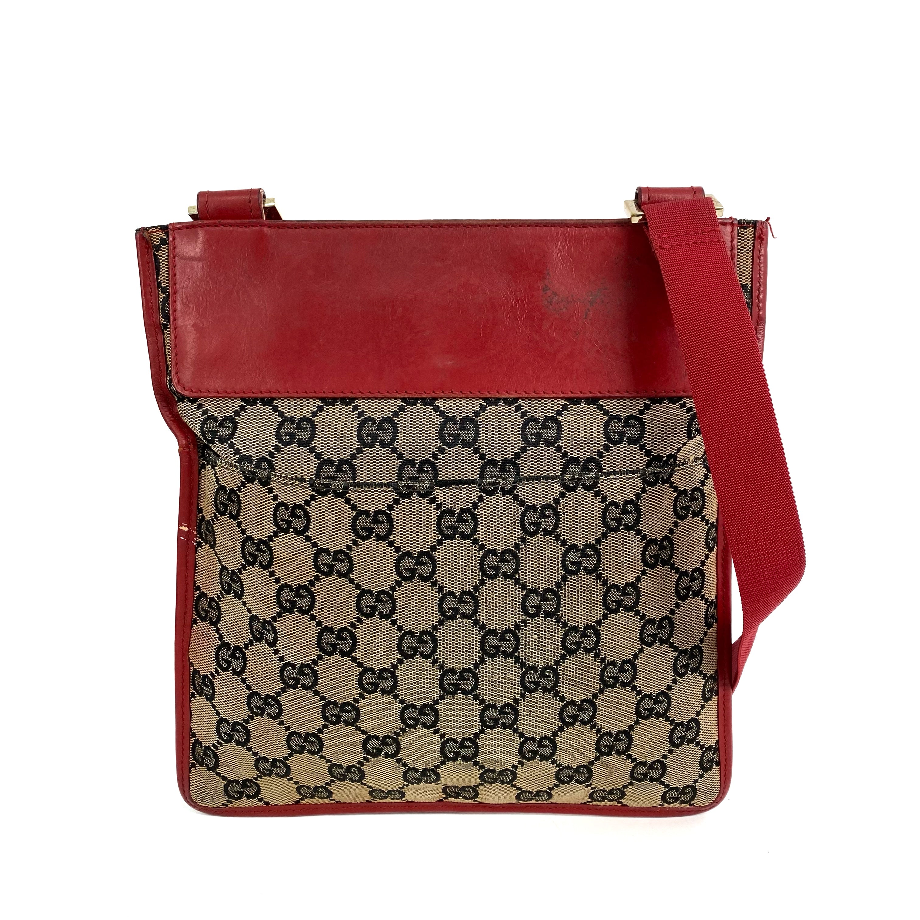 ☆ Gucci 古馳 Beige Red Canvas GG Monogram Shoulder Bag 019.0343淺褐色紅色帆布GG經典花紋肩背袋 - 257027999