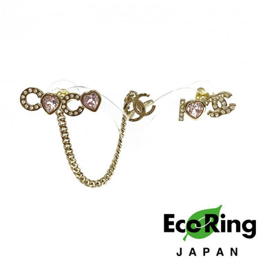 ☆ Chanel 香奈兒 Pink Gold Tone Metal Rhinestone Coco & Logo Earrings B22B 粉紅色金色金屬水鑽Coco及標誌耳環 B22B - 257019955