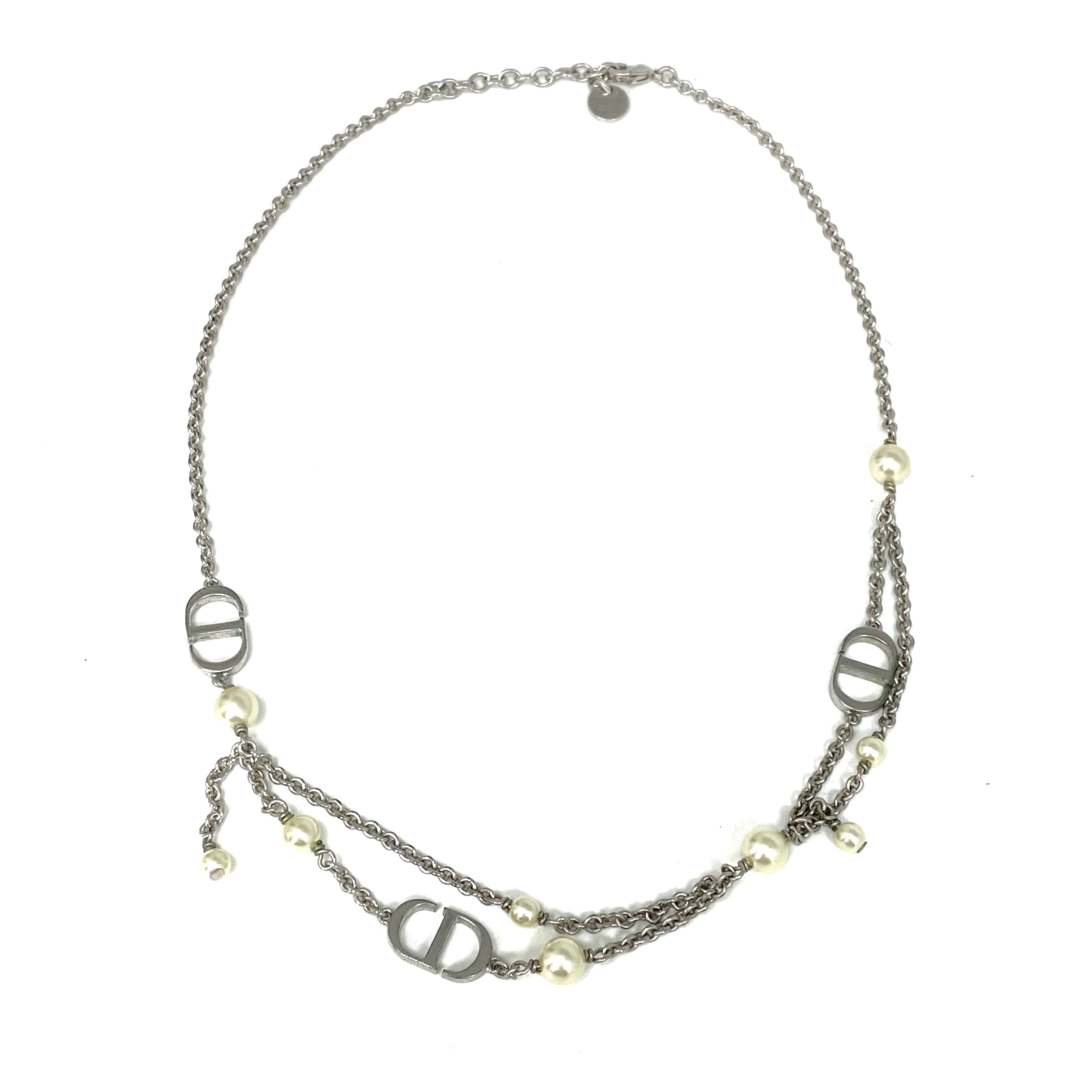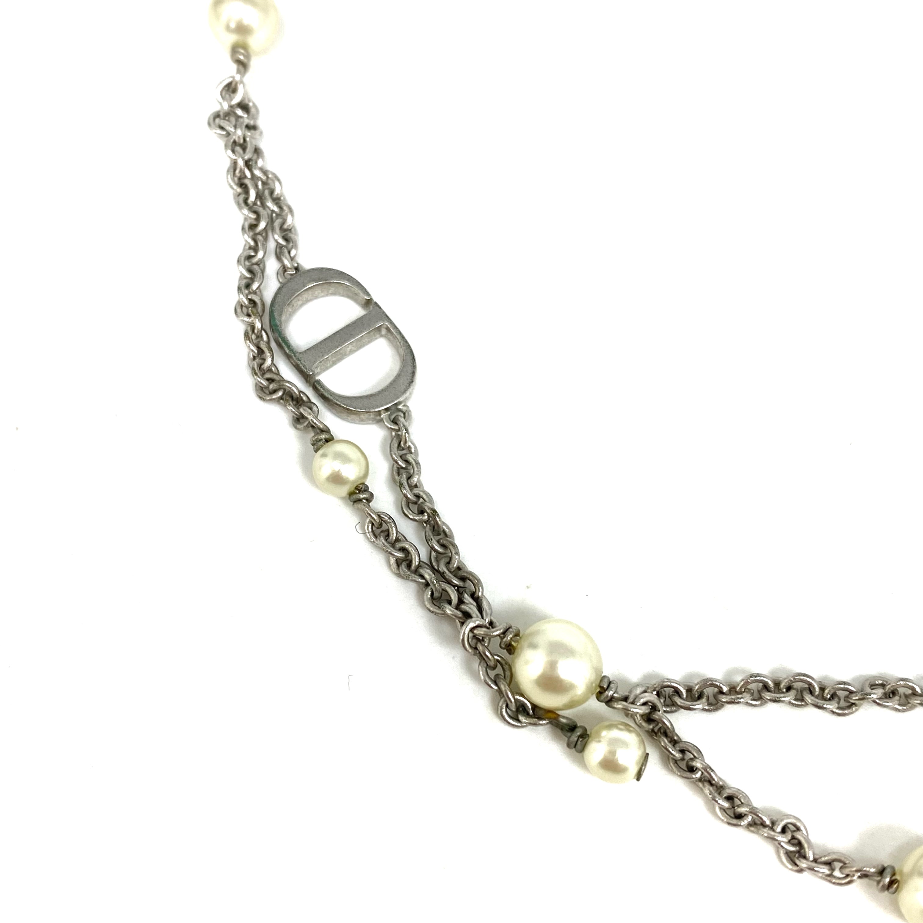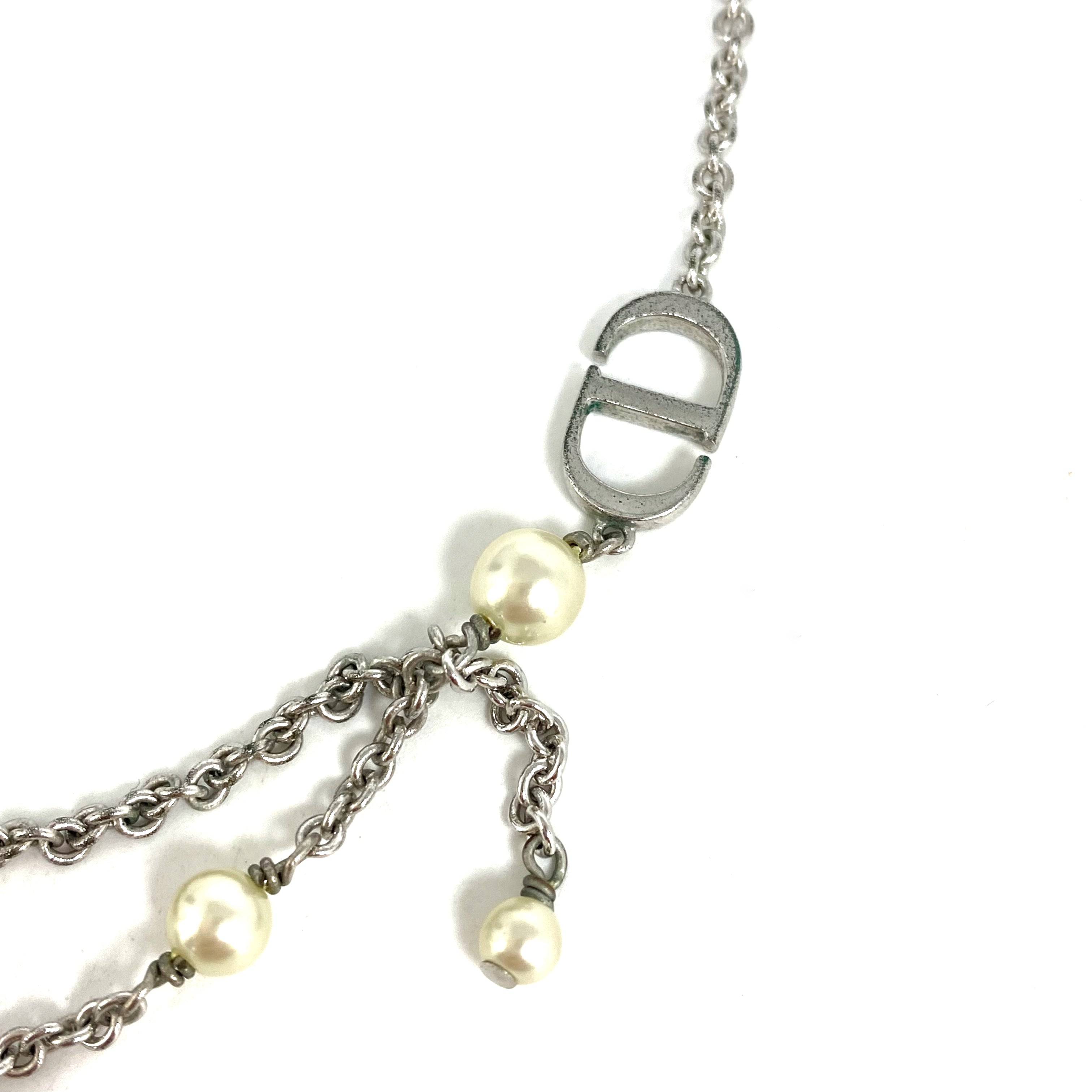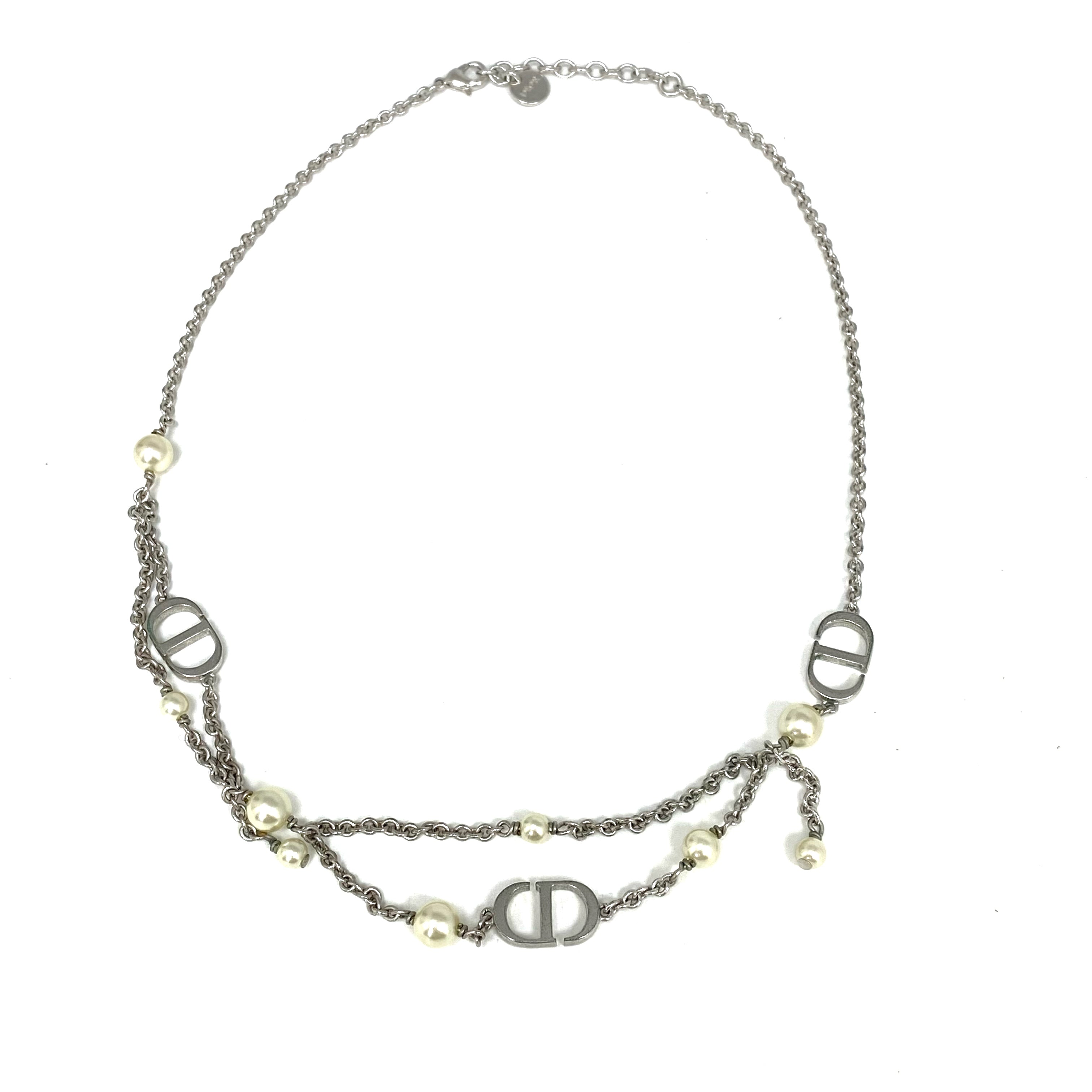 ☆ Christian Dior 迪奧 Silver Tone Metal Faux Pearl Necklace 銀色金屬仿珍珠頸鏈 - 257026963