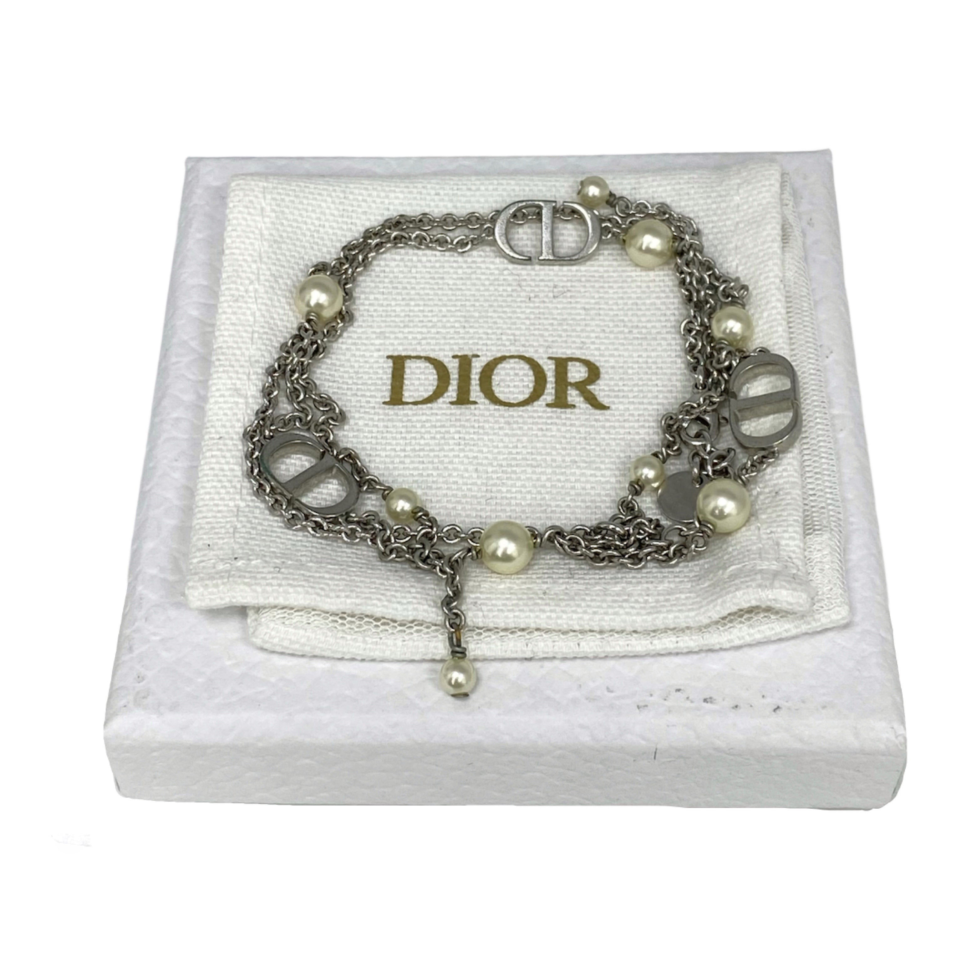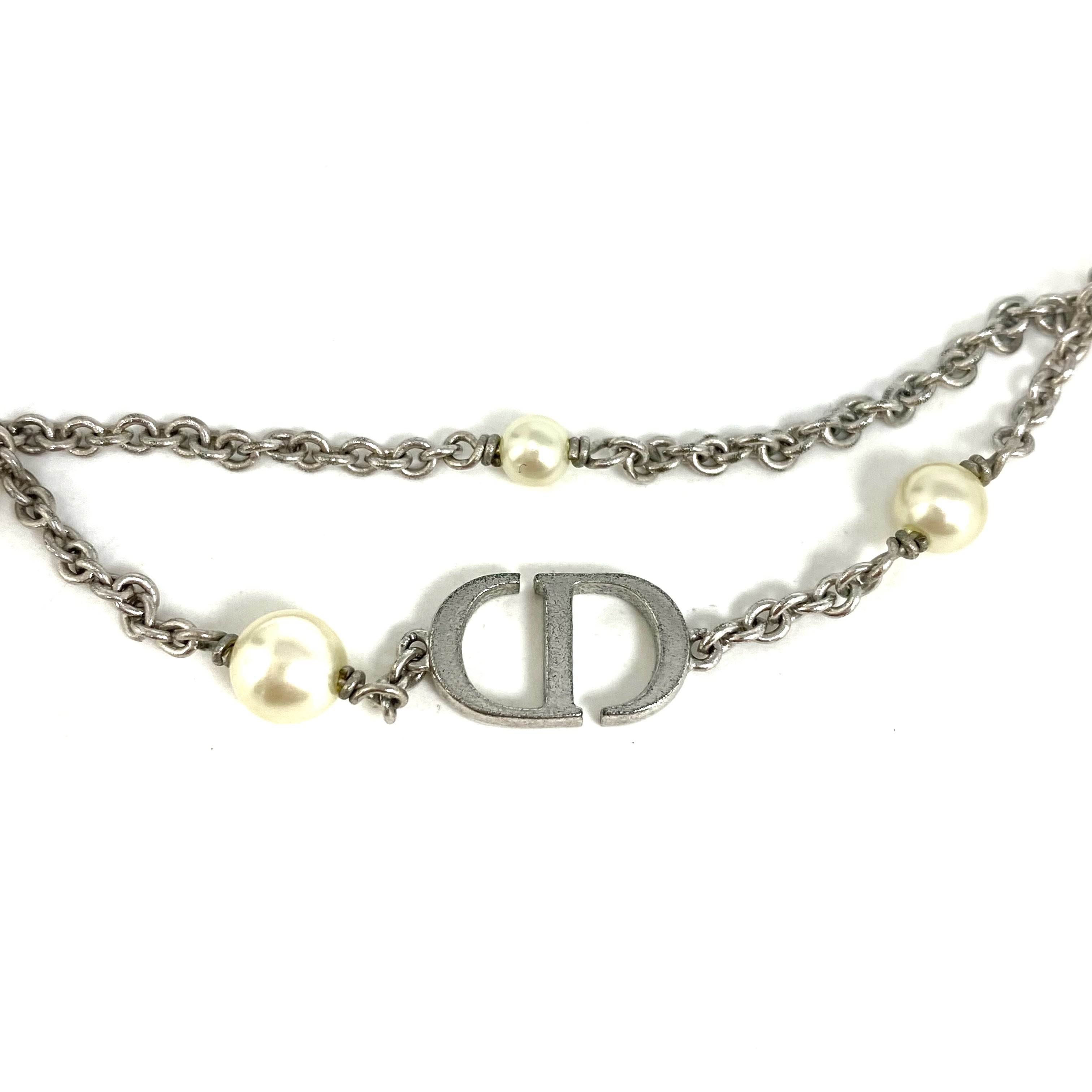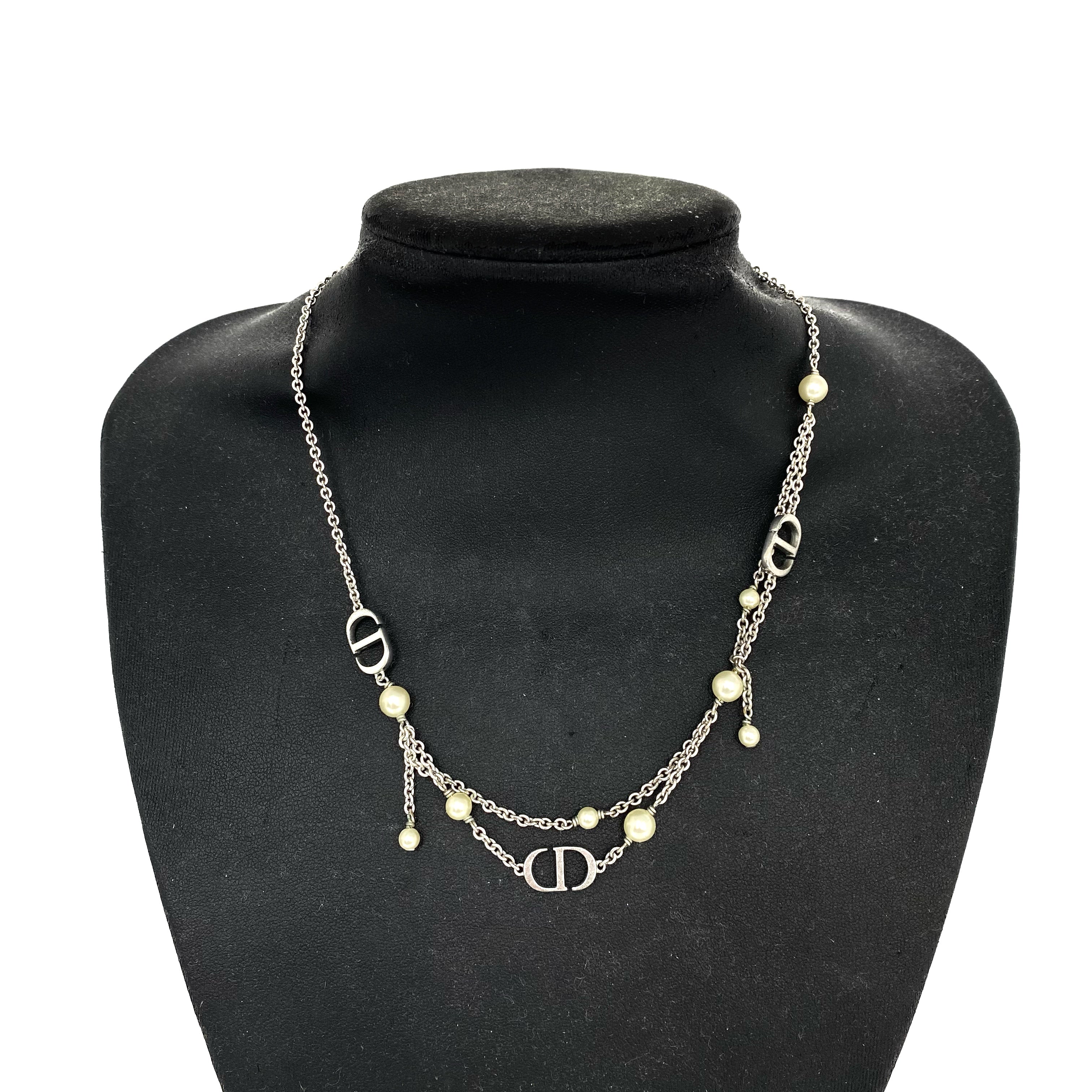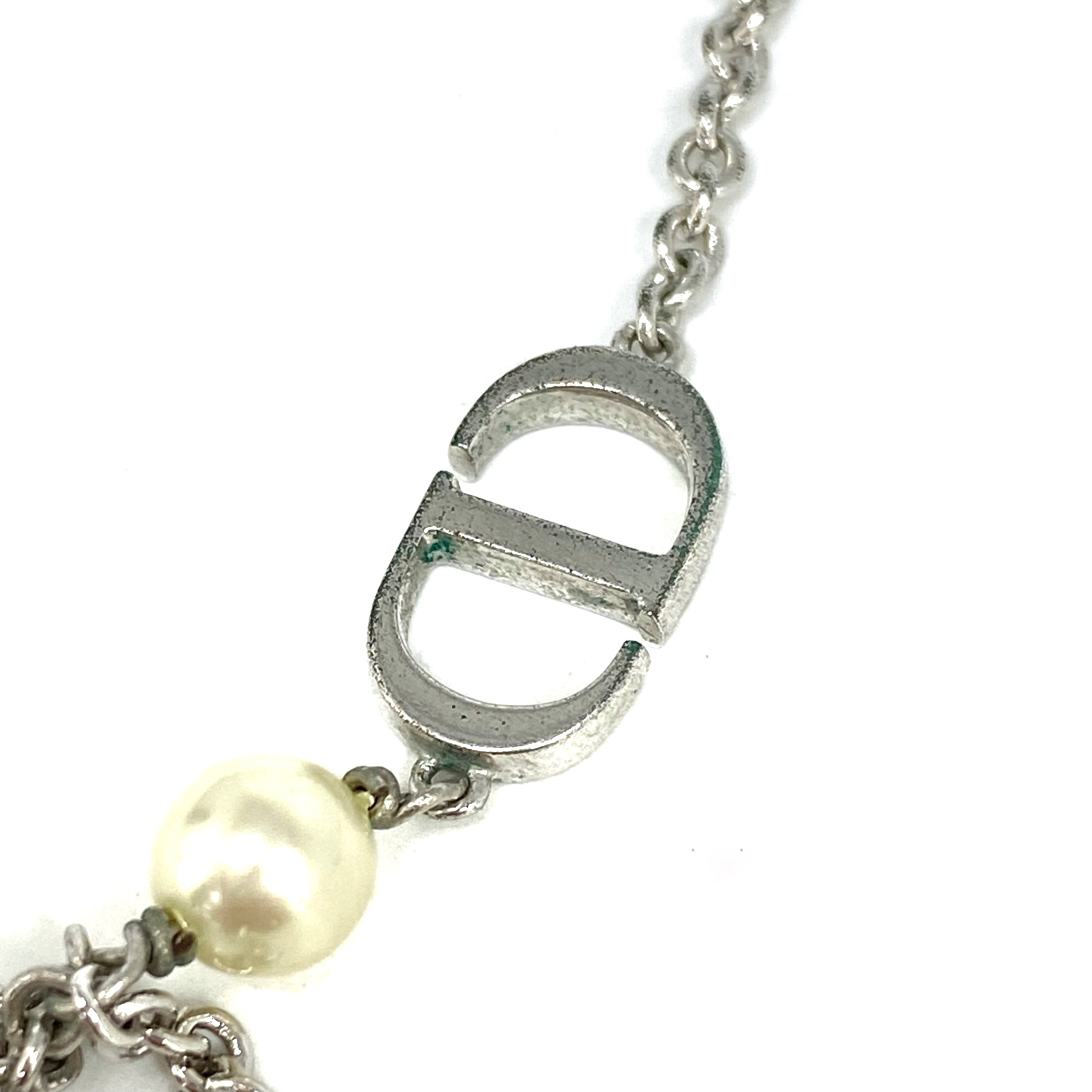 ☆ Christian Dior 迪奧 Silver Tone Metal Faux Pearl Necklace 銀色金屬仿珍珠頸鏈 - 257026963