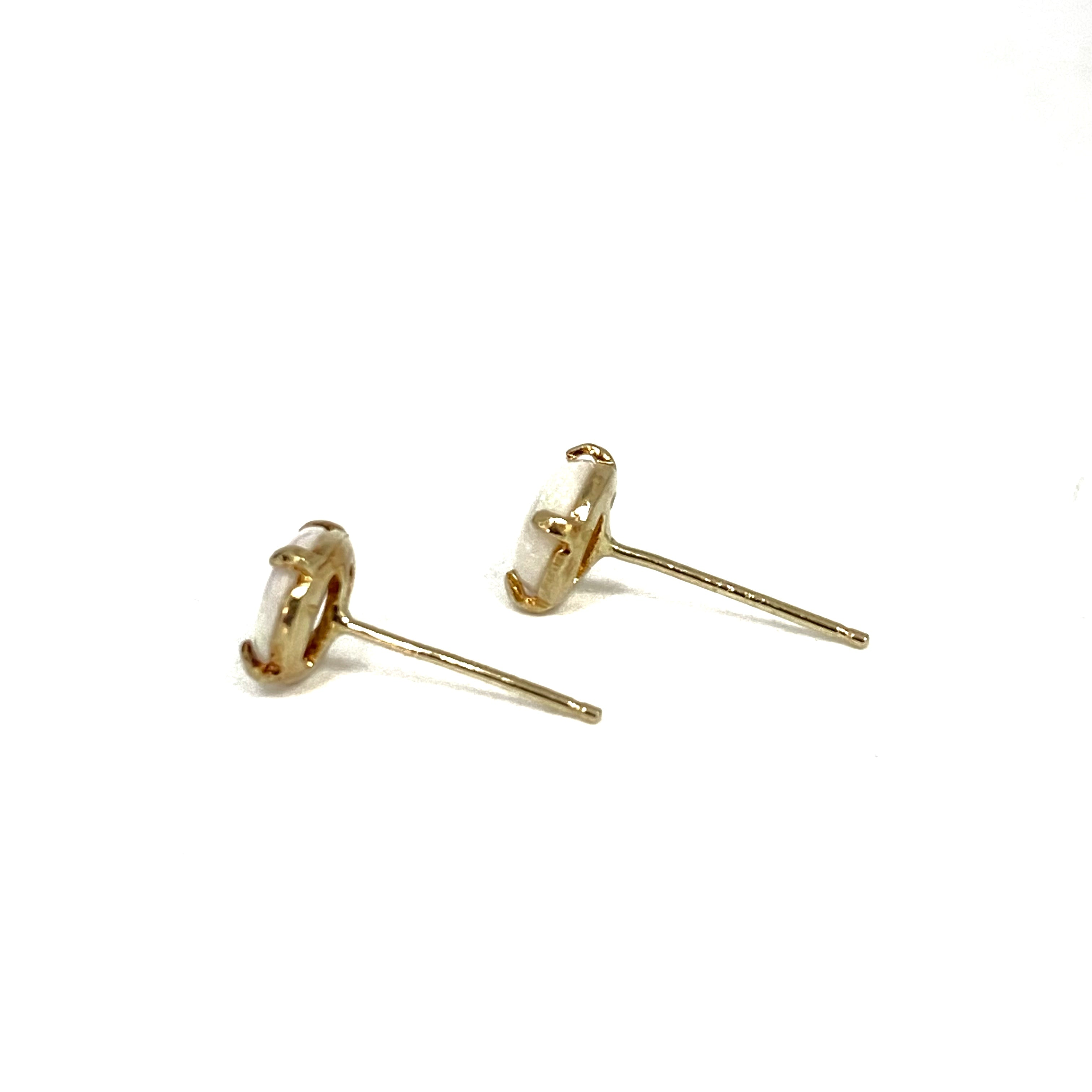 ☆14K Yellow Gold White Color Stone Earrings 0.8g 14K黃金白色色石耳環0.8克 -257025564