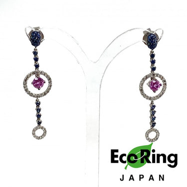 18K白金粉紅色藍寶石鑽石耳環 4.93g