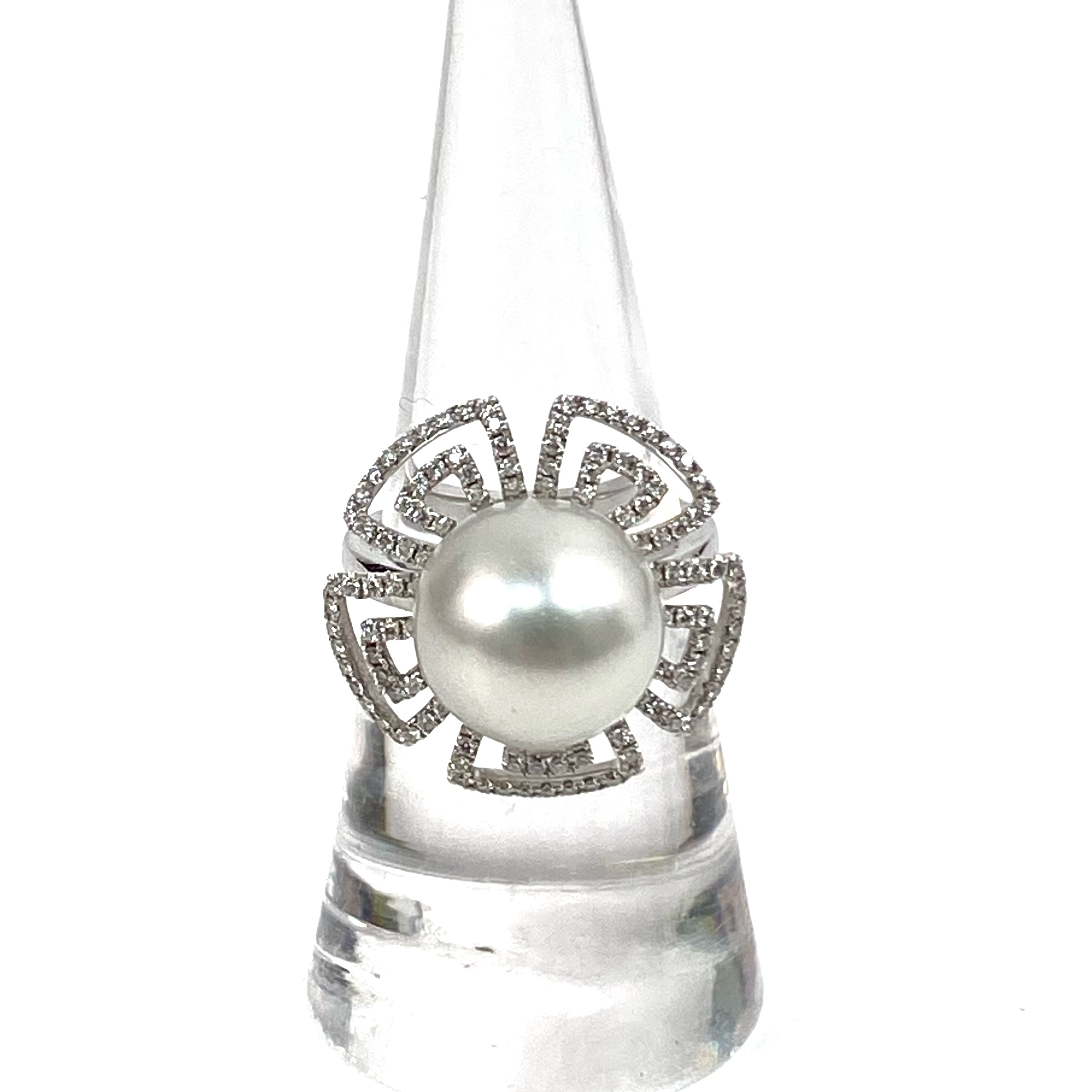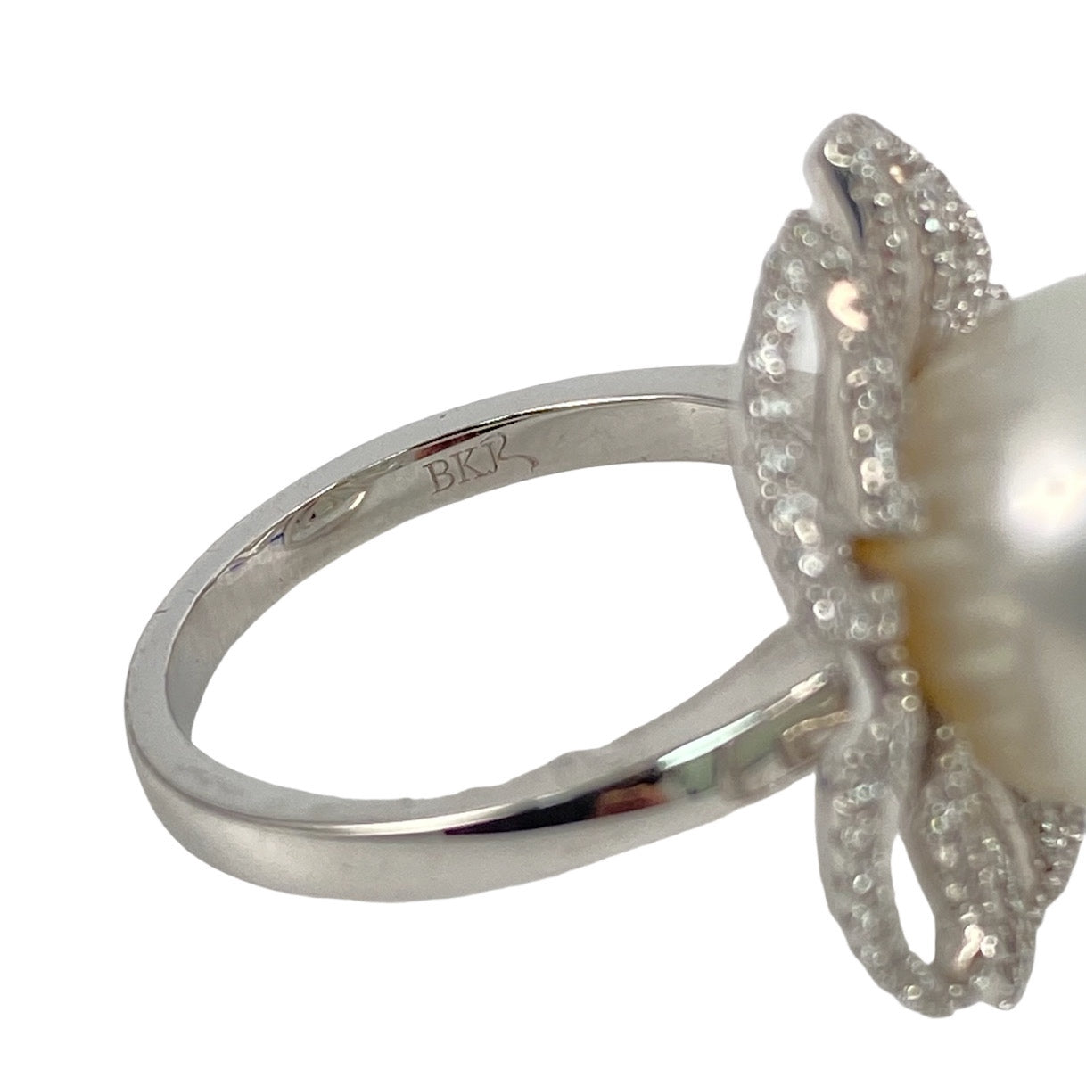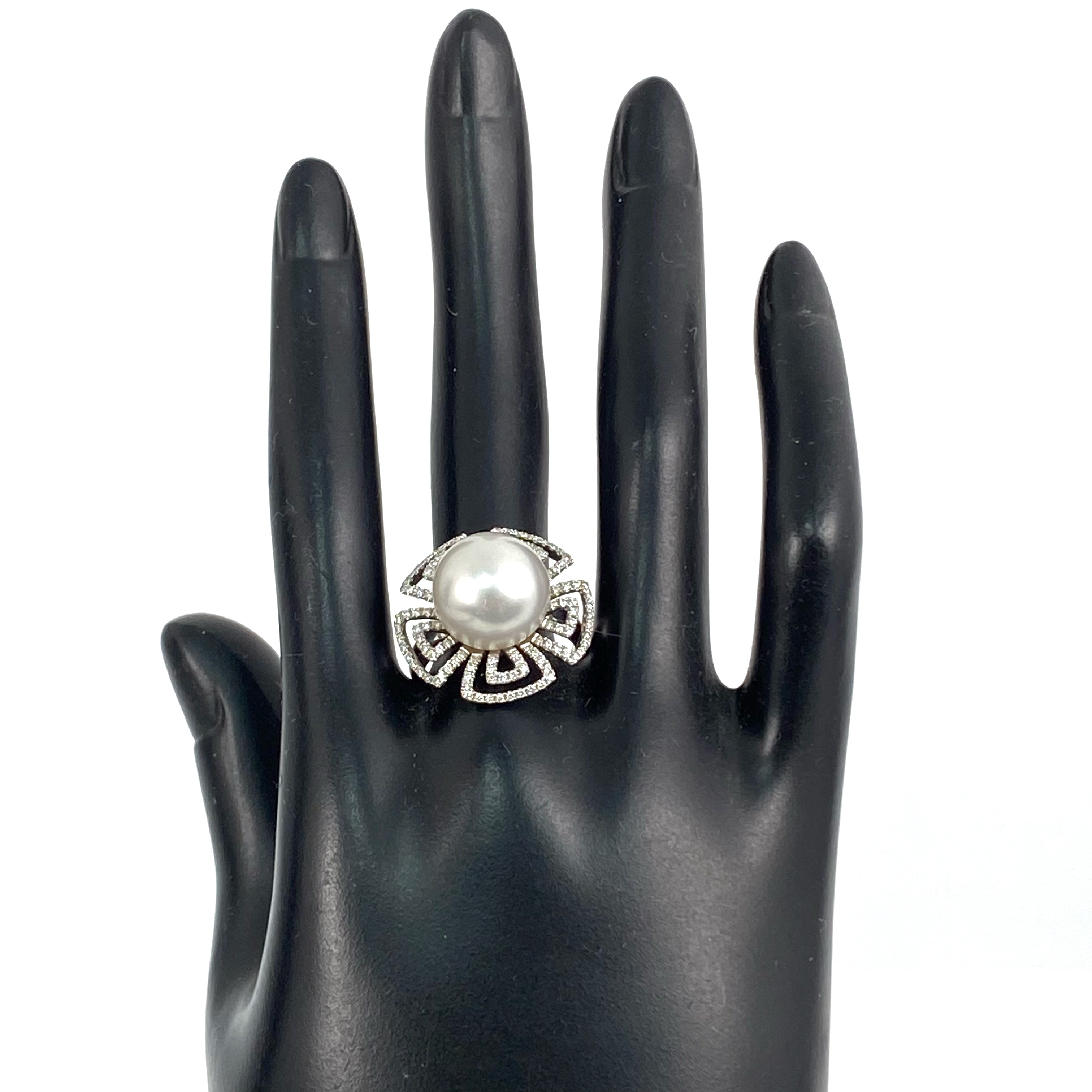 △ 18K White Gold Diamond Pearl Flower Ring 9.01g 18K白金鑽石珍珠花形戒指 9.01g - 257028676