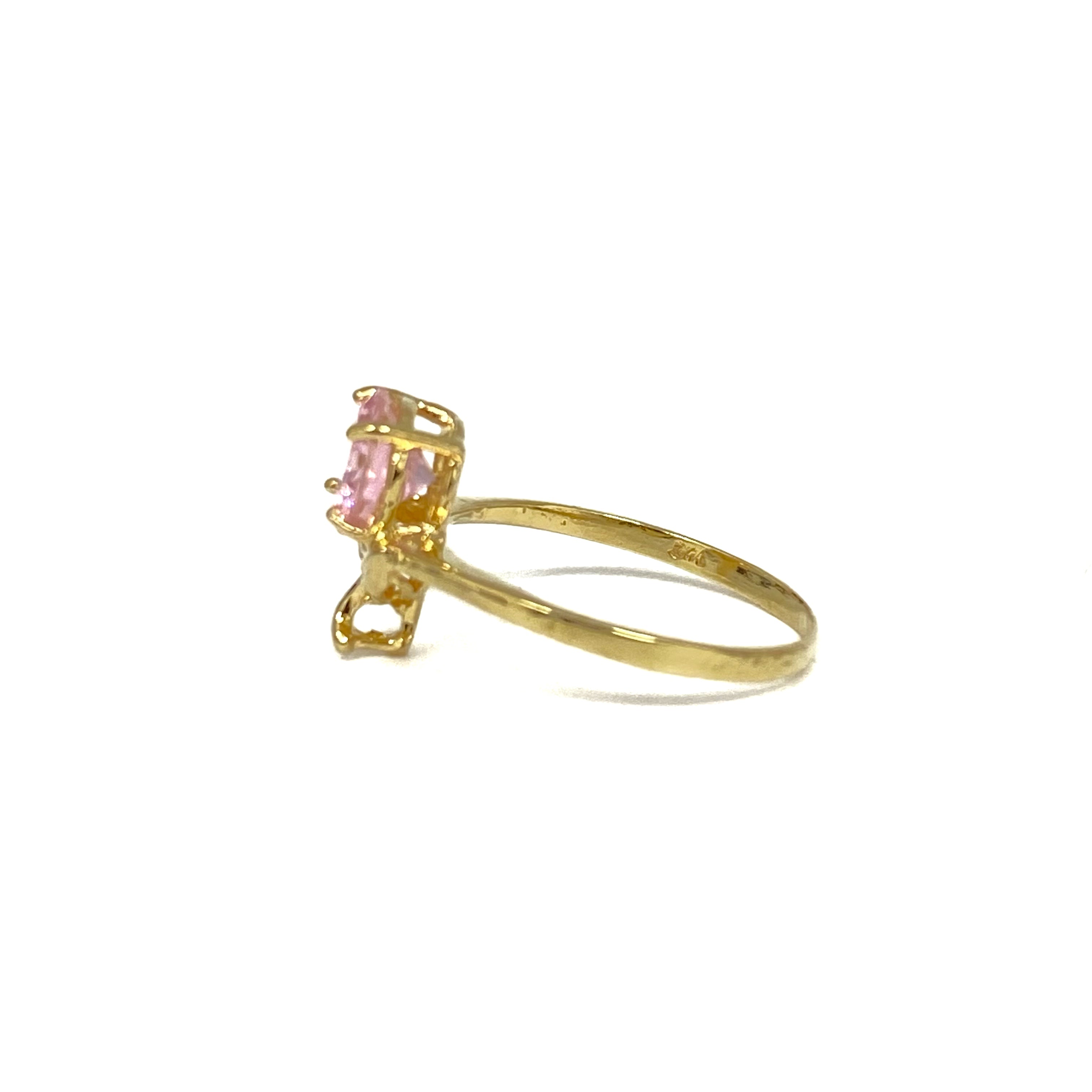 ☆ 18K Yellow Gold Pink Stone Flower Ring 1.63g 18K黃金粉紅色色石花花戒指 1.63g - 257024307
