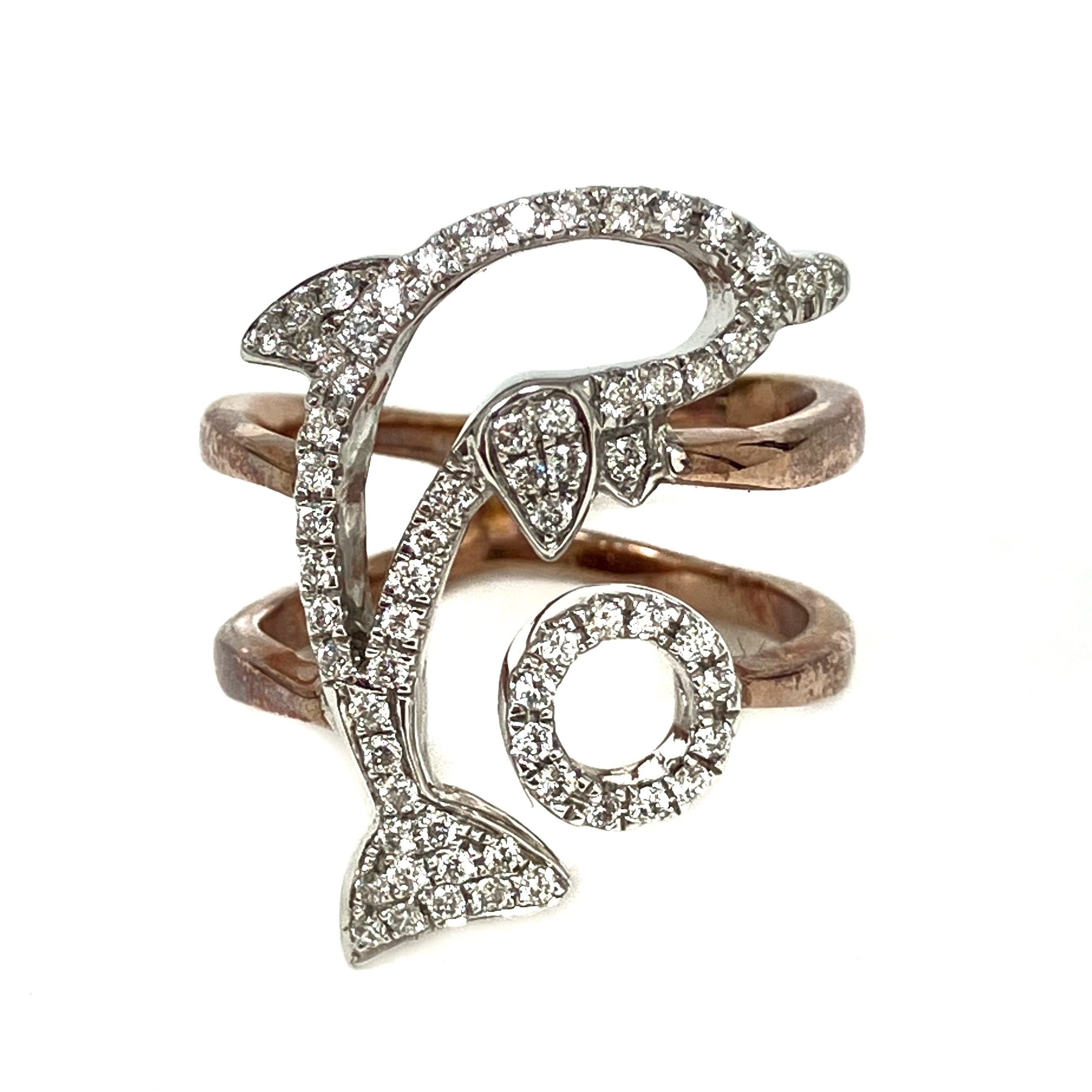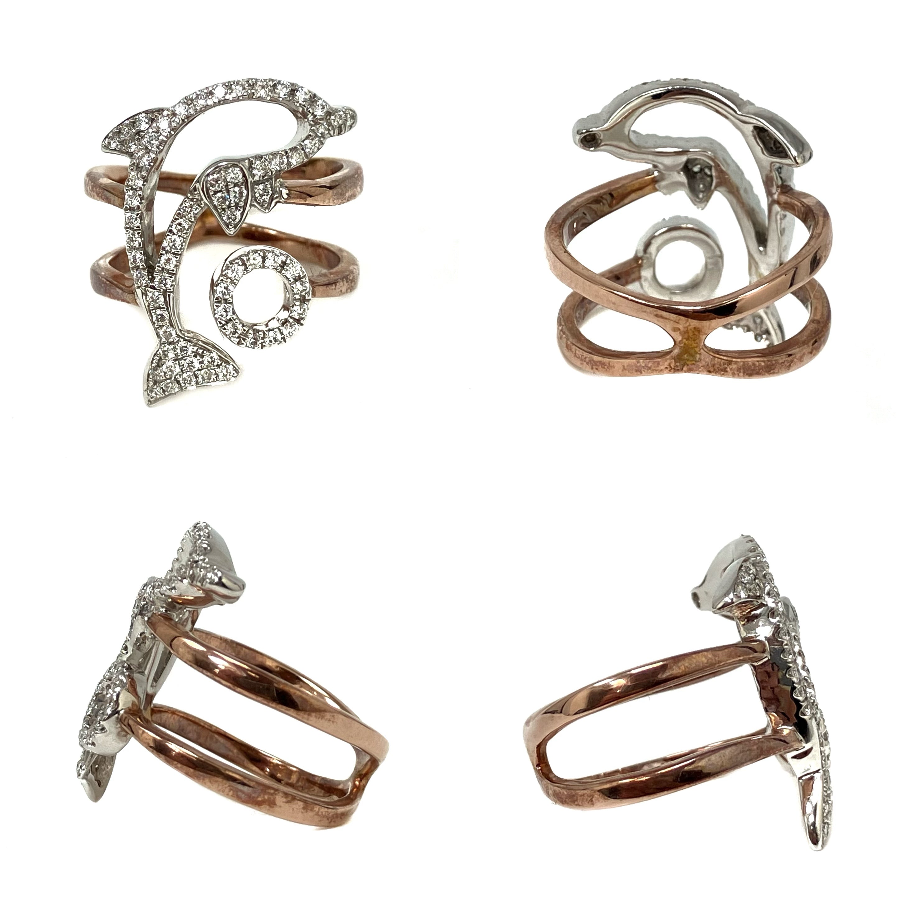 18K玫瑰金白金海豚鑽石戒指 18K Rose Gold White Gold Dolphin Diamond Ring 4.98g |