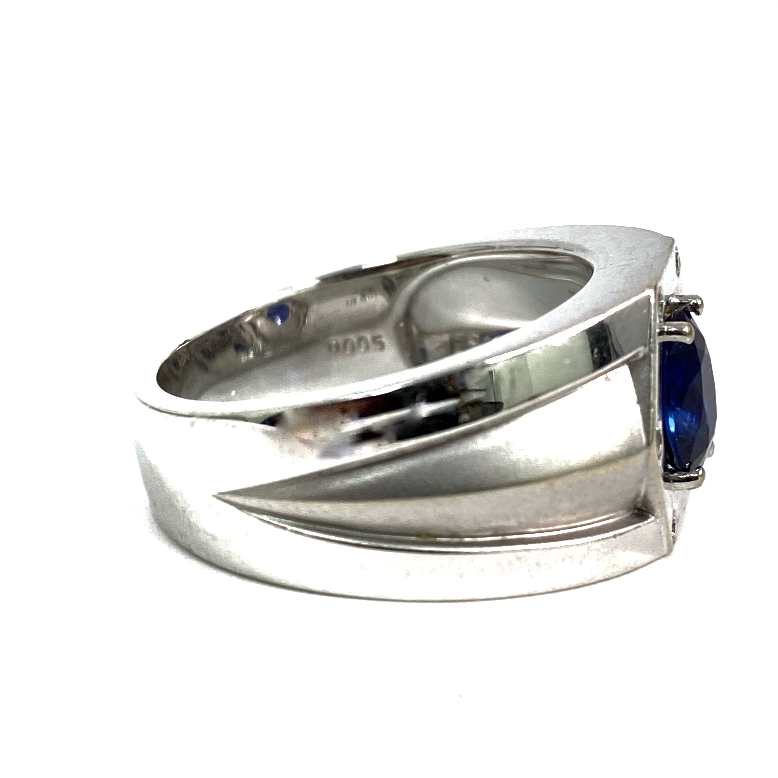 △ Chow Tai Fook 周大福 18K White Gold Diamonds And Blue Stone Ring 14.05g 18K白金鑽石和藍色寶石戒指 - 257023968