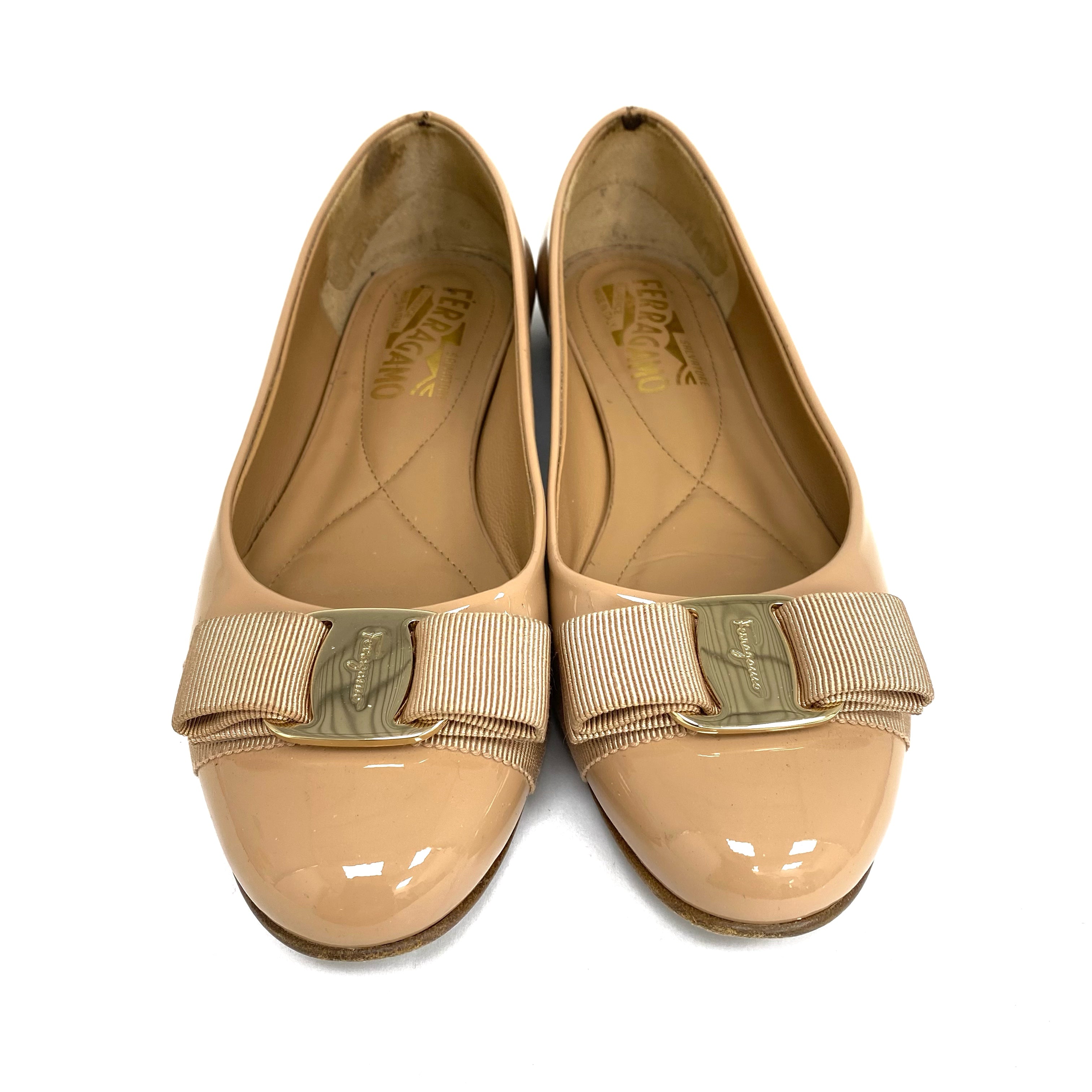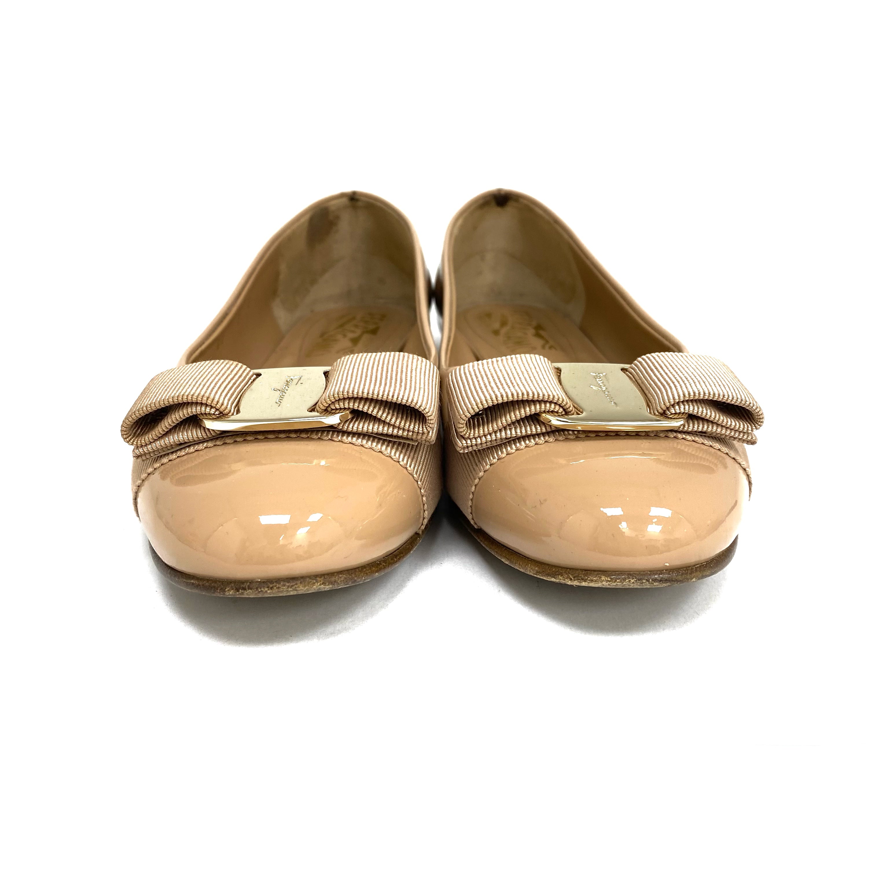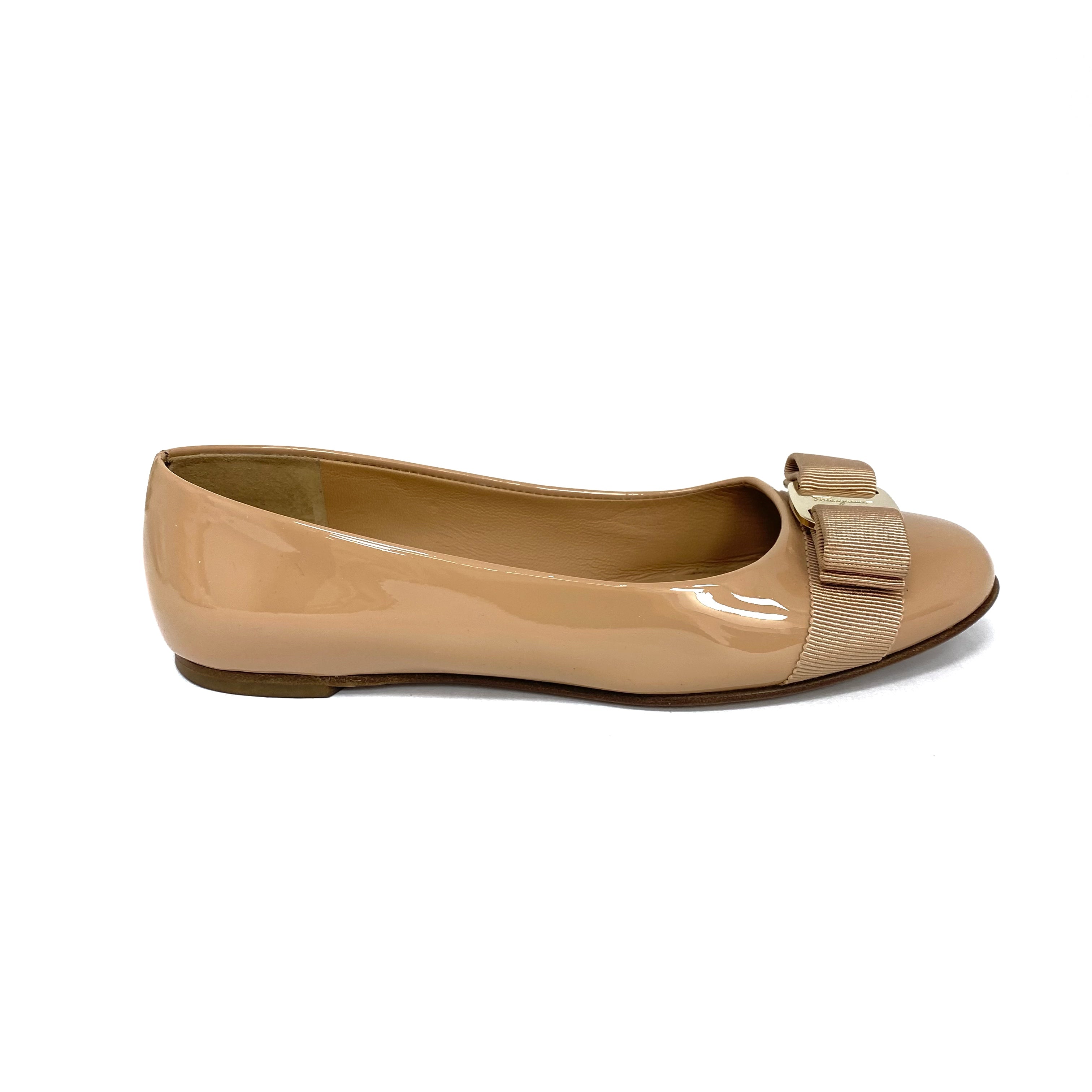 ☆Salvatore Ferragamo 菲拉格慕 Nude Patent Leather Flats 5 Size 裸色漆皮平底鞋 5 碼 -257023851