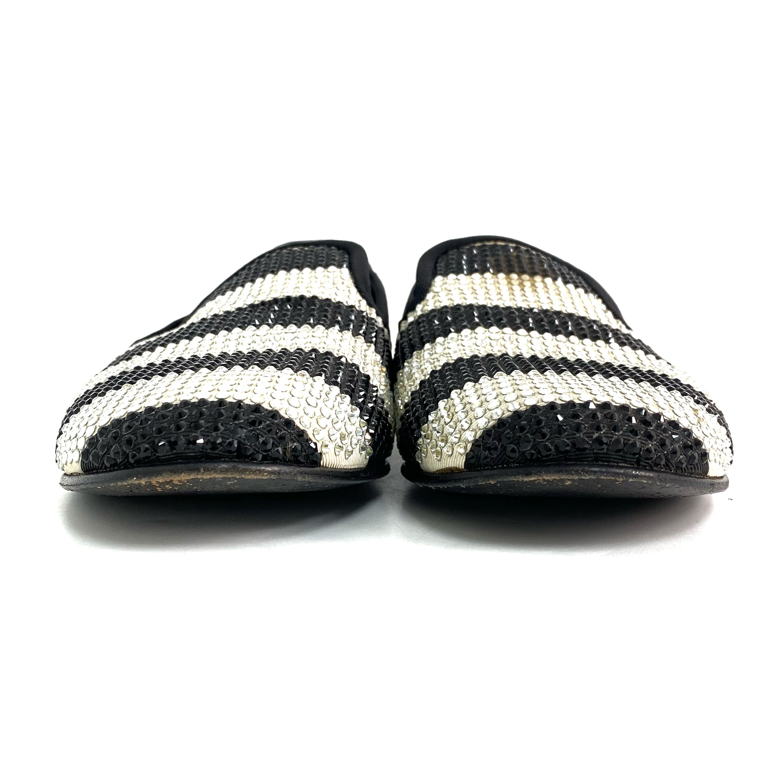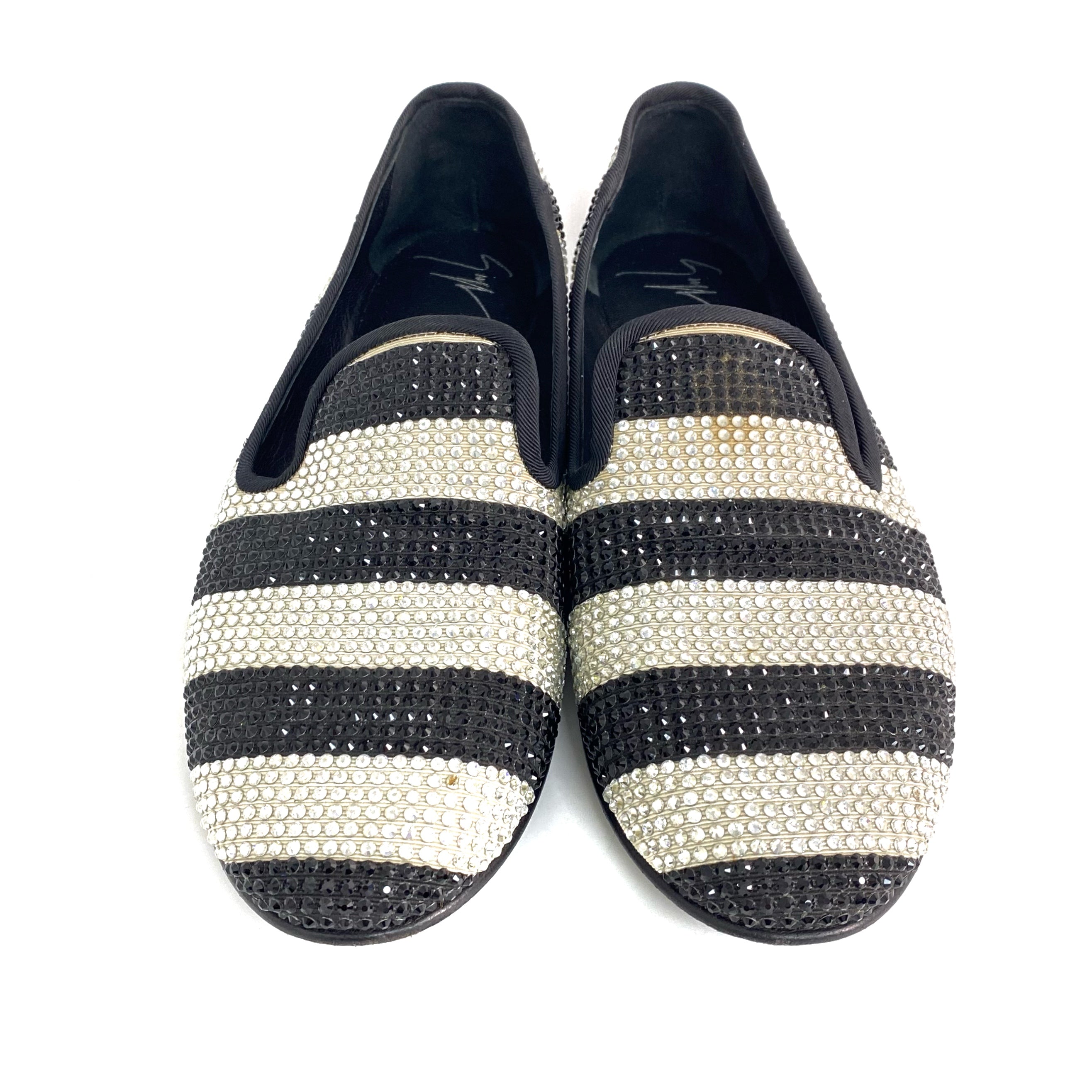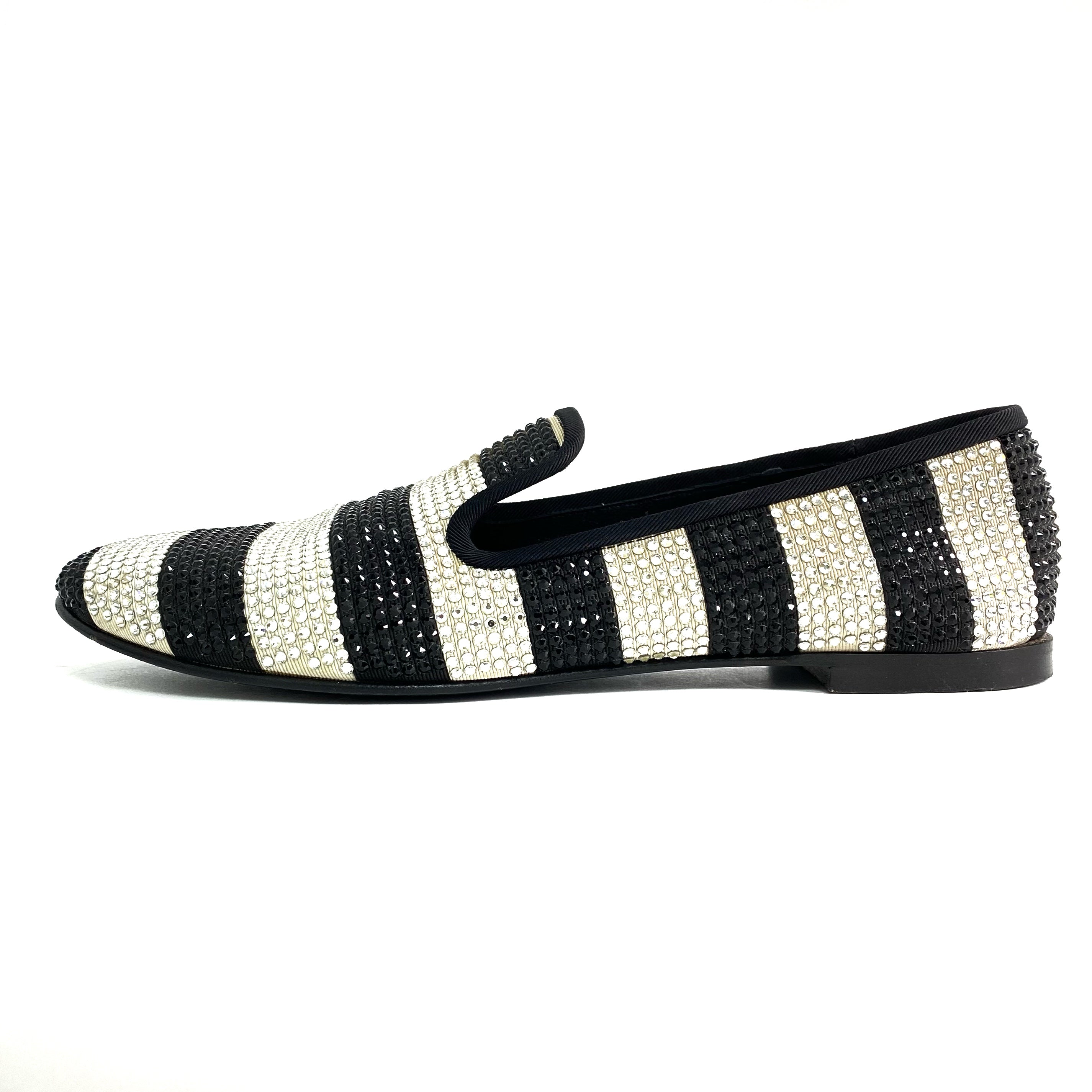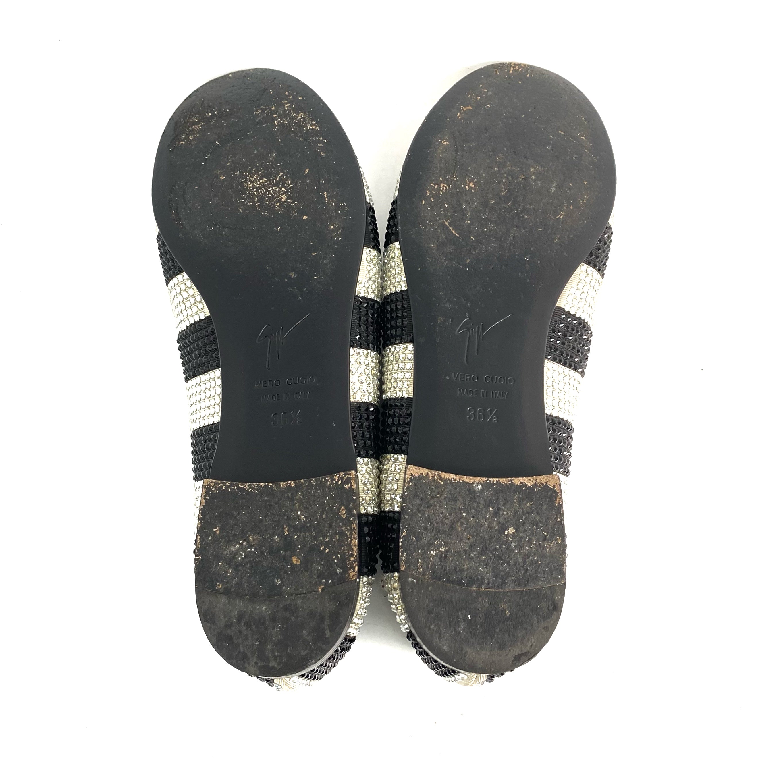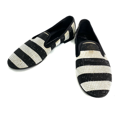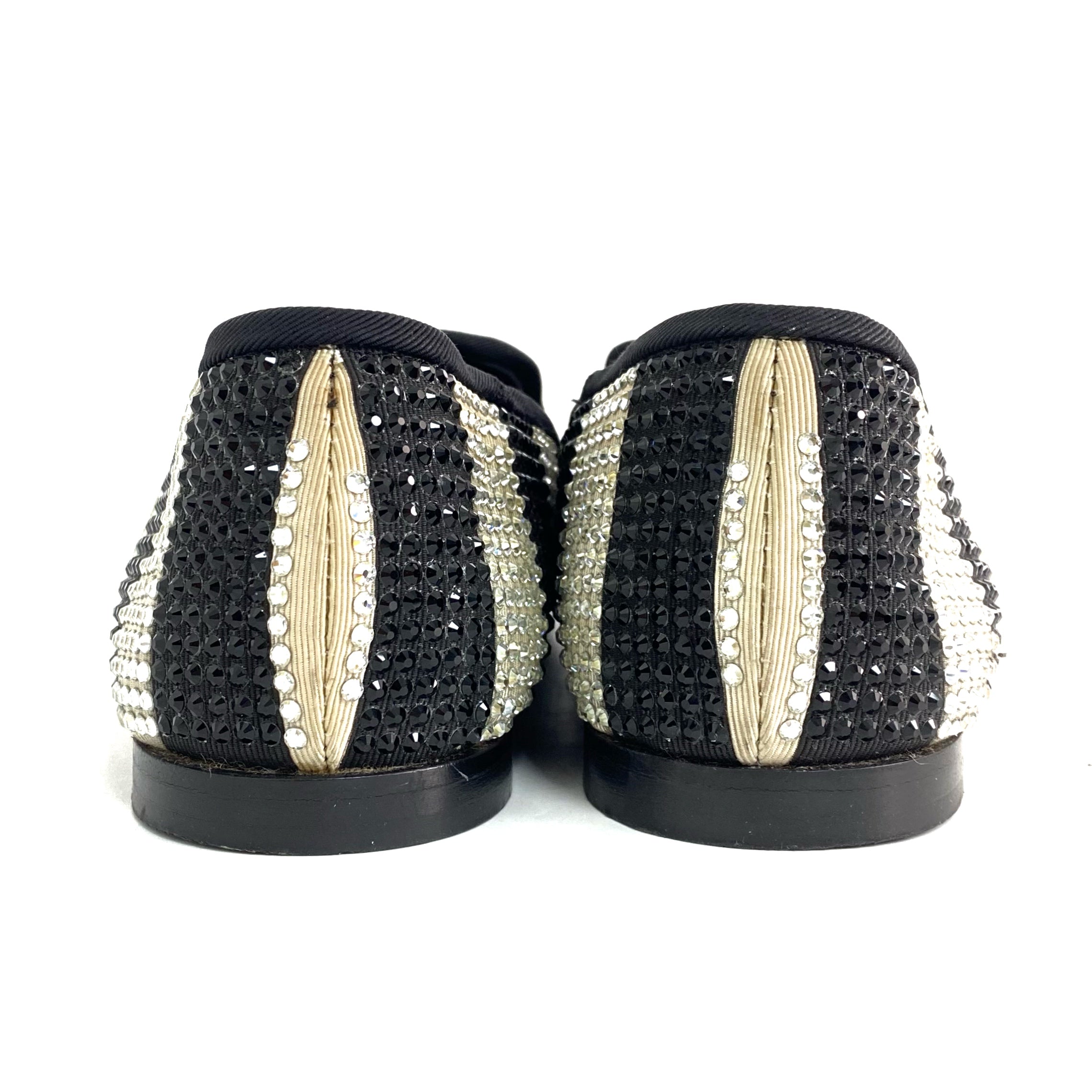 ☆ Giuseppe Zanotti 朱塞佩·薩諾第 Black White Canvas Rhinestone Flats #36.5 黑色白色帆布水鑽平底鞋36.5碼 - 257027647