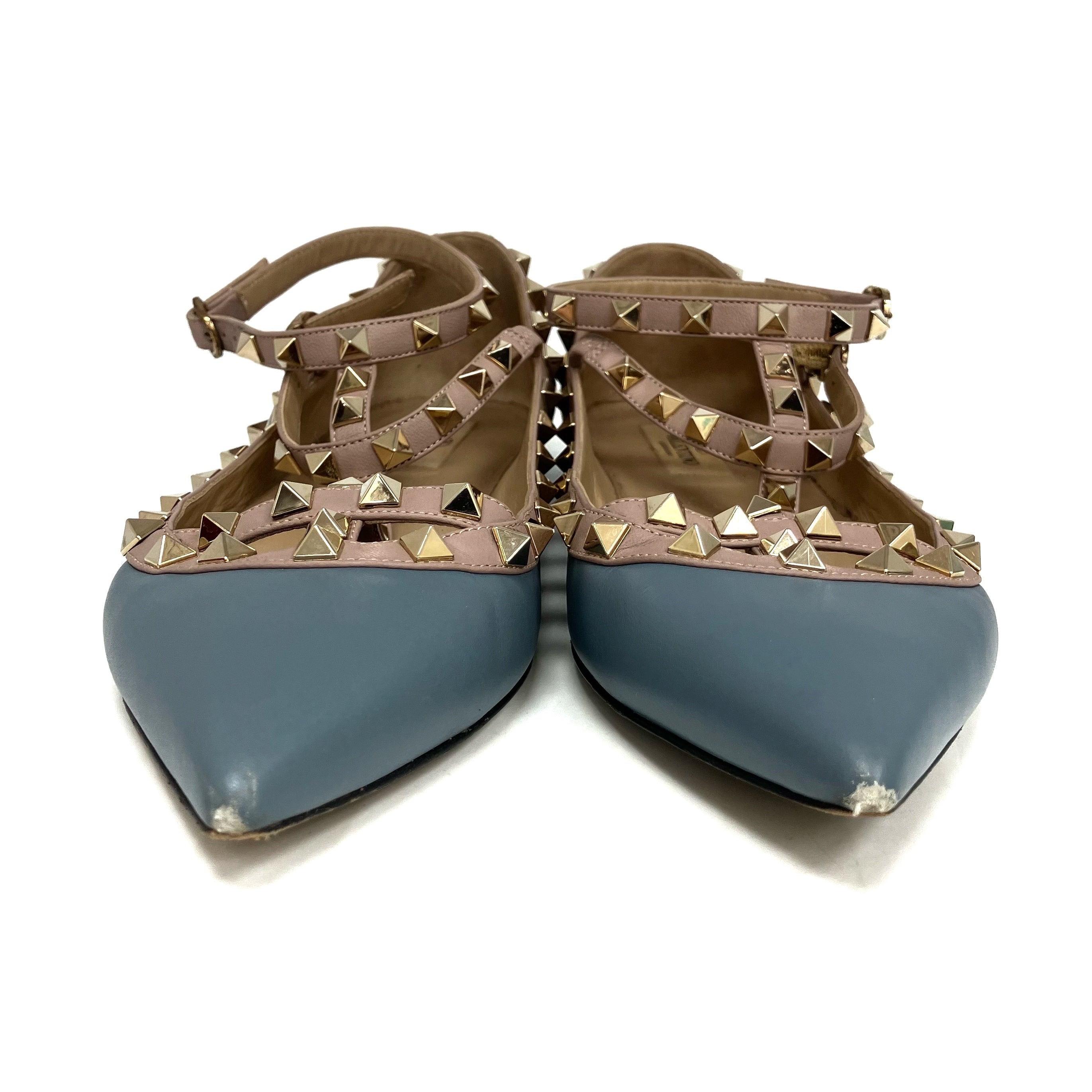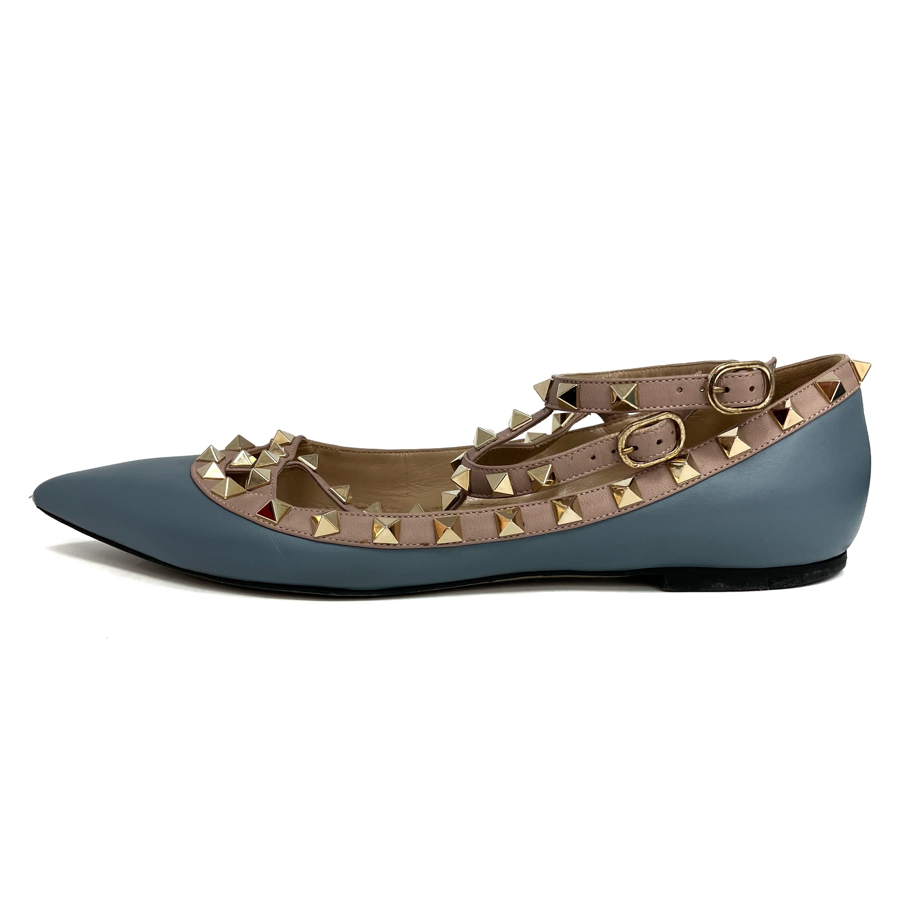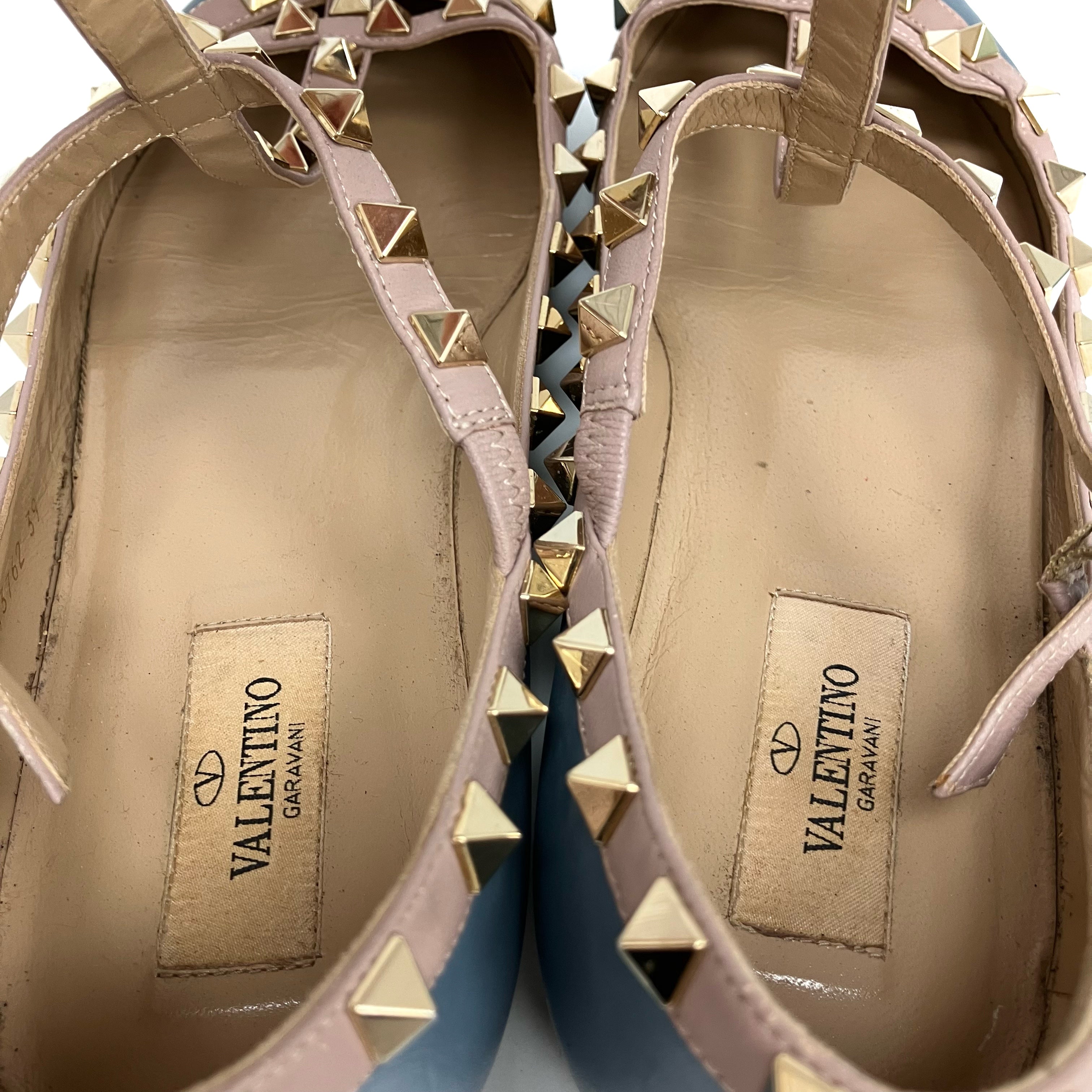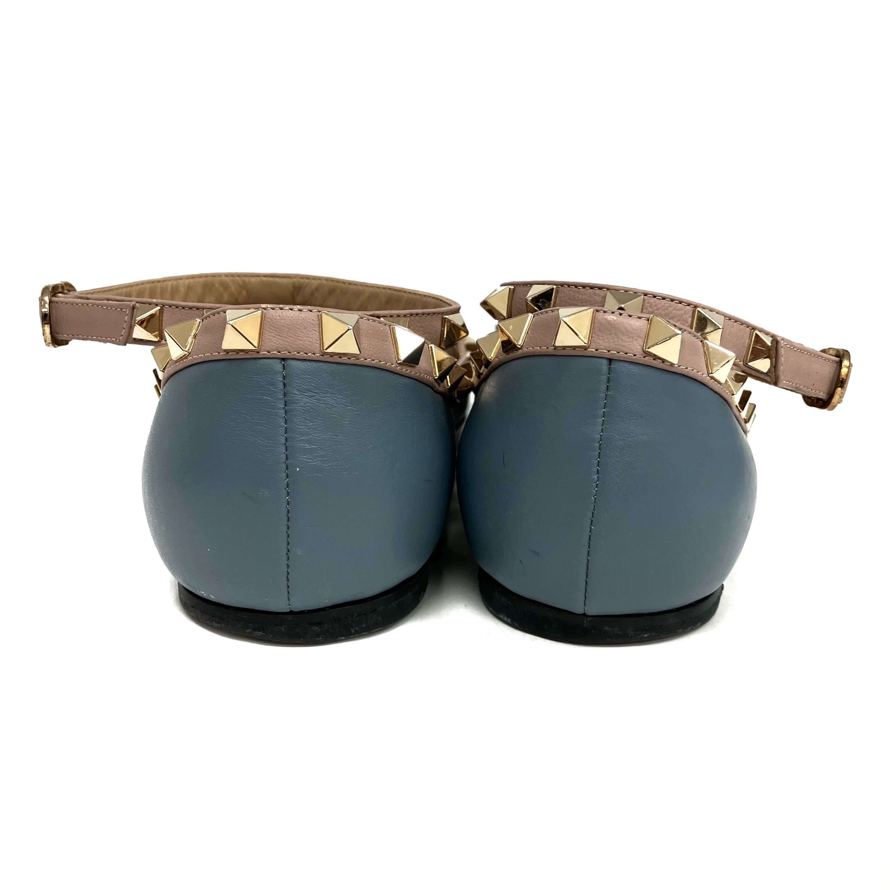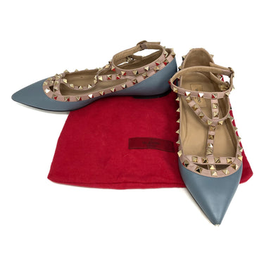 ☆ Valentino 華倫天奴 Blue Pink Lambskin Studs Flats #39 藍色粉紅色小羊皮飾釘平底鞋 39碼 - 257028842