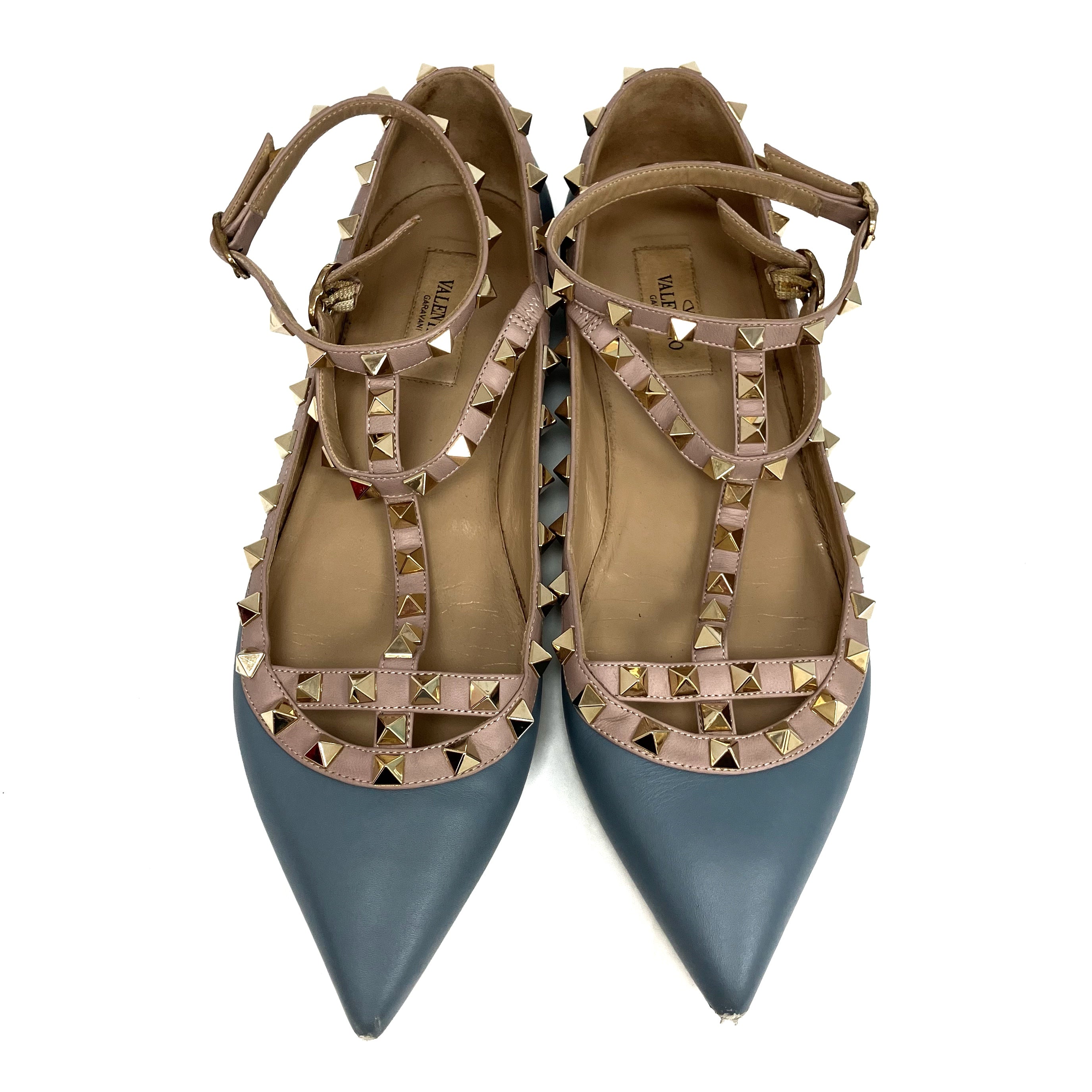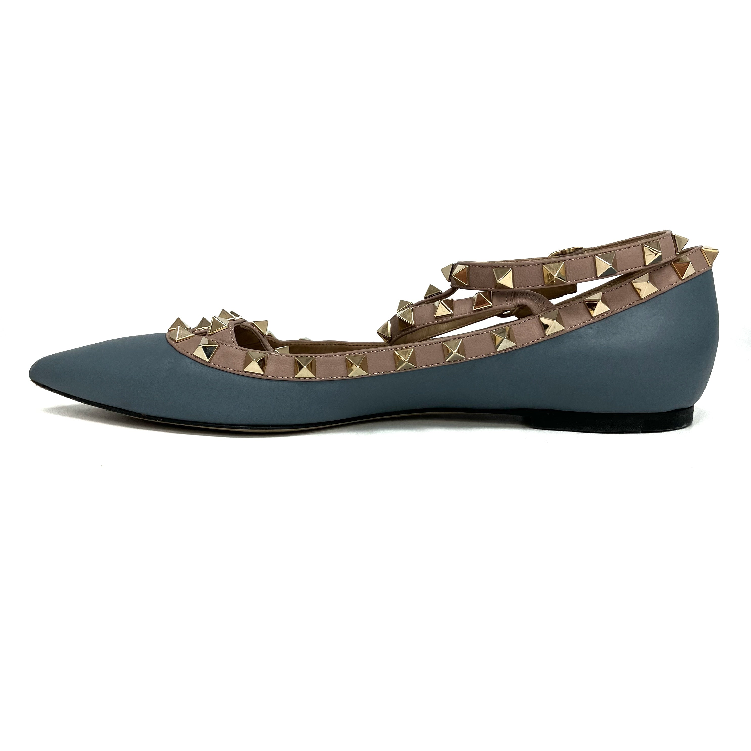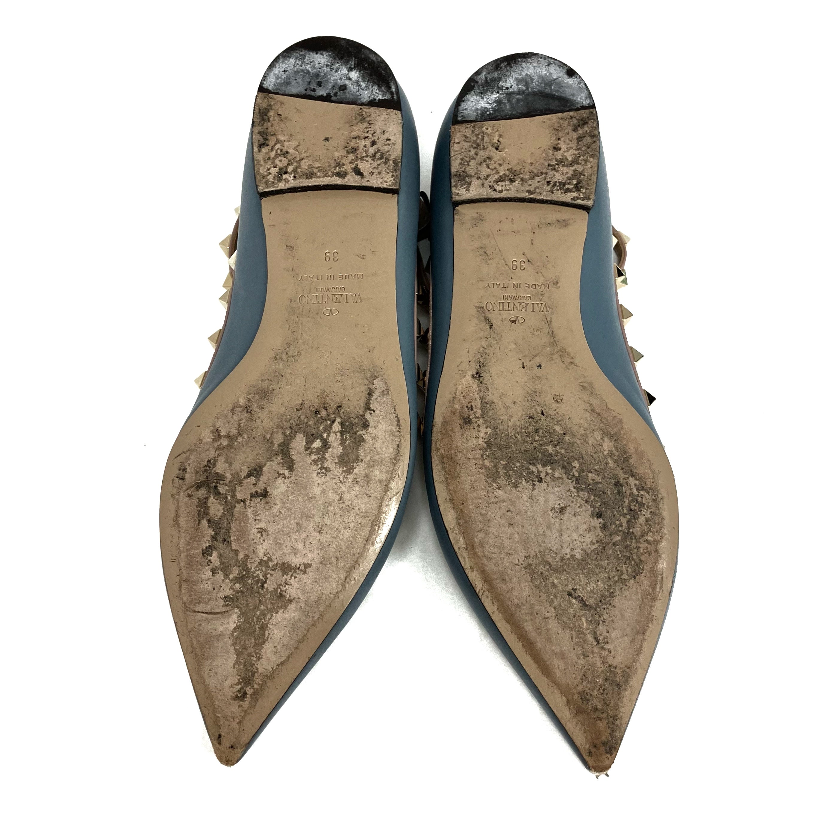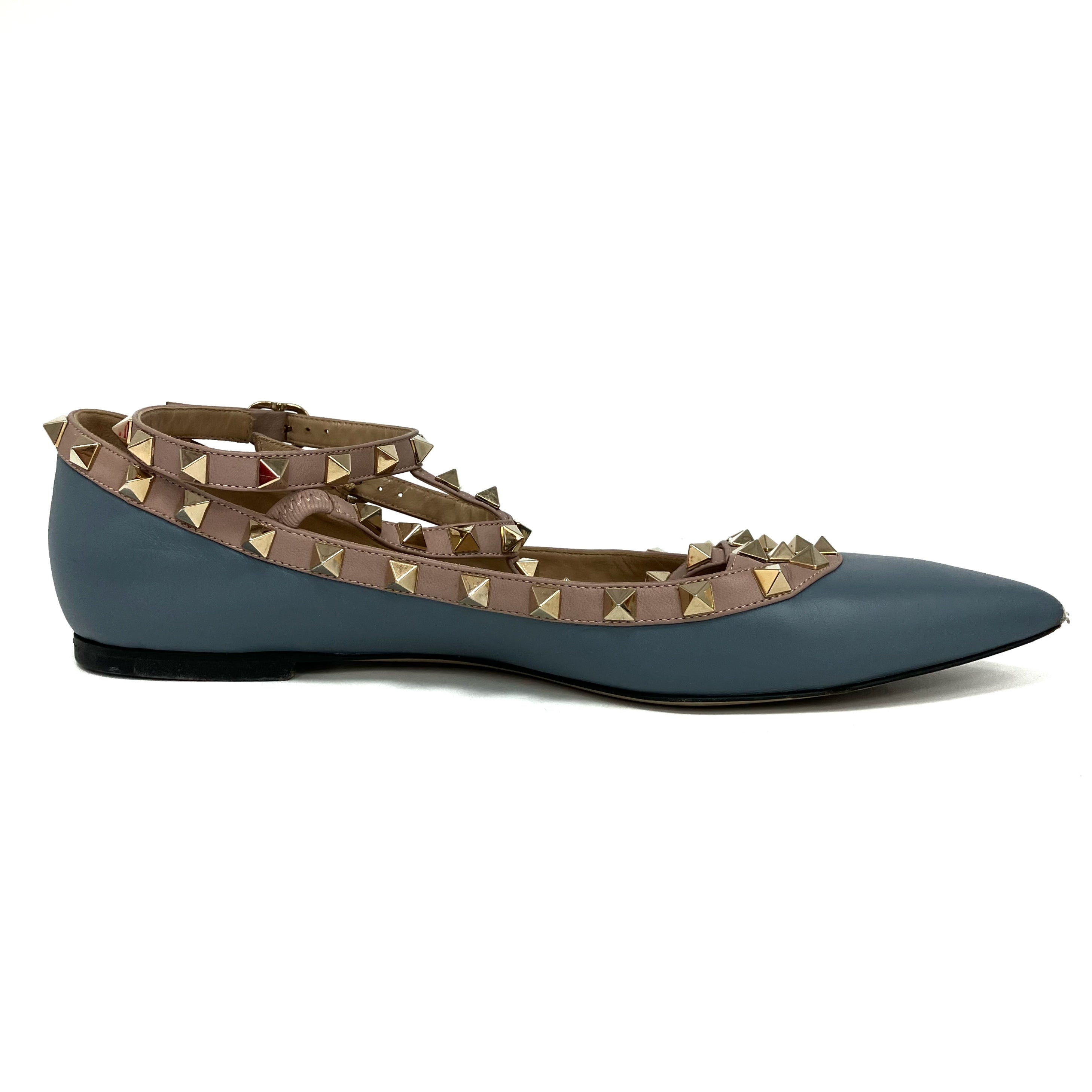 ☆ Valentino 華倫天奴 Blue Pink Lambskin Studs Flats #39 藍色粉紅色小羊皮飾釘平底鞋 39碼 - 257028842