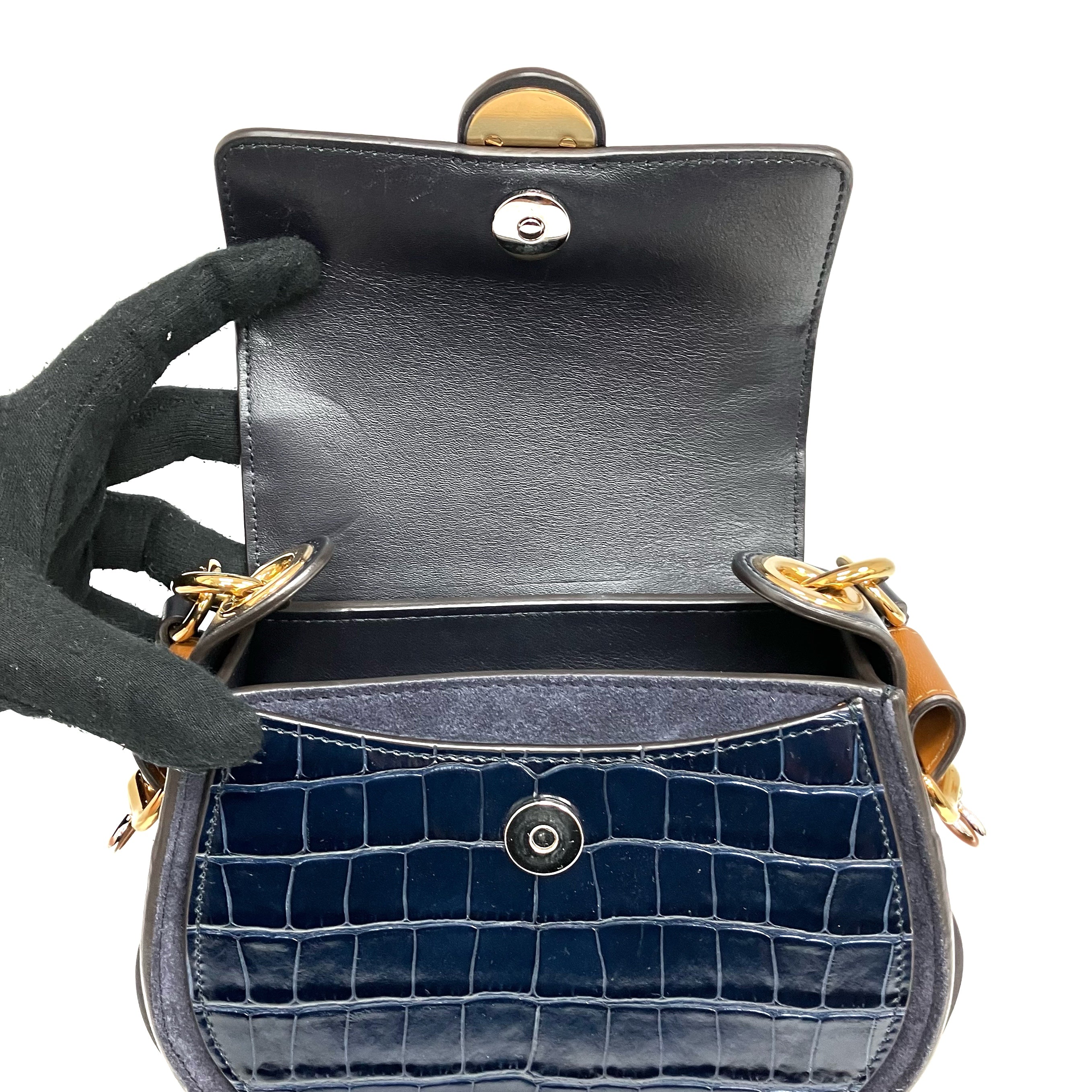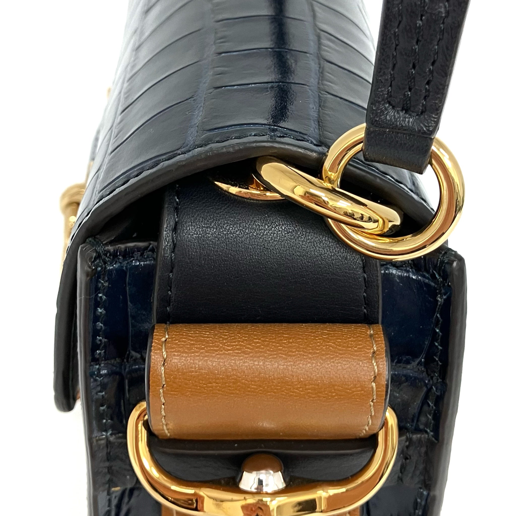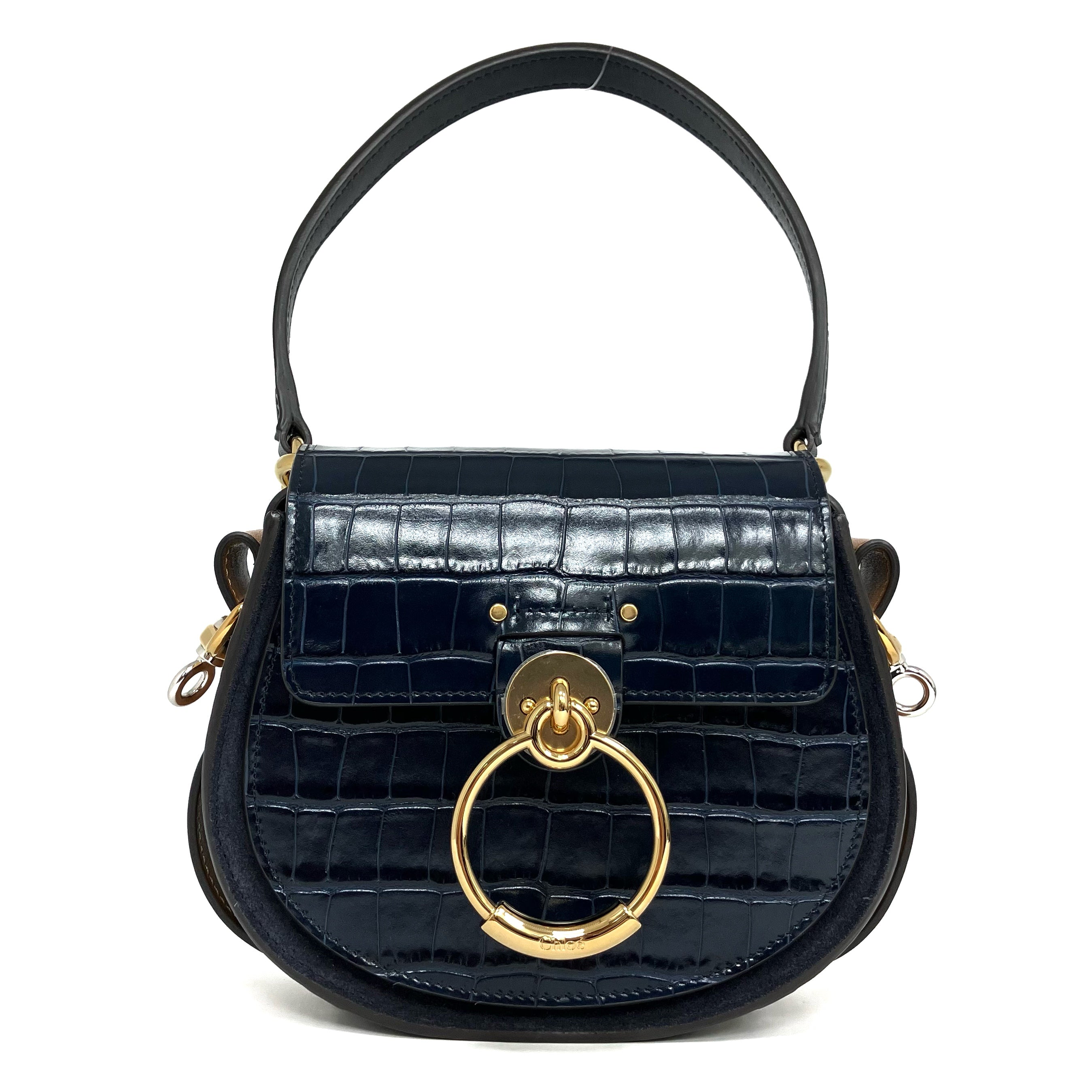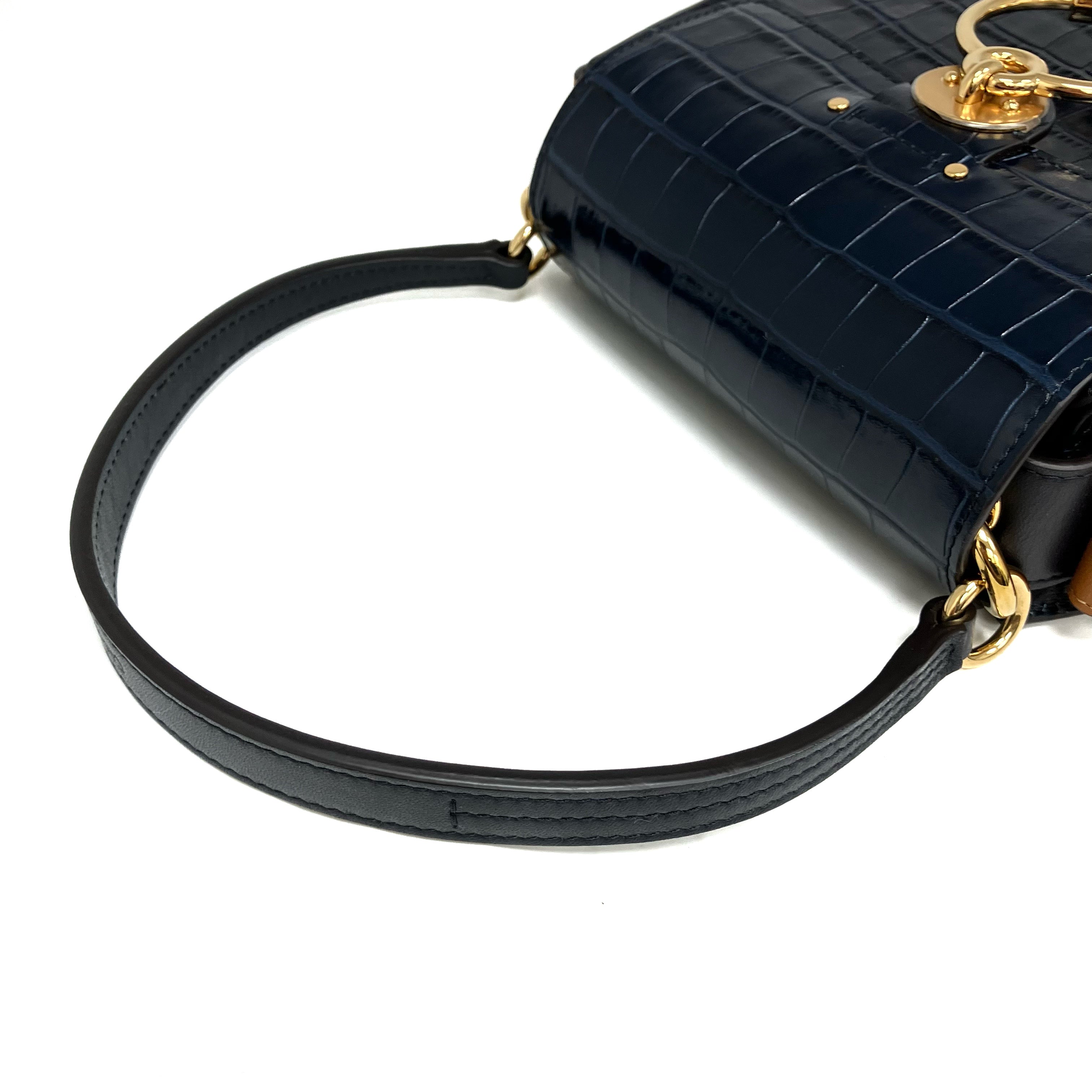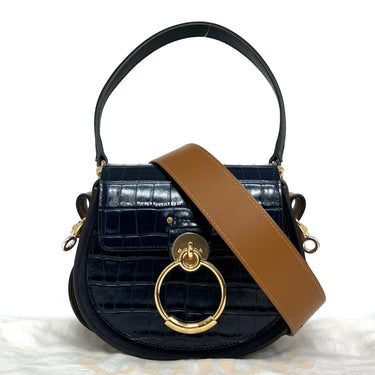 ☆ Chloe 蔻依 Navy Crocodile Embossed Calfskin Tess 2 Way Bag 深藍色鱷魚壓紋小牛皮兩用袋 - 267002970