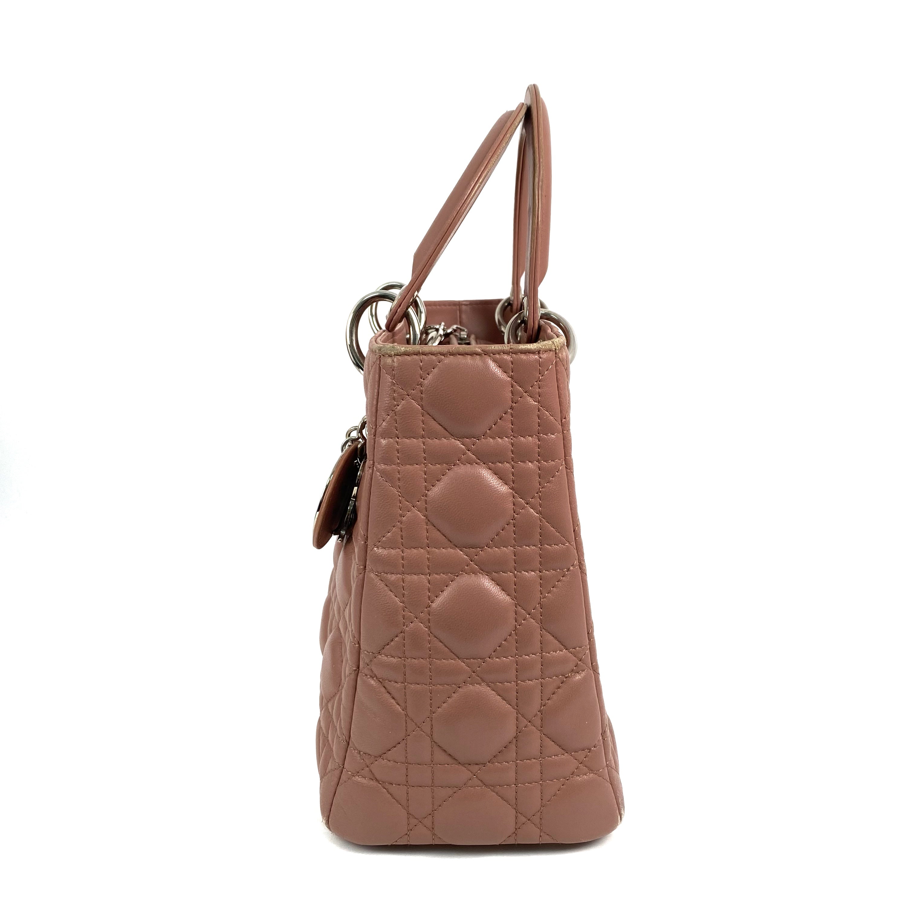 ☆ Christian Dior 迪奧 Pink Lambskin Lady Cannage 2 Way Bag 粉紅色小羊皮兩用袋 - 257027814