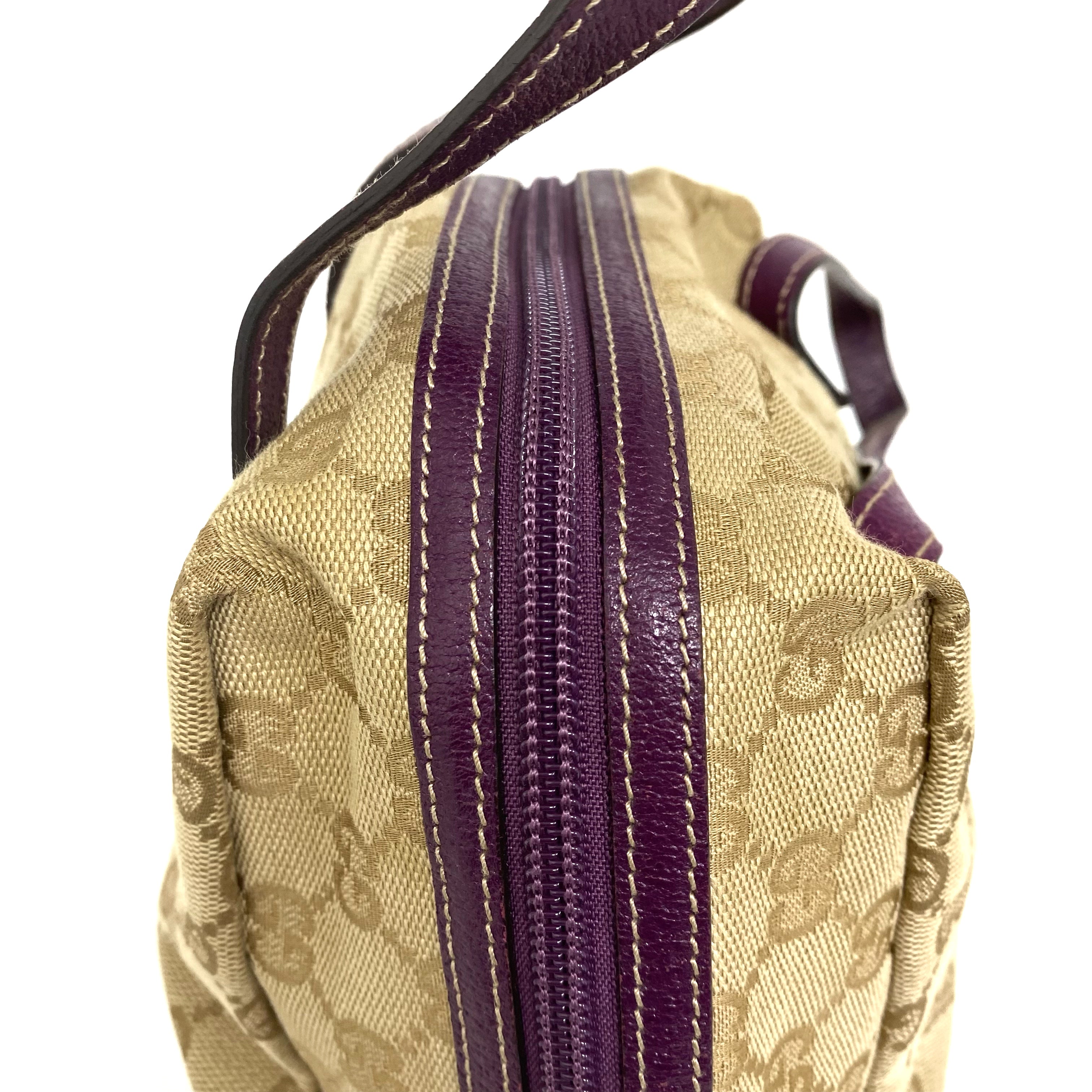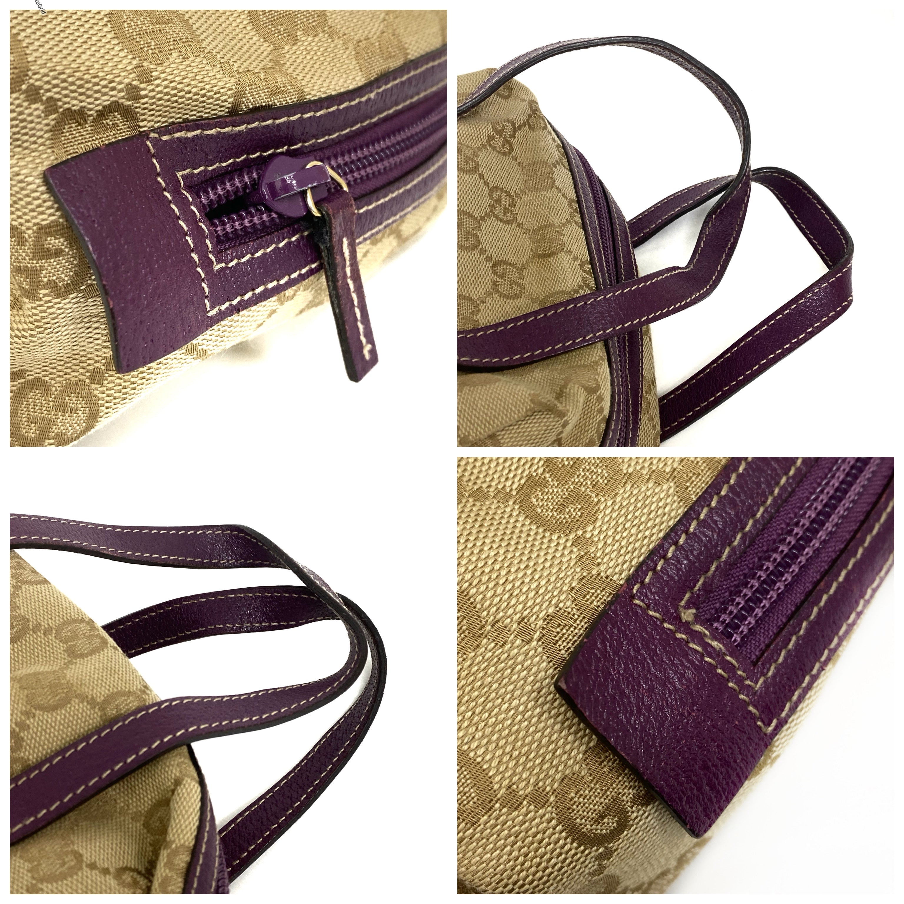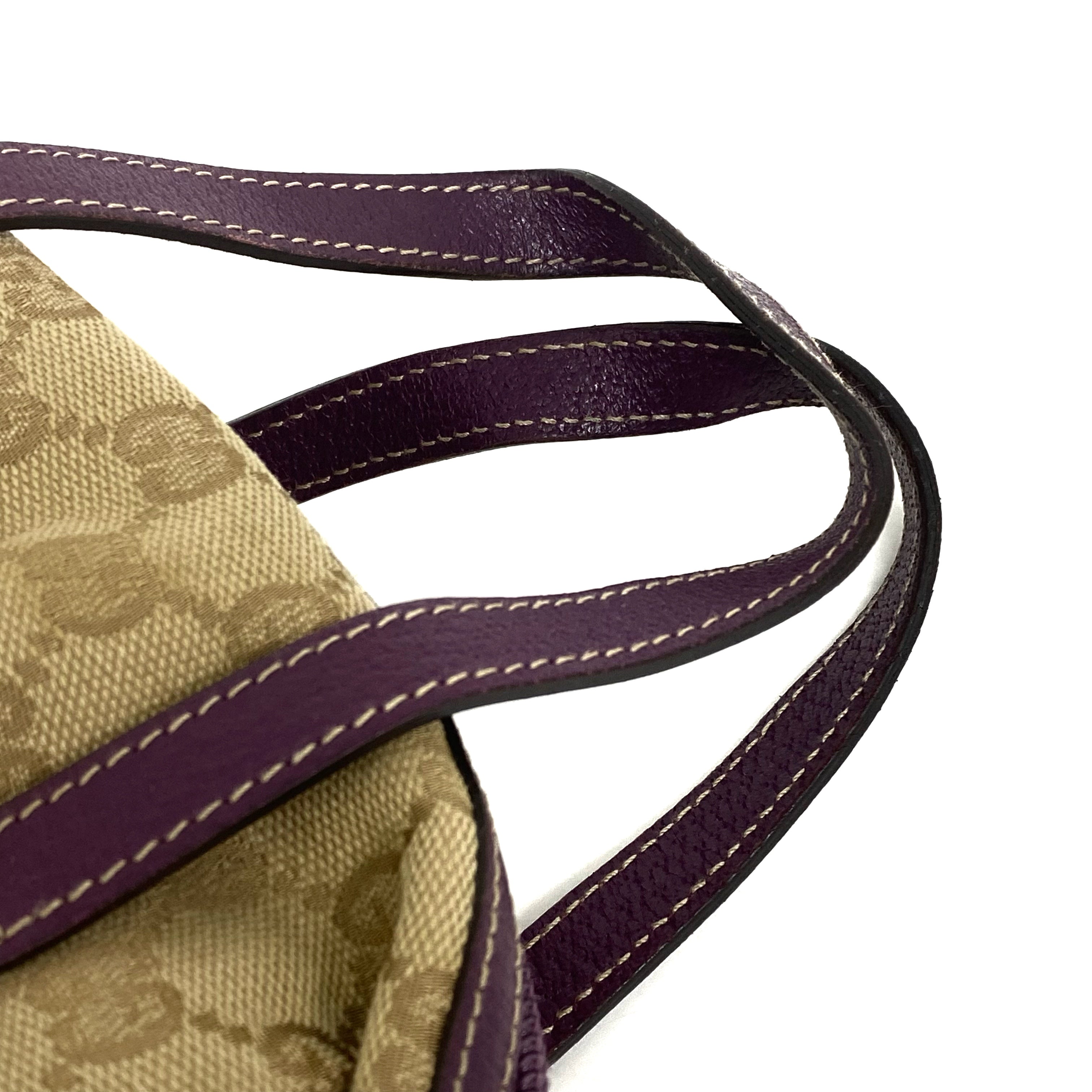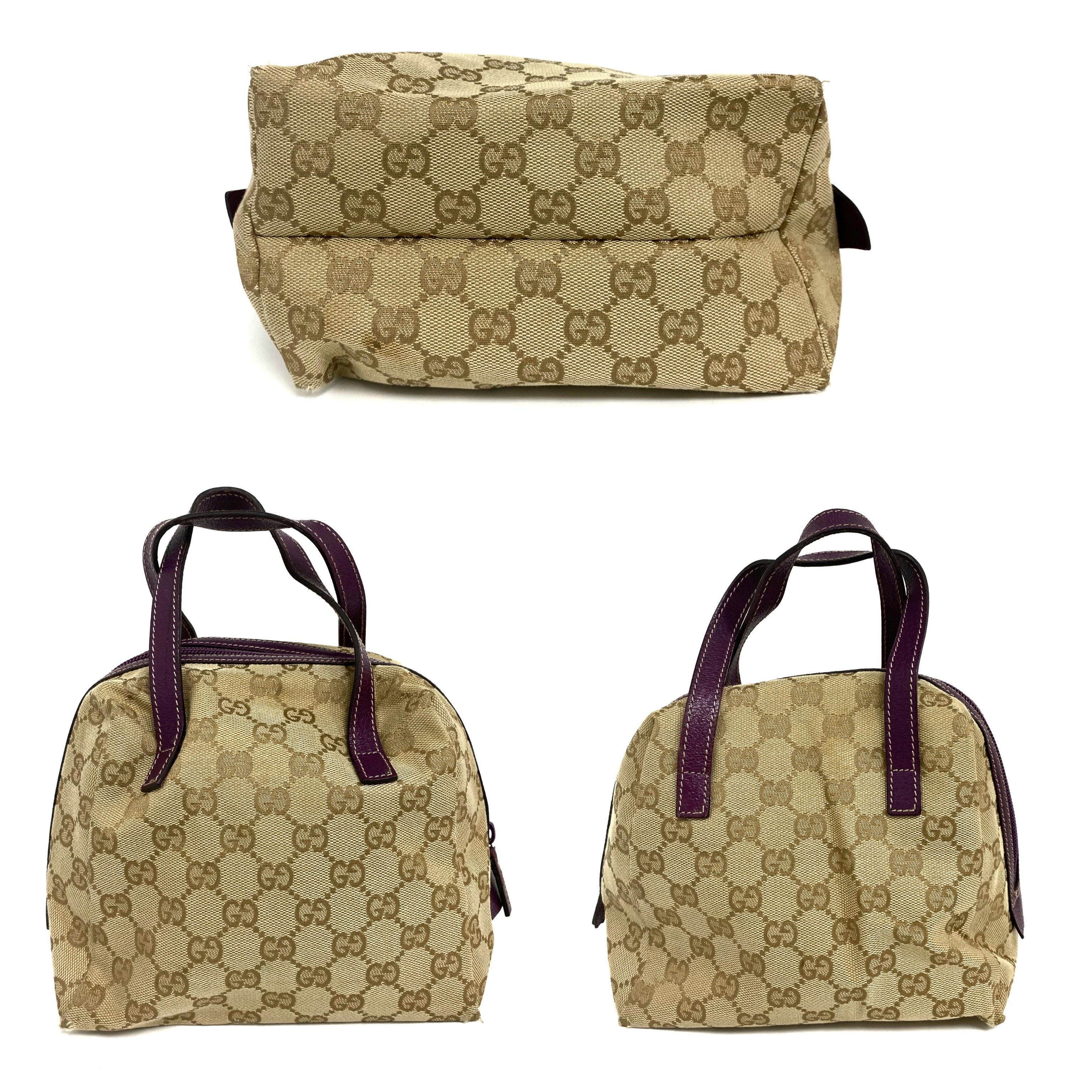 ☆Gucci古馳 Beige GG Supreme Purple Calfskin Handbag 124542 米色老花紫色牛皮手袋 - 257025129