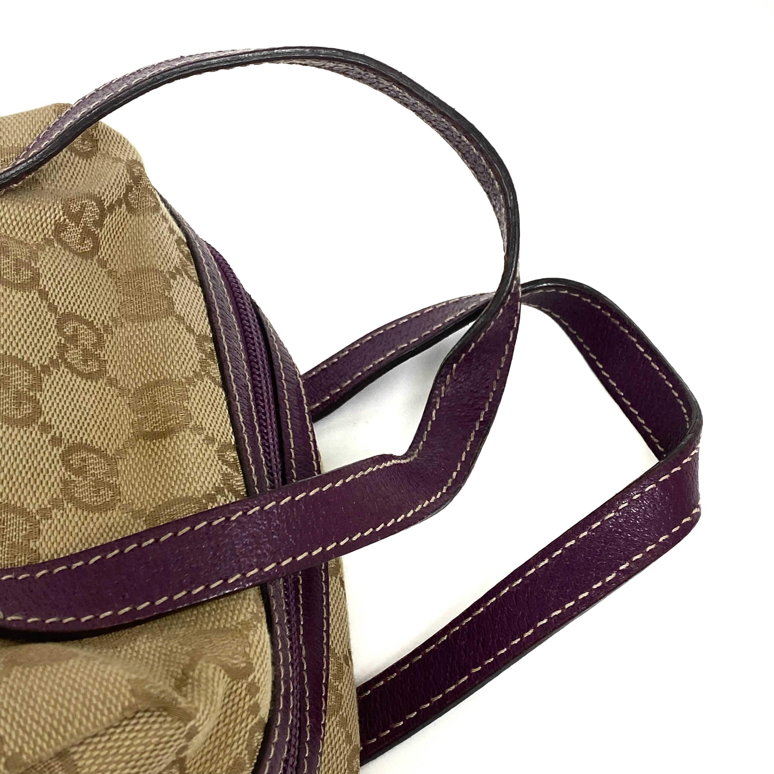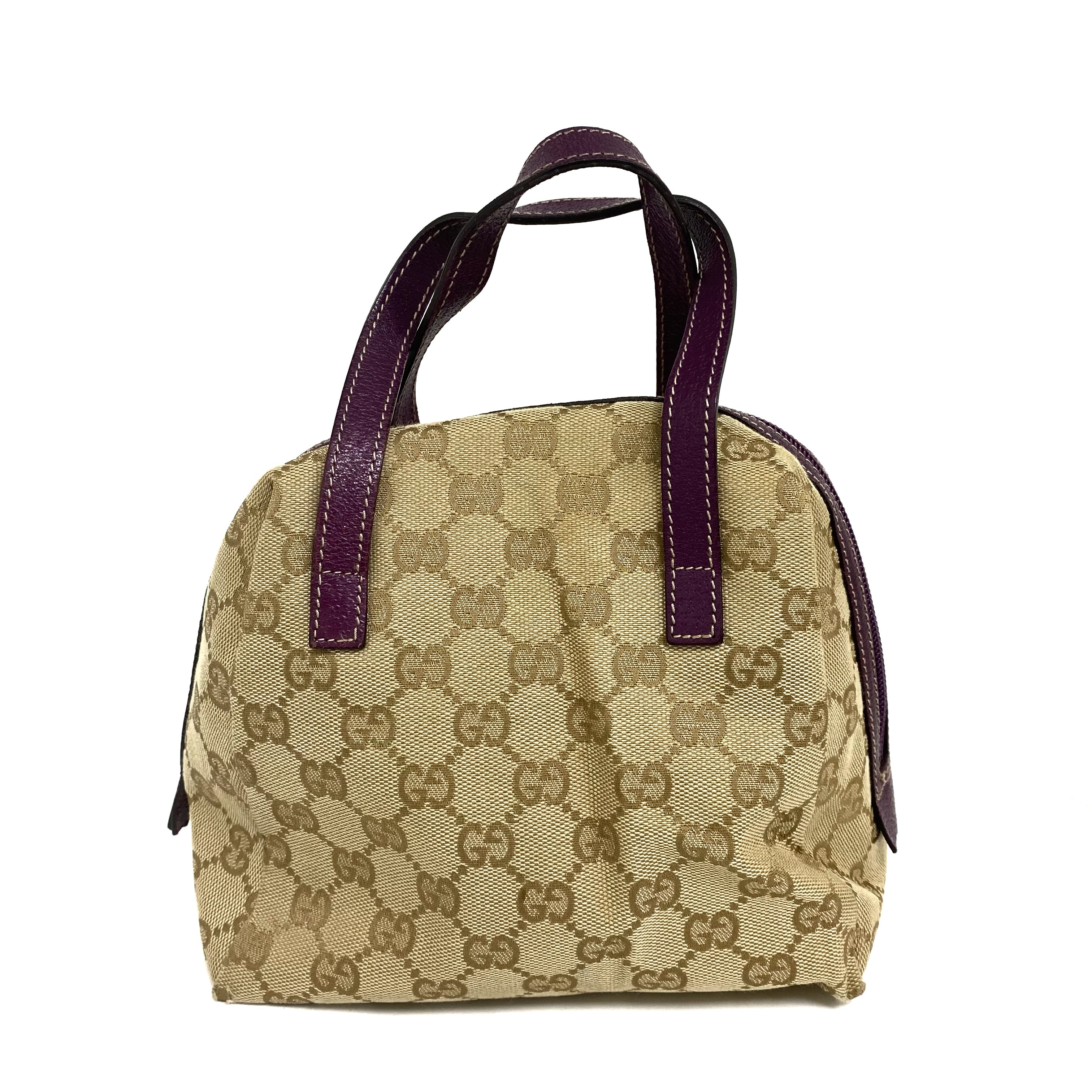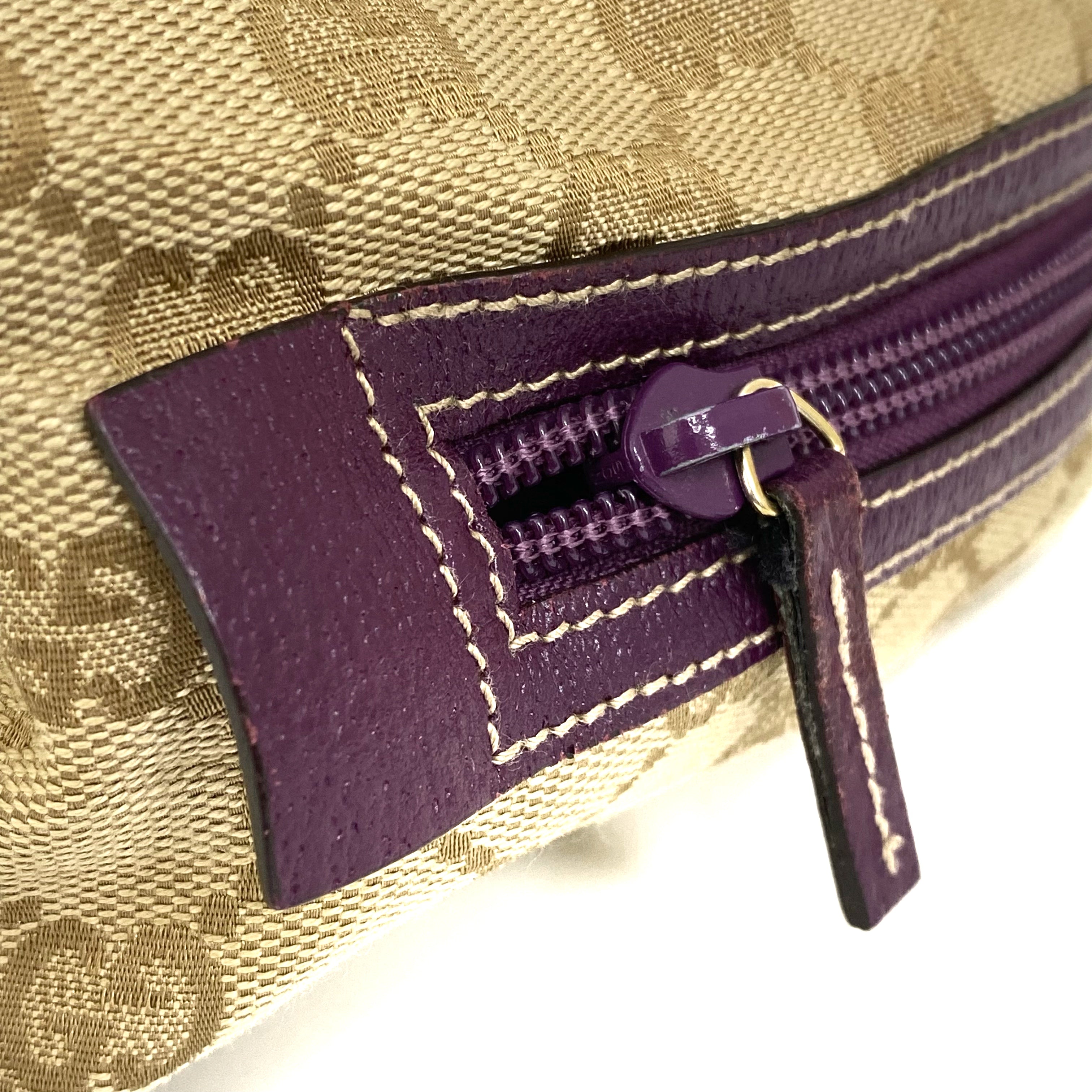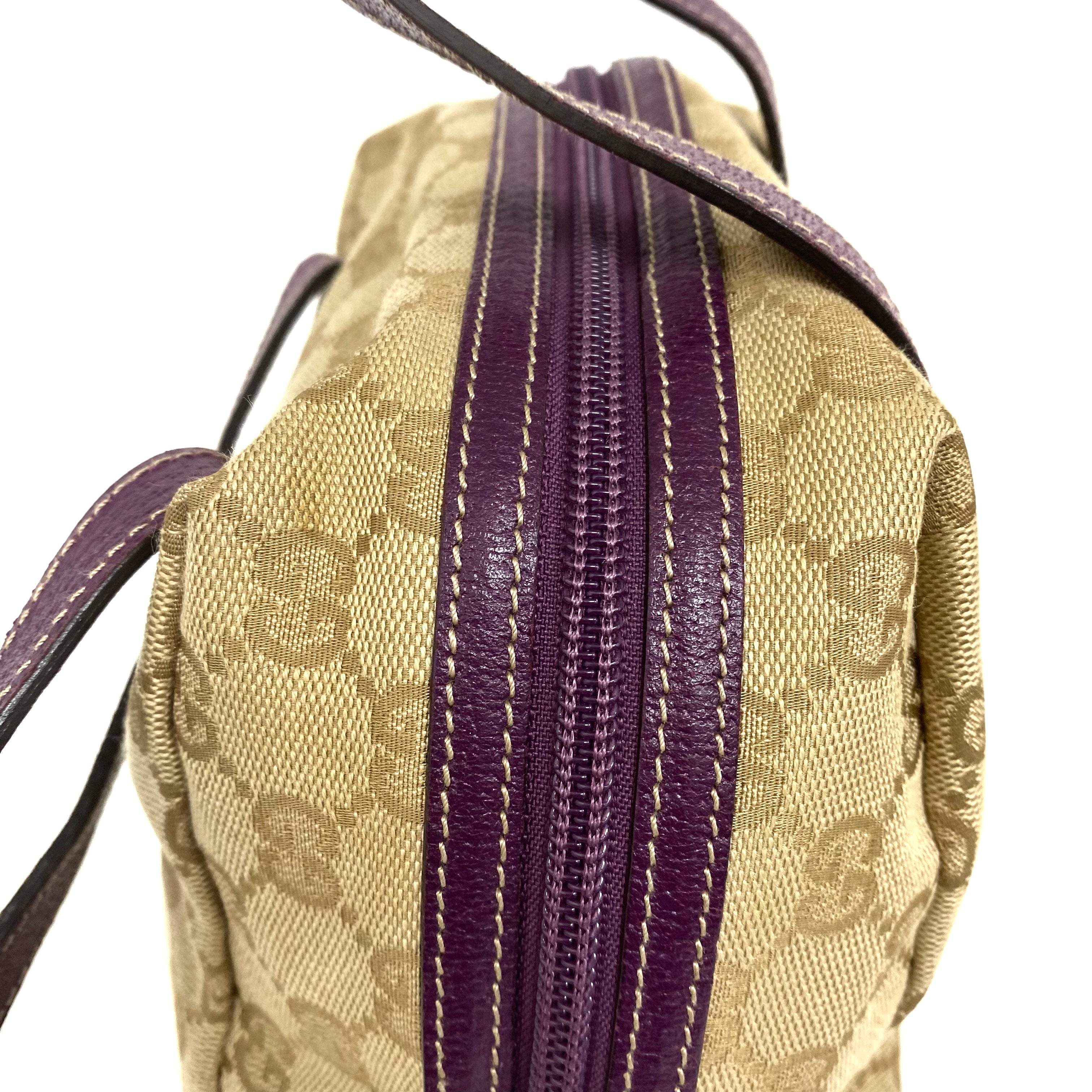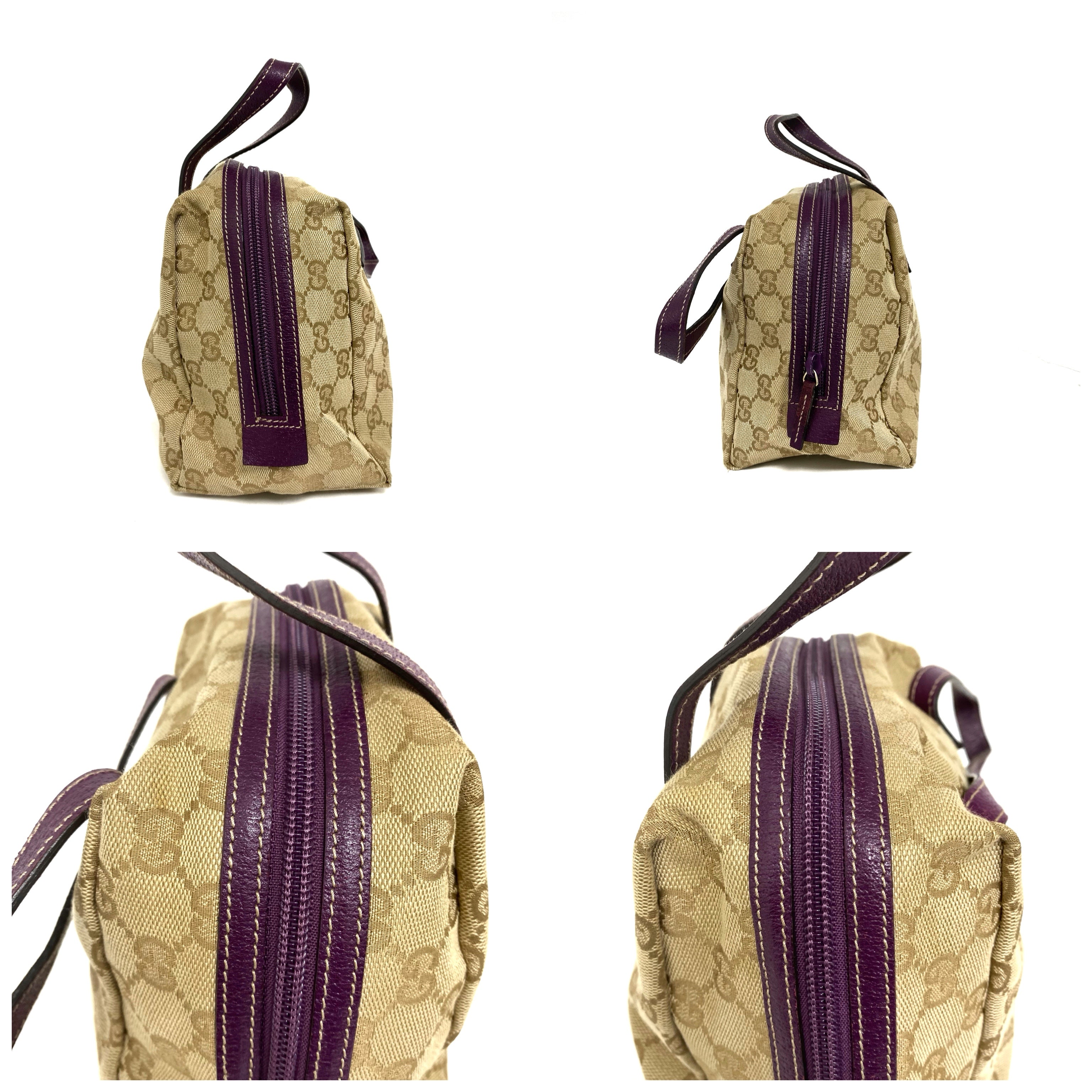 ☆Gucci古馳 Beige GG Supreme Purple Calfskin Handbag 124542 米色老花紫色牛皮手袋 - 257025129