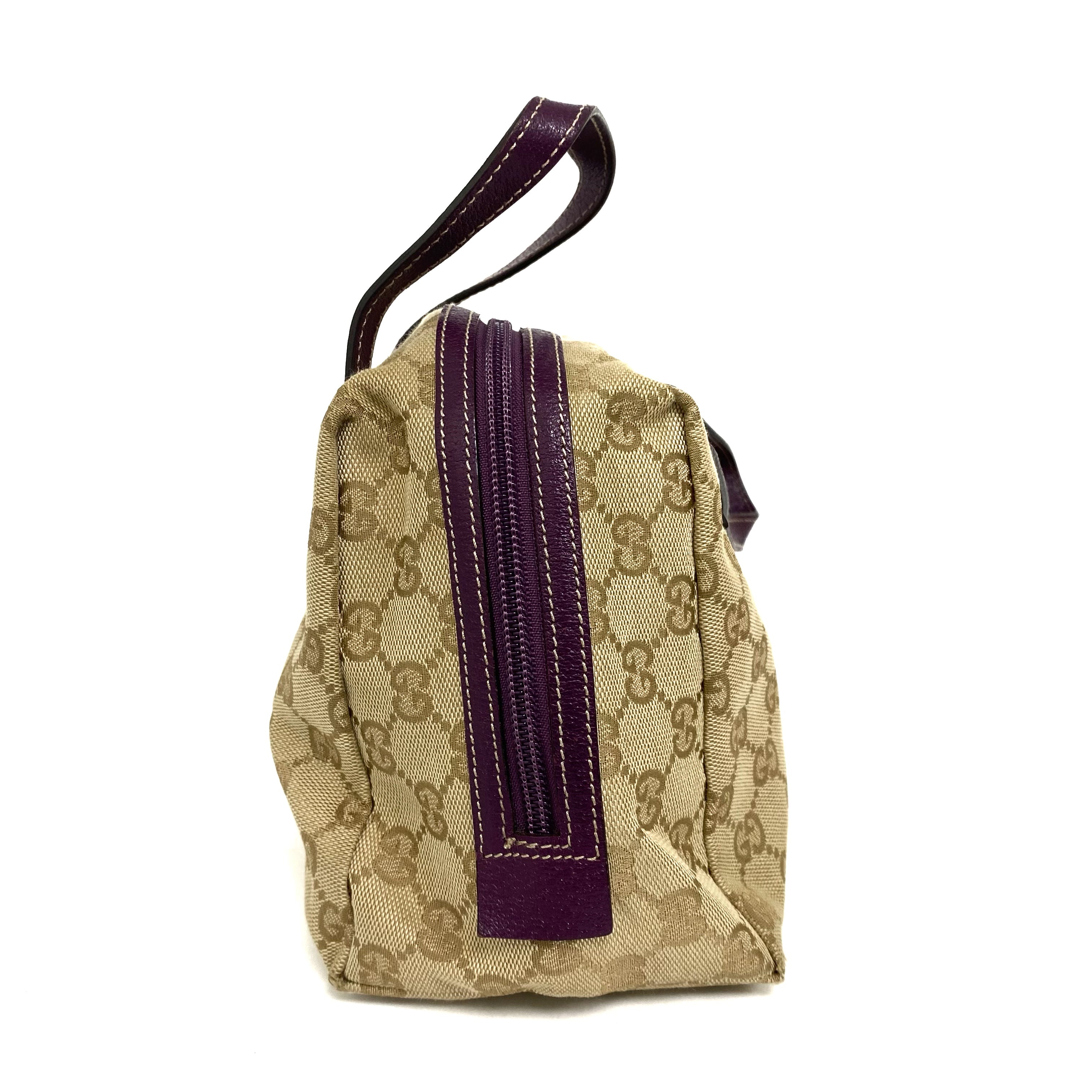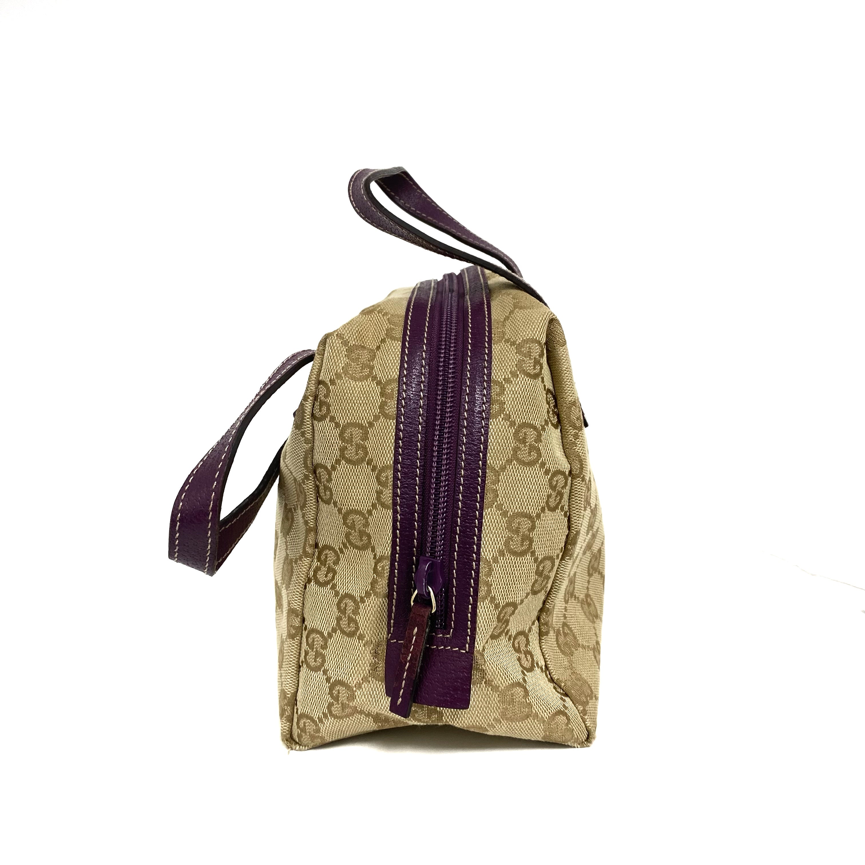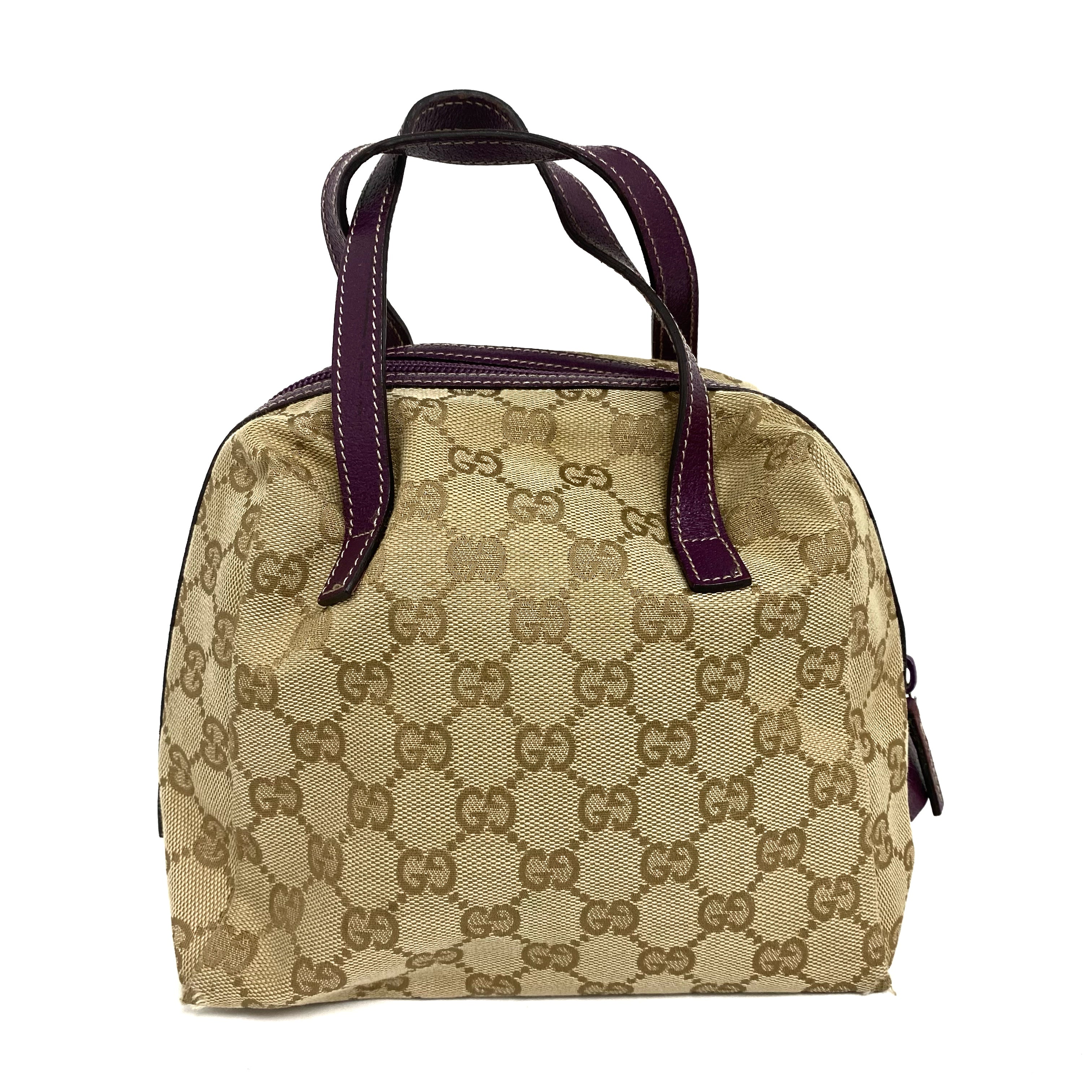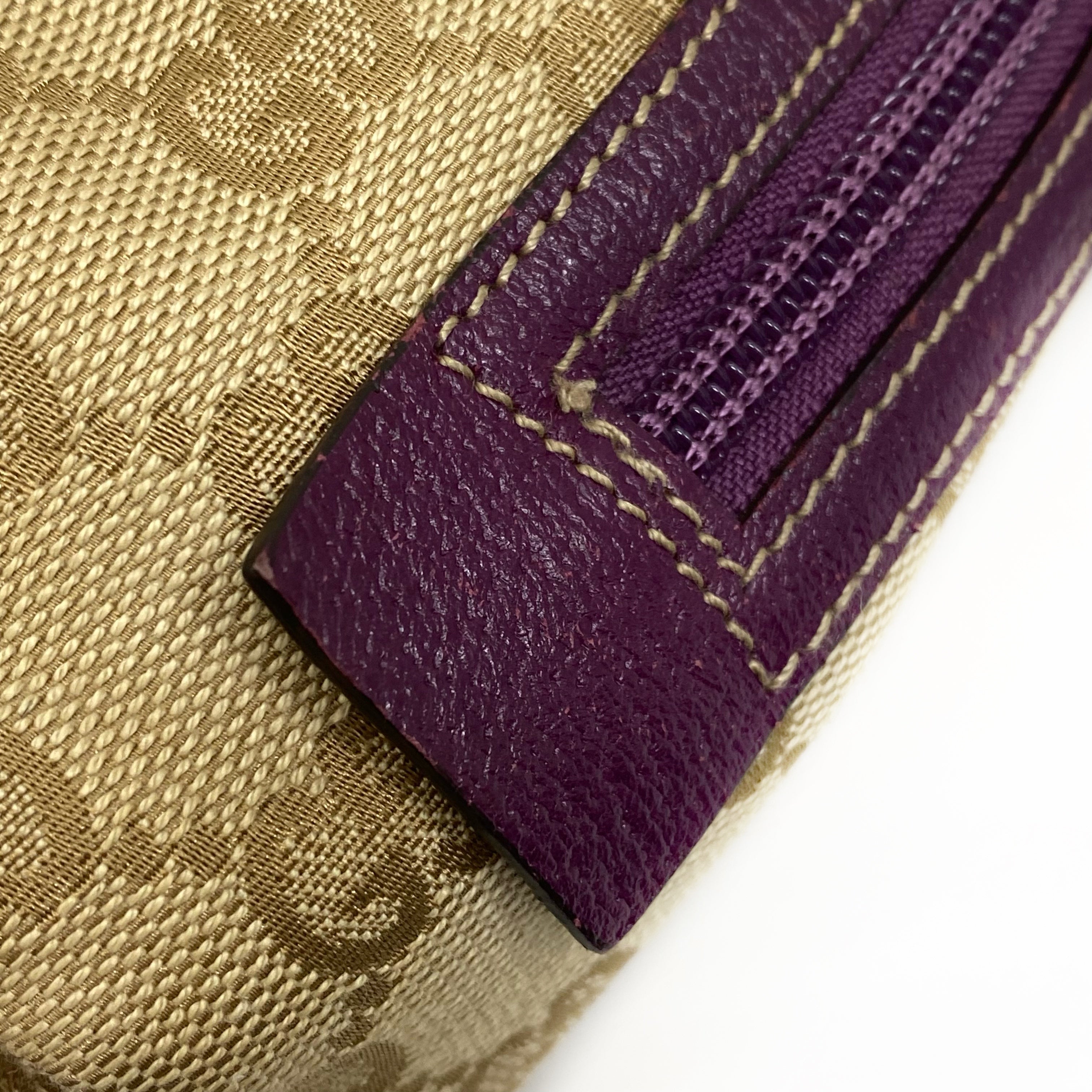 ☆Gucci古馳 Beige GG Supreme Purple Calfskin Handbag 124542 米色老花紫色牛皮手袋 - 257025129