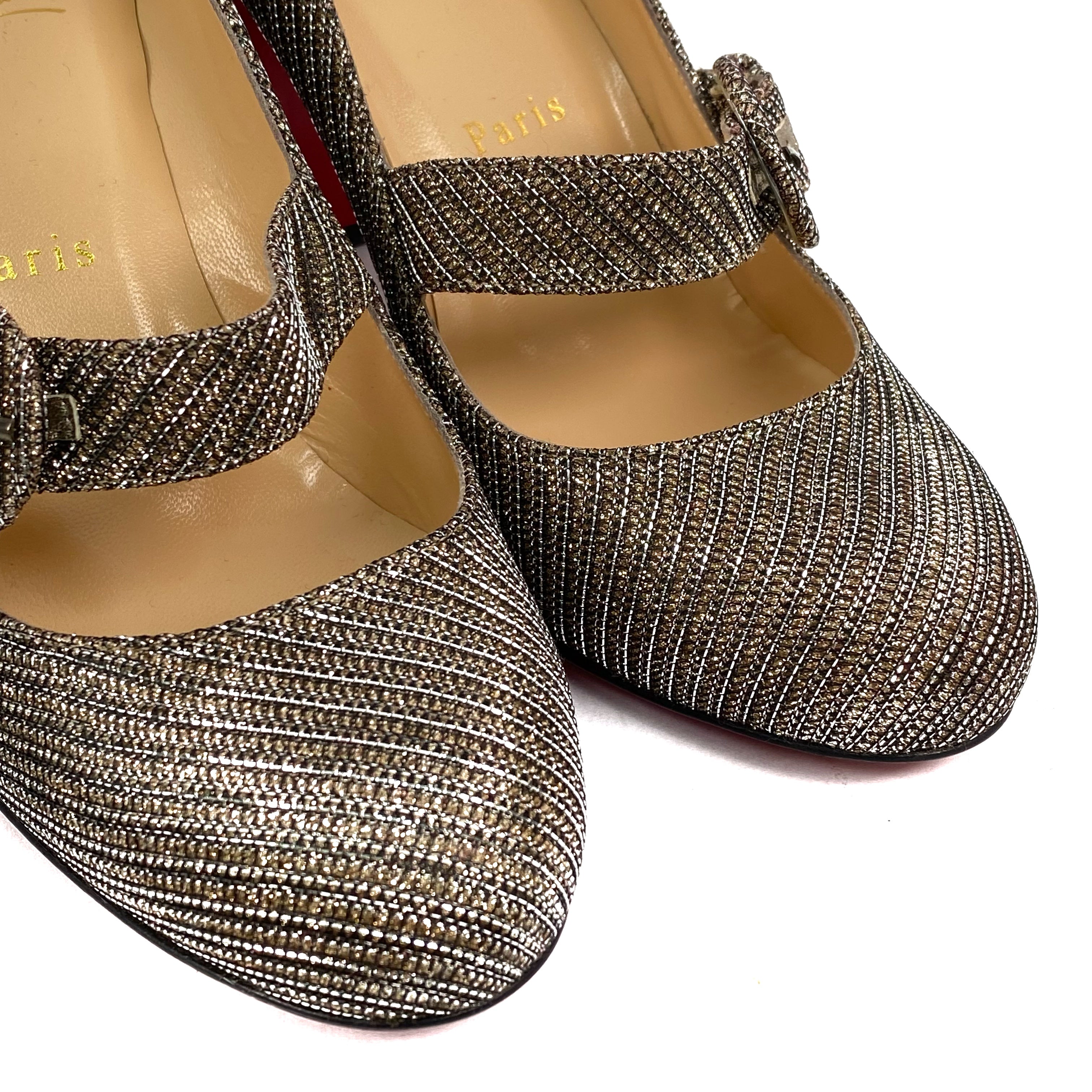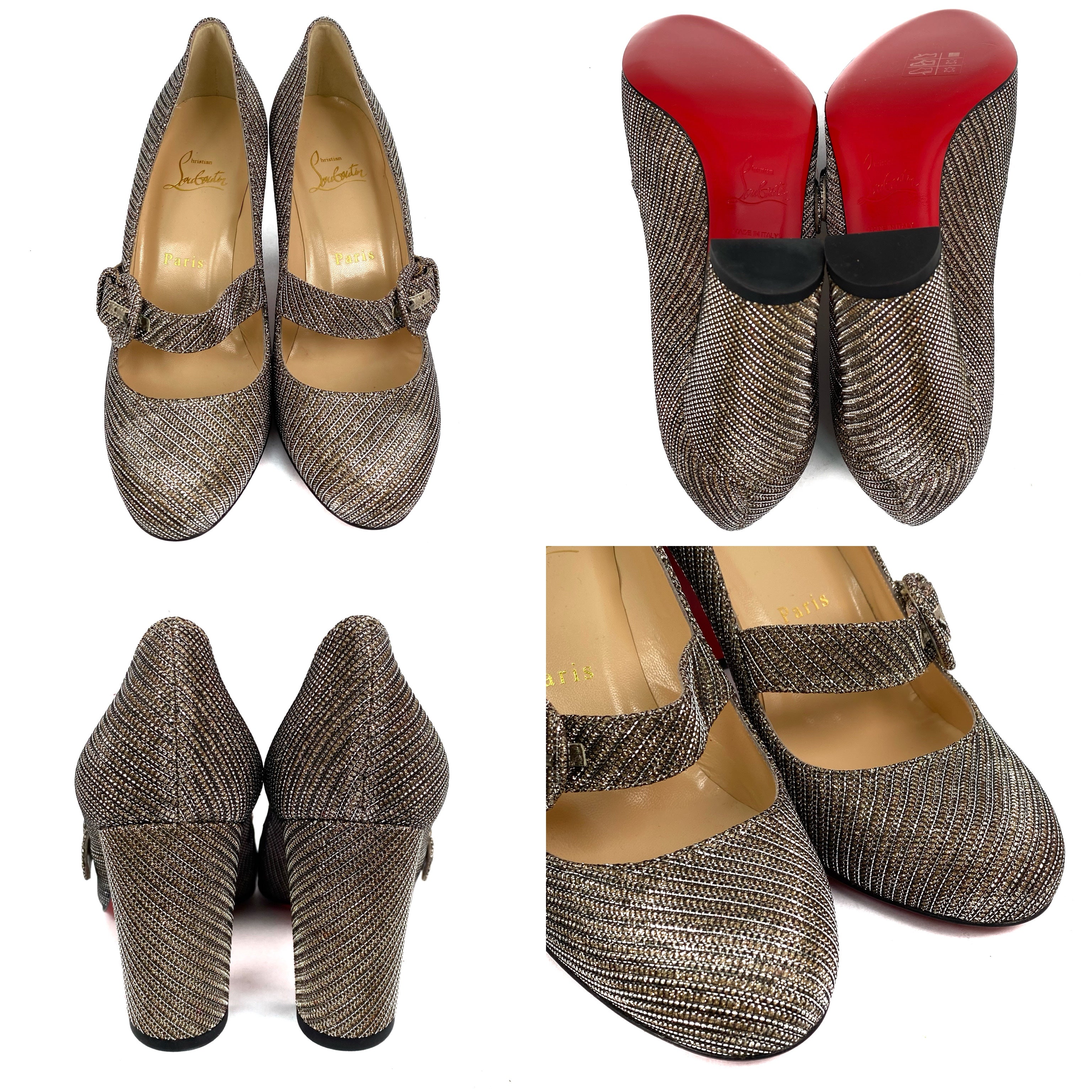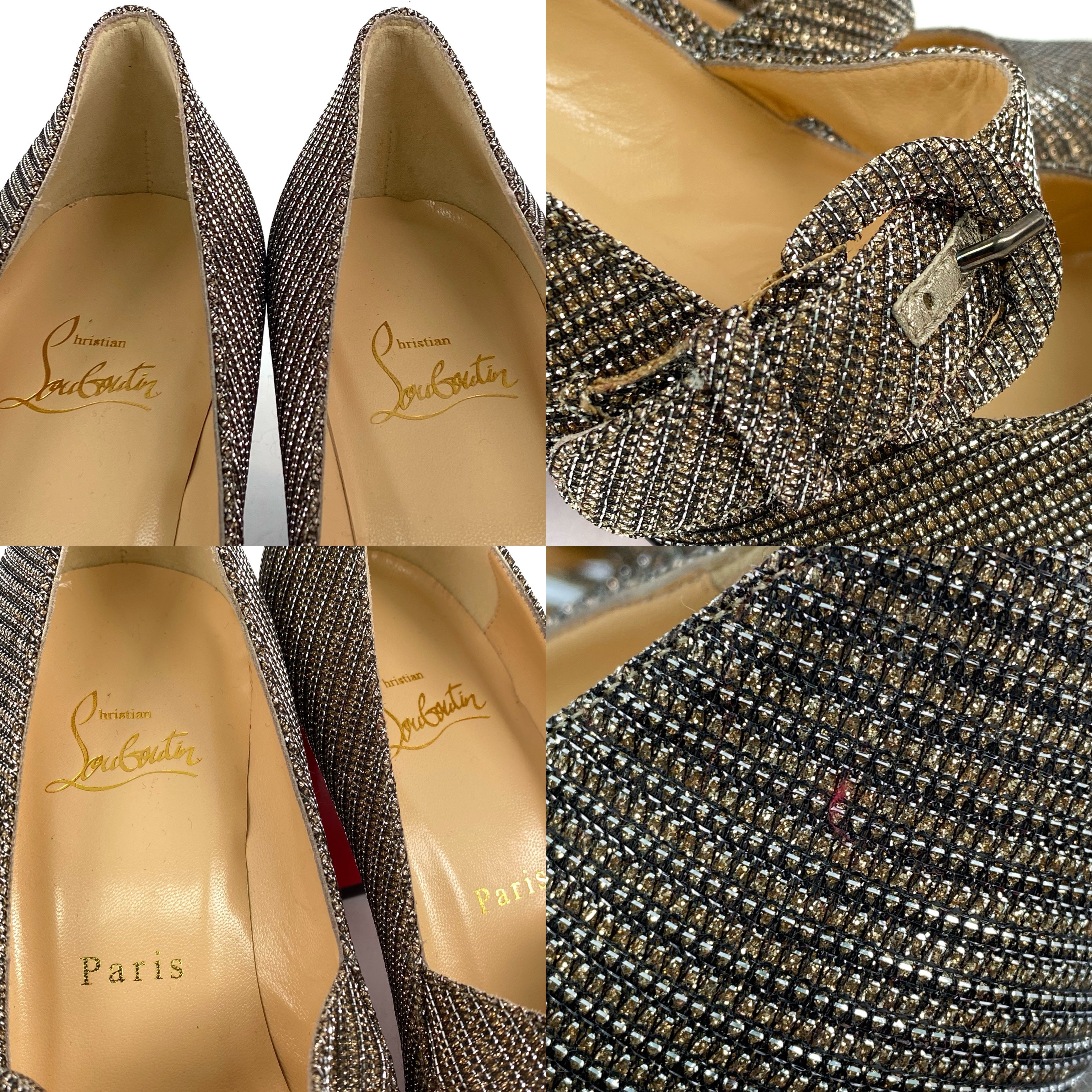 ☆ Christian Louboutin Gold & Silver Metallic Fabric High Heels #37.5 金色銀色金屬絲布料高跟鞋 37.5碼- 257027035