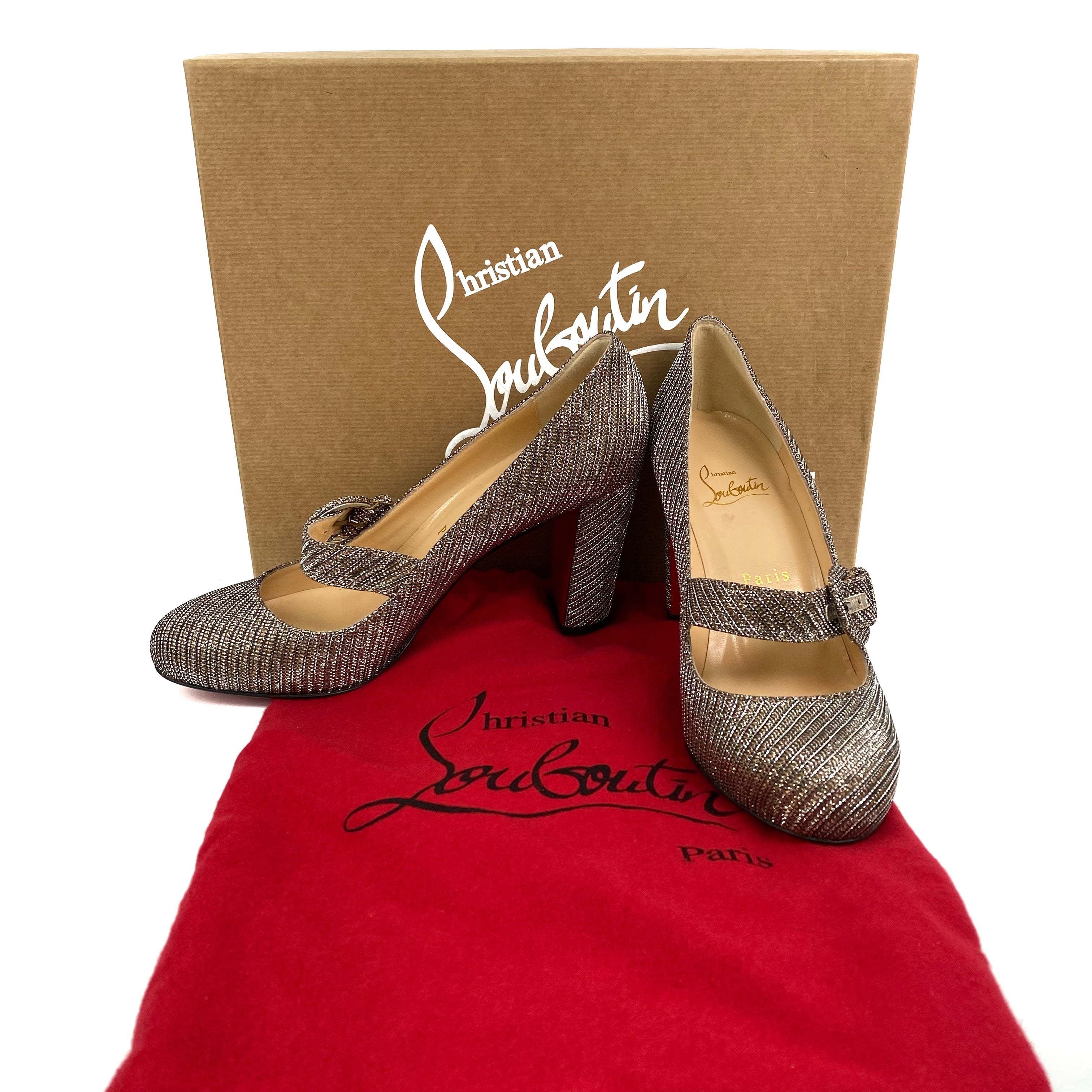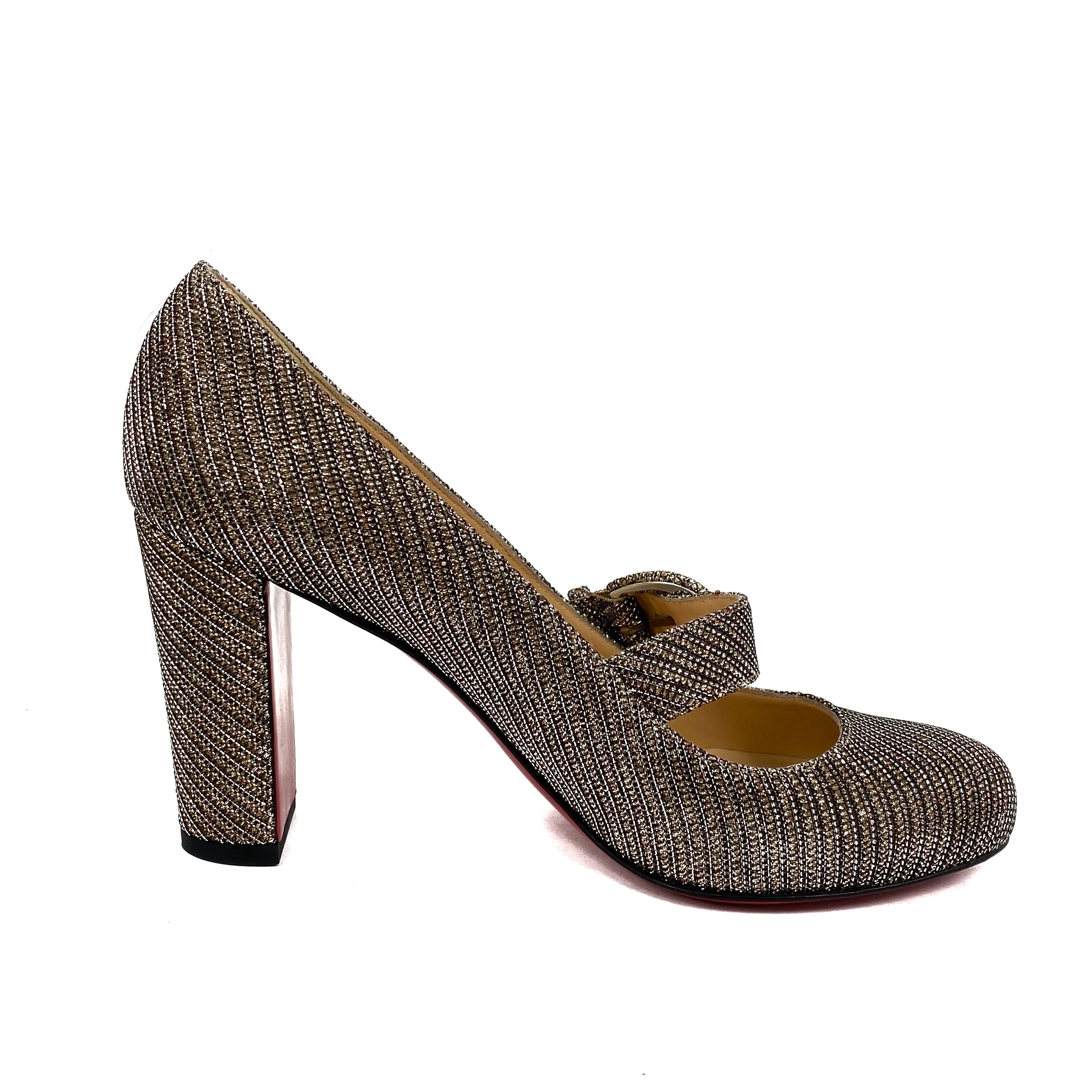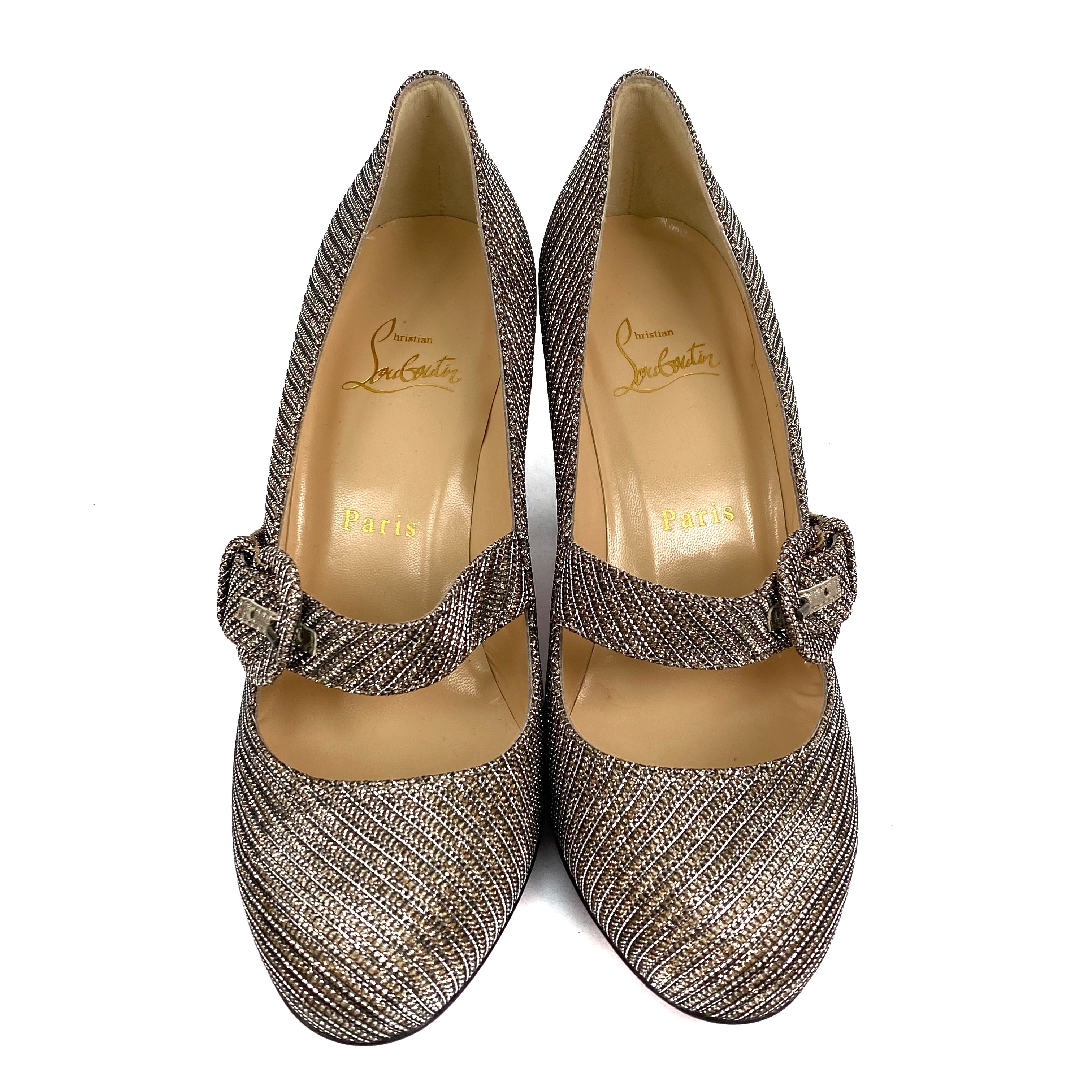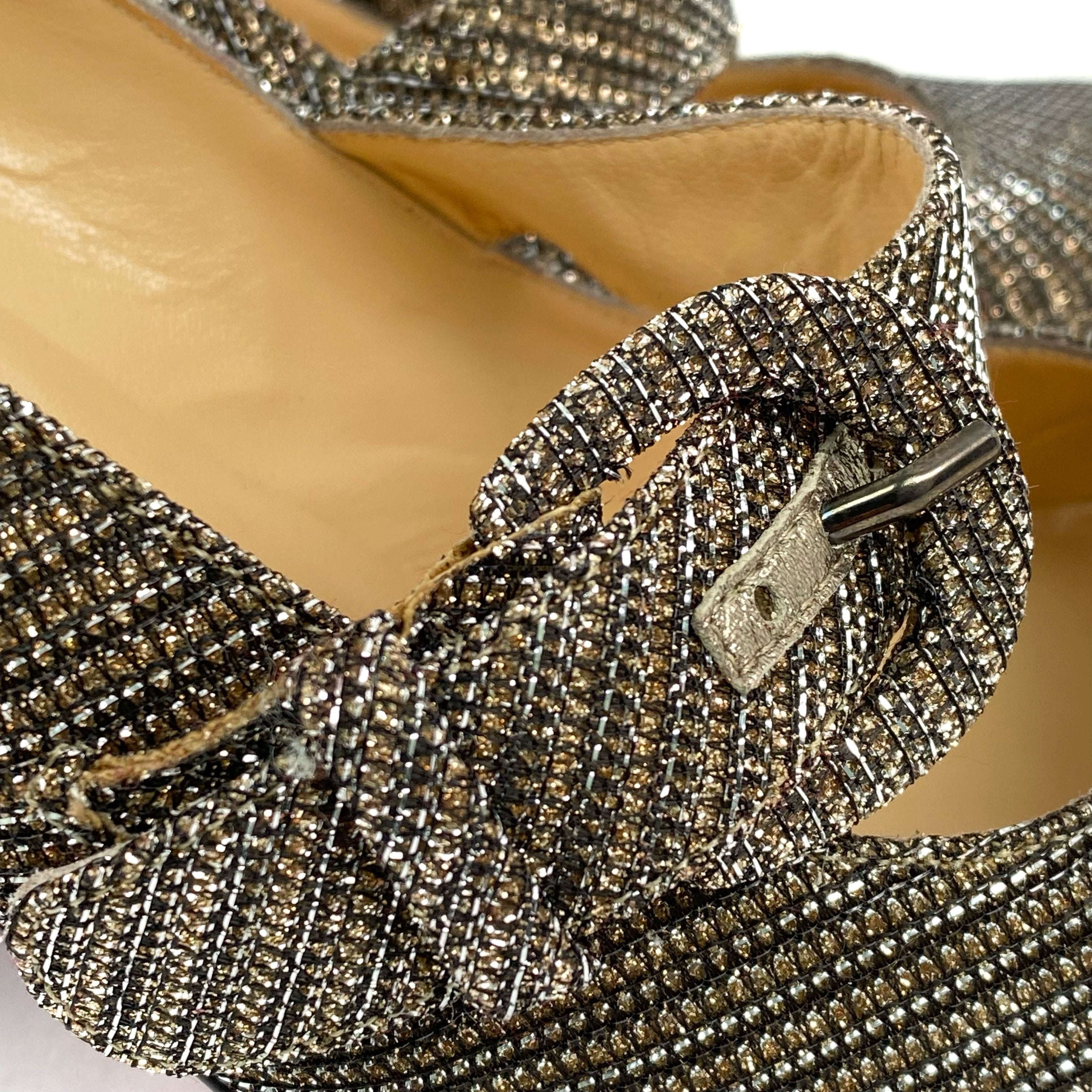 ☆ Christian Louboutin Gold & Silver Metallic Fabric High Heels #37.5 金色銀色金屬絲布料高跟鞋 37.5碼- 257027035