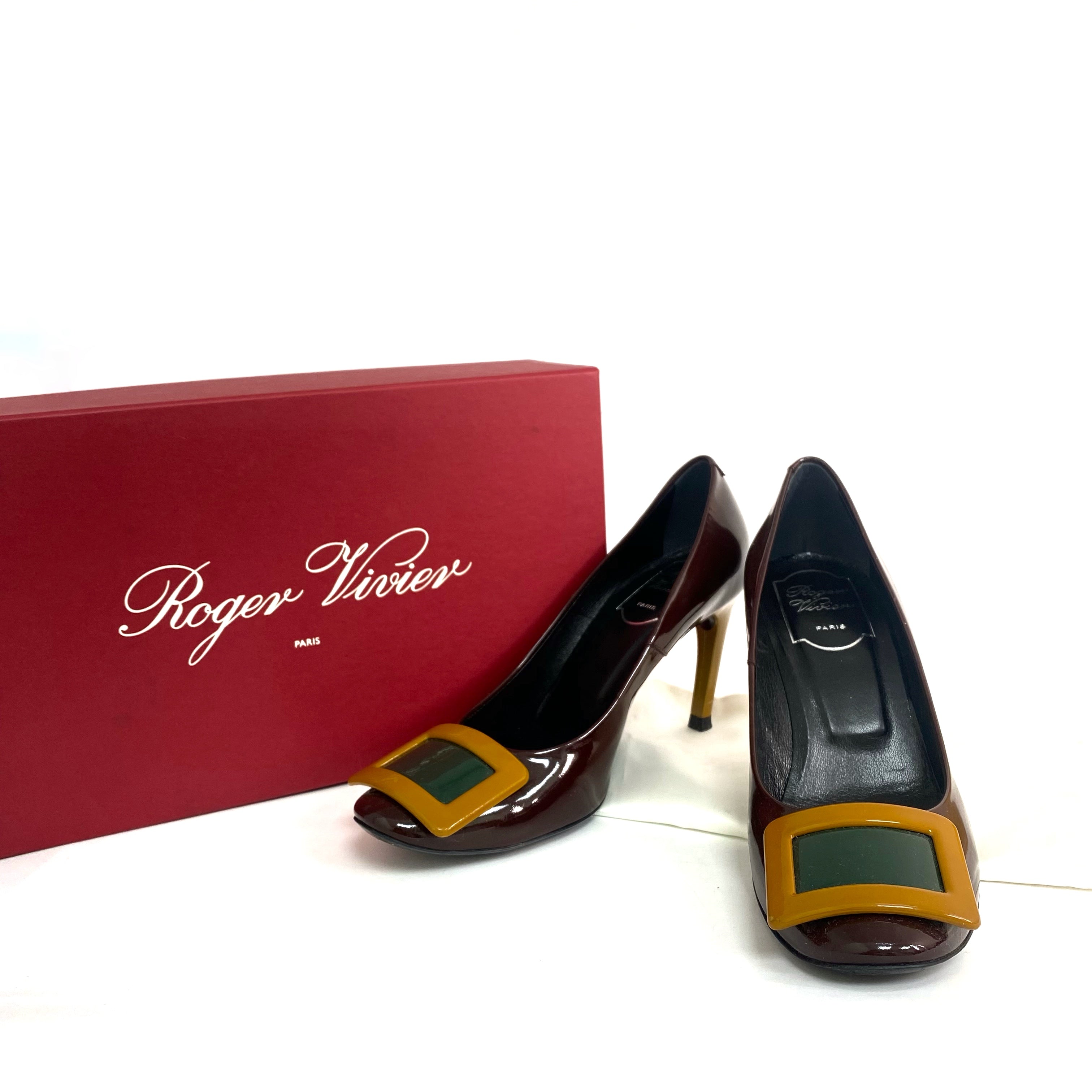 ☆ Roger Vivier 羅傑·維維亞 Dark Brown Patent Leather High Heels Shoes #36 深啡色漆皮高跟鞋 36 碼 - 257027921