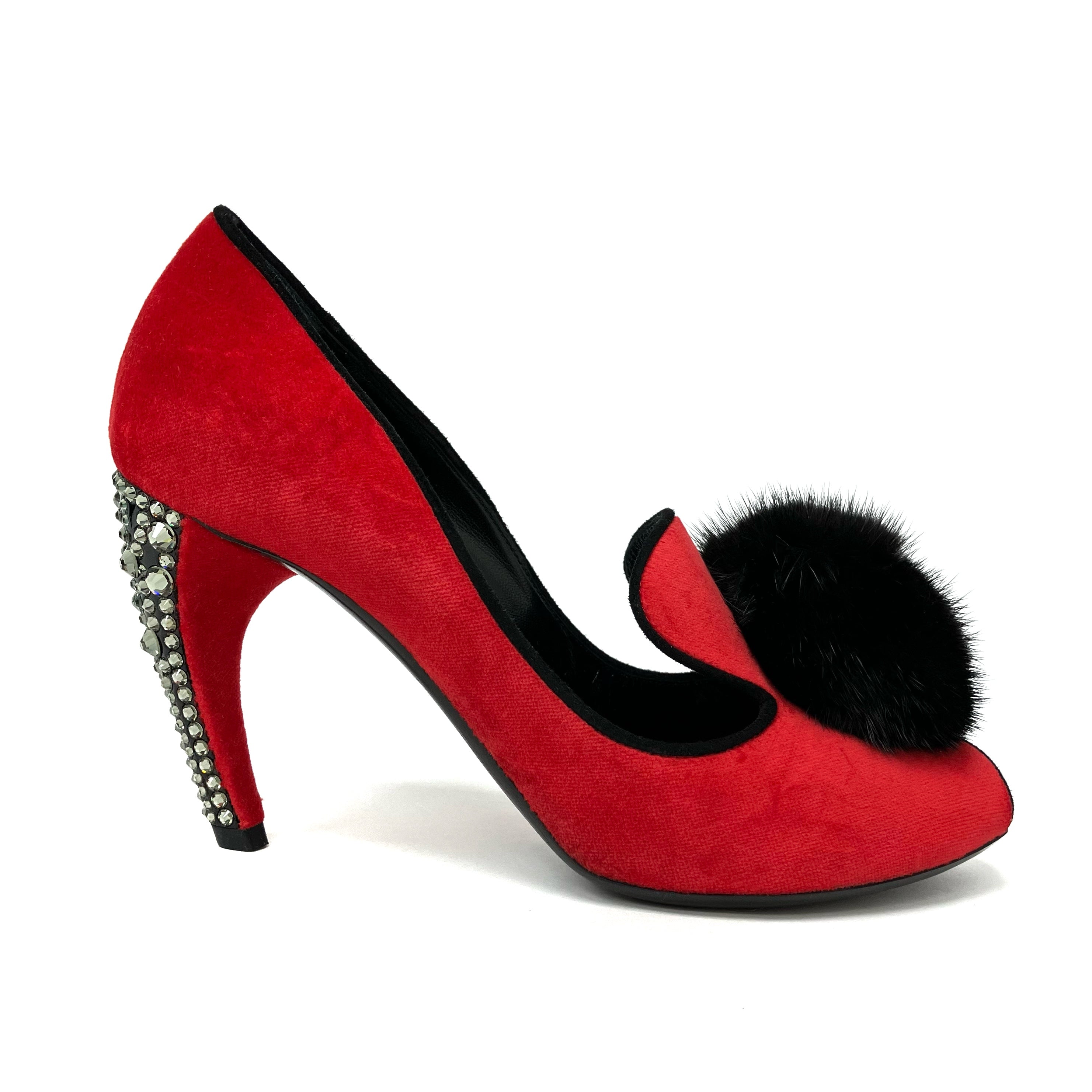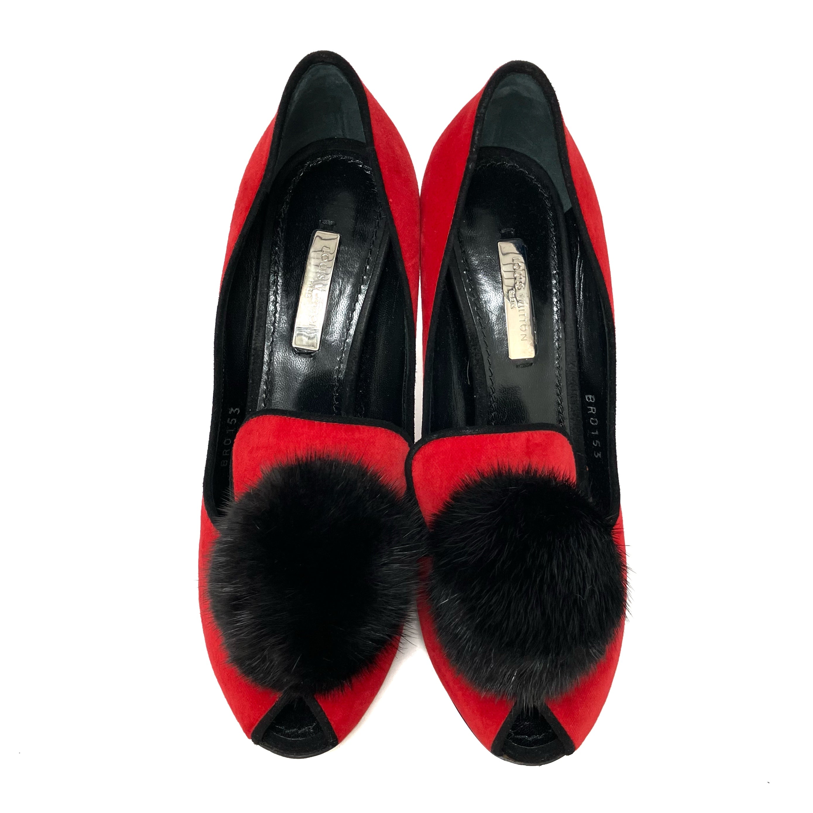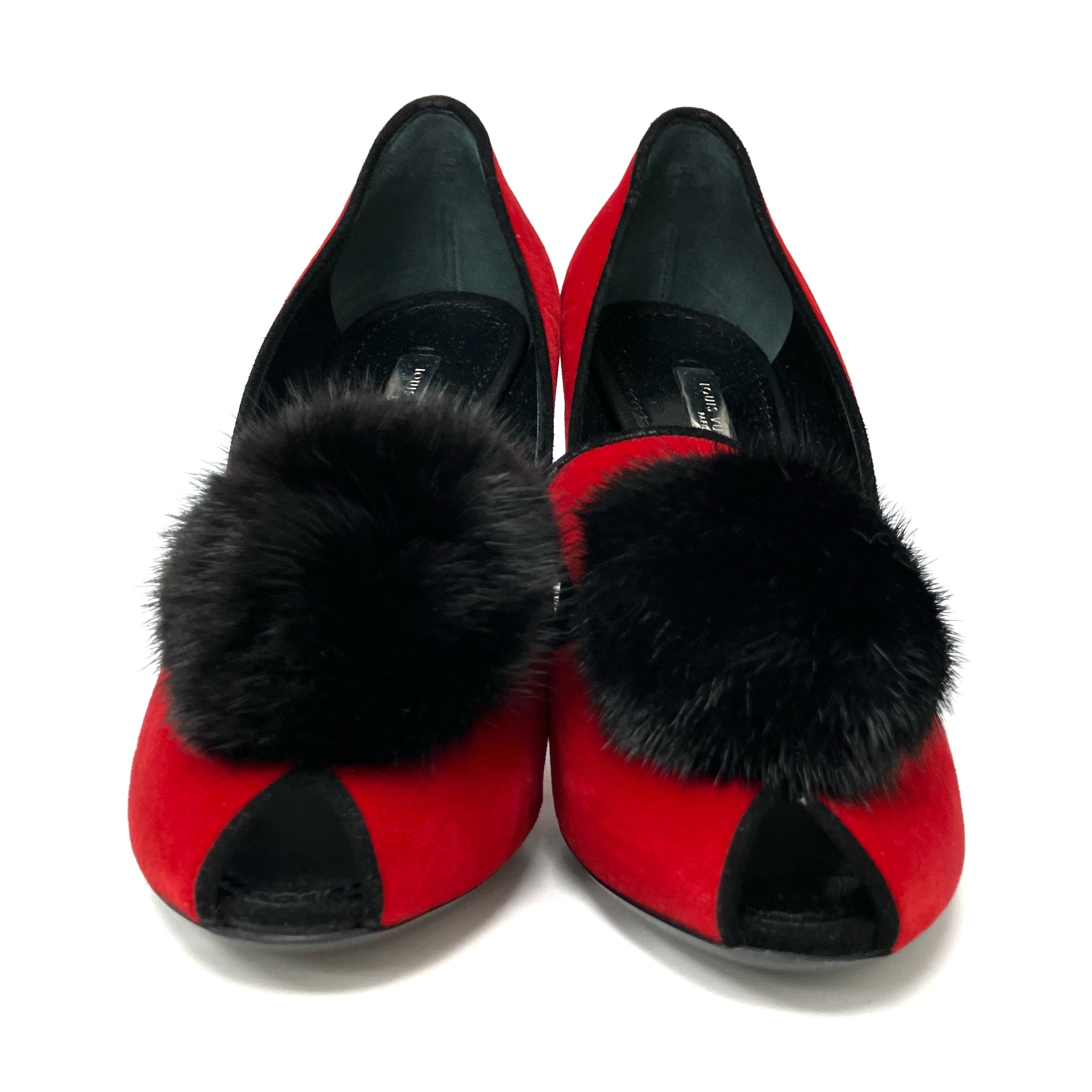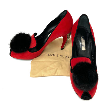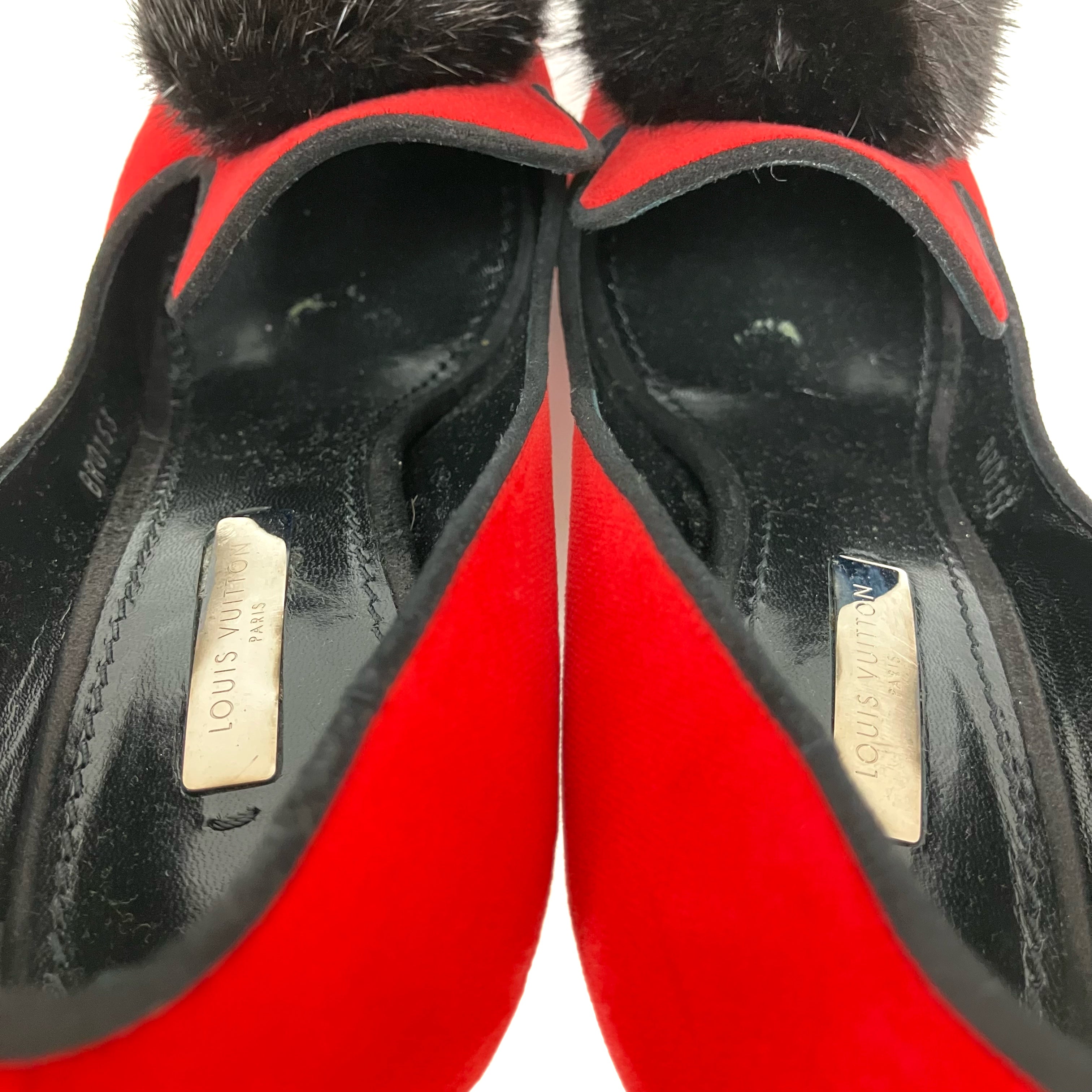 ☆ Louis Vuitton 路易威登 Red Velvet Fur Rhinestone Heels #36 紅色天鵝絨毛毛水鑽高跟鞋36碼 - 267002267