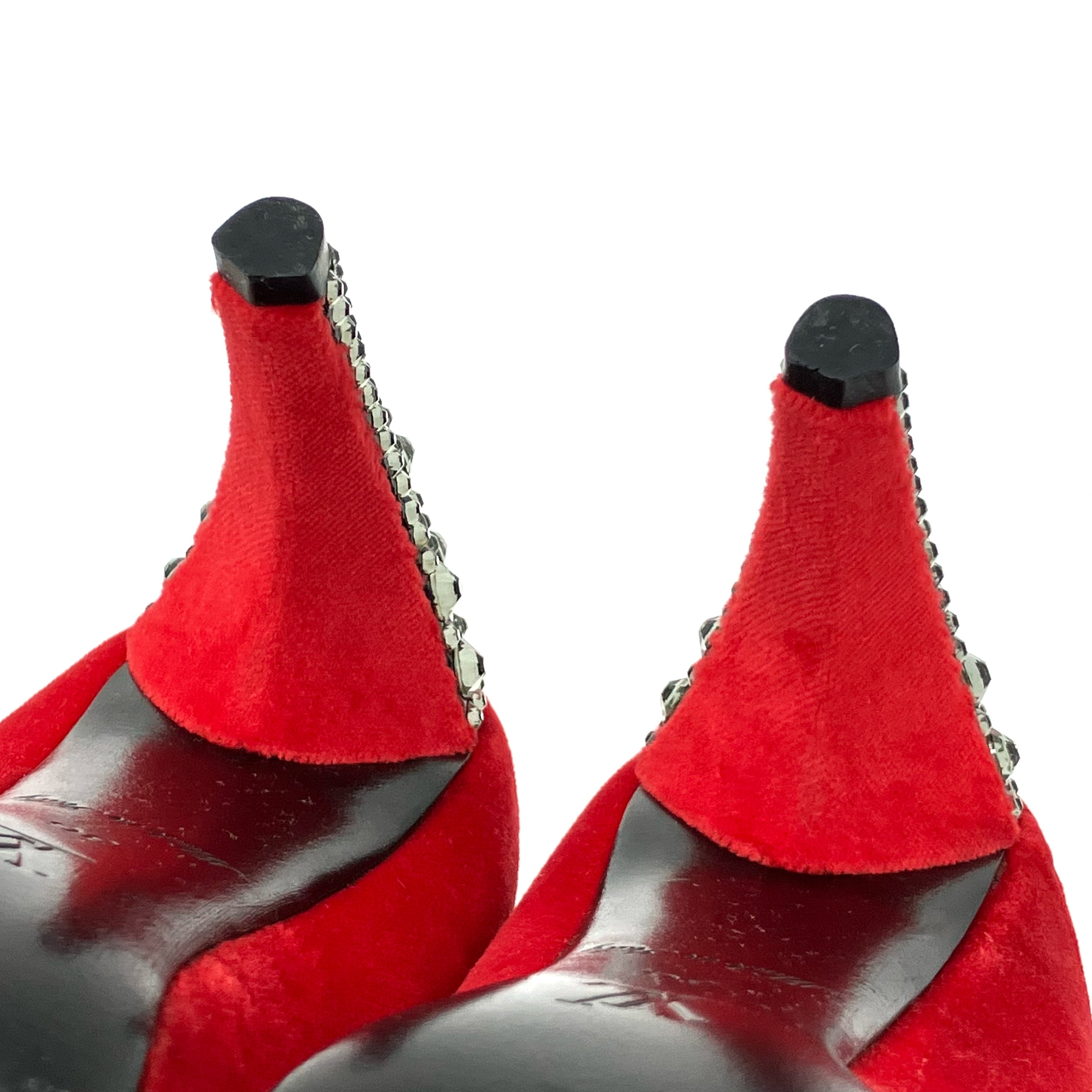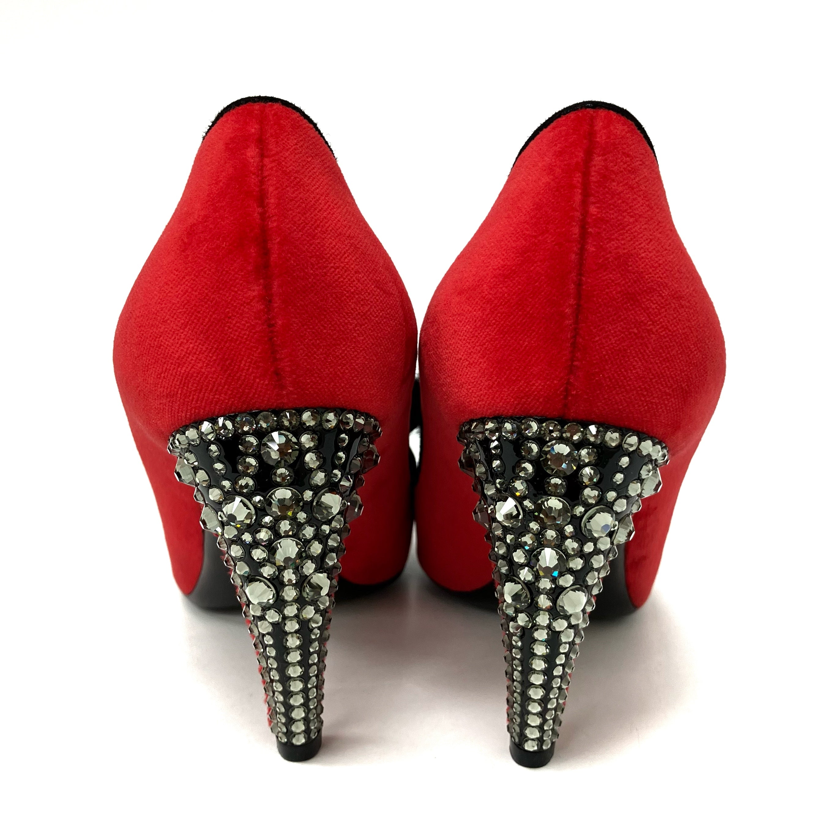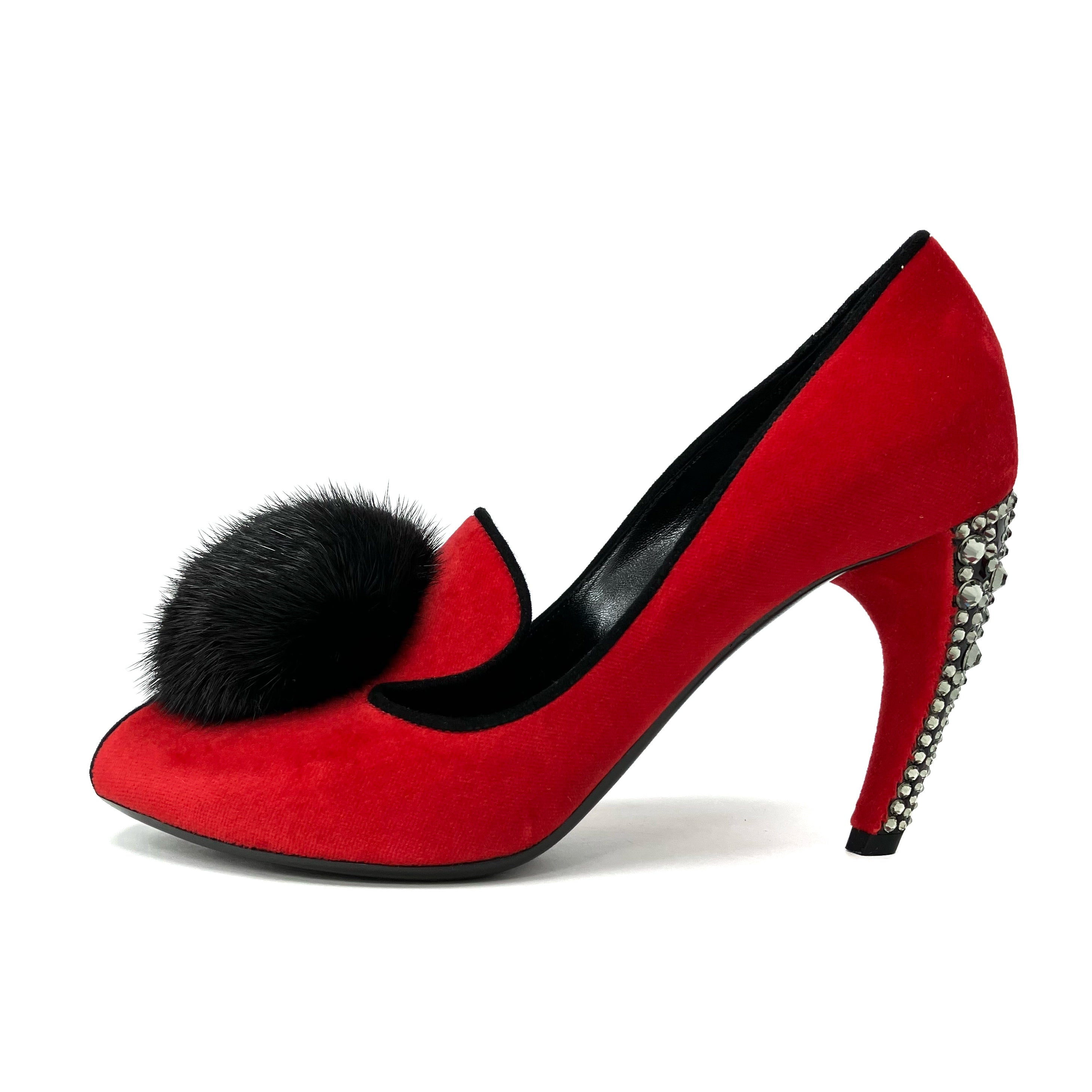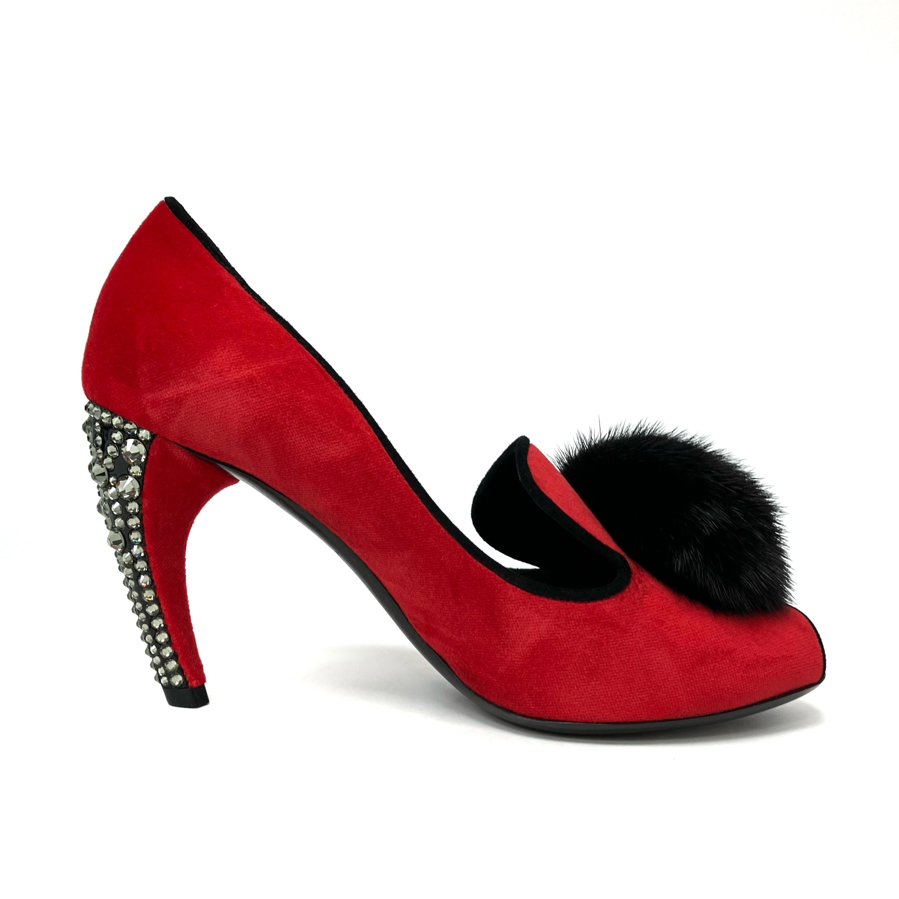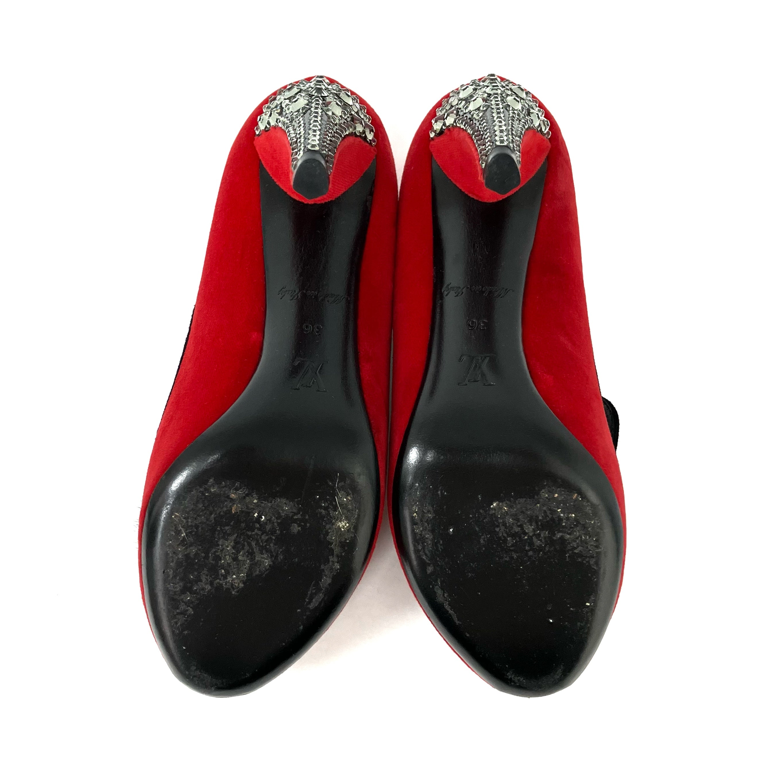 ☆ Louis Vuitton 路易威登 Red Velvet Fur Rhinestone Heels #36 紅色天鵝絨毛毛水鑽高跟鞋36碼 - 267002267