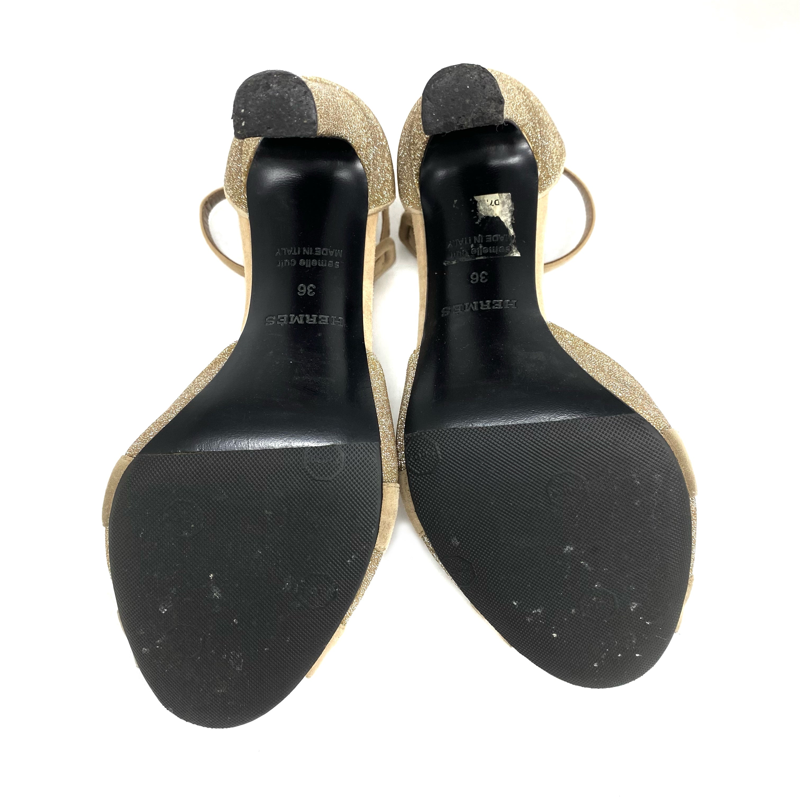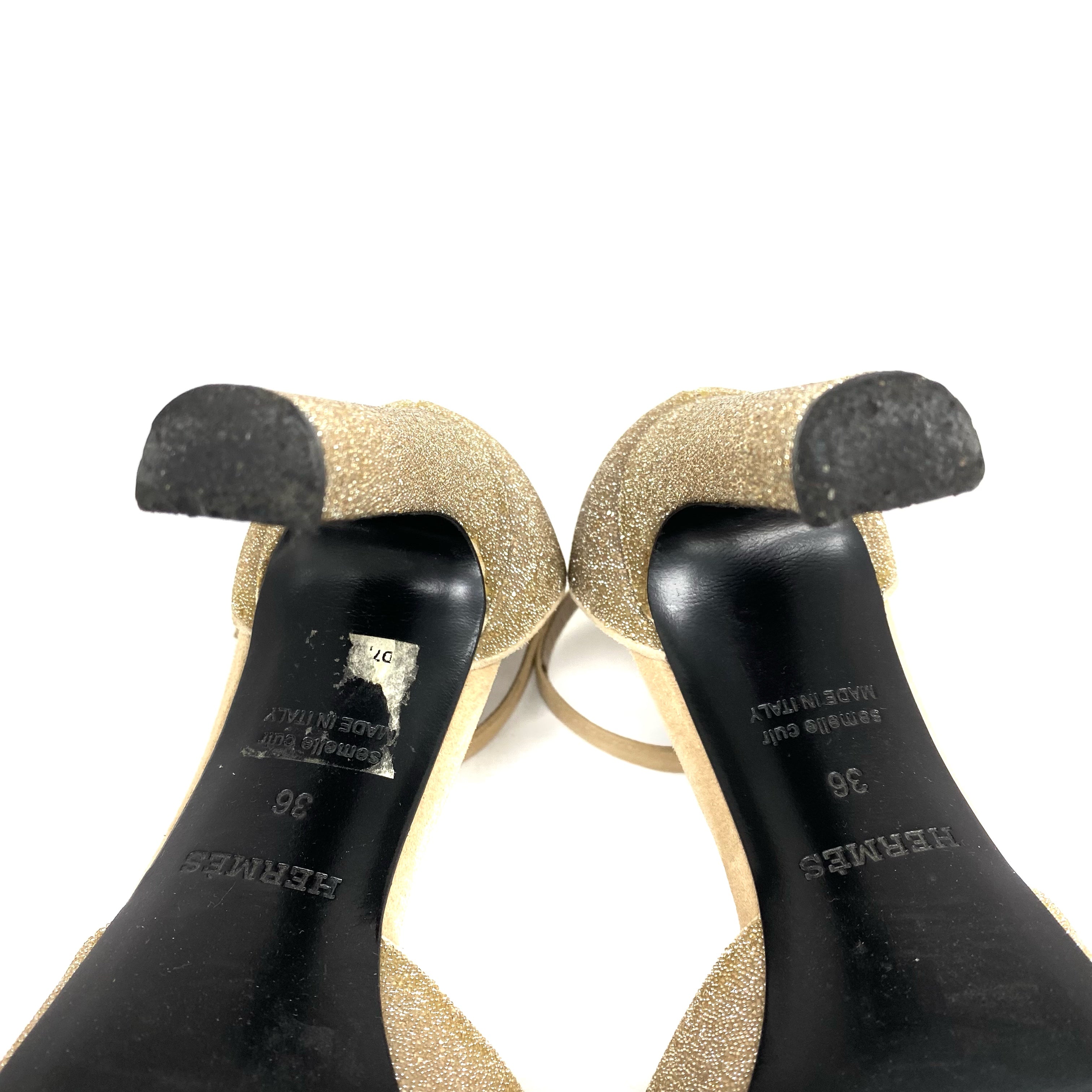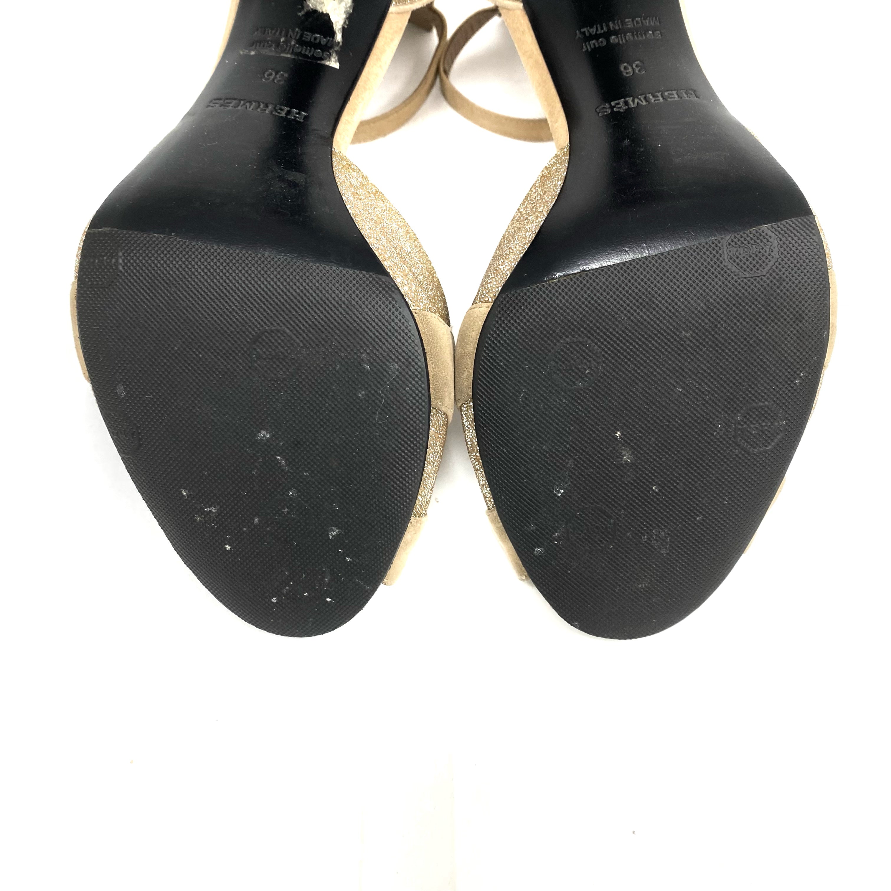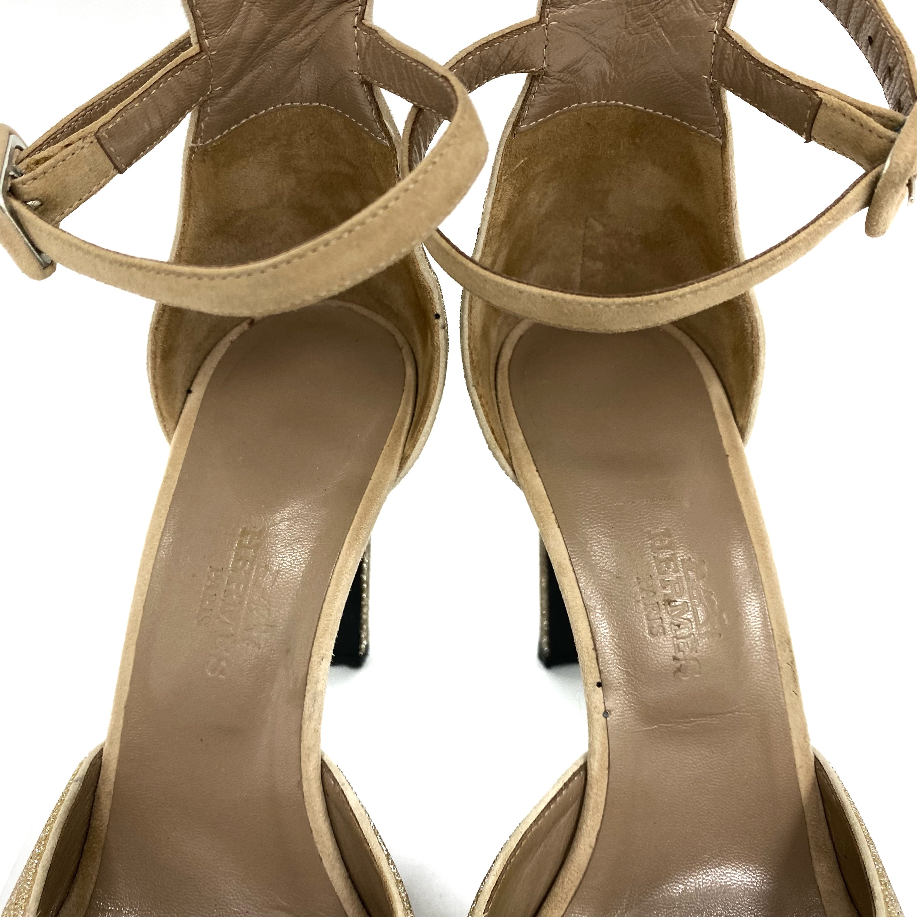 ☆ Hermes 愛馬仕 Beige Suede Gold Glitter Heels #36 米色麂皮金色閃粉高跟36碼 - 267004380