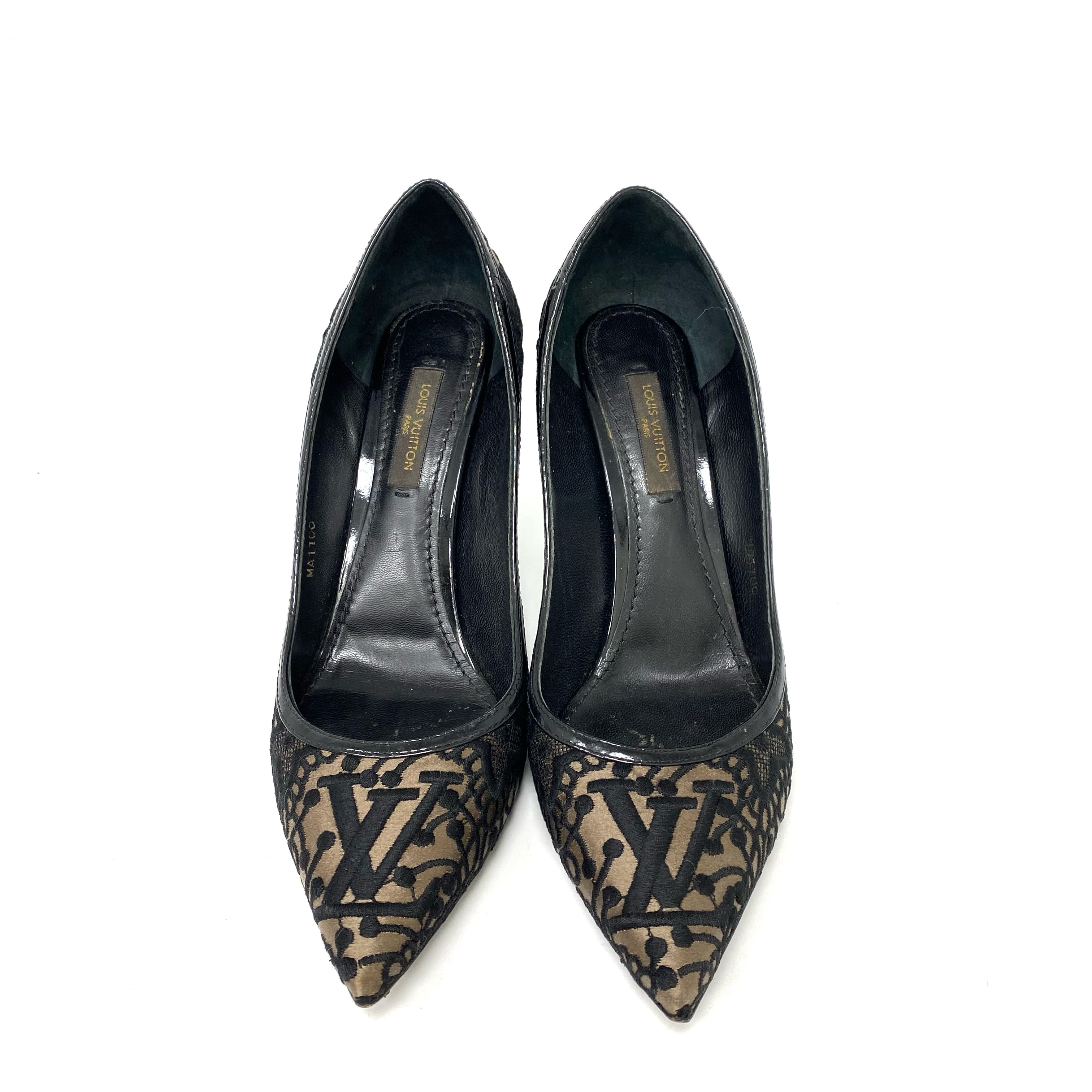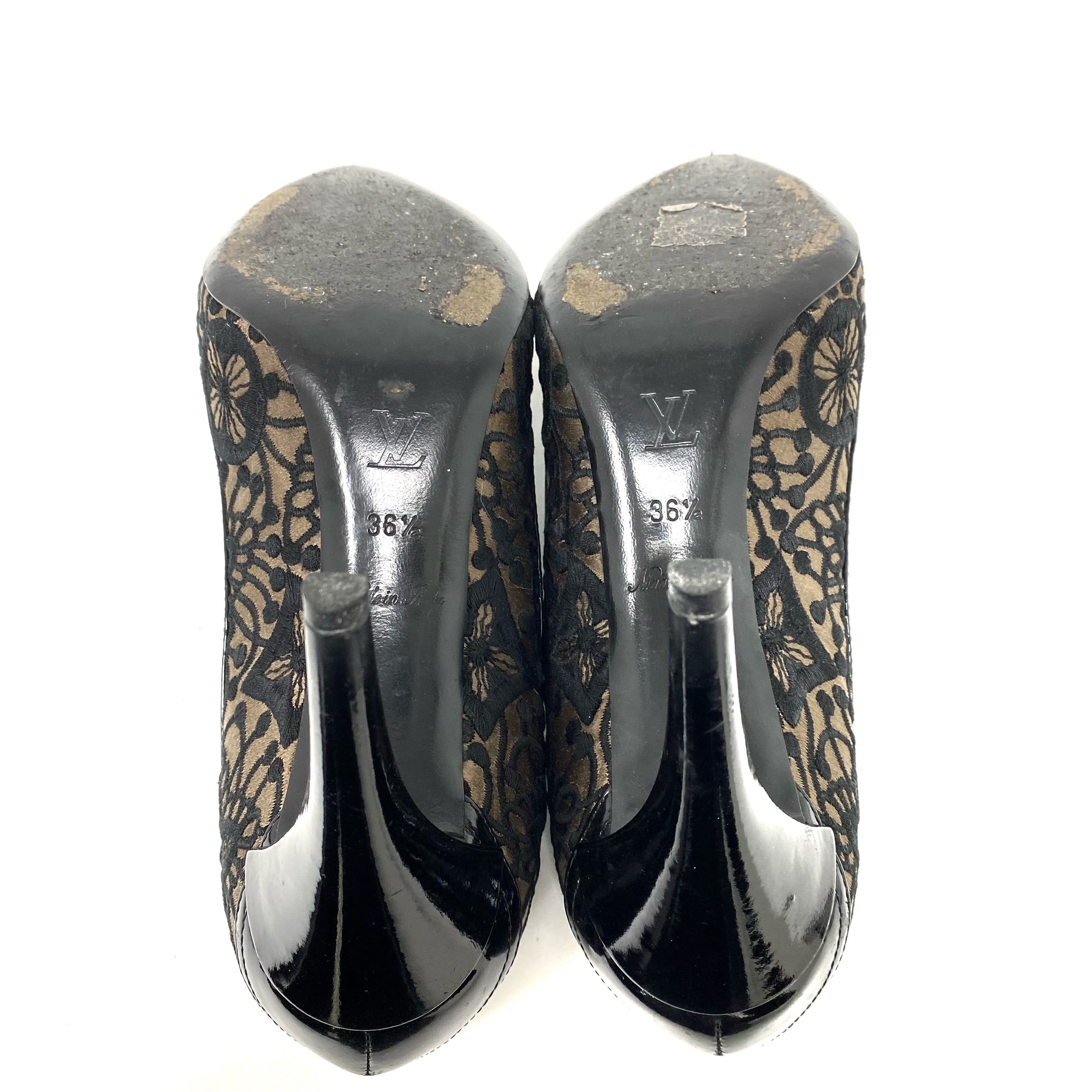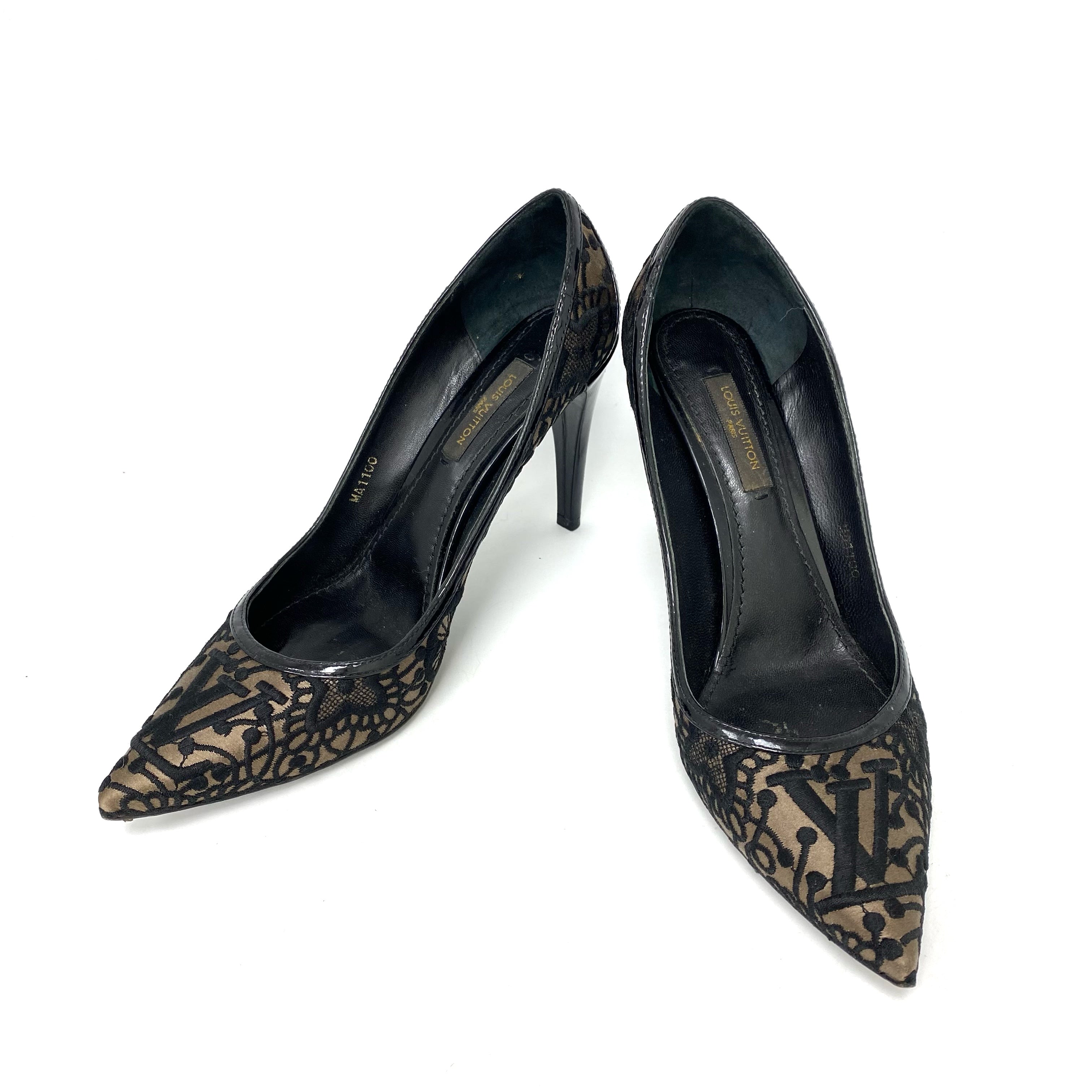 ☆ Louis Vuitton 路易威登 Black Satin Lace Heels #36.5 黑色緞質蕾絲高跟鞋36.5碼 - 257026616