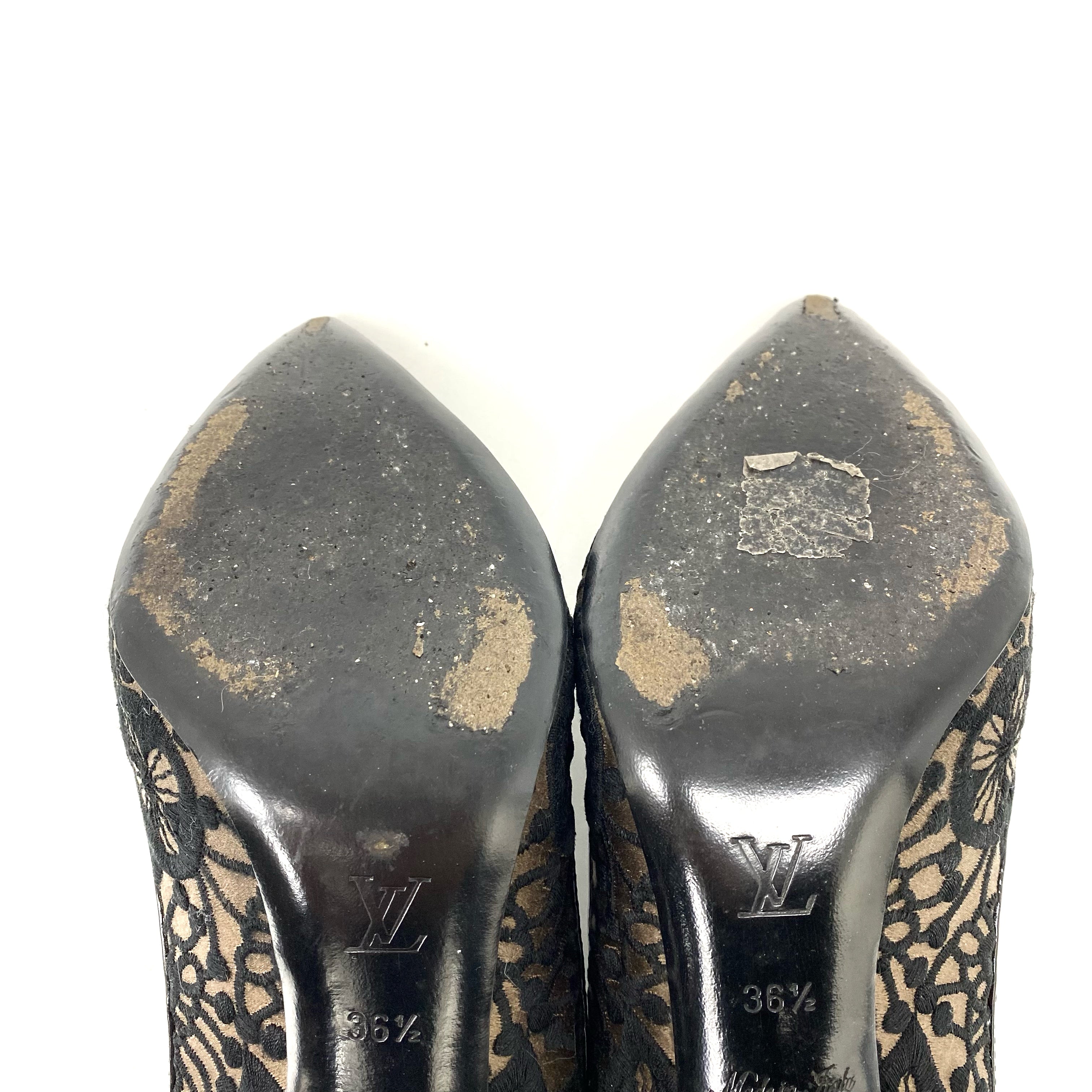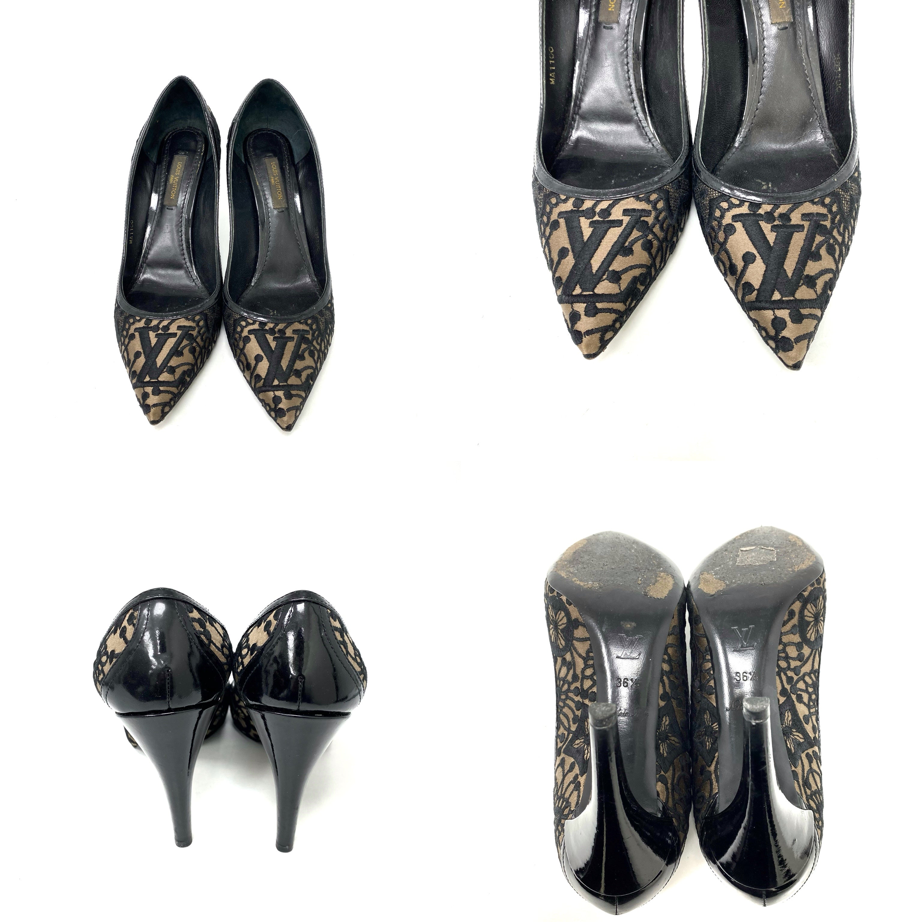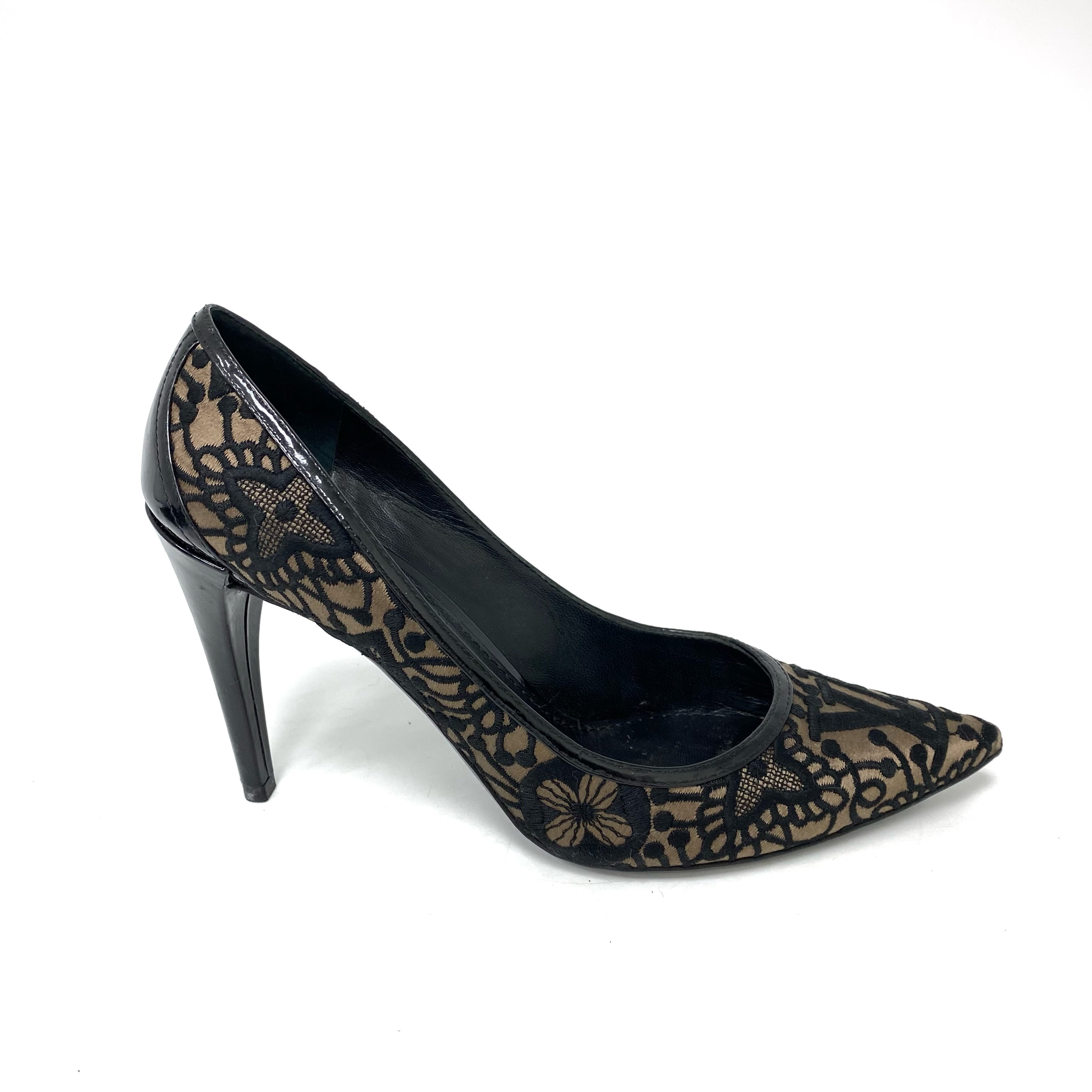 ☆ Louis Vuitton 路易威登 Black Satin Lace Heels #36.5 黑色緞質蕾絲高跟鞋36.5碼 - 257026616