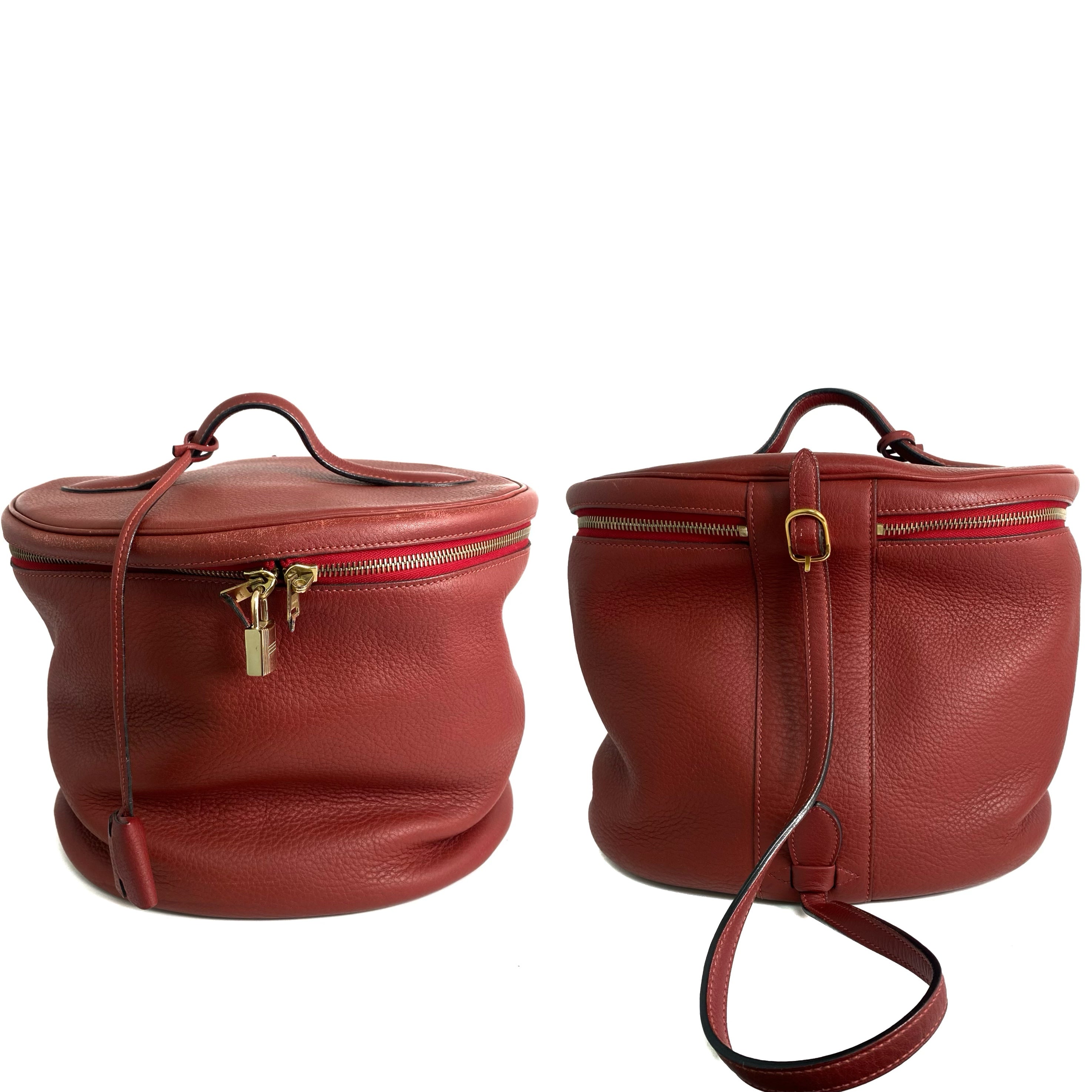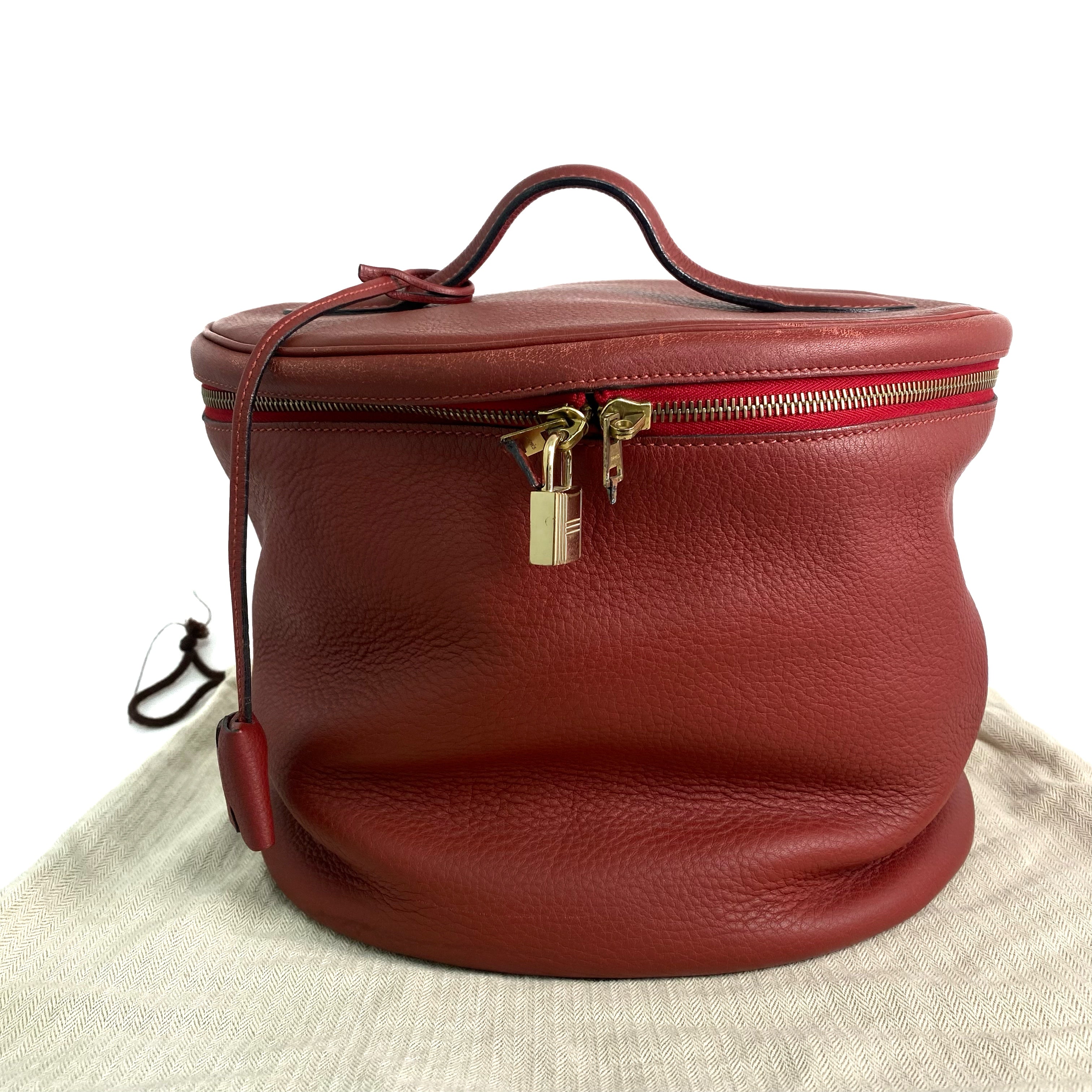 △ Hermes 愛馬仕 Brown Red Clemence Calfskin Gold Plated Metal Intercity Vanity Case Stamp [R] 棕紅色粒紋小牛皮鍍金金屬化妝箱[R]刻 - 257020922