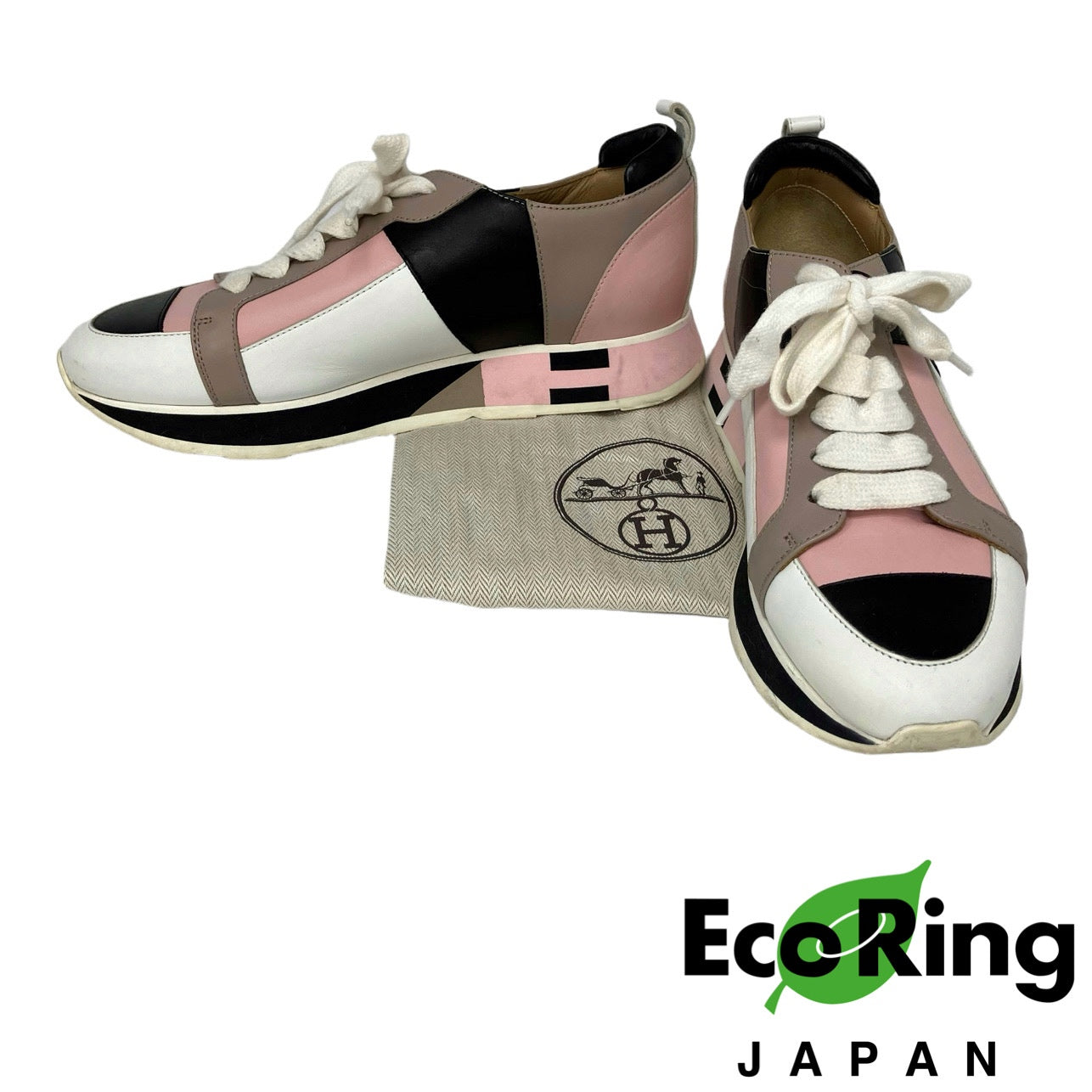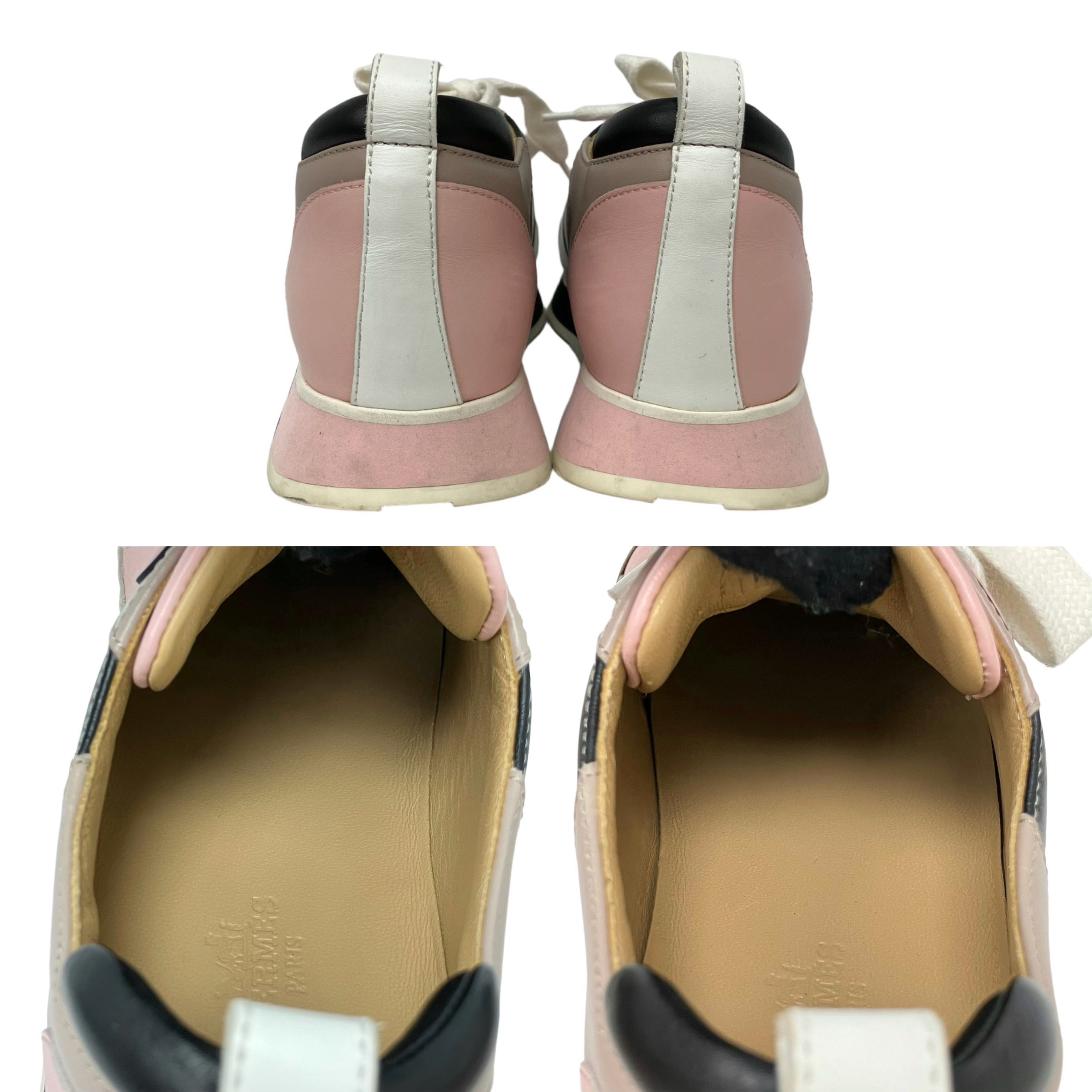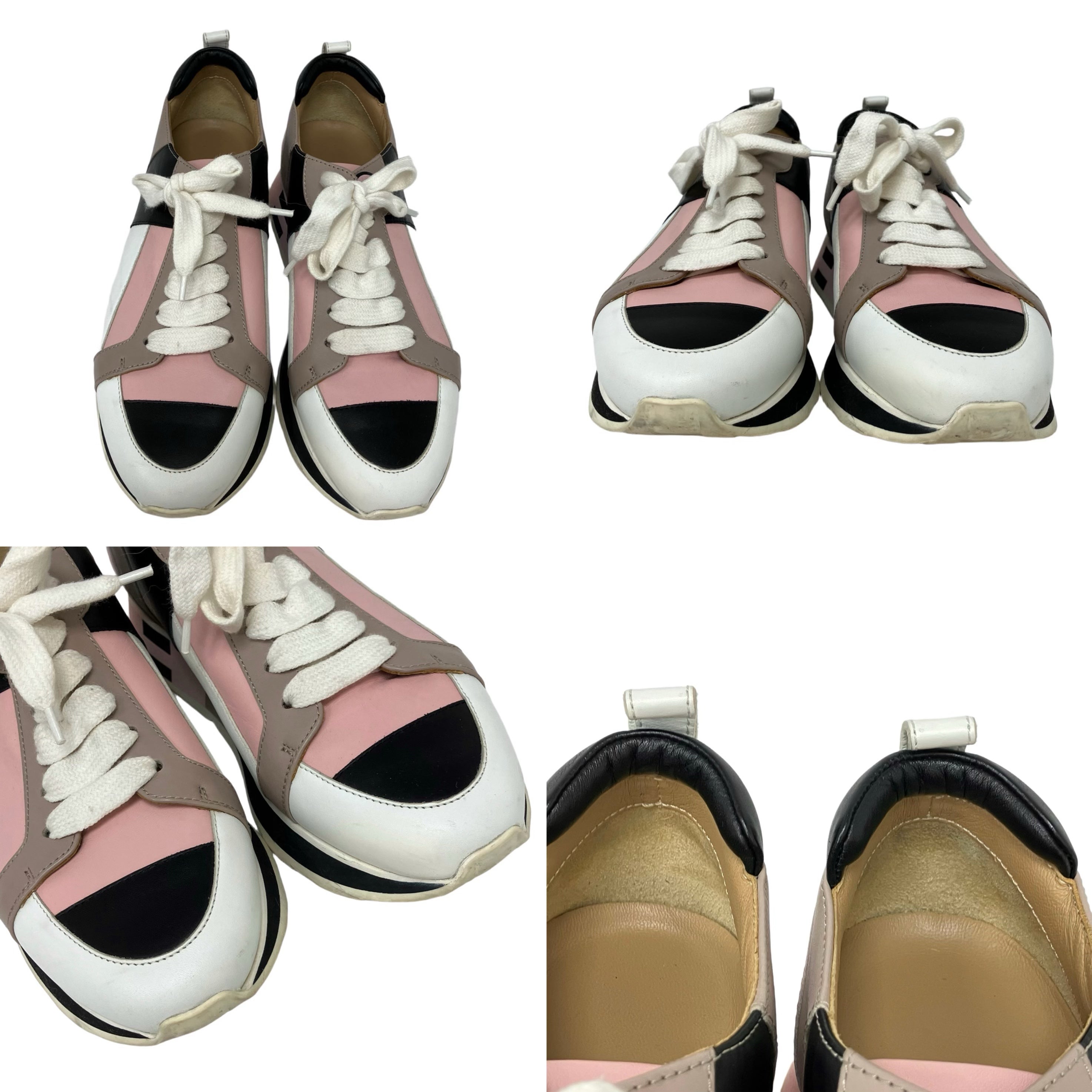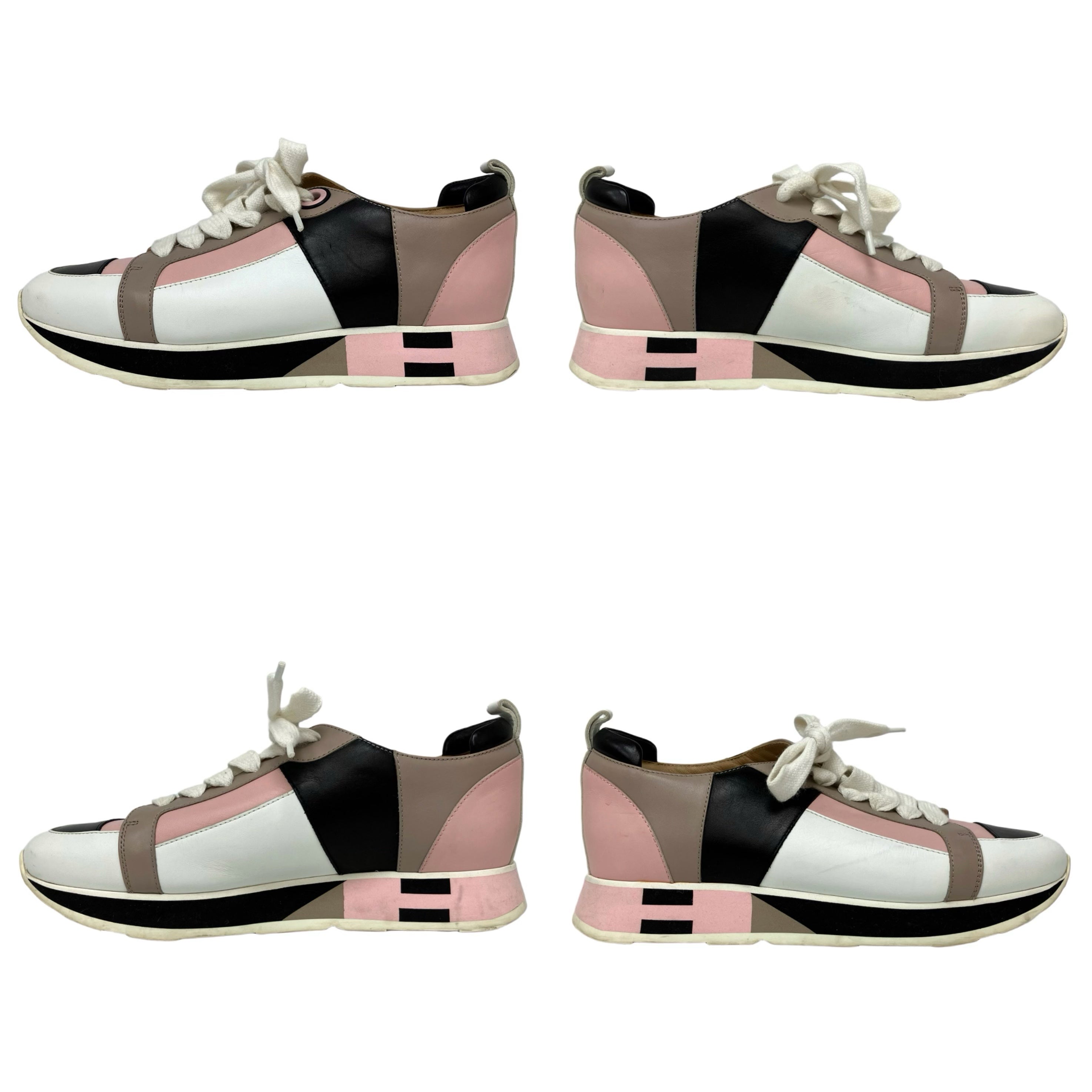 ☆Hermes愛馬仕 White, Beige, Pink Calfskin Sneakers 36.5 Size 白色, 淺褐色, 粉紅色小牛皮運動鞋 36.5 碼 -257022611