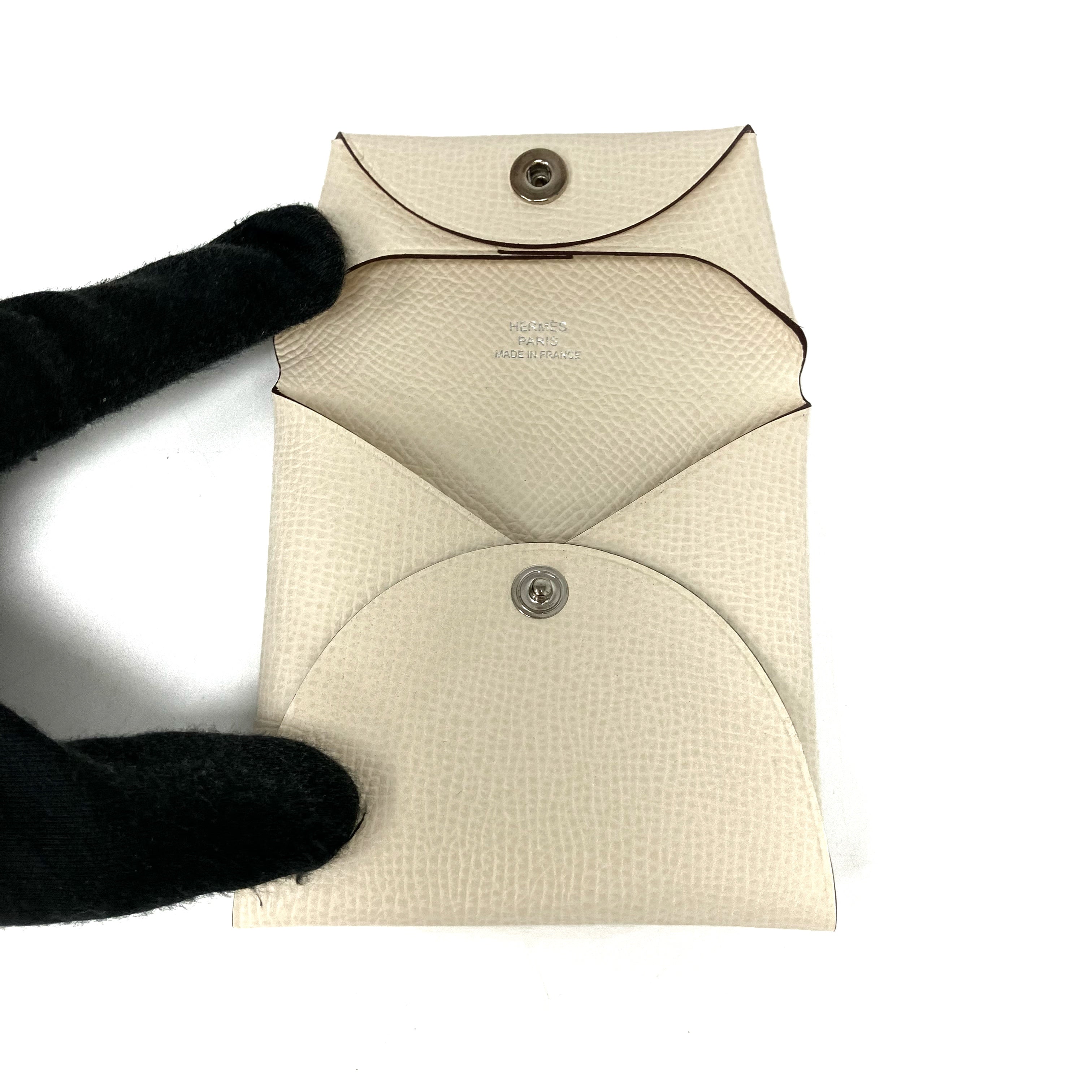 ☆ Hermes 愛馬仕 Beige White Epsom Calfskin Bastia Coin Case Stamp Z 米白色粒紋小牛皮散紙包 Z刻 - 257025458