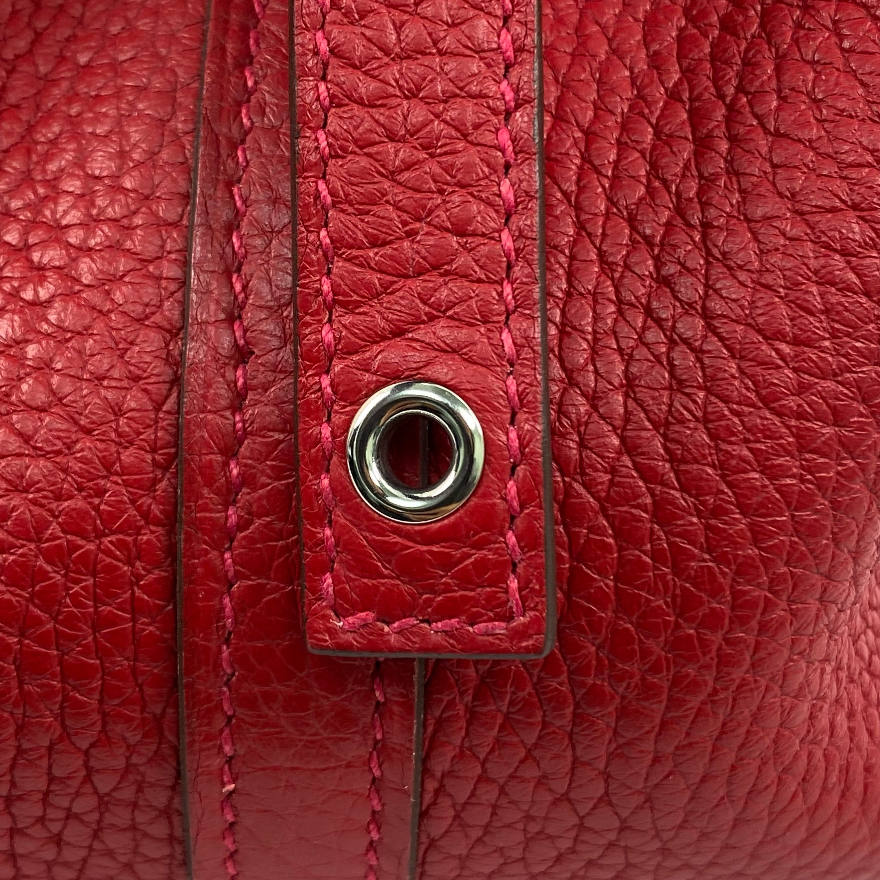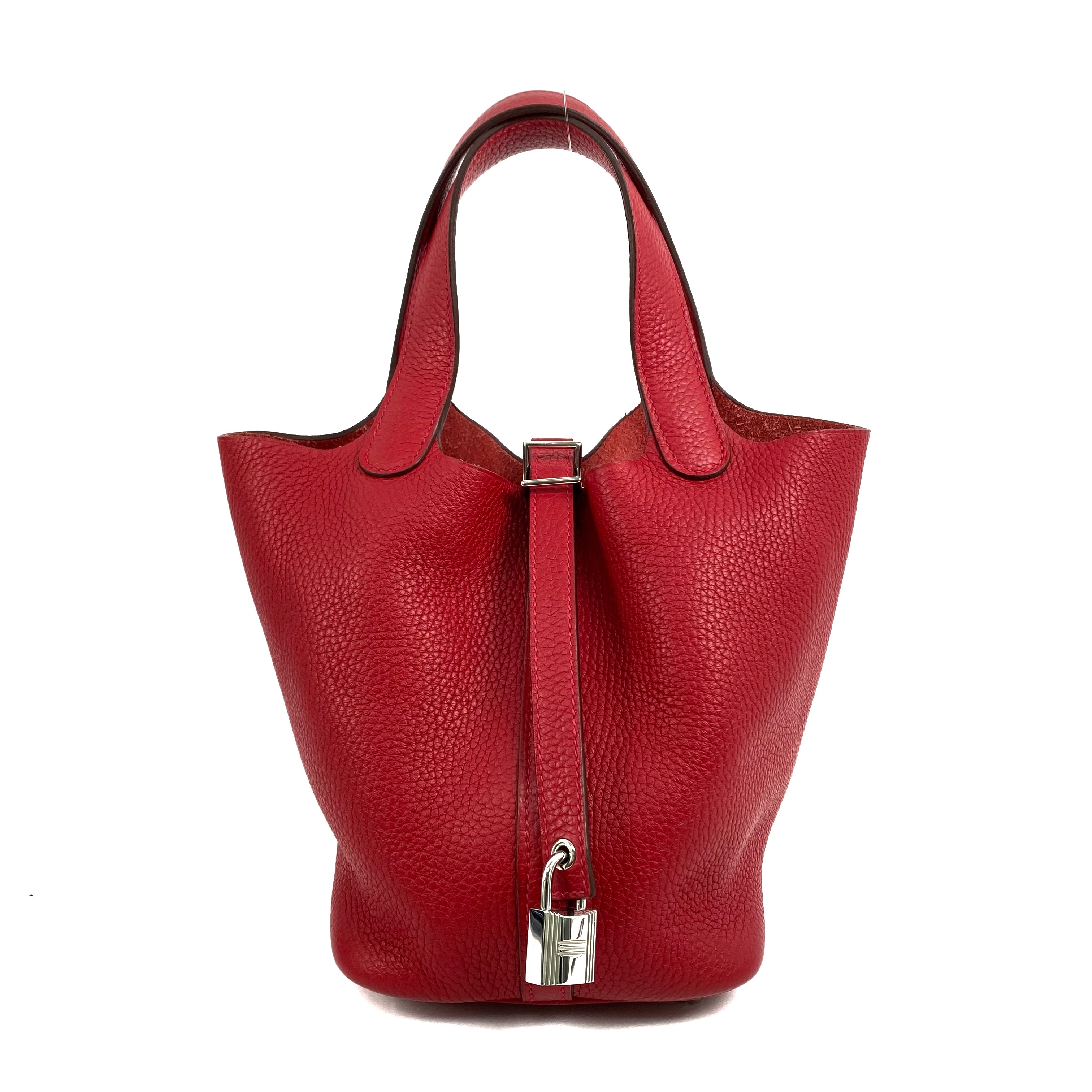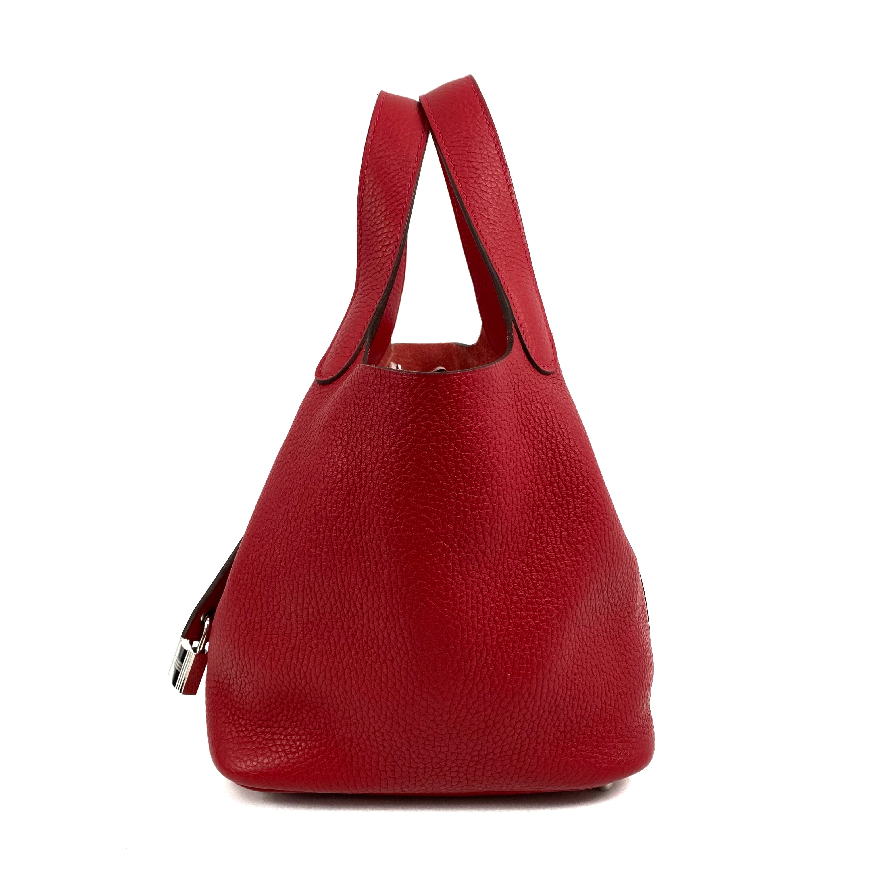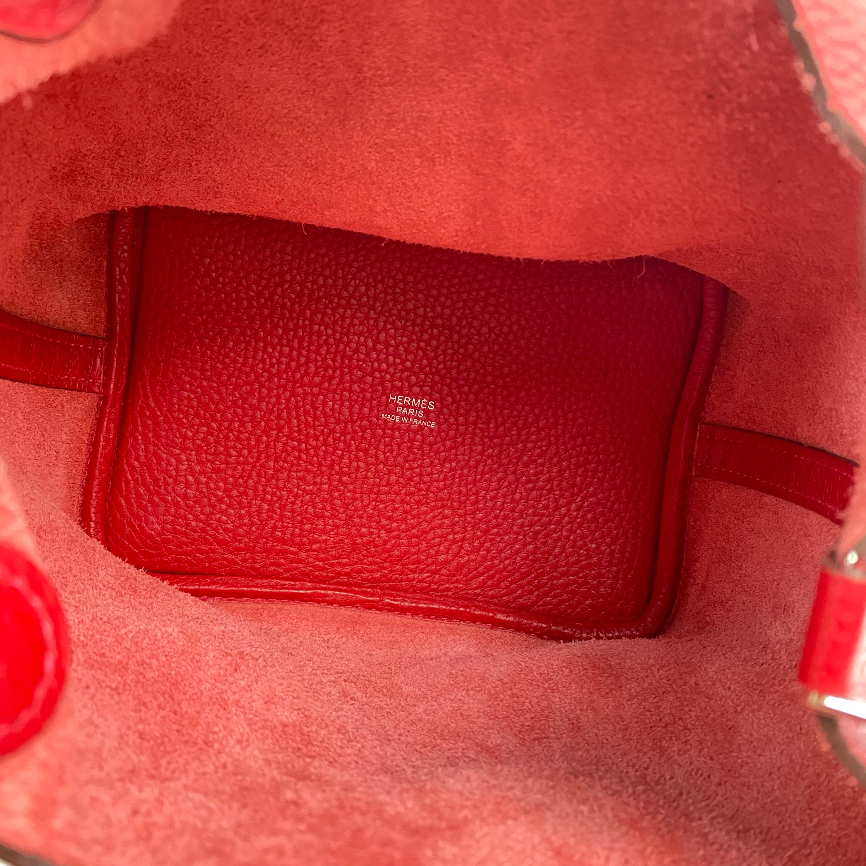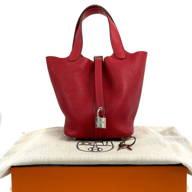 △ Hermes 愛馬仕 Q5 Rouge Casaque Clemence Calfskin Palladium Plated Metal Picotin 18 Hand Bag Stamp C 紅色粒紋小牛皮鍍鈀金屬手袋C刻 - 267003239