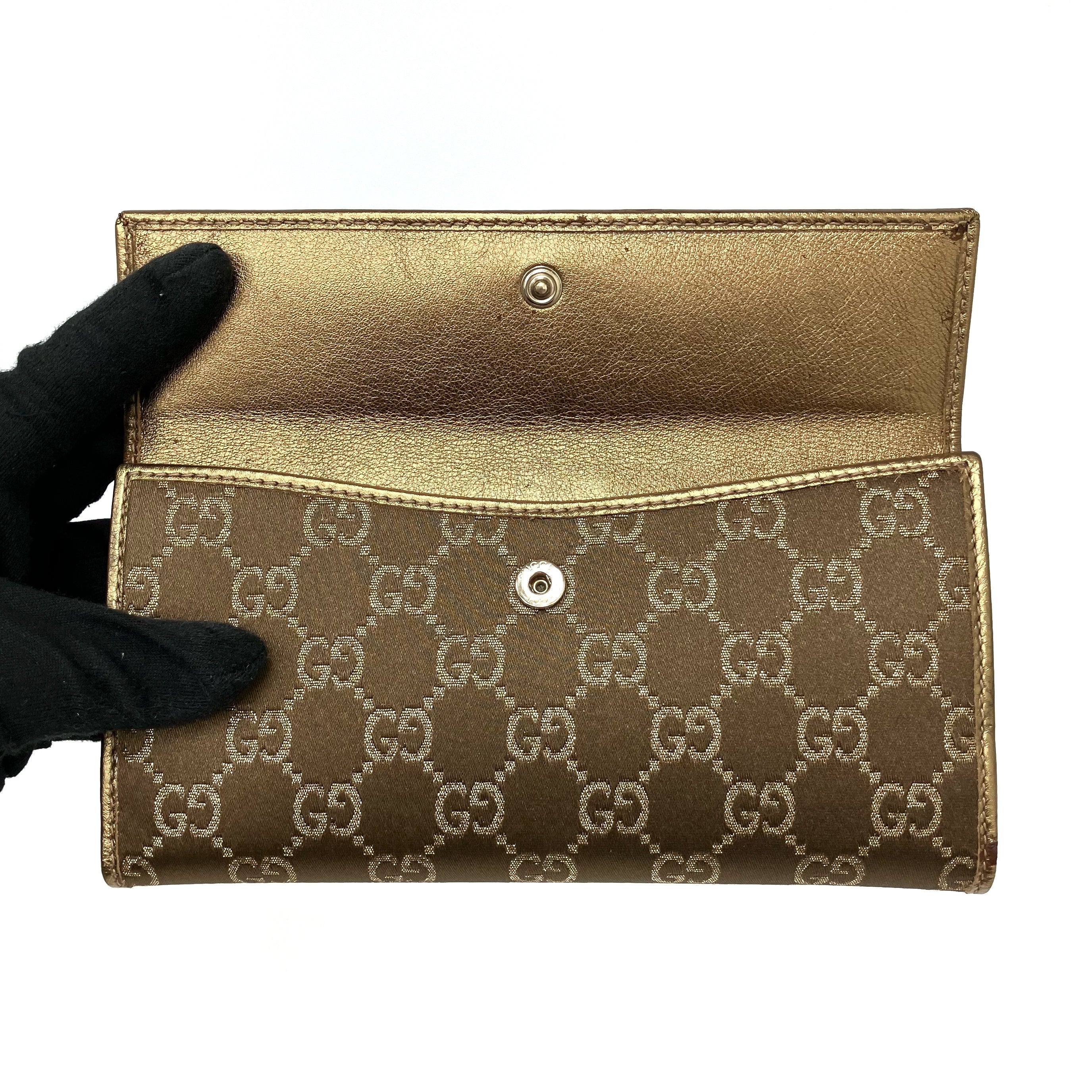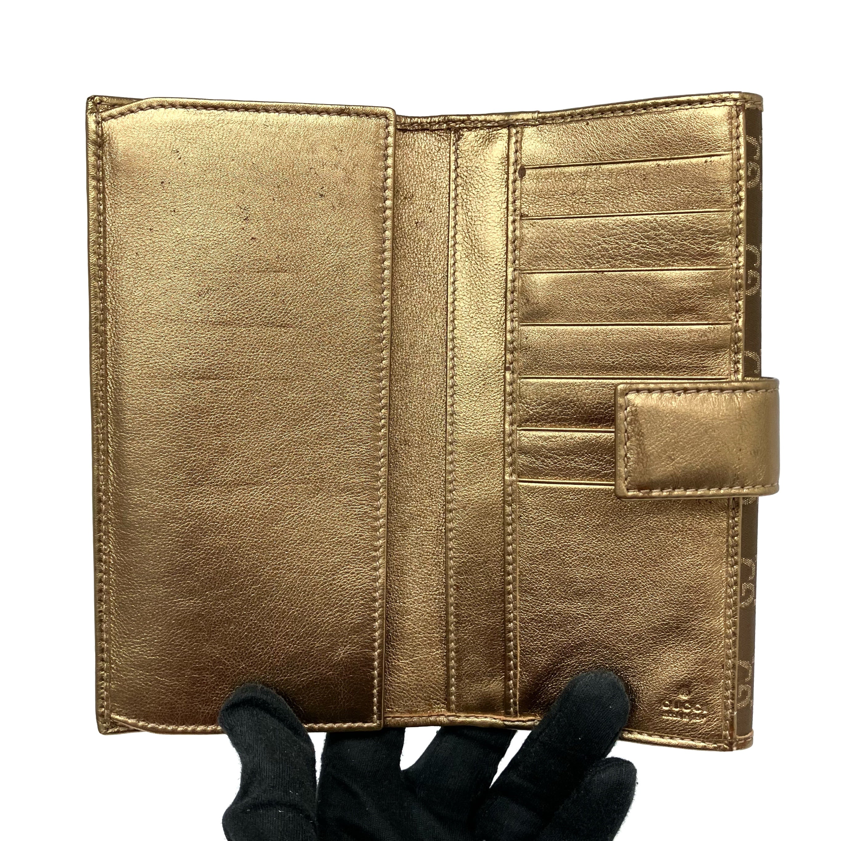 ☆ Gucci 古馳 Gold Brown Canvas GG Monogram Long Wallet 167464 金色啡色帆布GG經典花紋長銀包 - 267001670