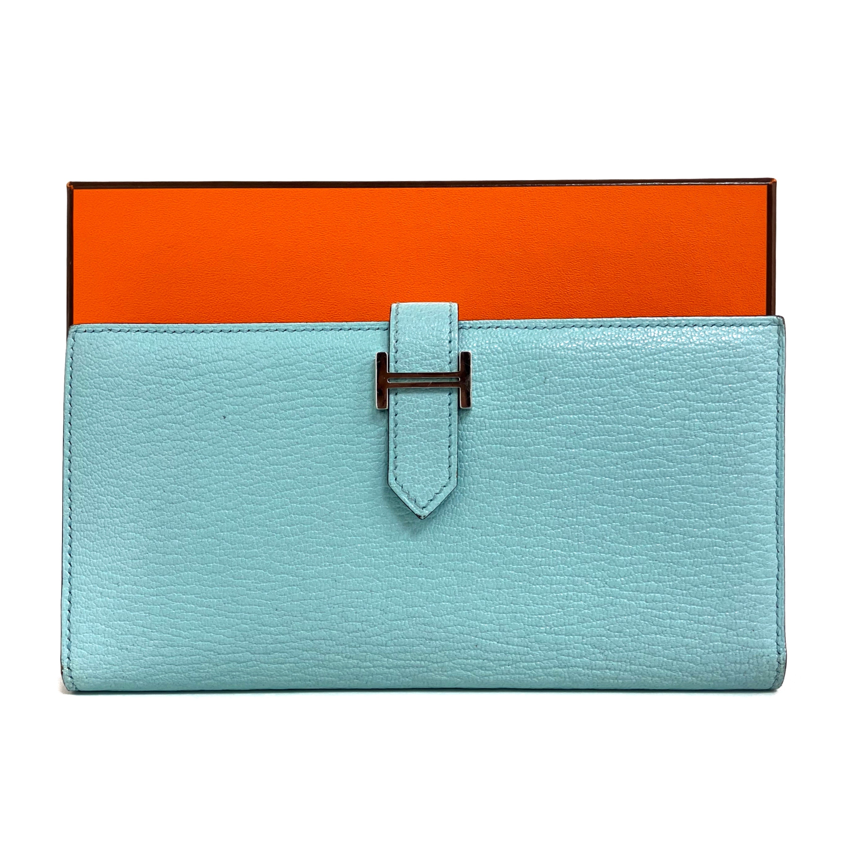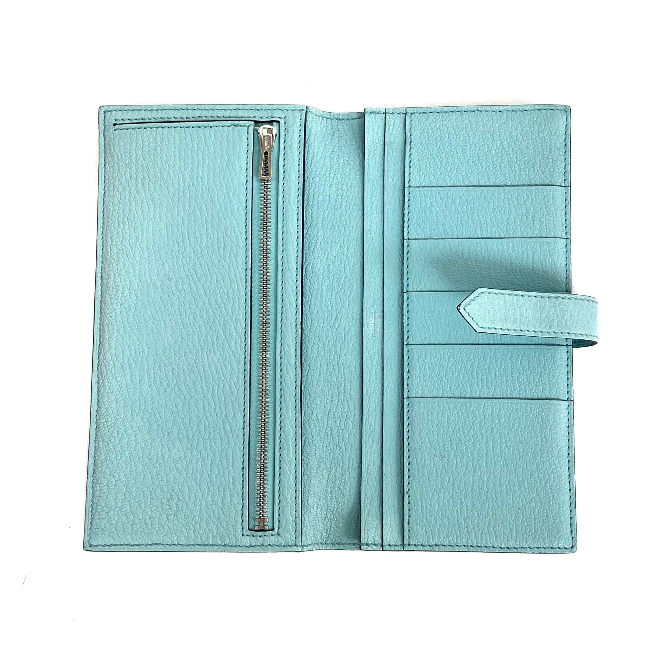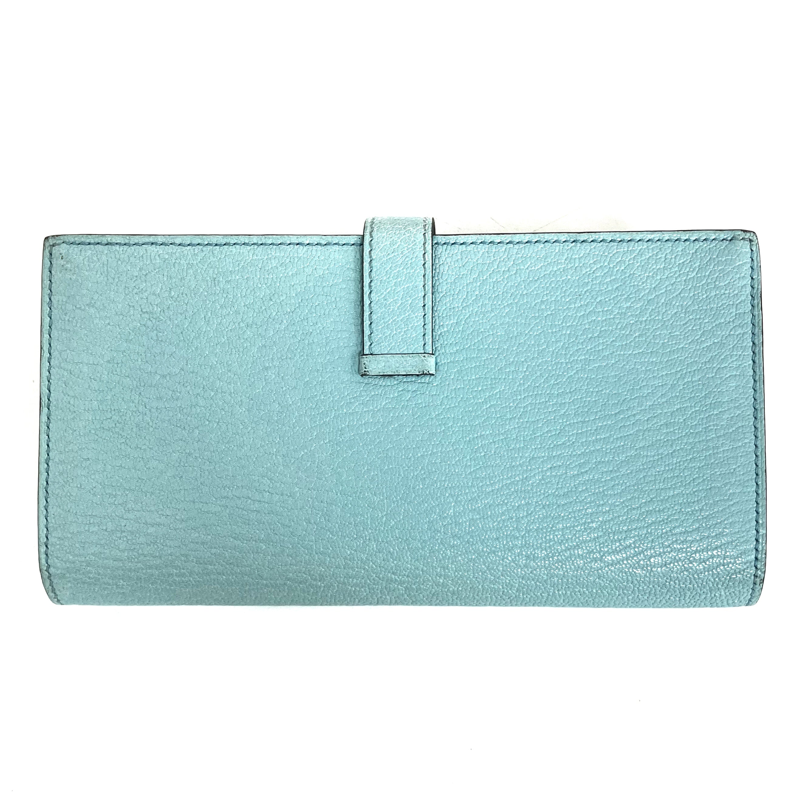 ☆ Hermes 愛馬仕 Light Calfskin Palladium Plated Hardware Long Wallet Stamp B 淺藍色小牛皮鍍鈀金屬長銀包B刻 - 267004264