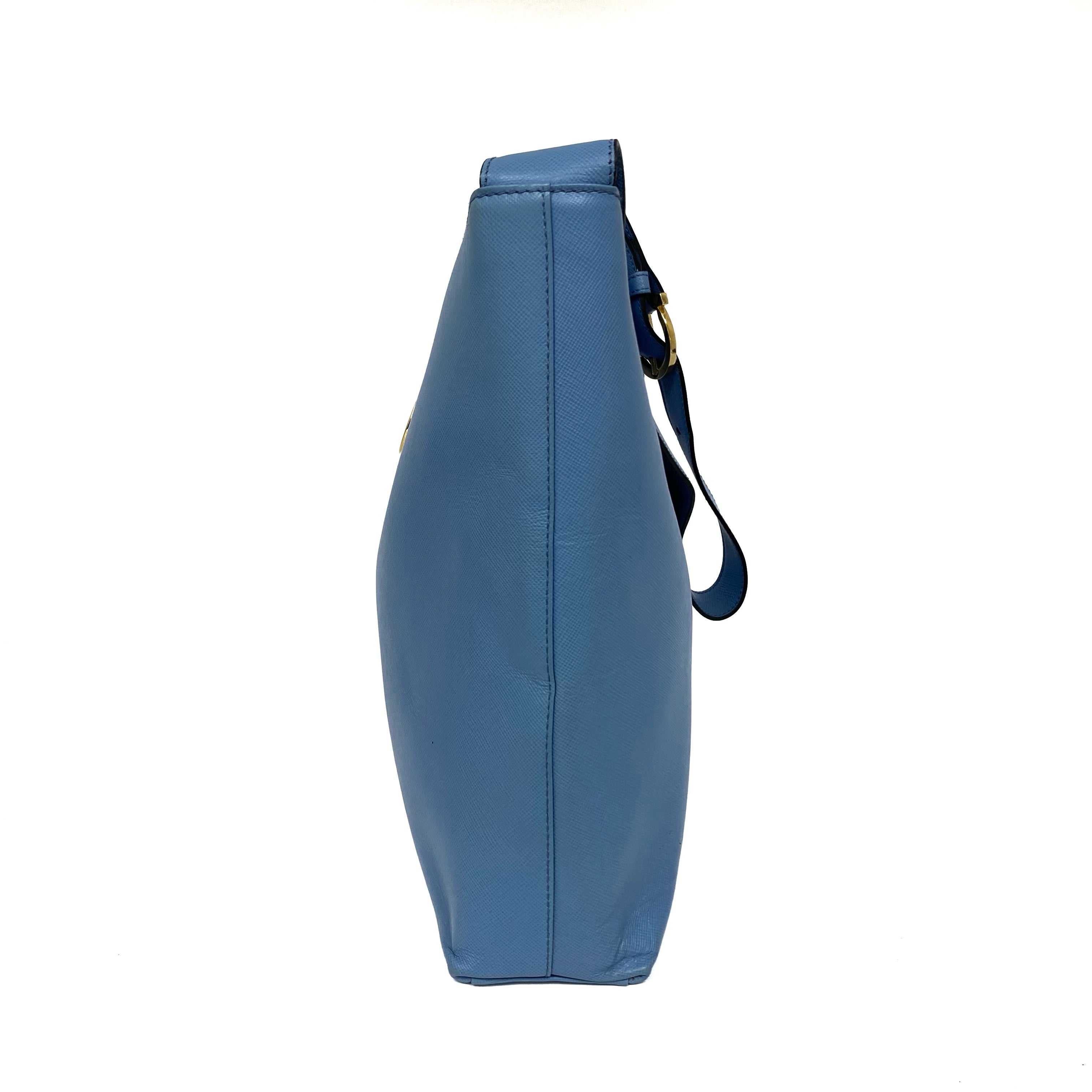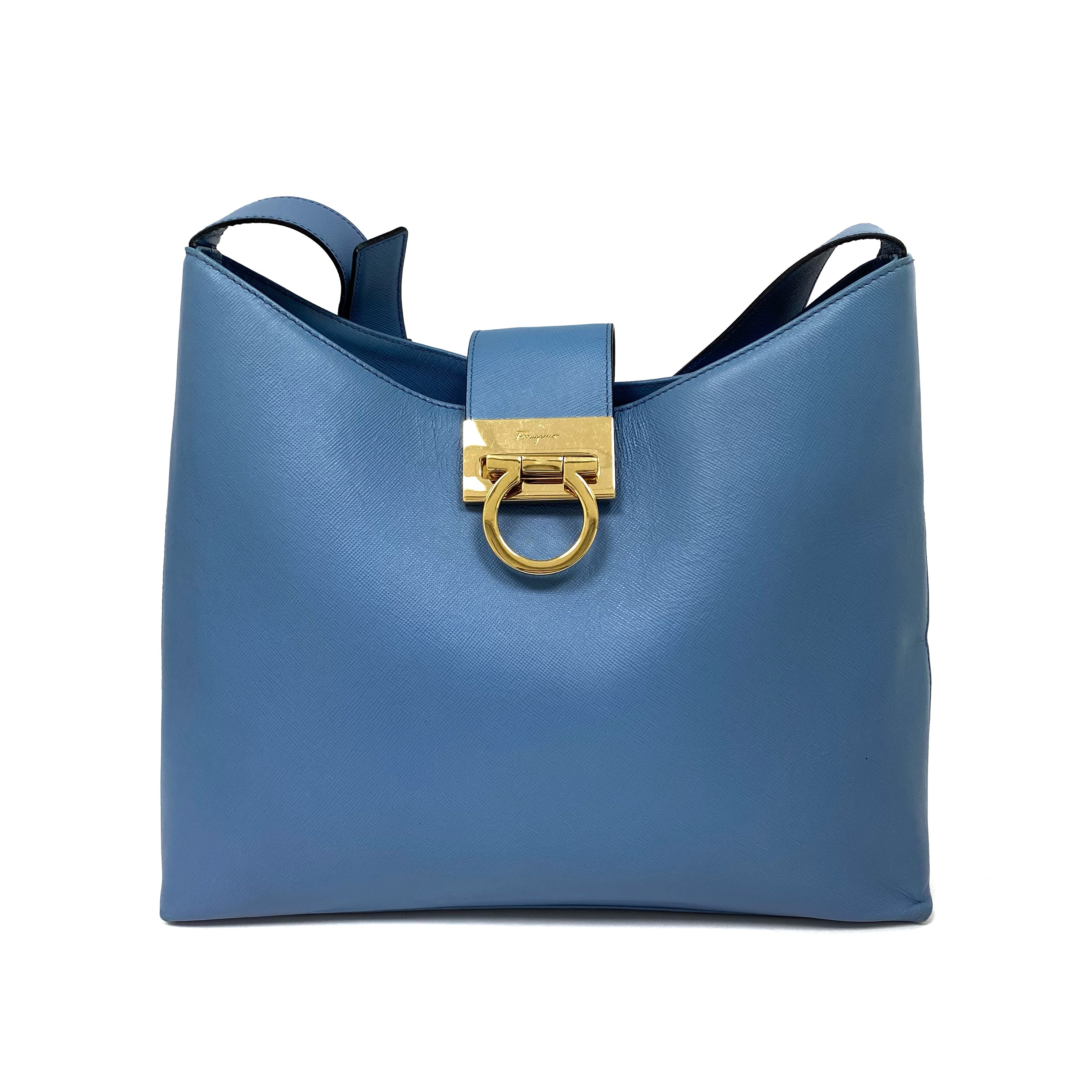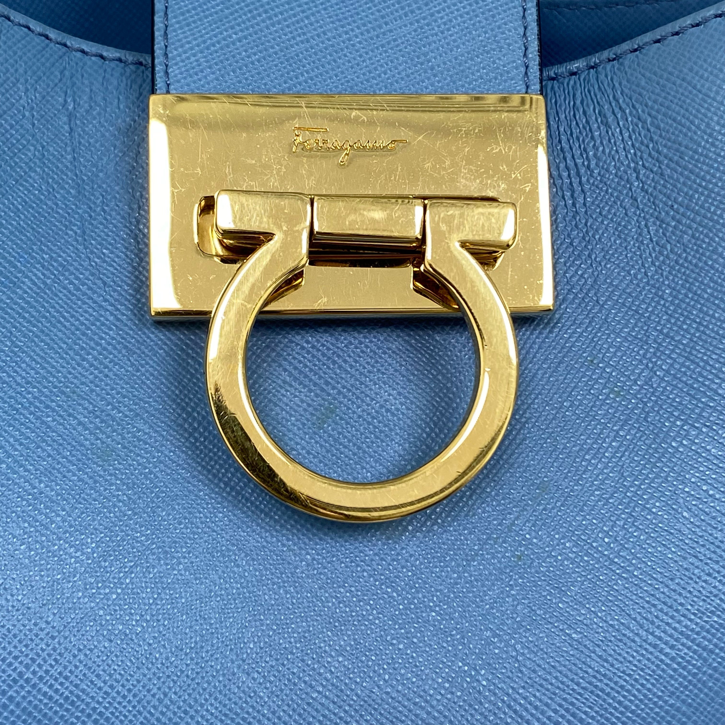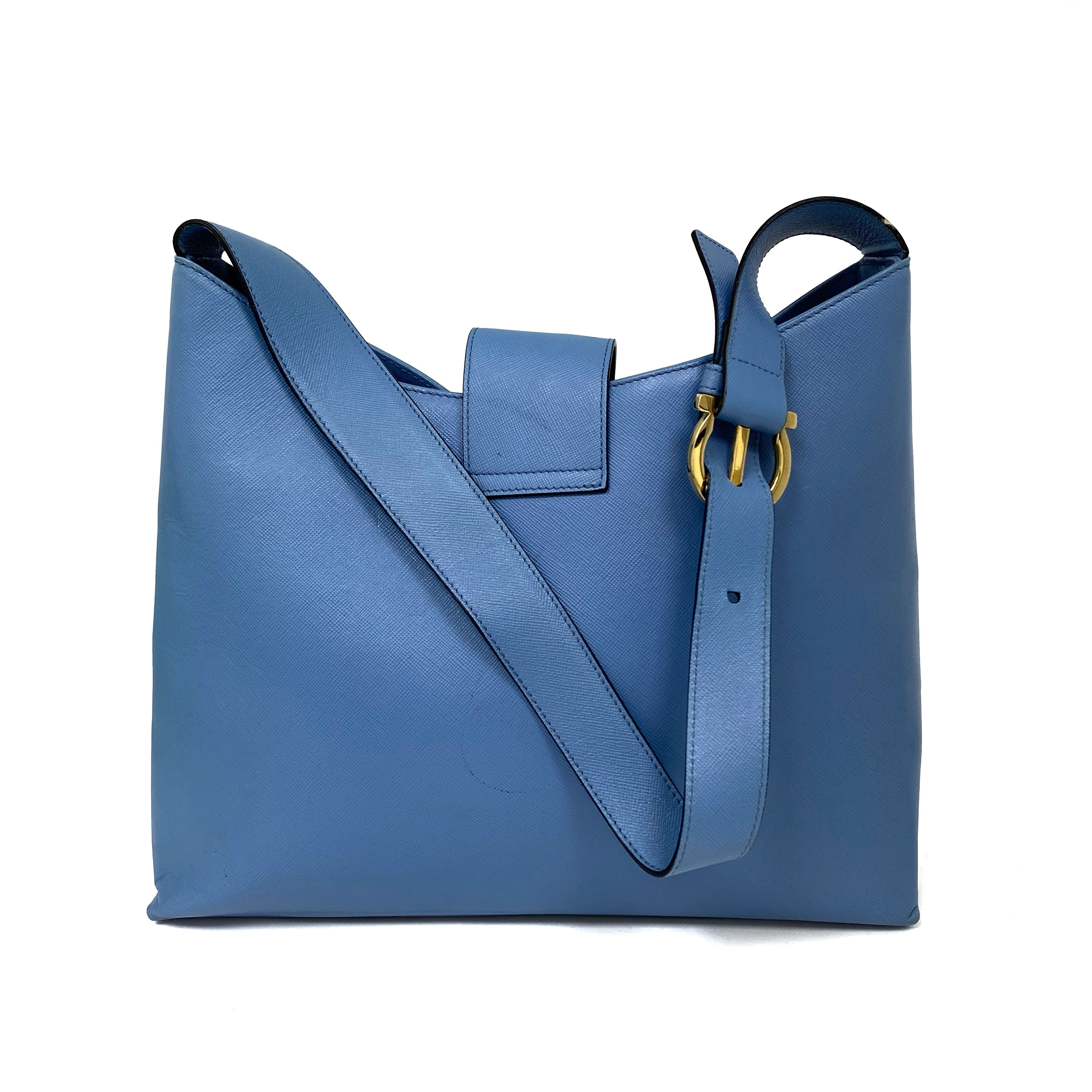 ☆Salvatore Ferragamo 菲拉格慕 Light Blue Saffiano Leather Shoulder Bag 淺藍色十字壓紋皮革肩背袋 -257021361
